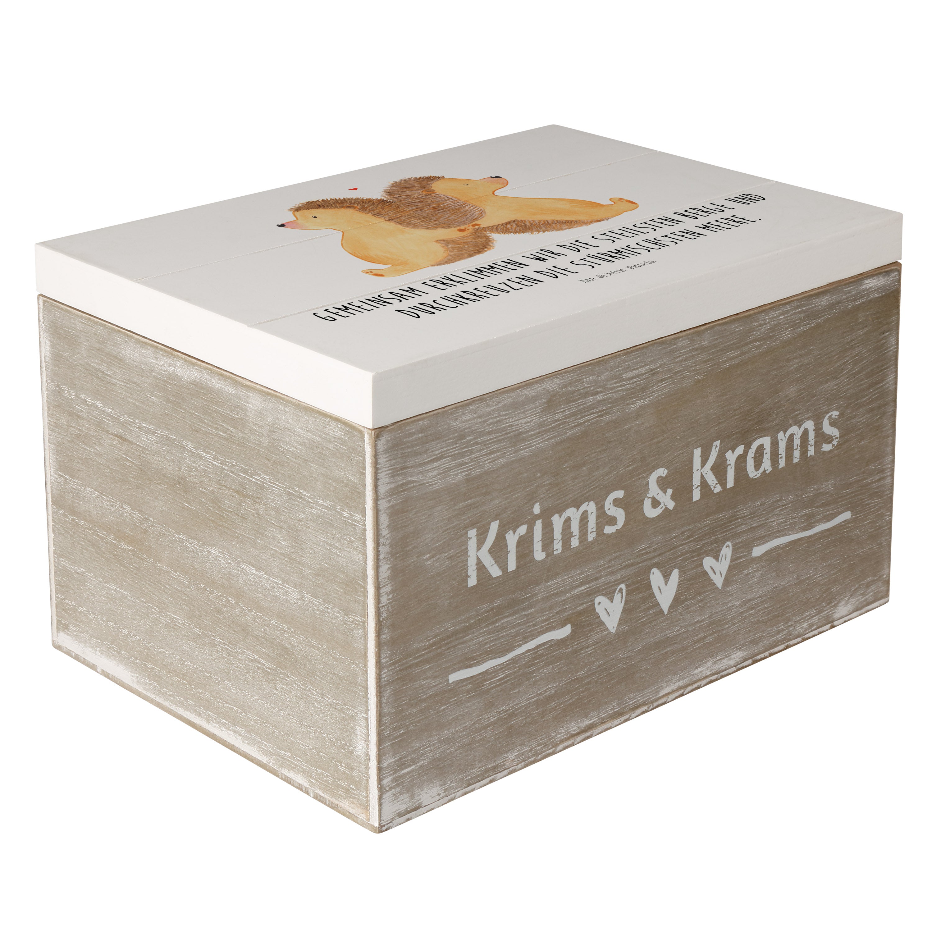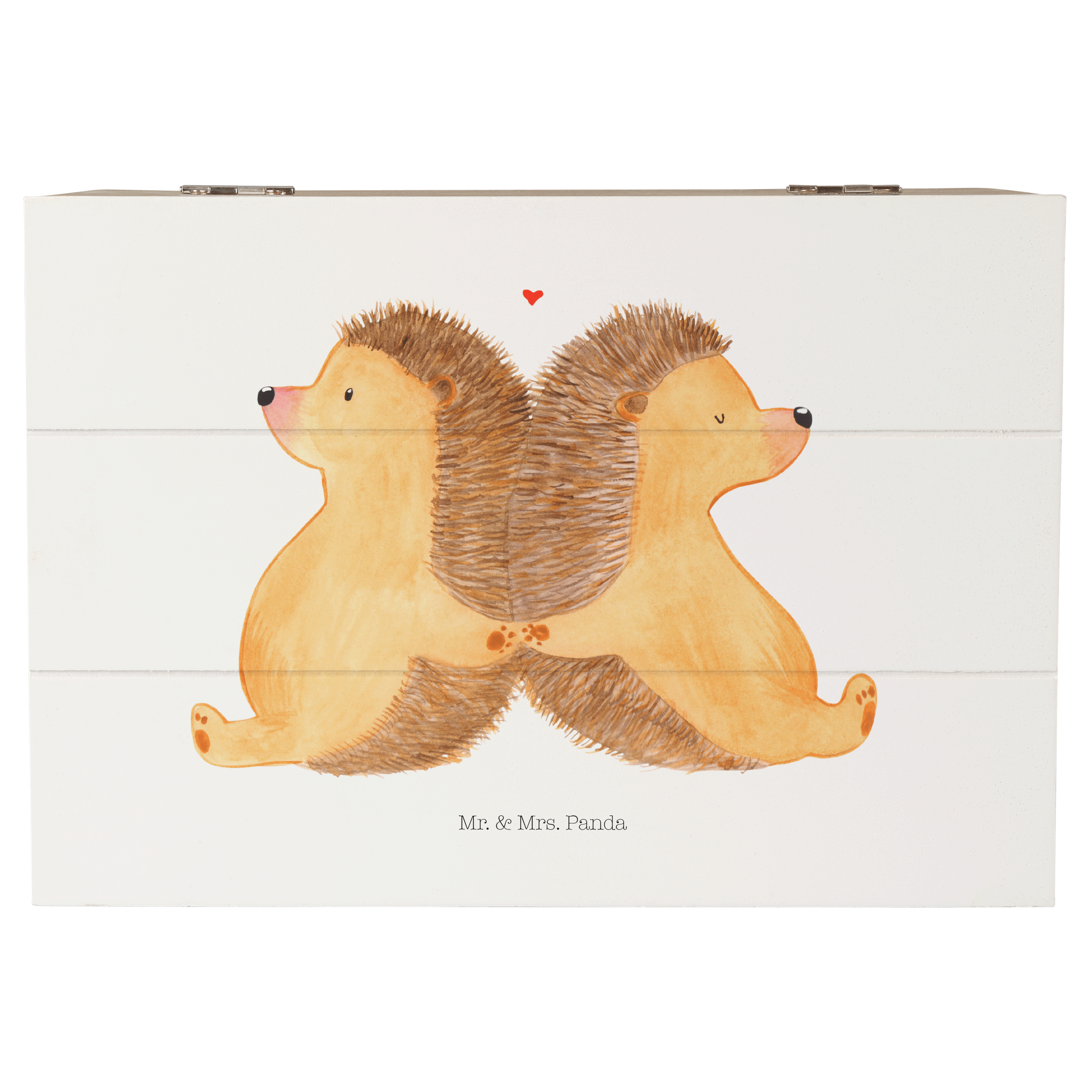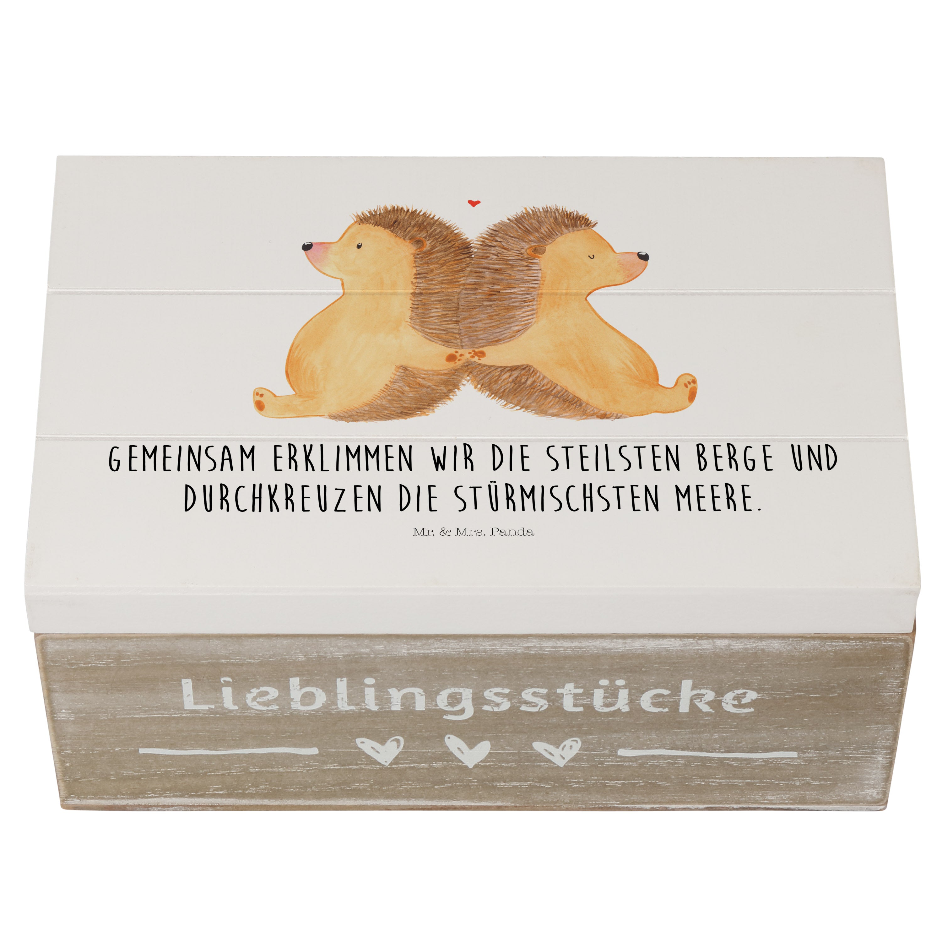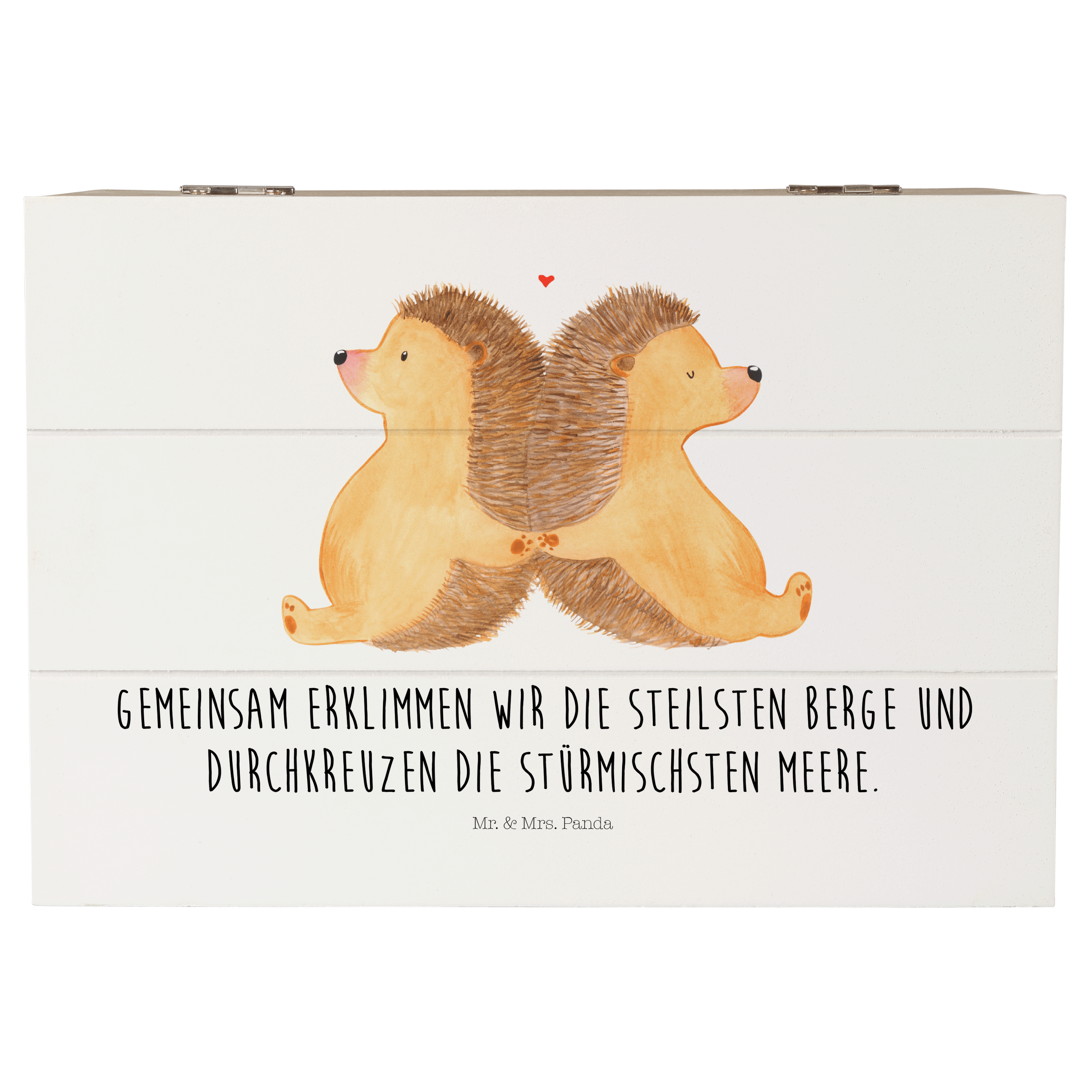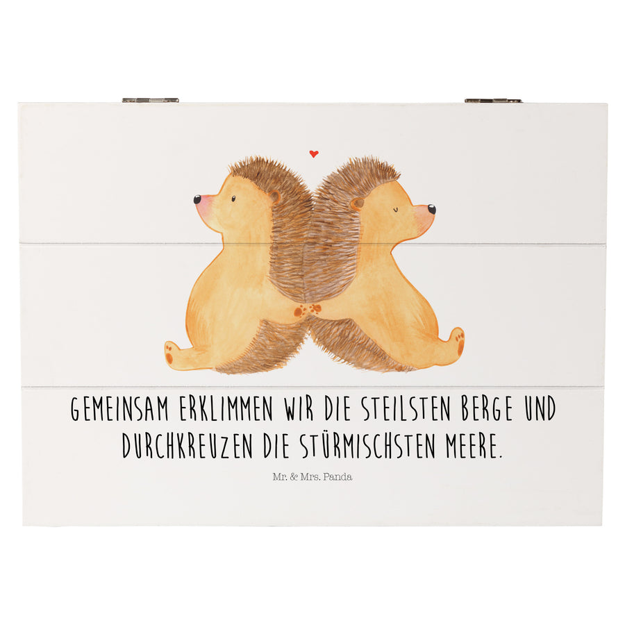 Holzkiste Igel händchenhaltend - 25 x 18 cm - mit Spruch - Weiß
