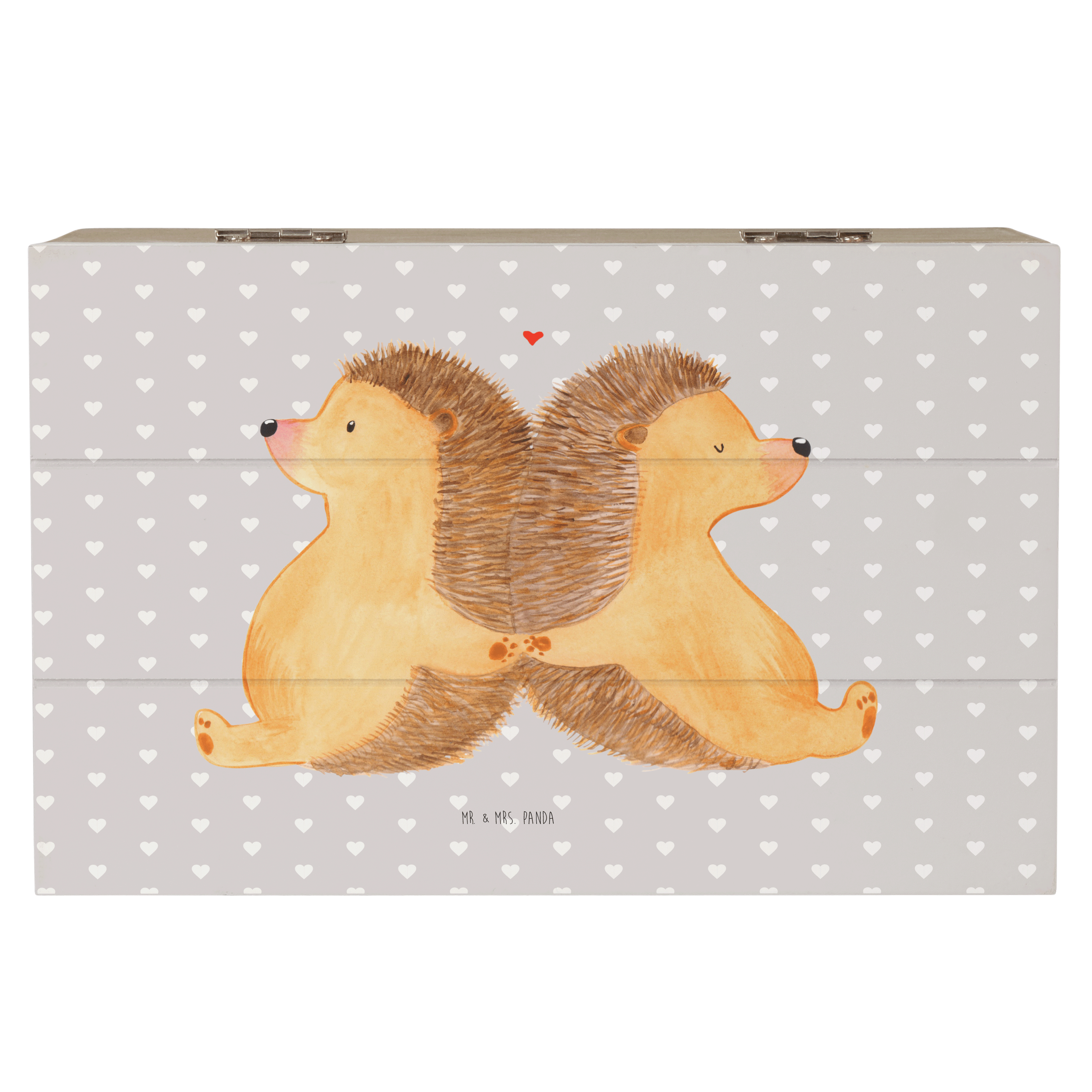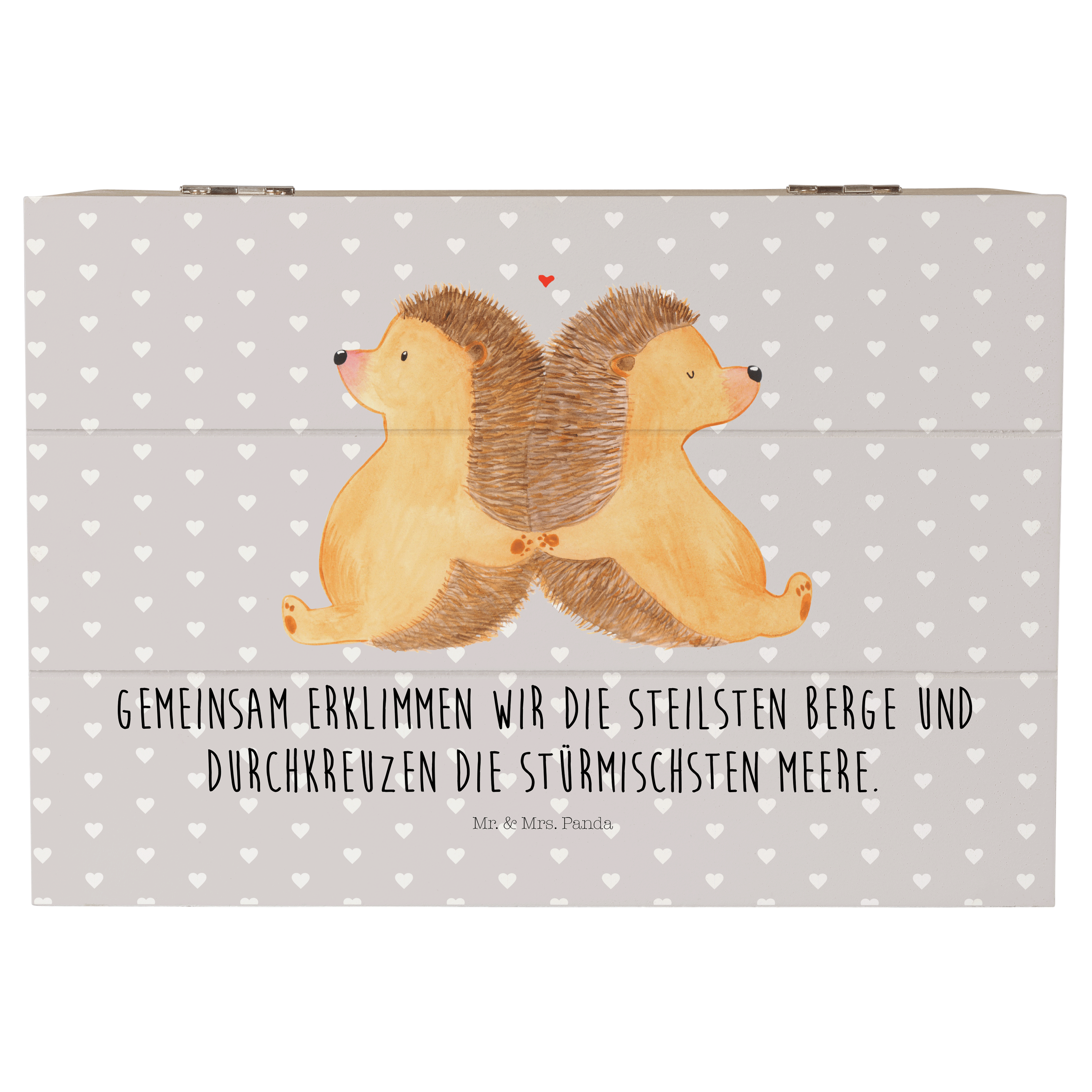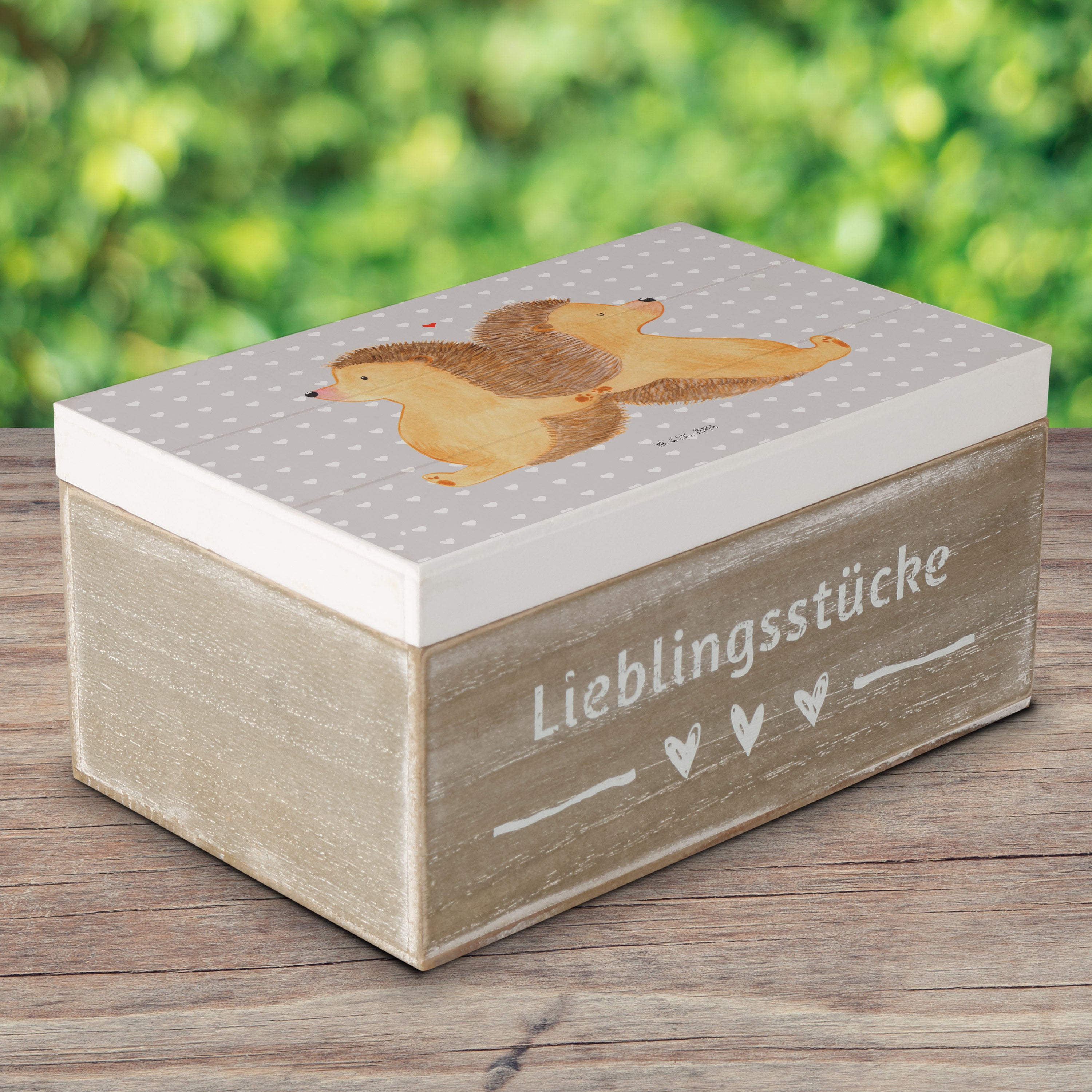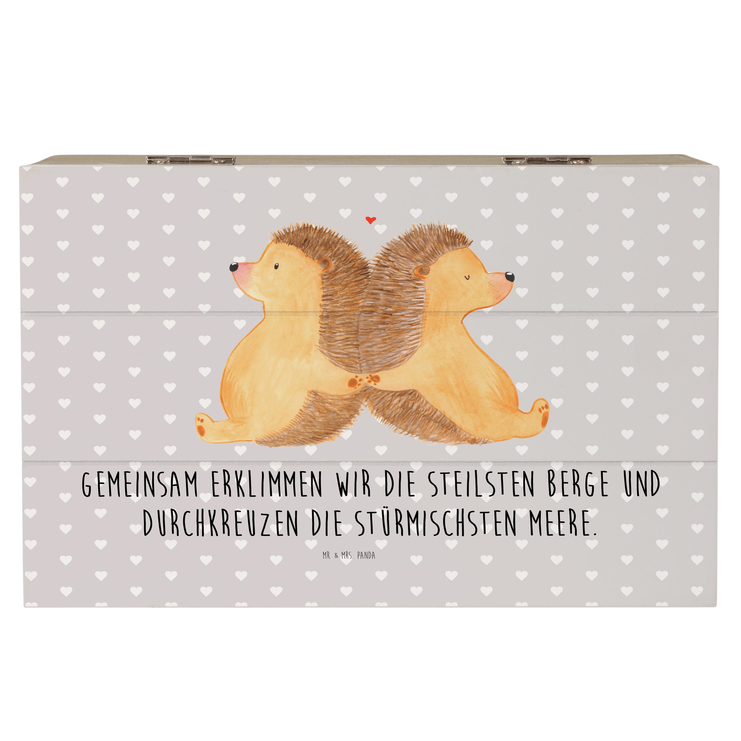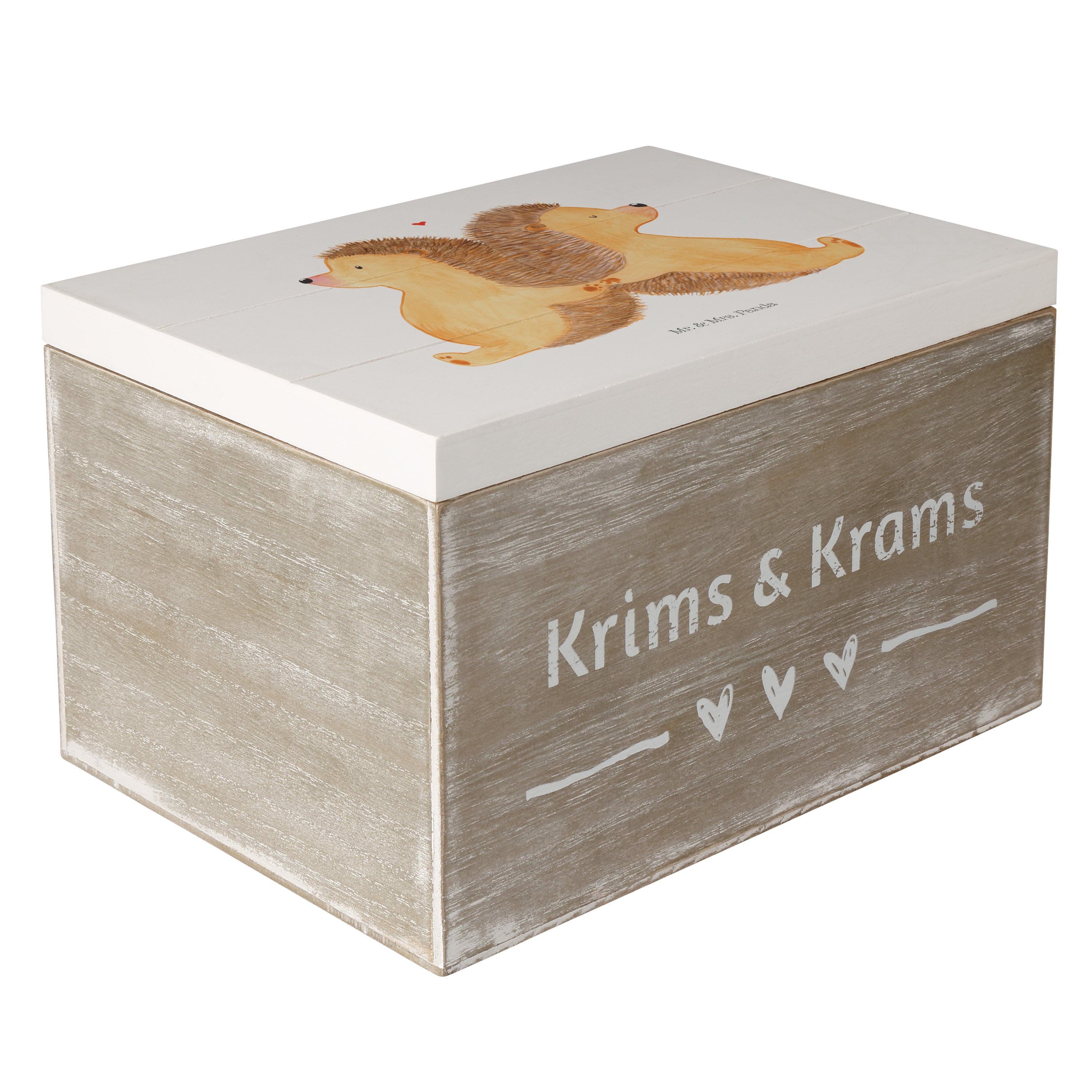 Holzkiste Igel händchenhaltend - 25 x 18 cm - mit Spruch - Weiß