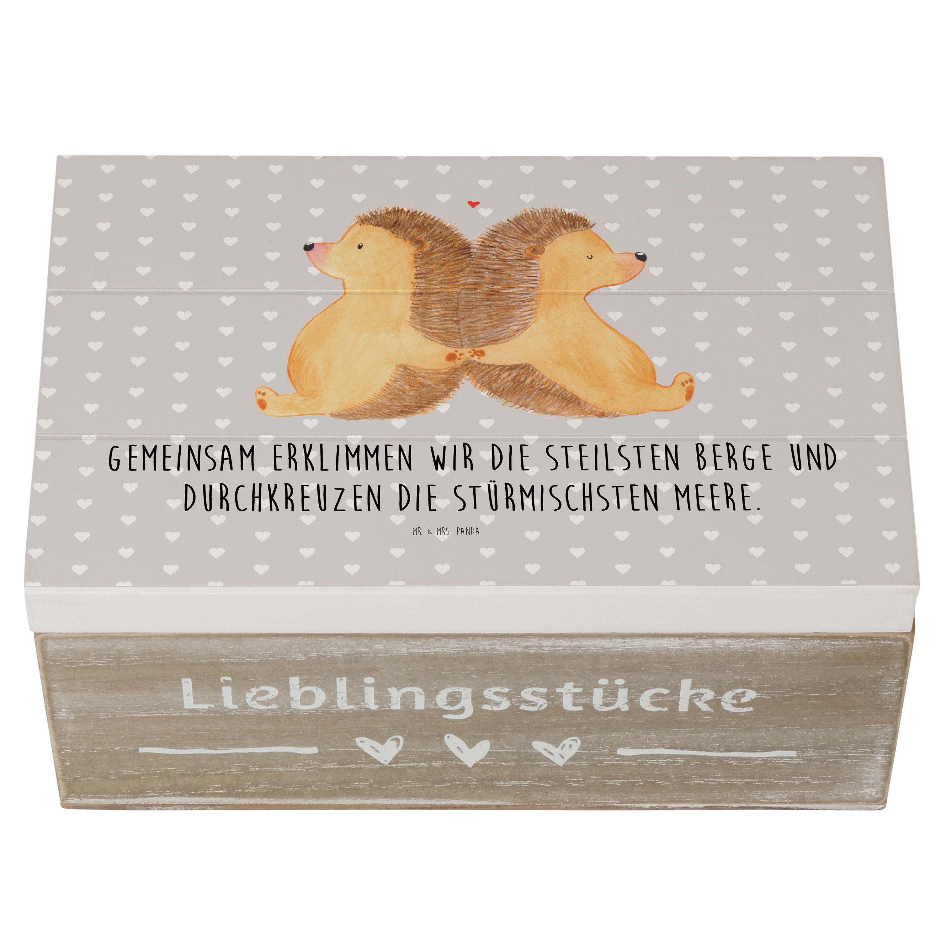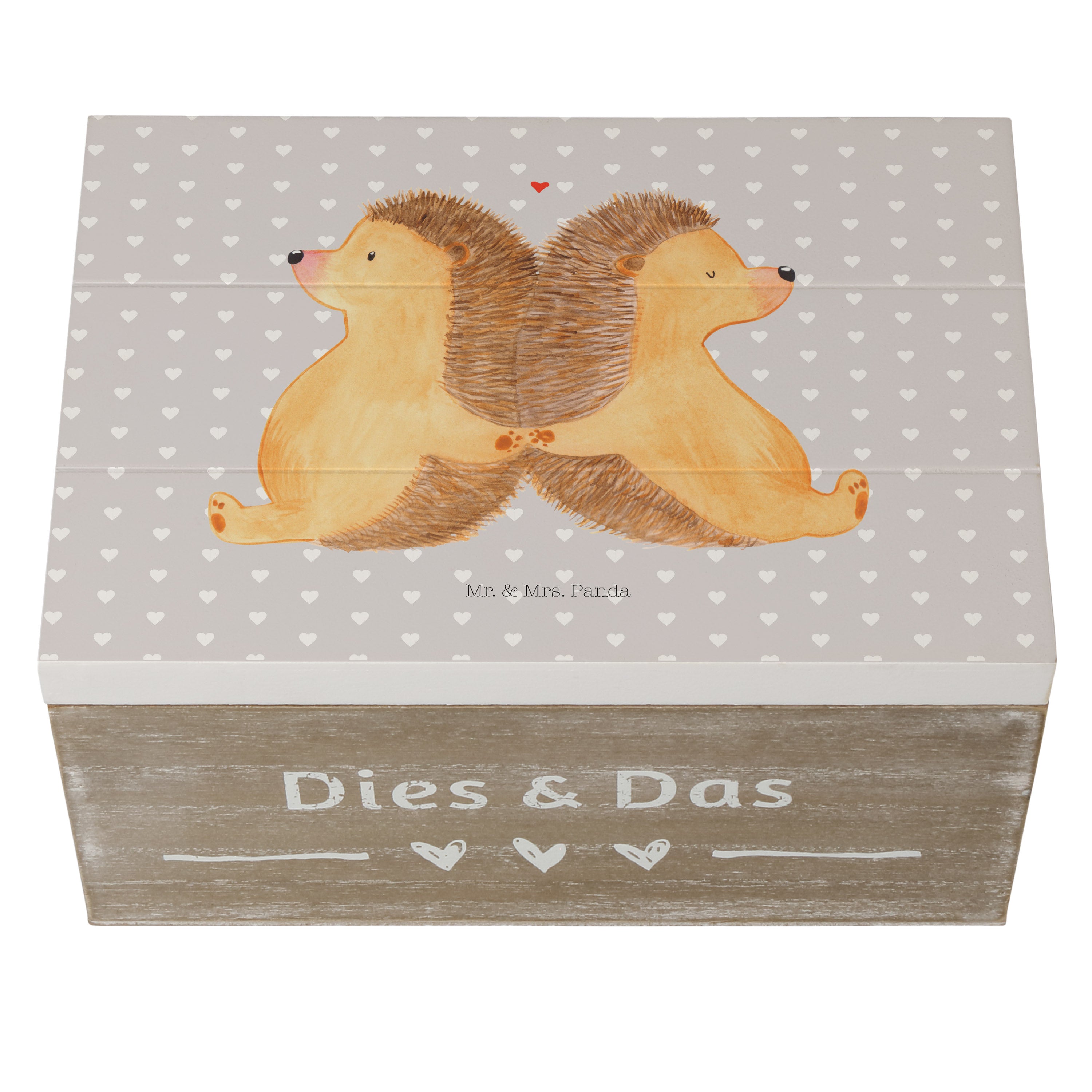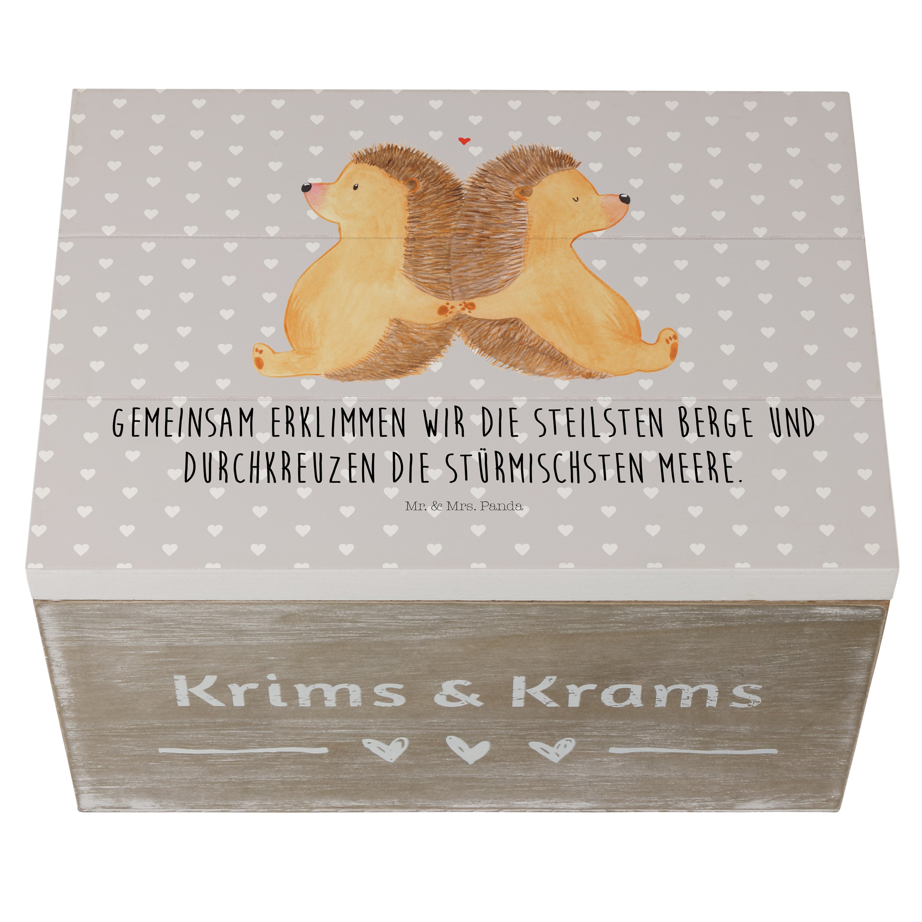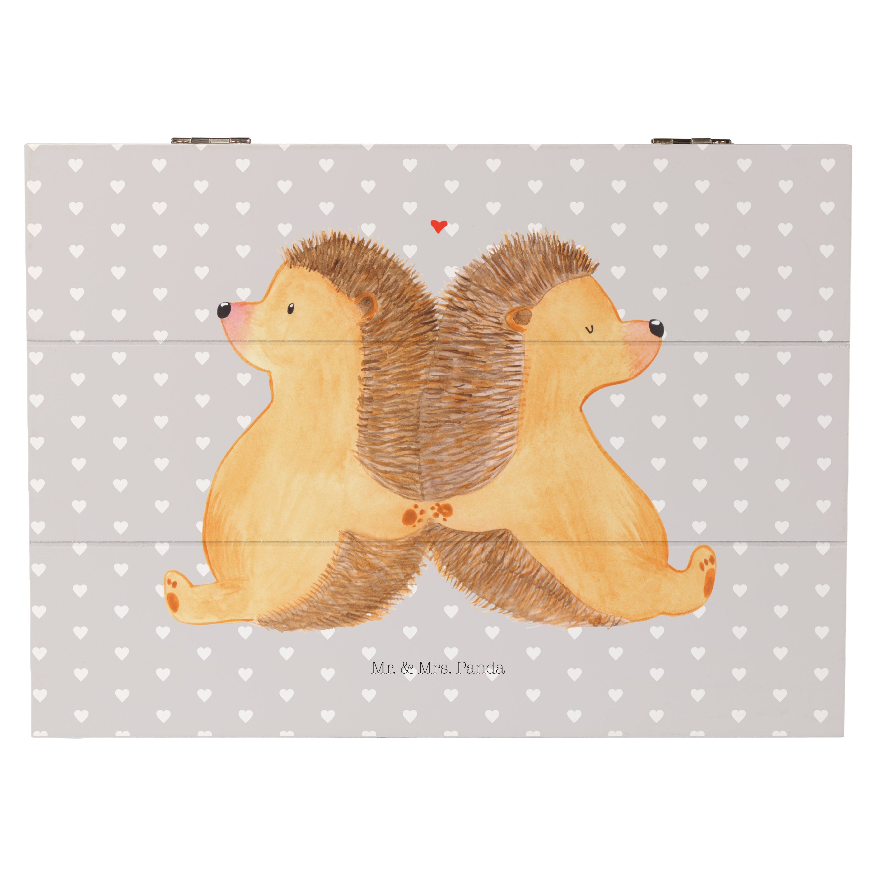 Holzkiste Igel händchenhaltend - 25 x 18 cm - mit Spruch - Weiß