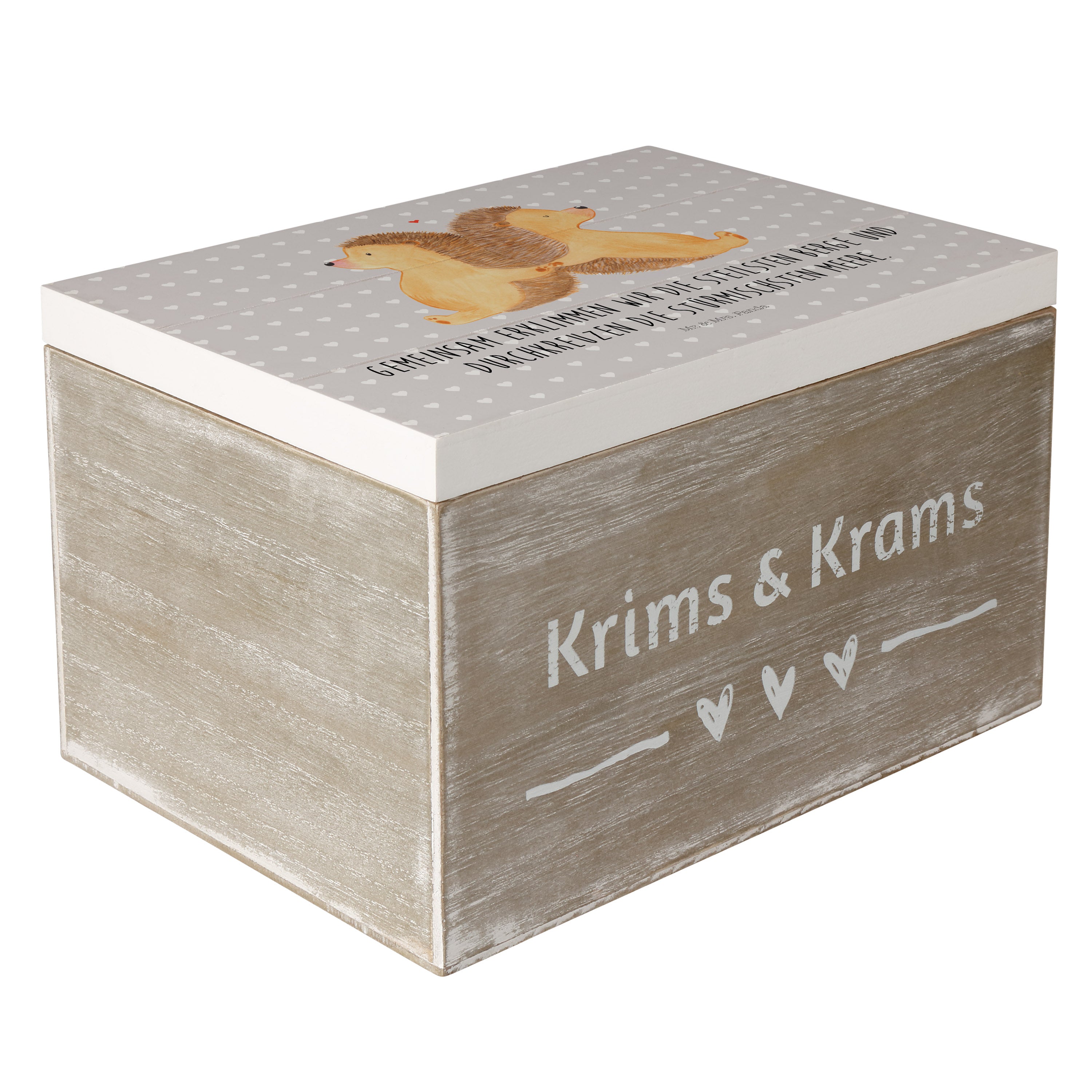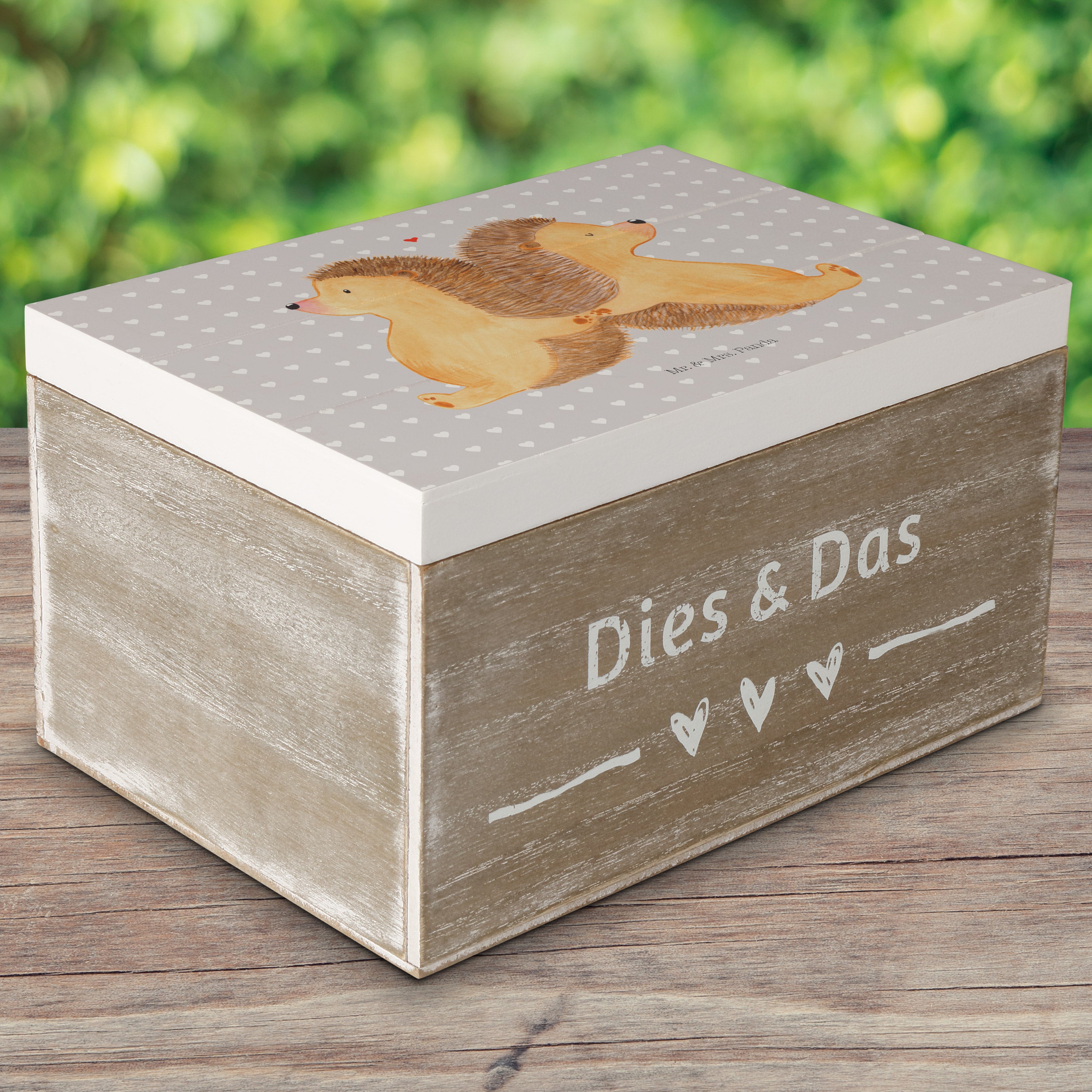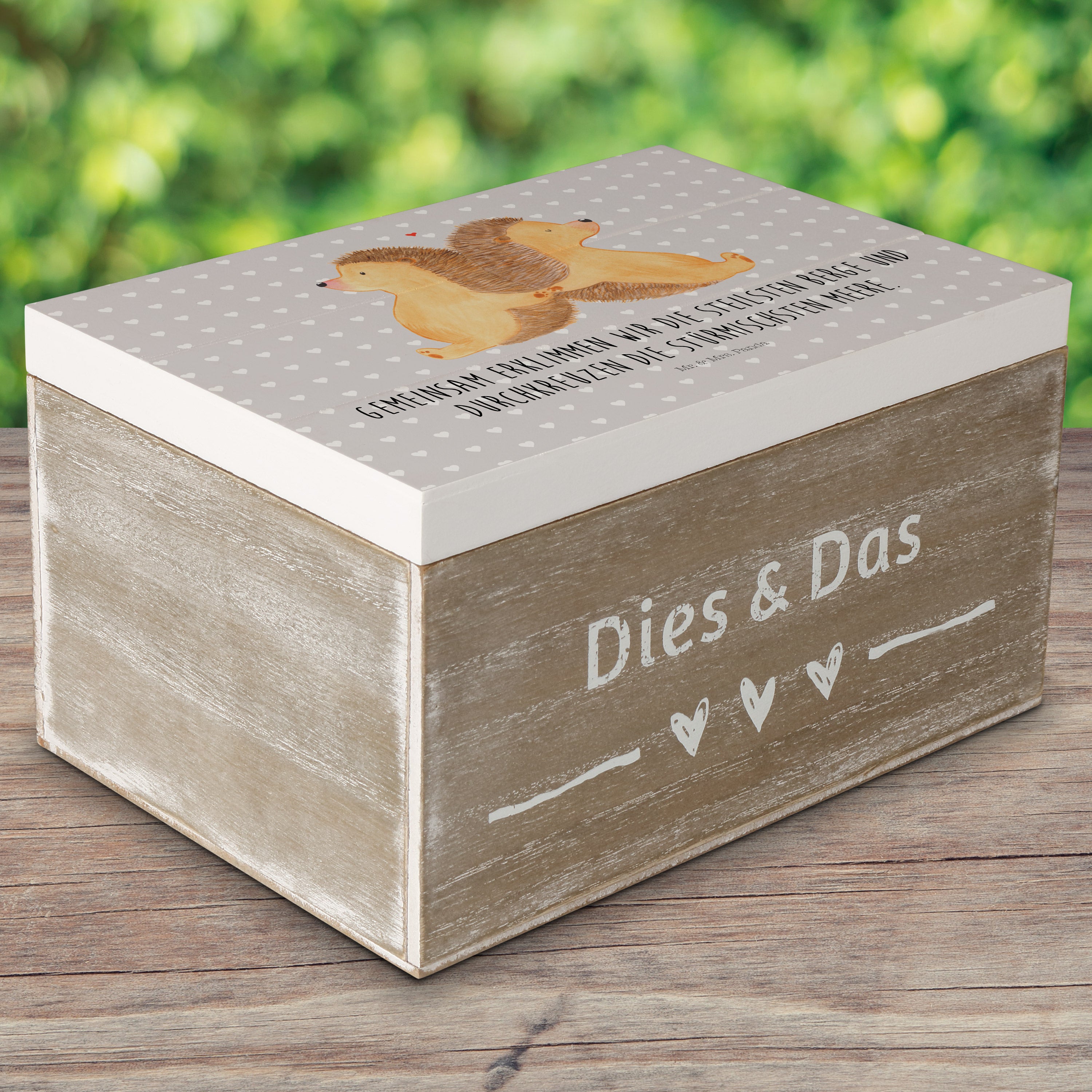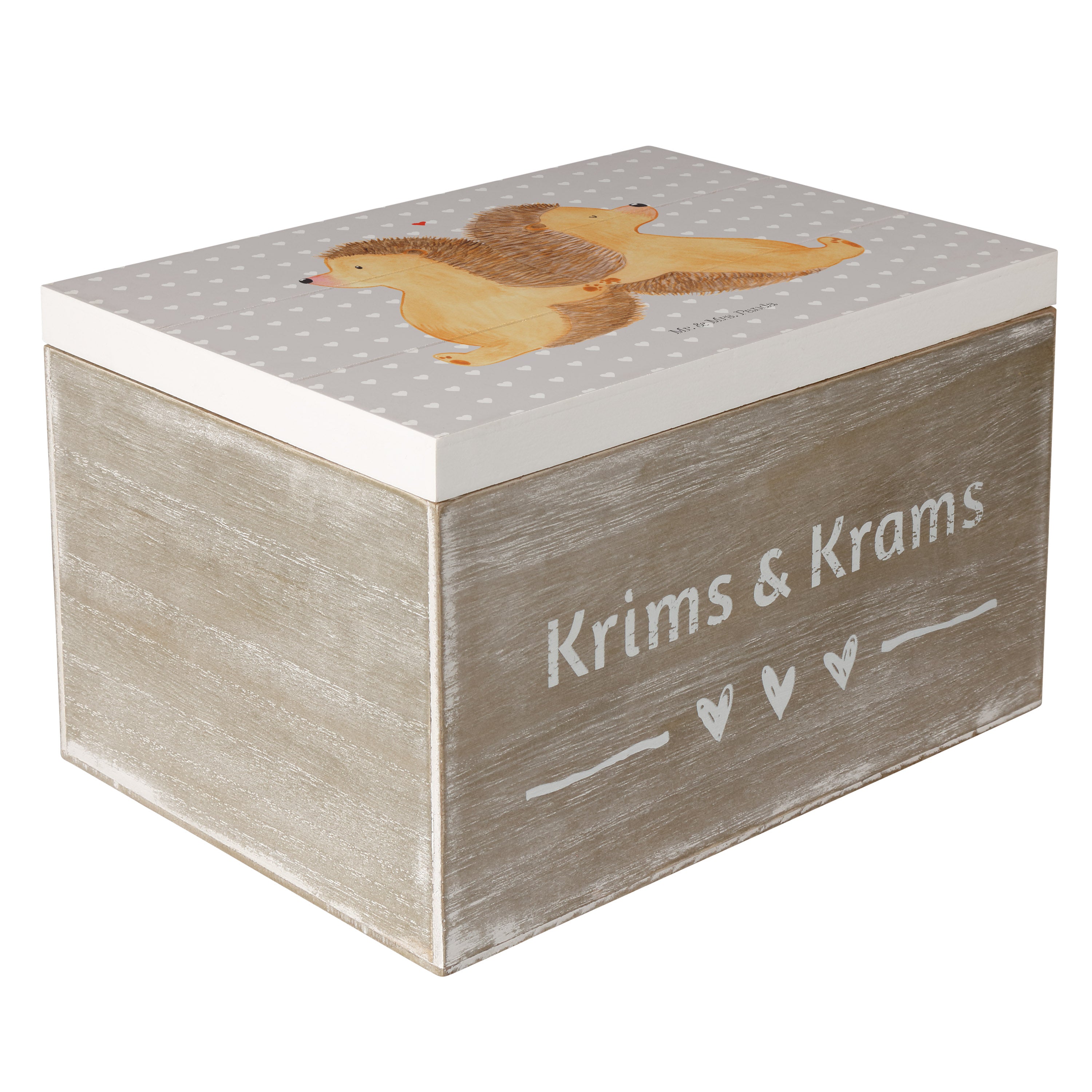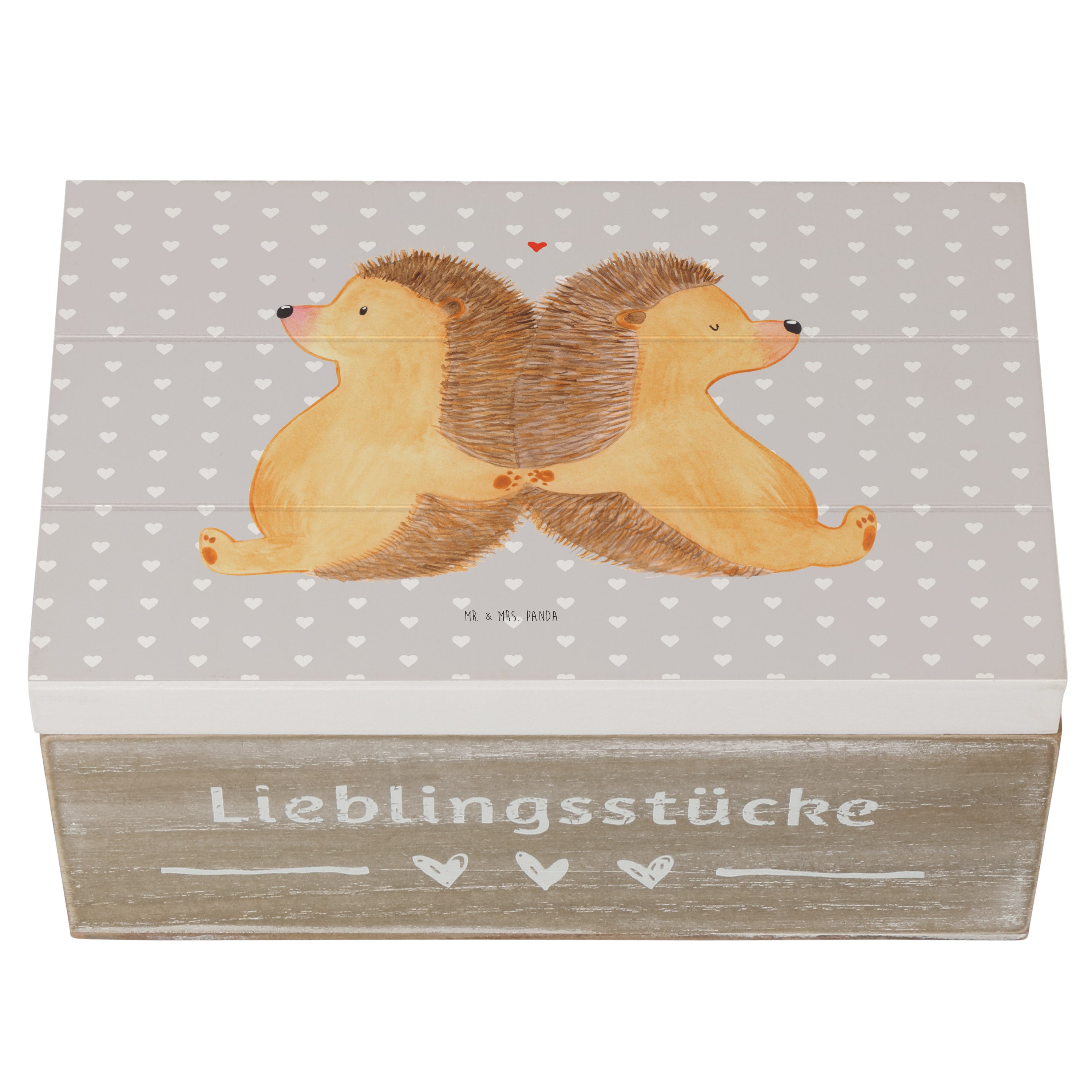 Holzkiste Igel händchenhaltend - 25 x 18 cm - mit Spruch - Weiß
