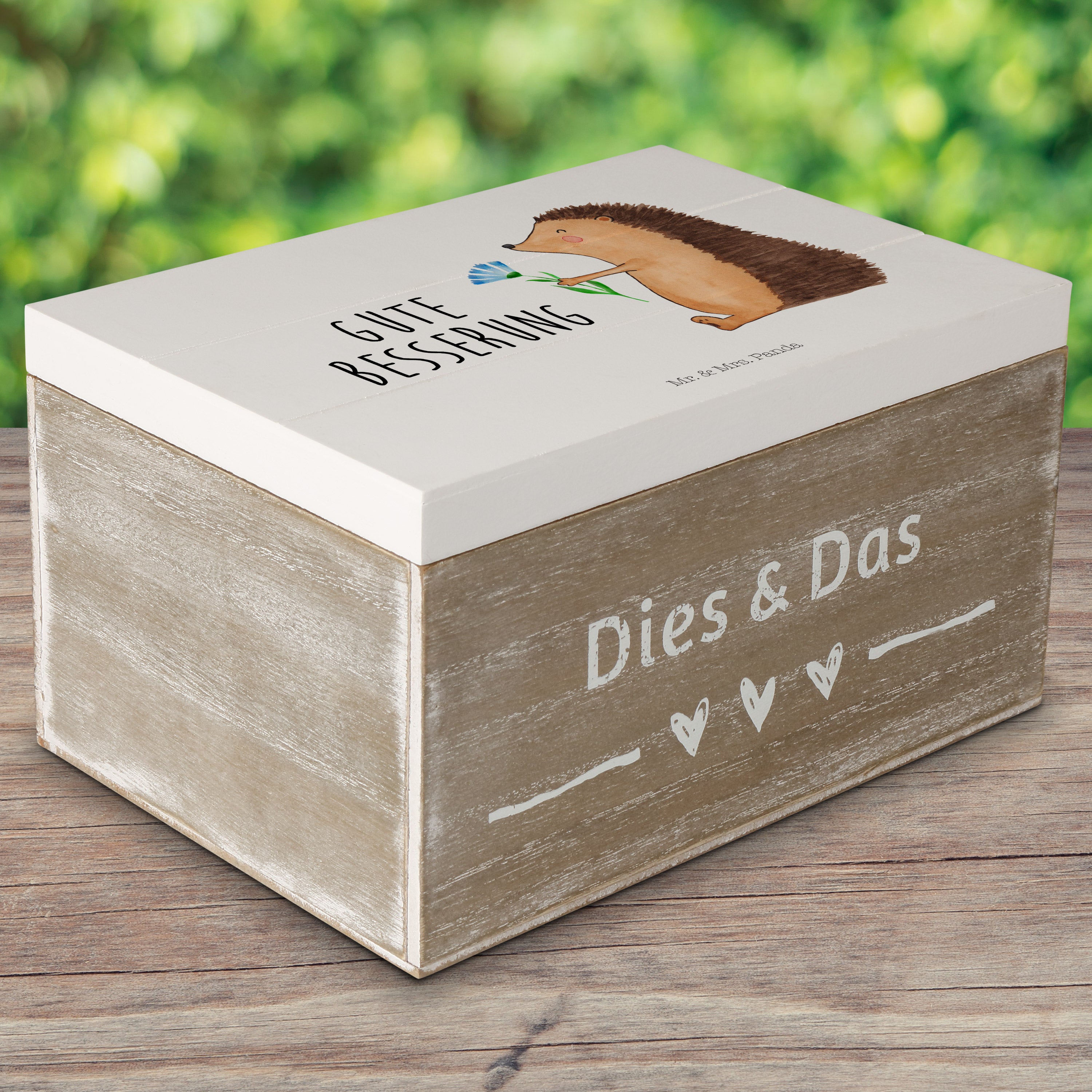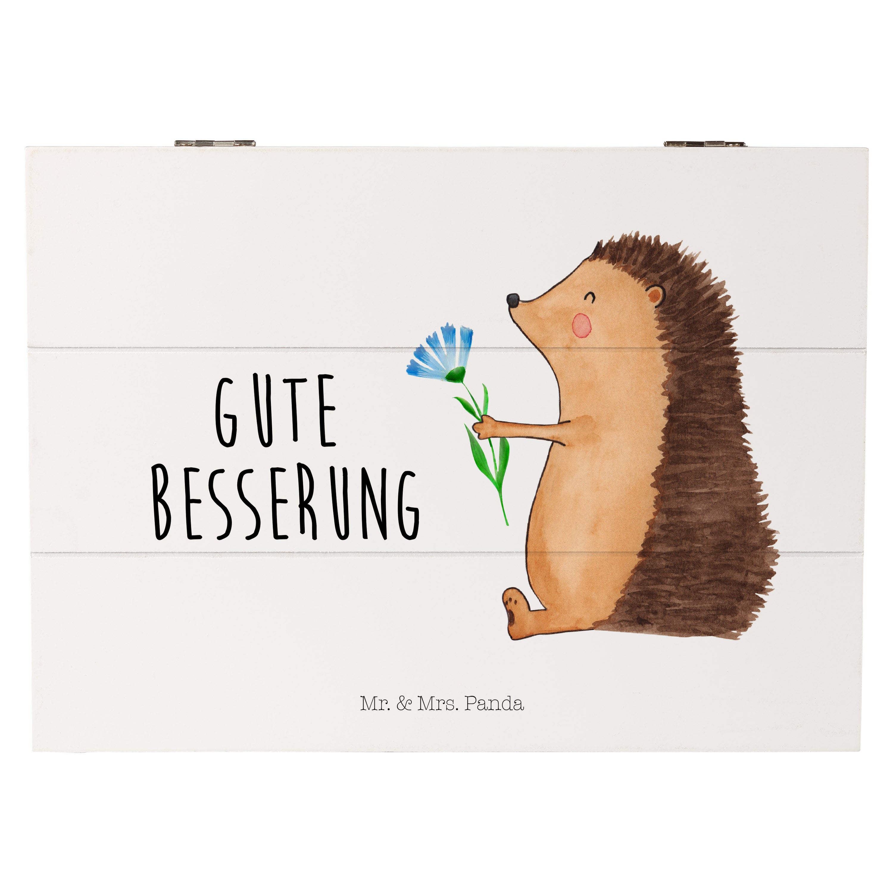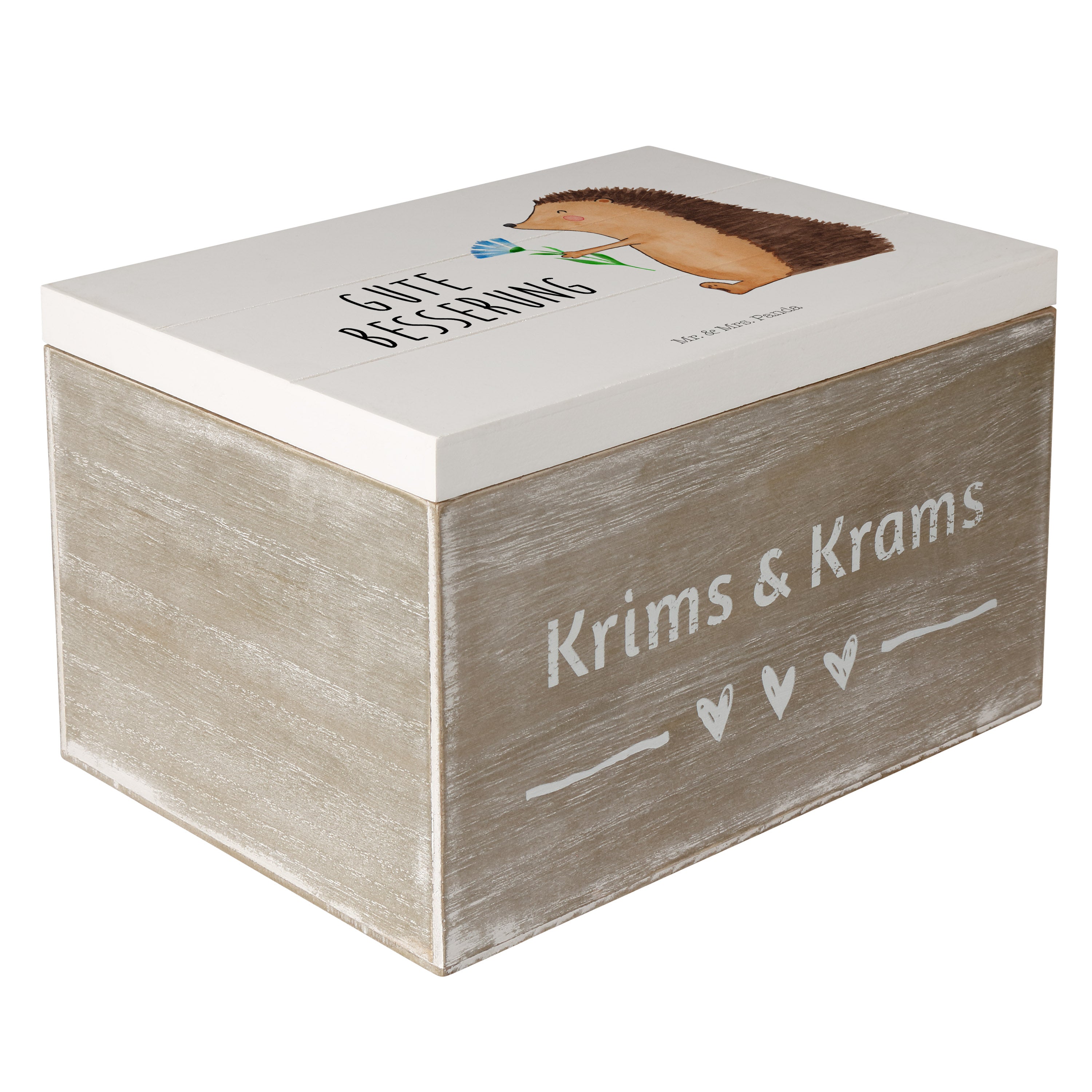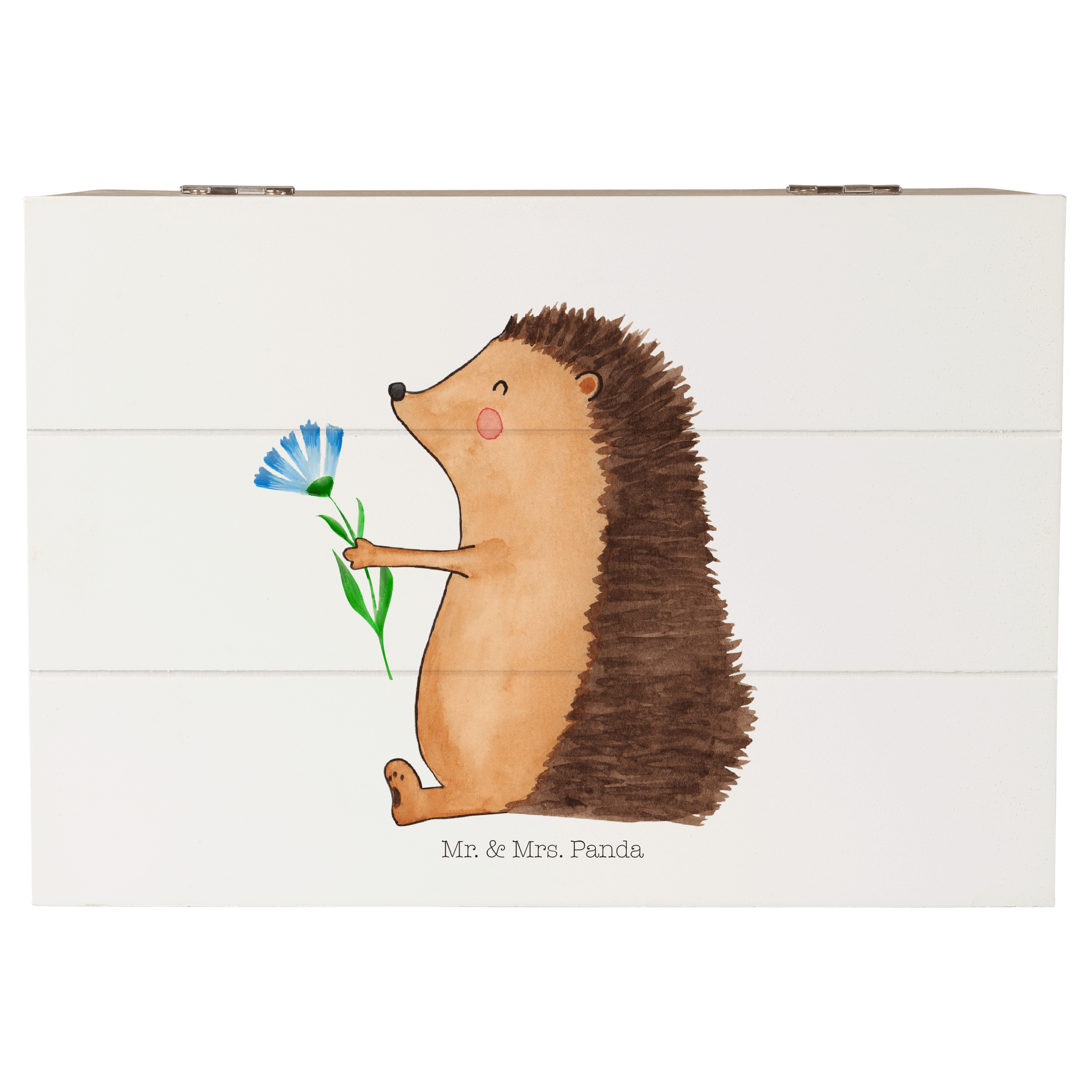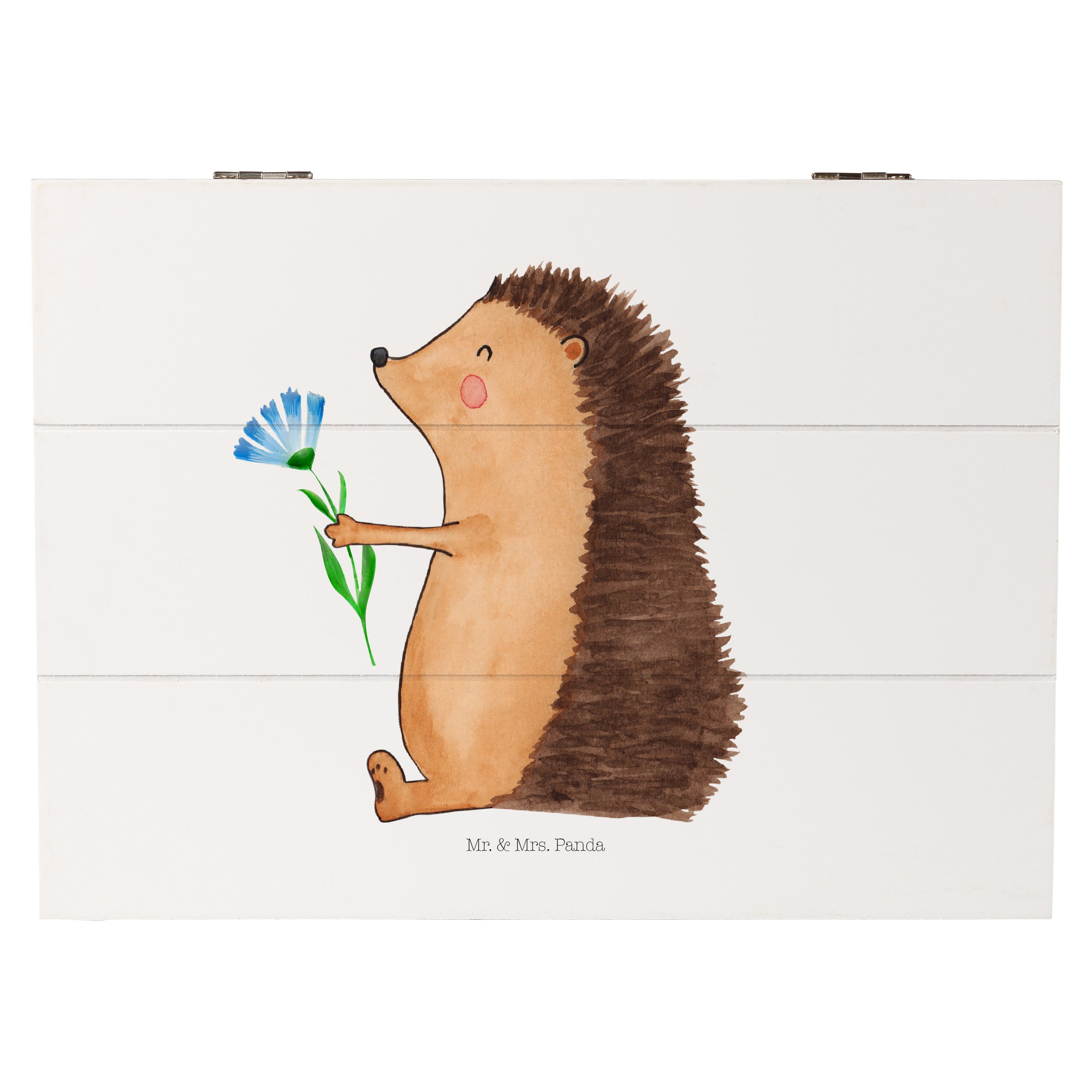 Holzkiste Igel mit Blume - 25 x 18 cm - mit Spruch - Weiß