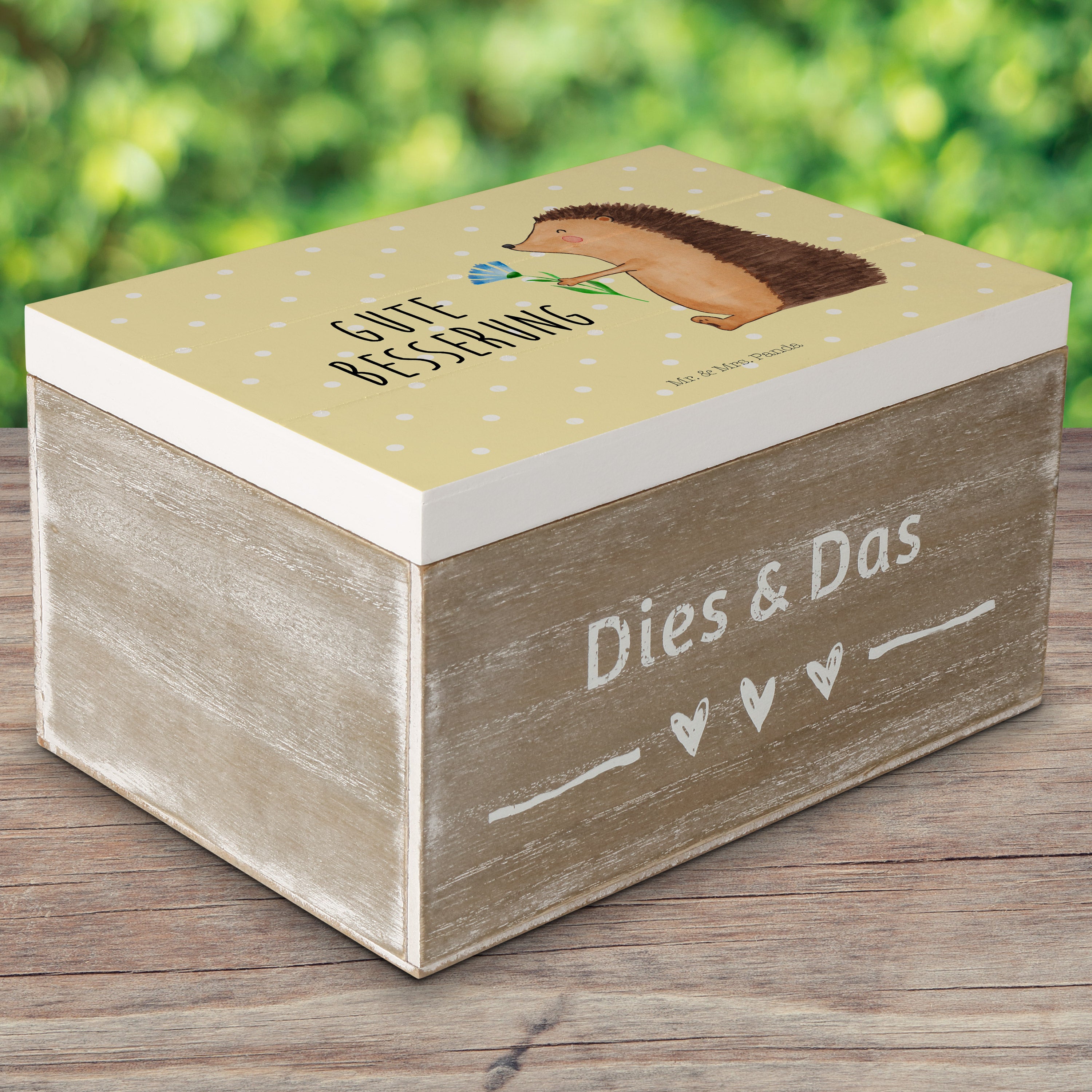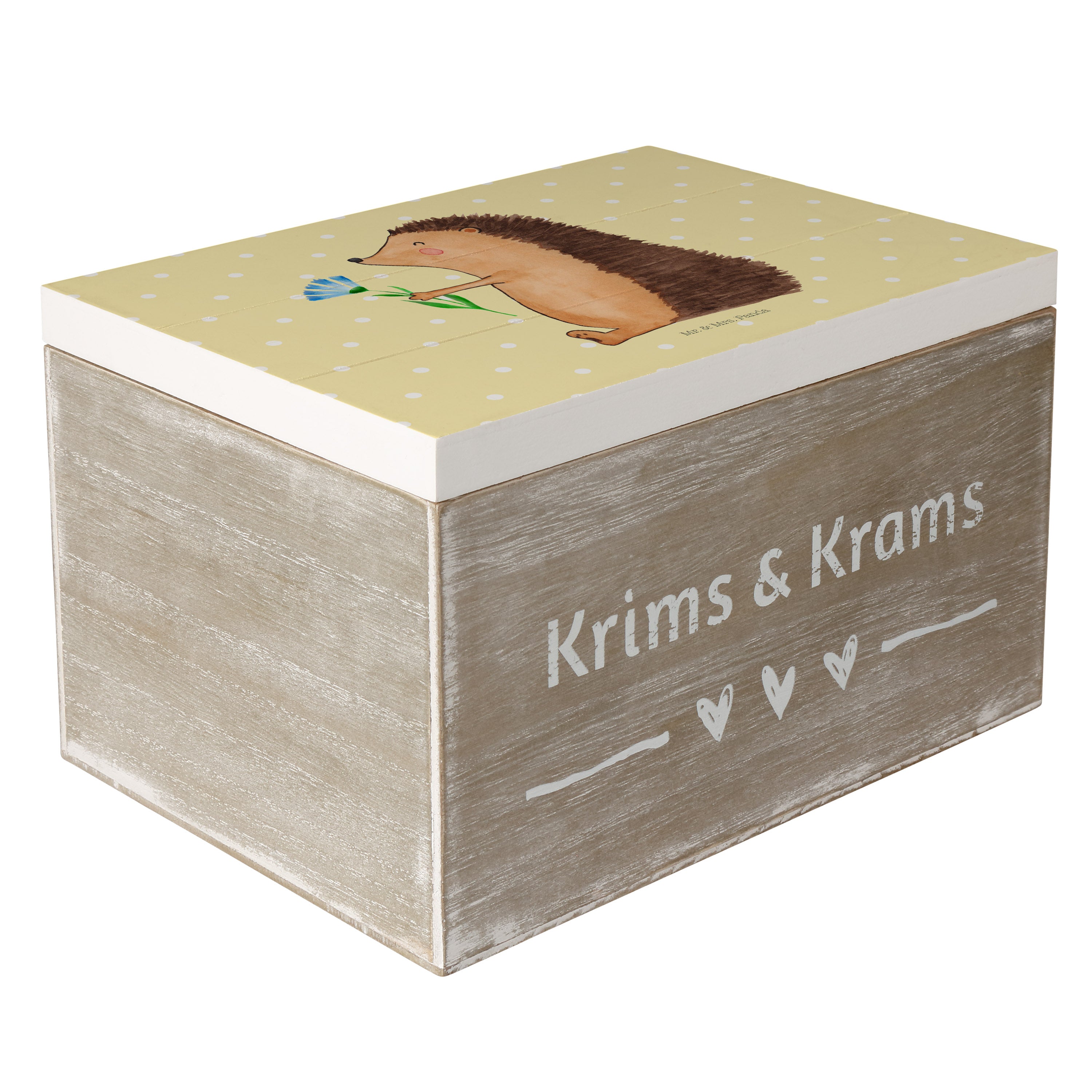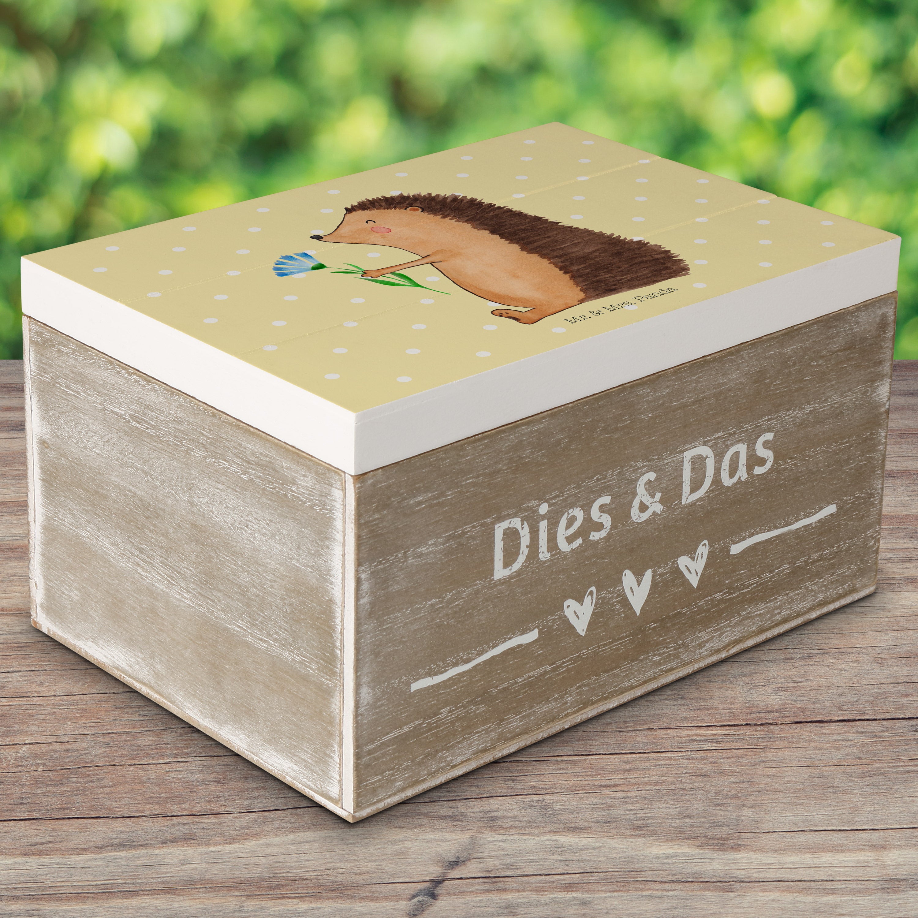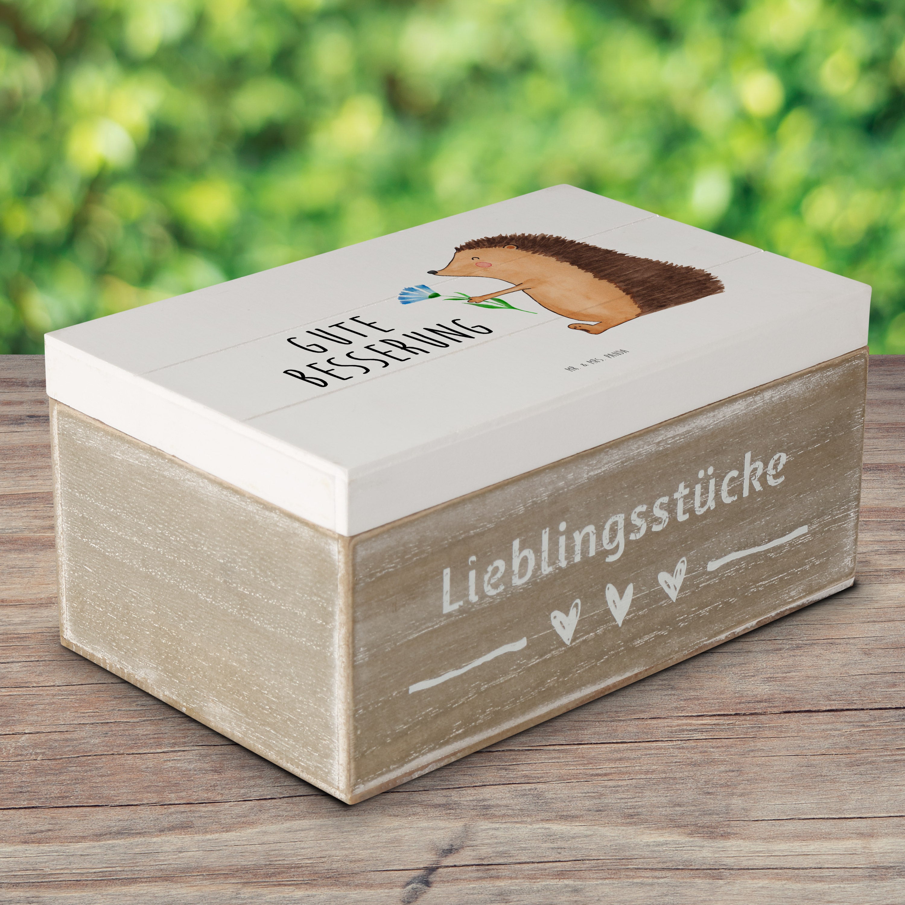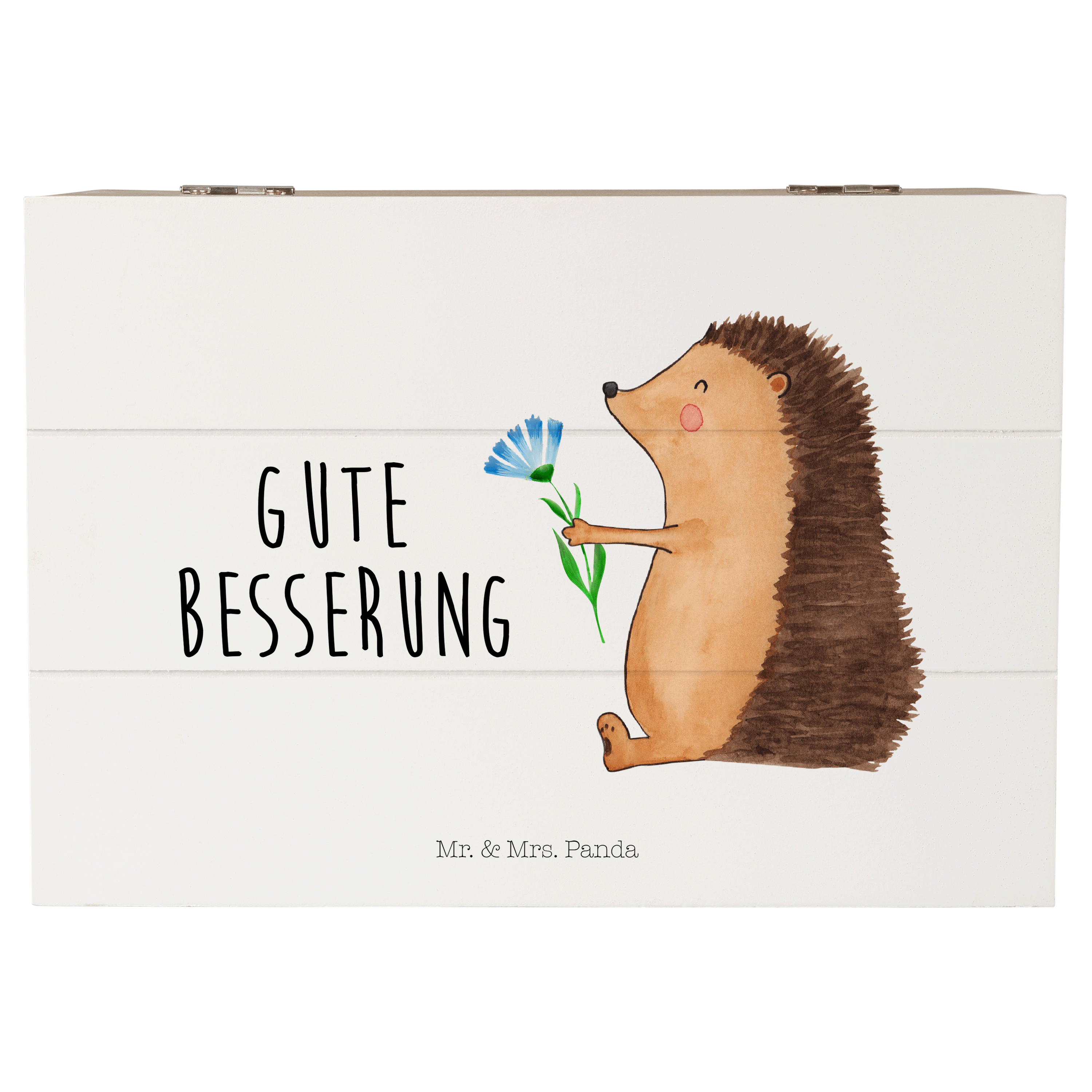 Holzkiste Igel mit Blume - 25 x 18 cm - mit Spruch - Weiß