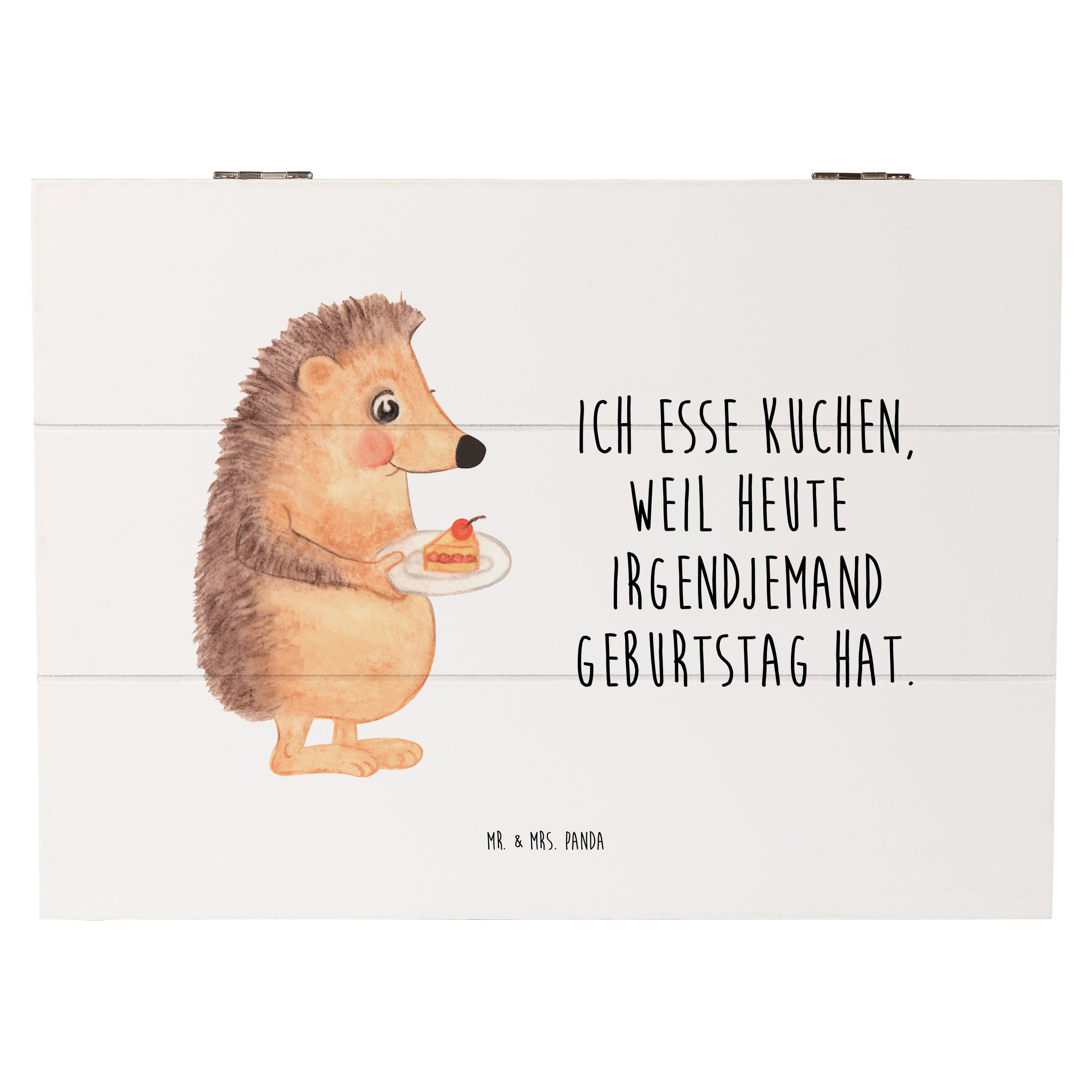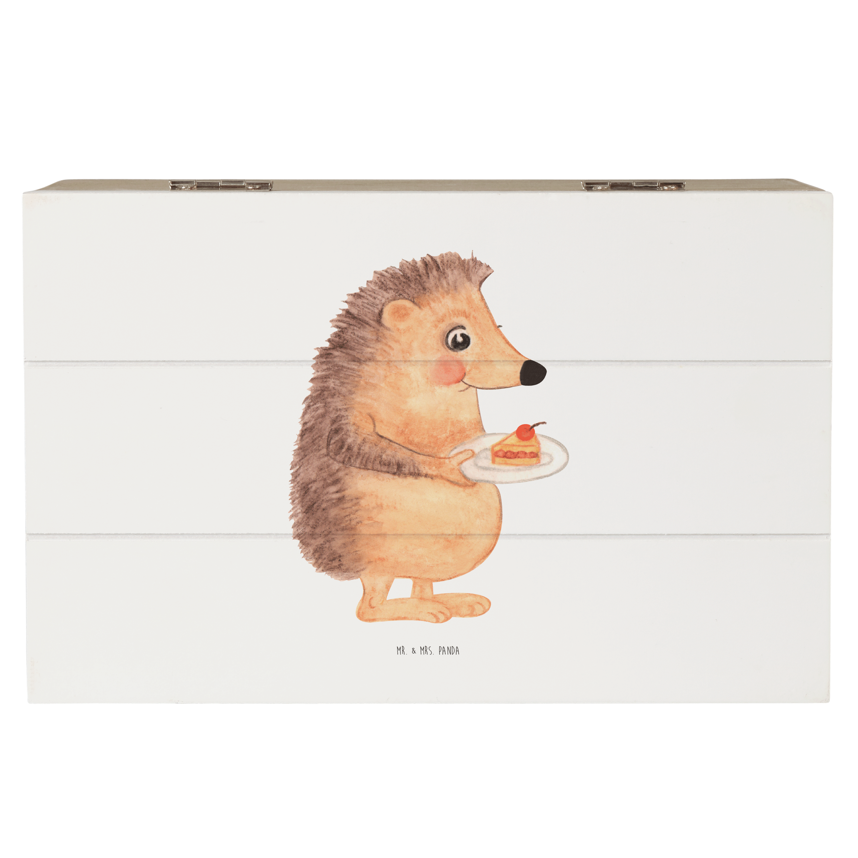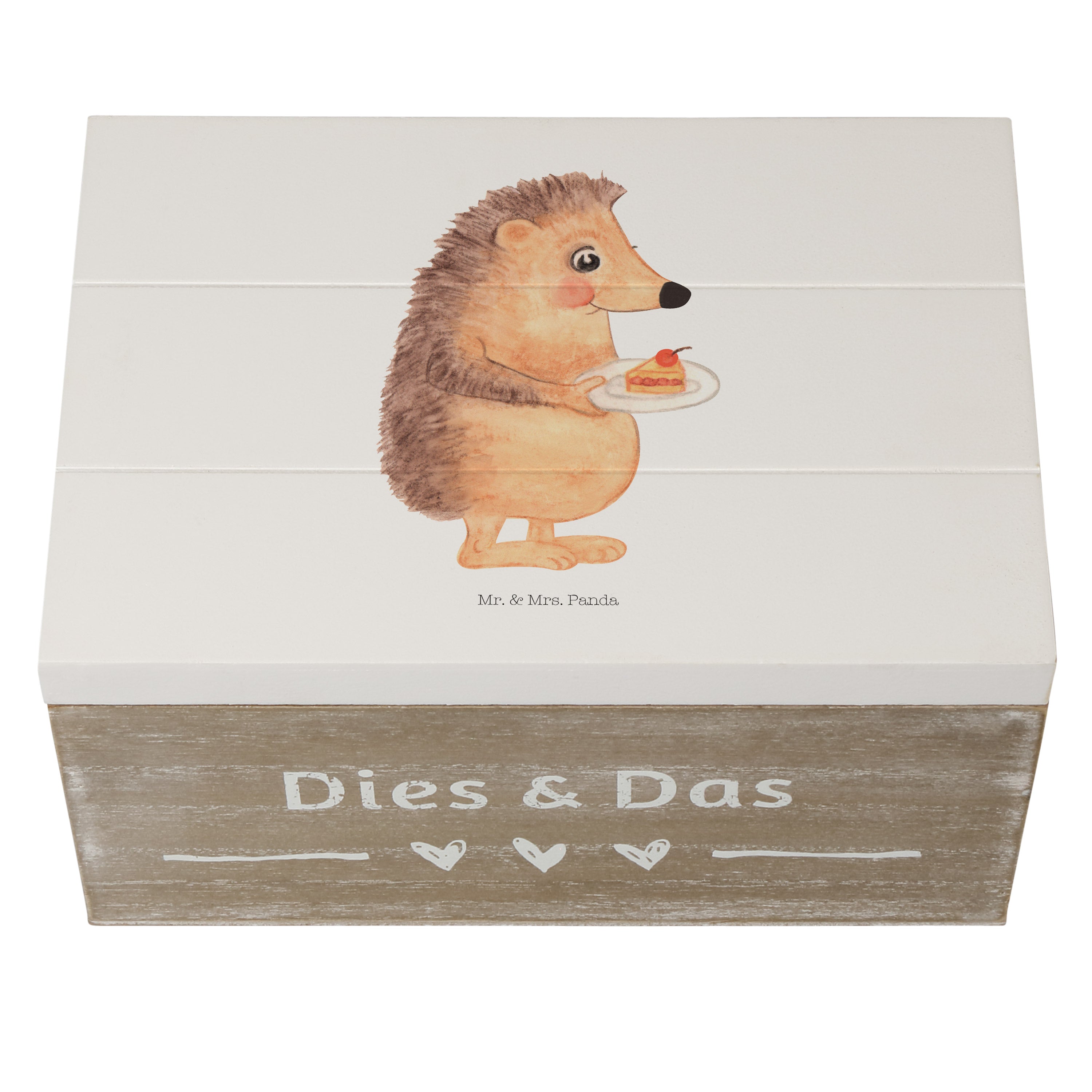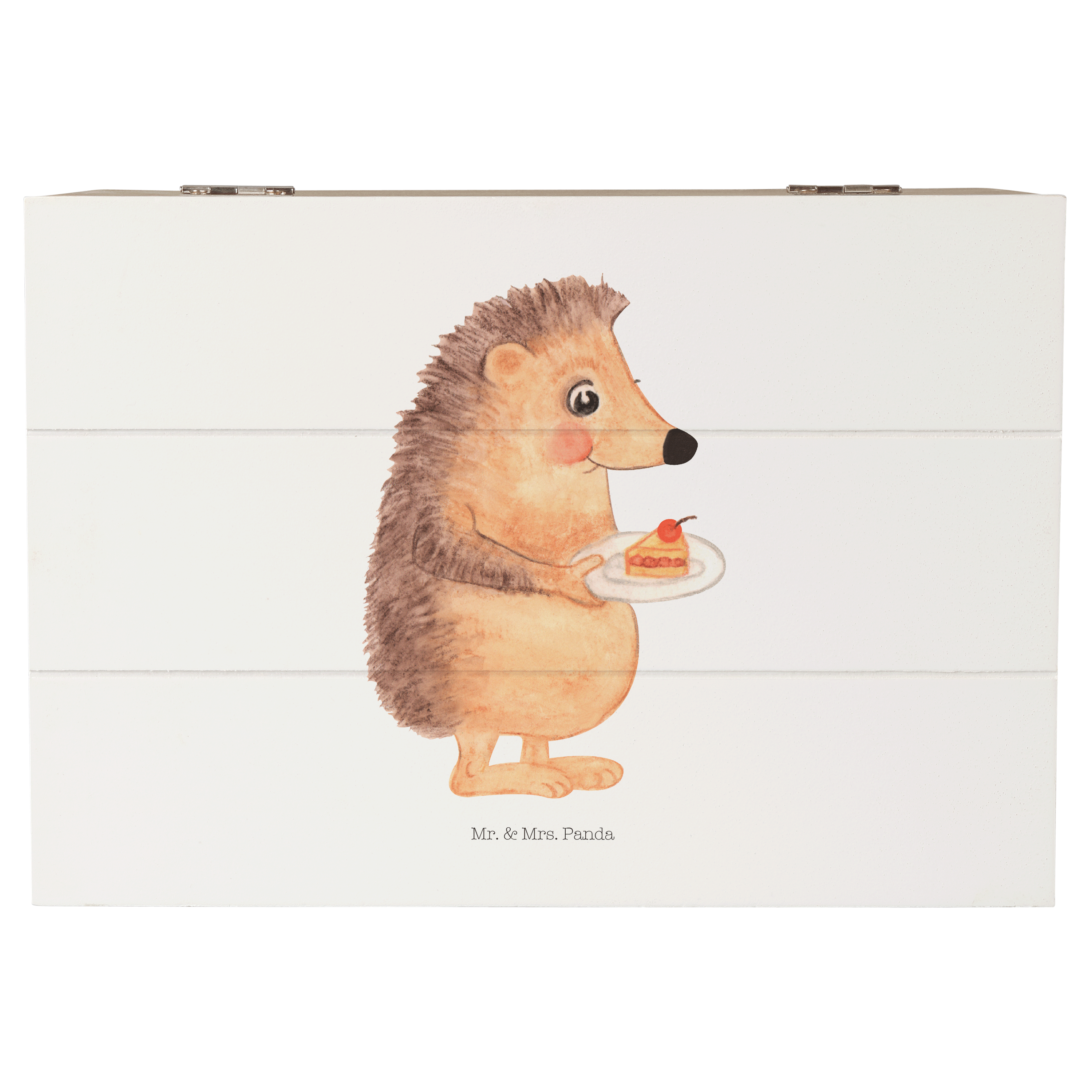Holzkiste Igel mit Kuchenstück - 25 x 18 cm - mit Spruch - Weiß