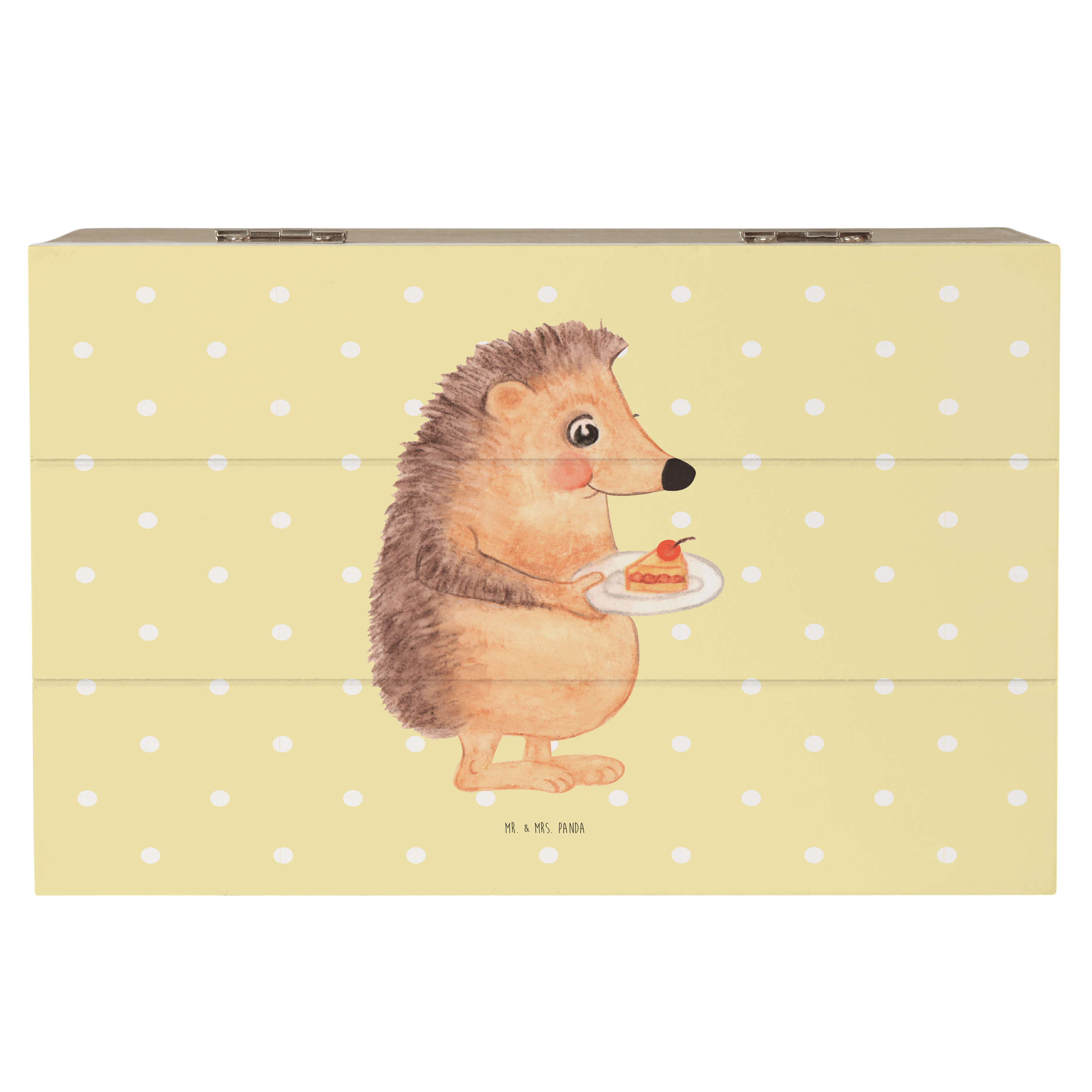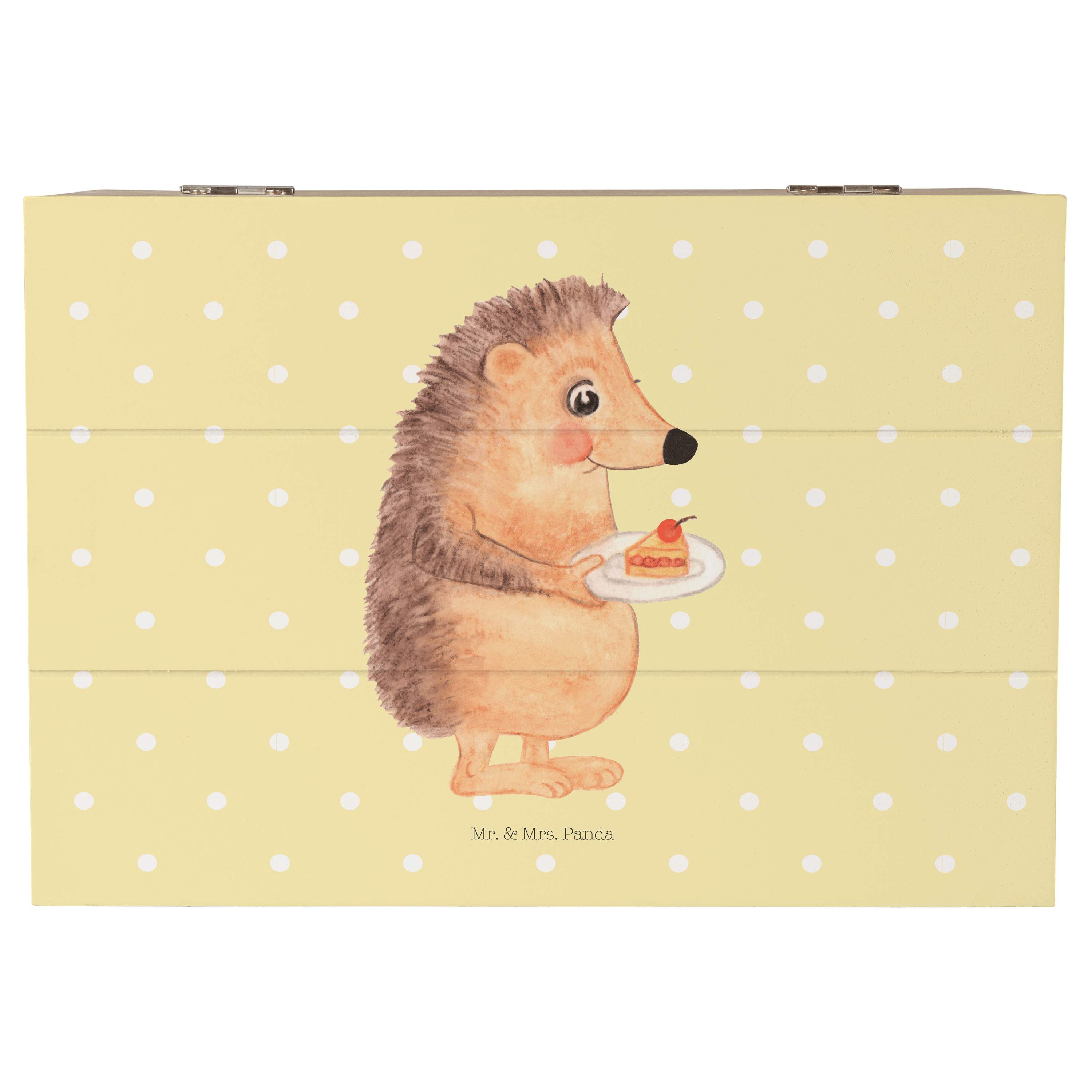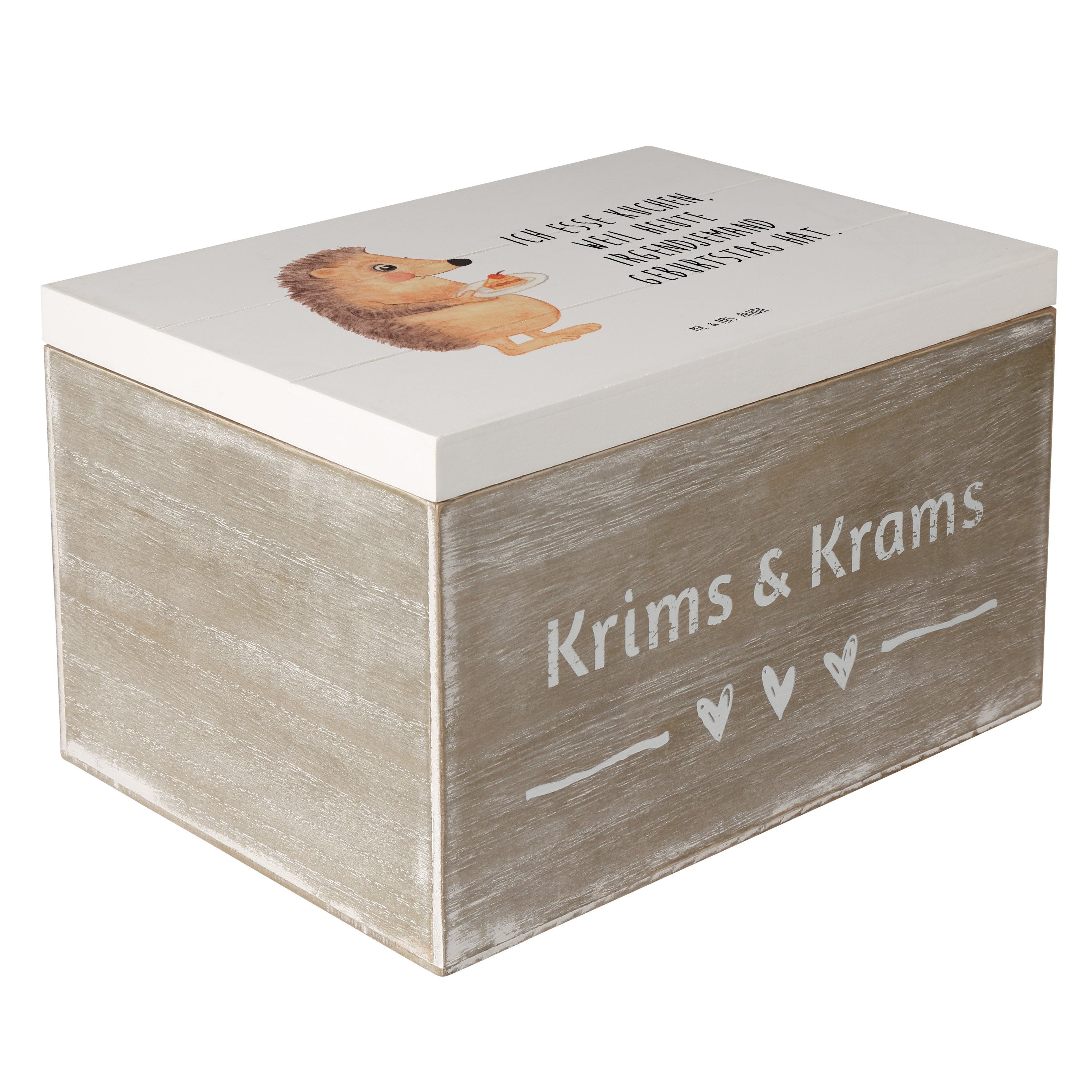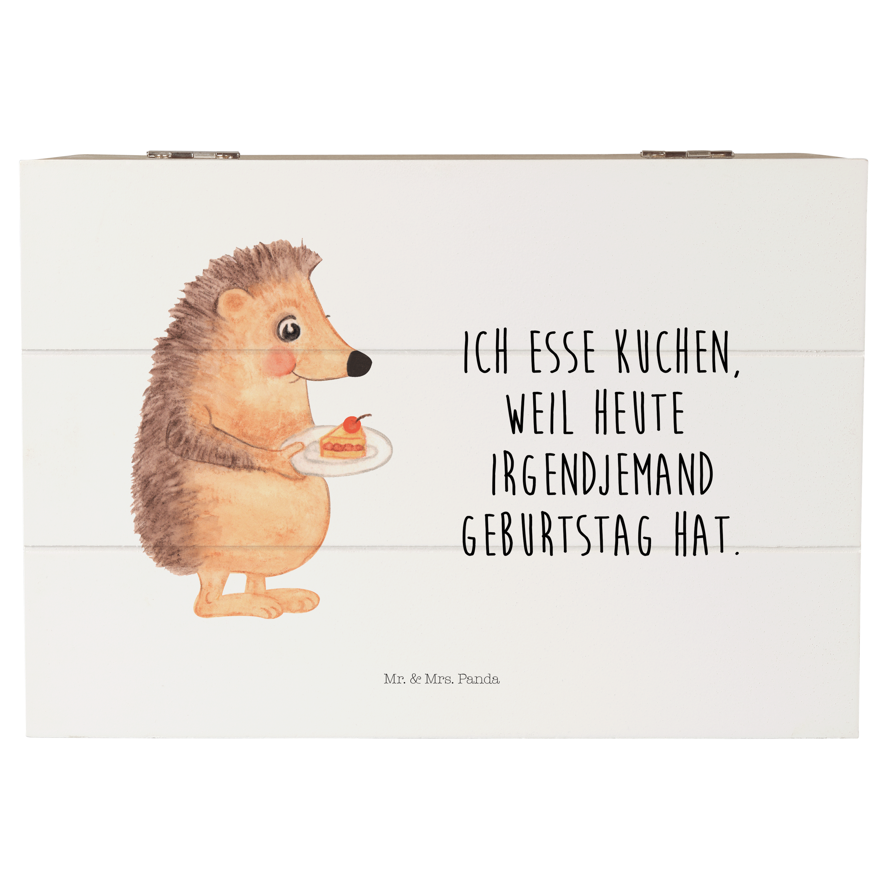 Holzkiste Igel mit Kuchenstück - 25 x 18 cm - mit Spruch - Weiß