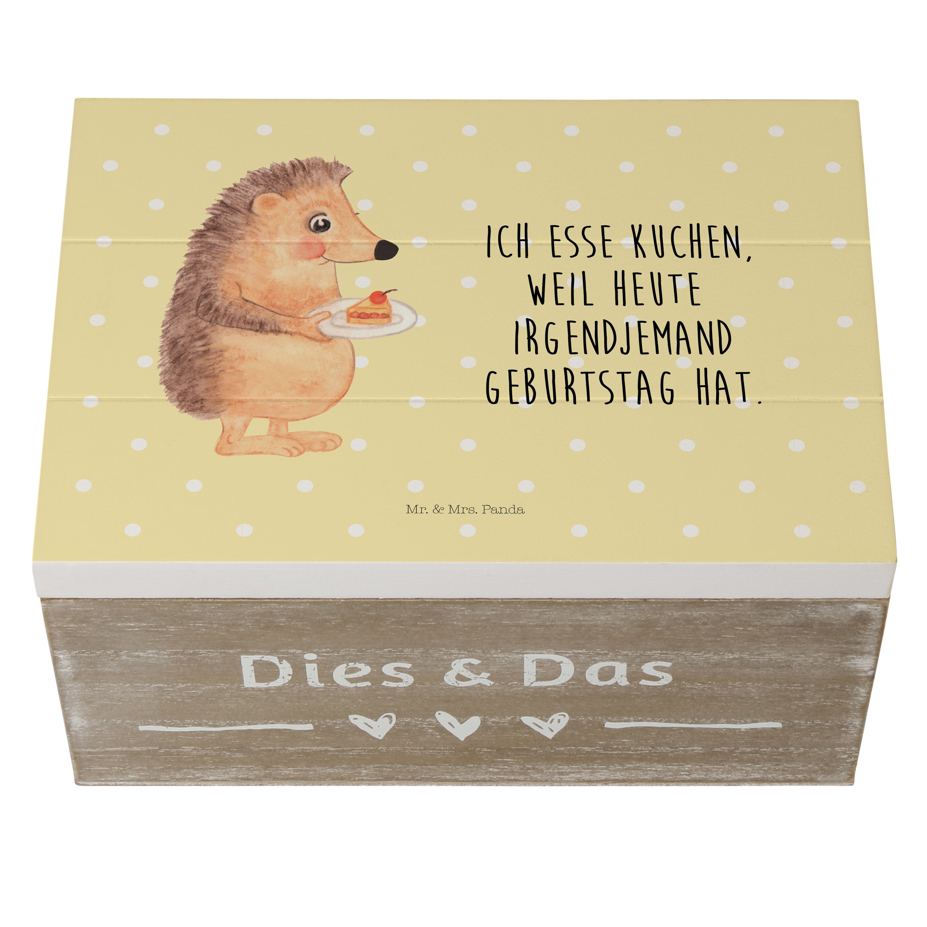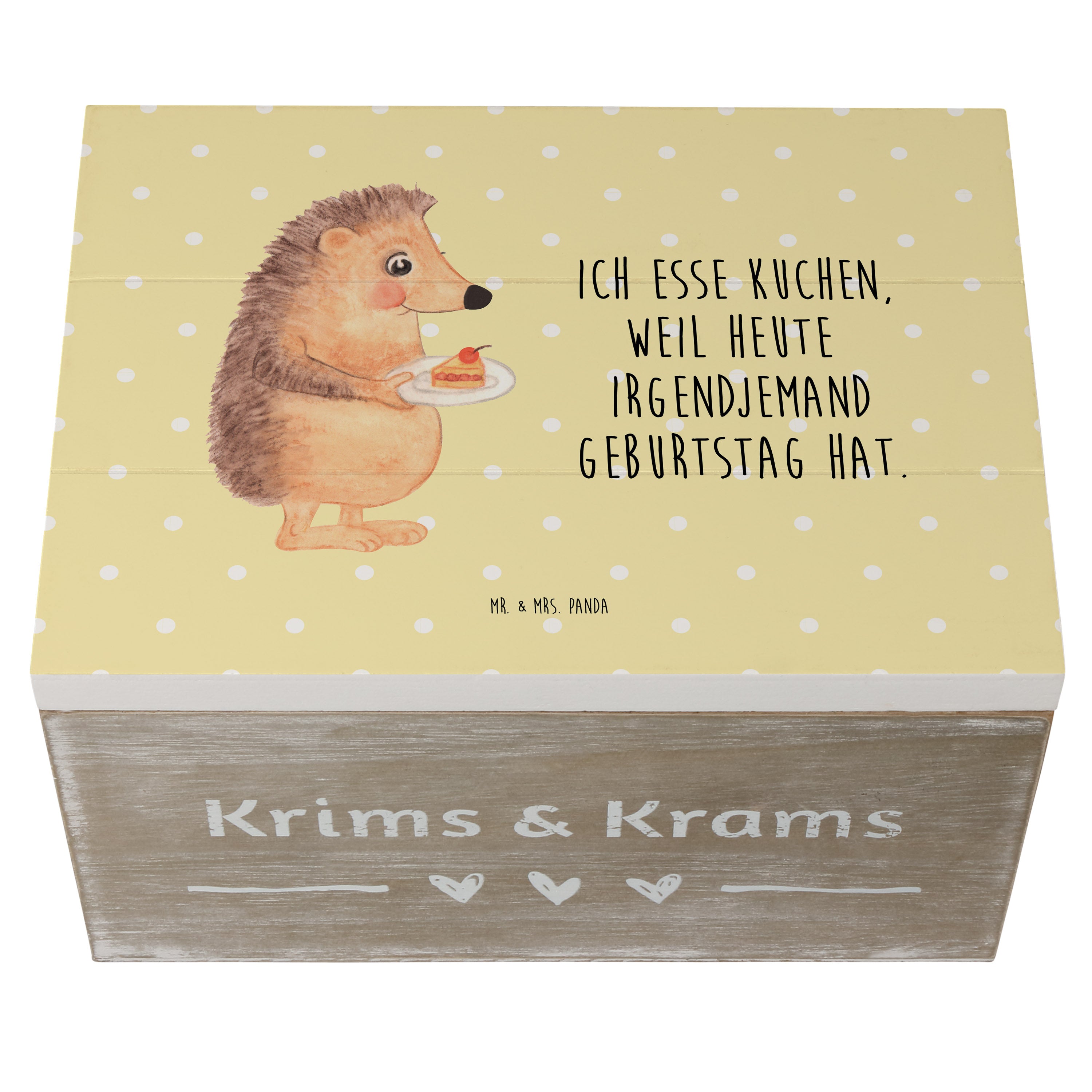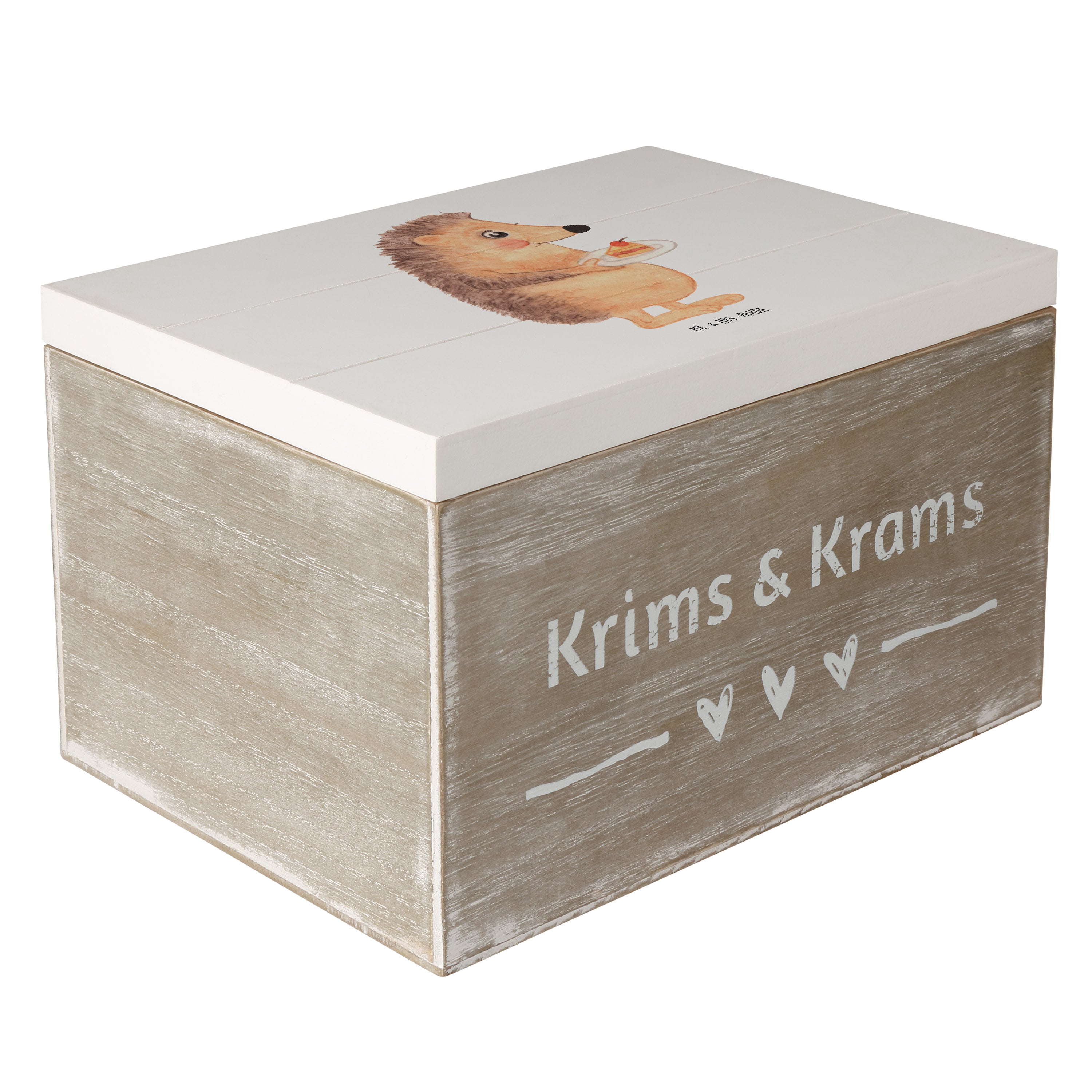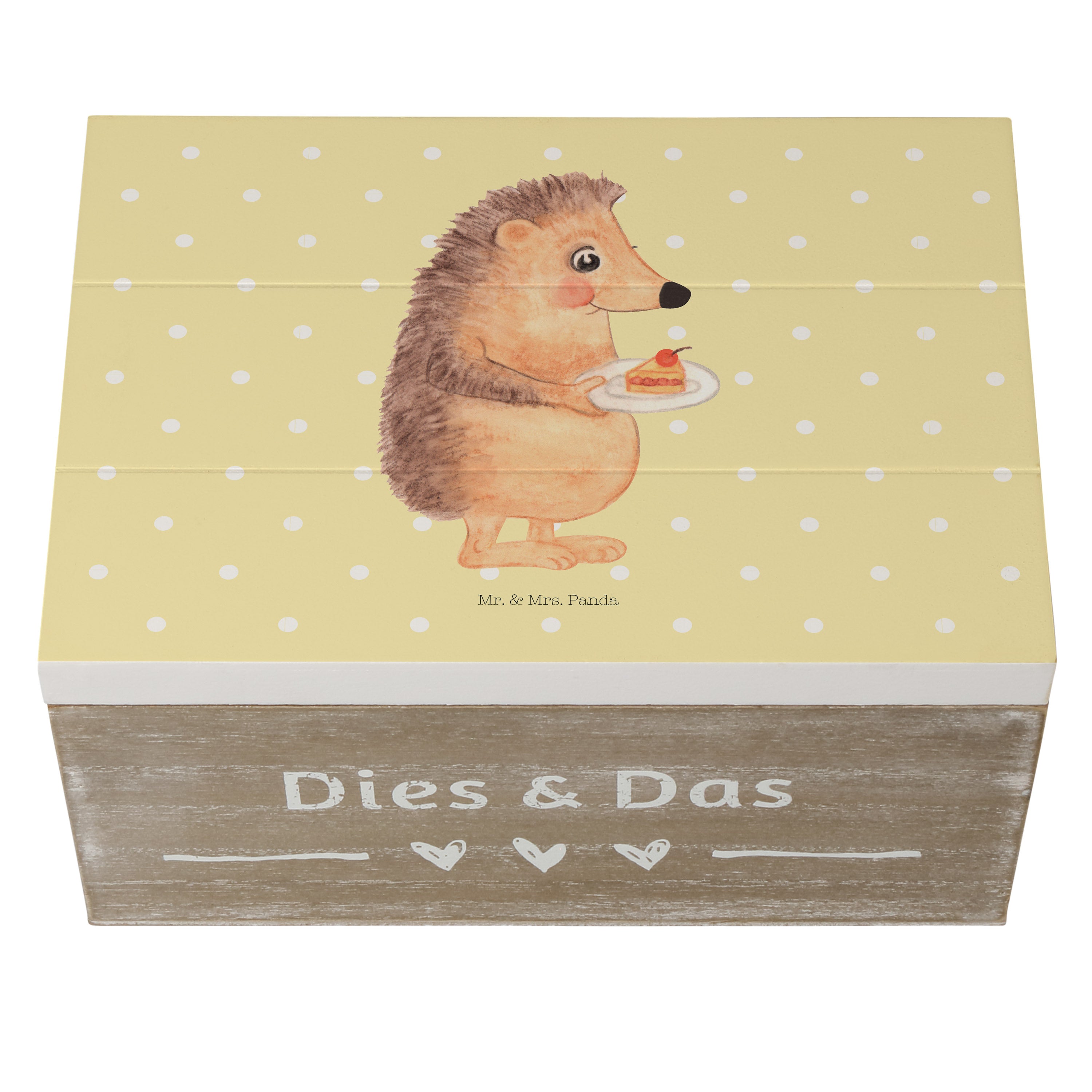 Holzkiste Igel mit Kuchenstück - 25 x 18 cm - mit Spruch - Weiß