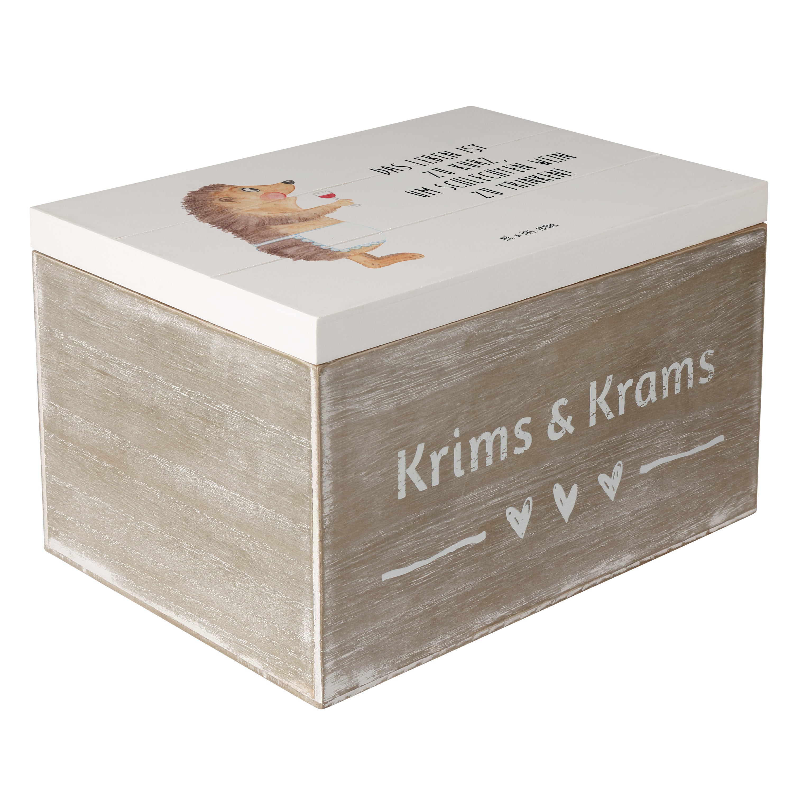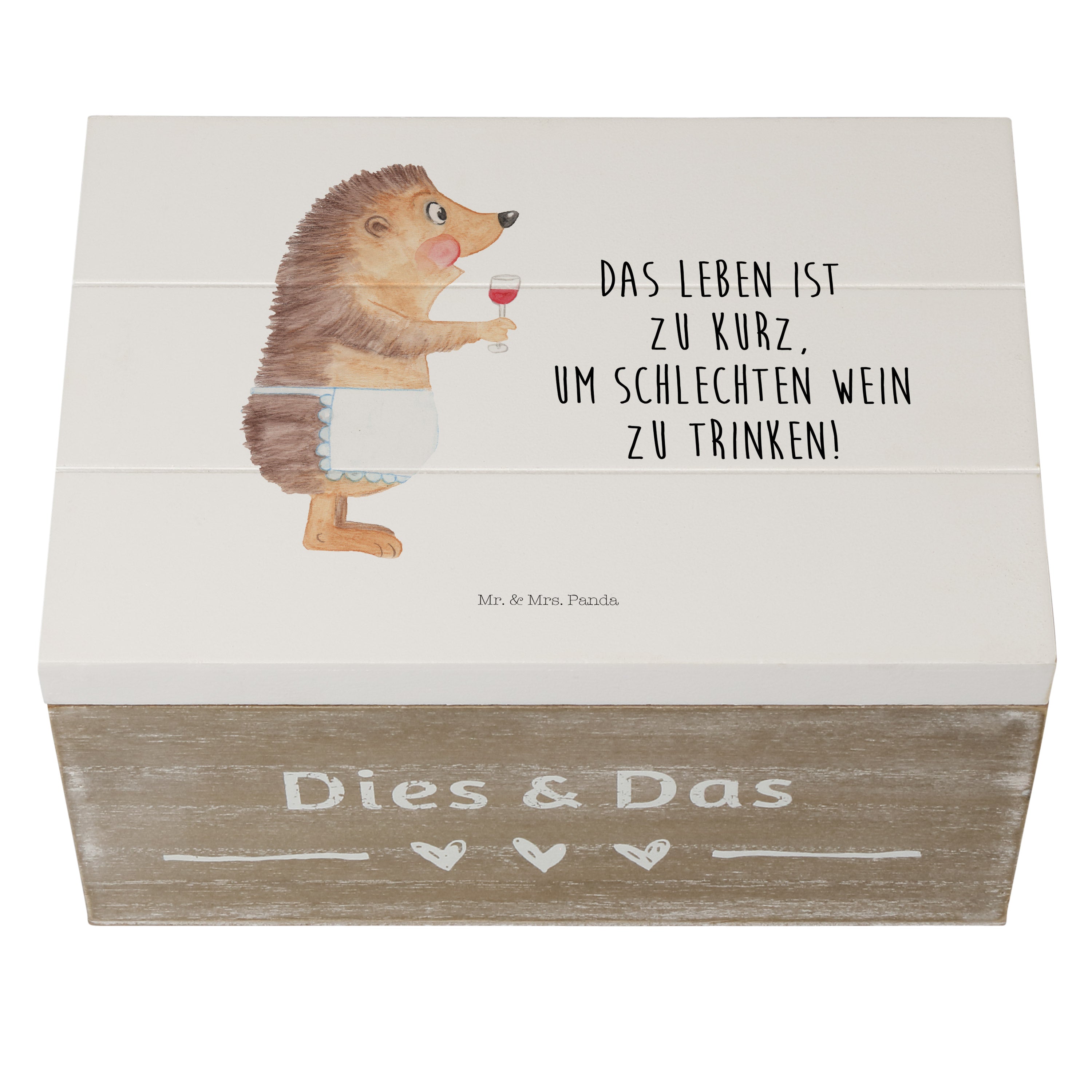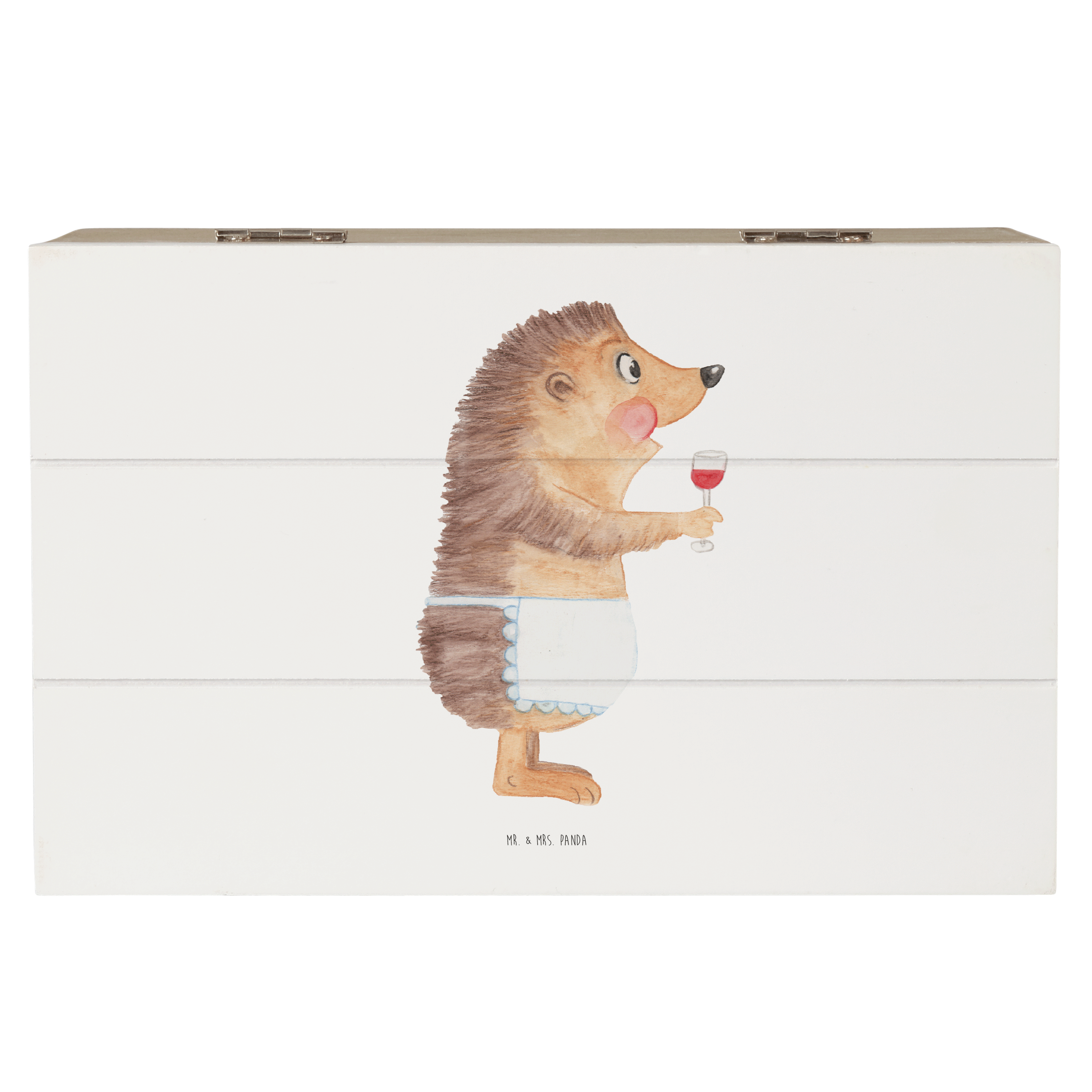 Holzkiste Igel mit Wein - 25 x 18 cm - mit Spruch - Weiß