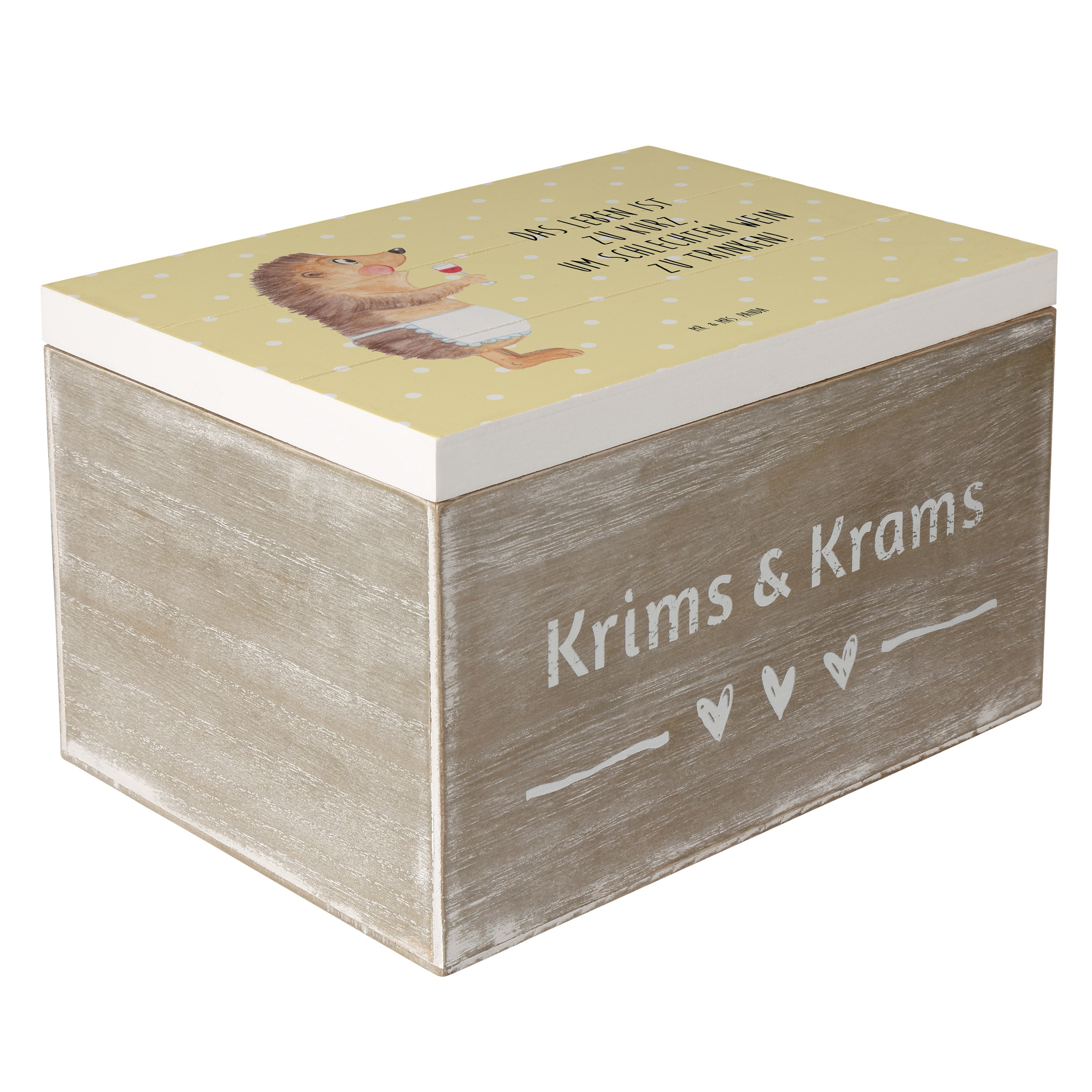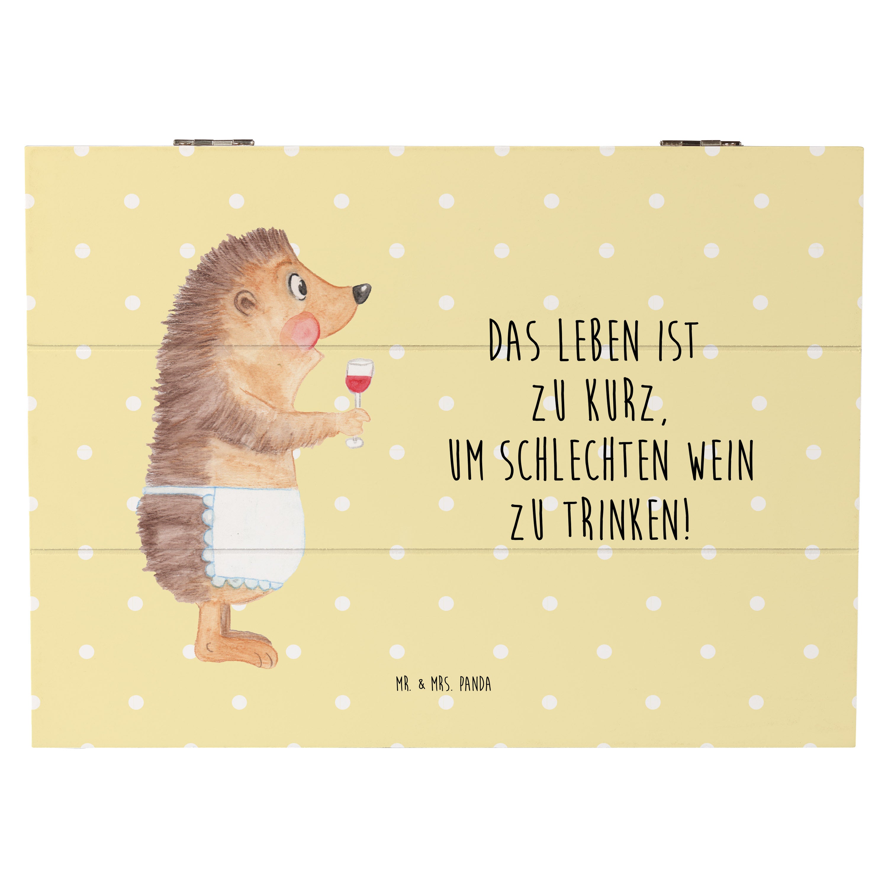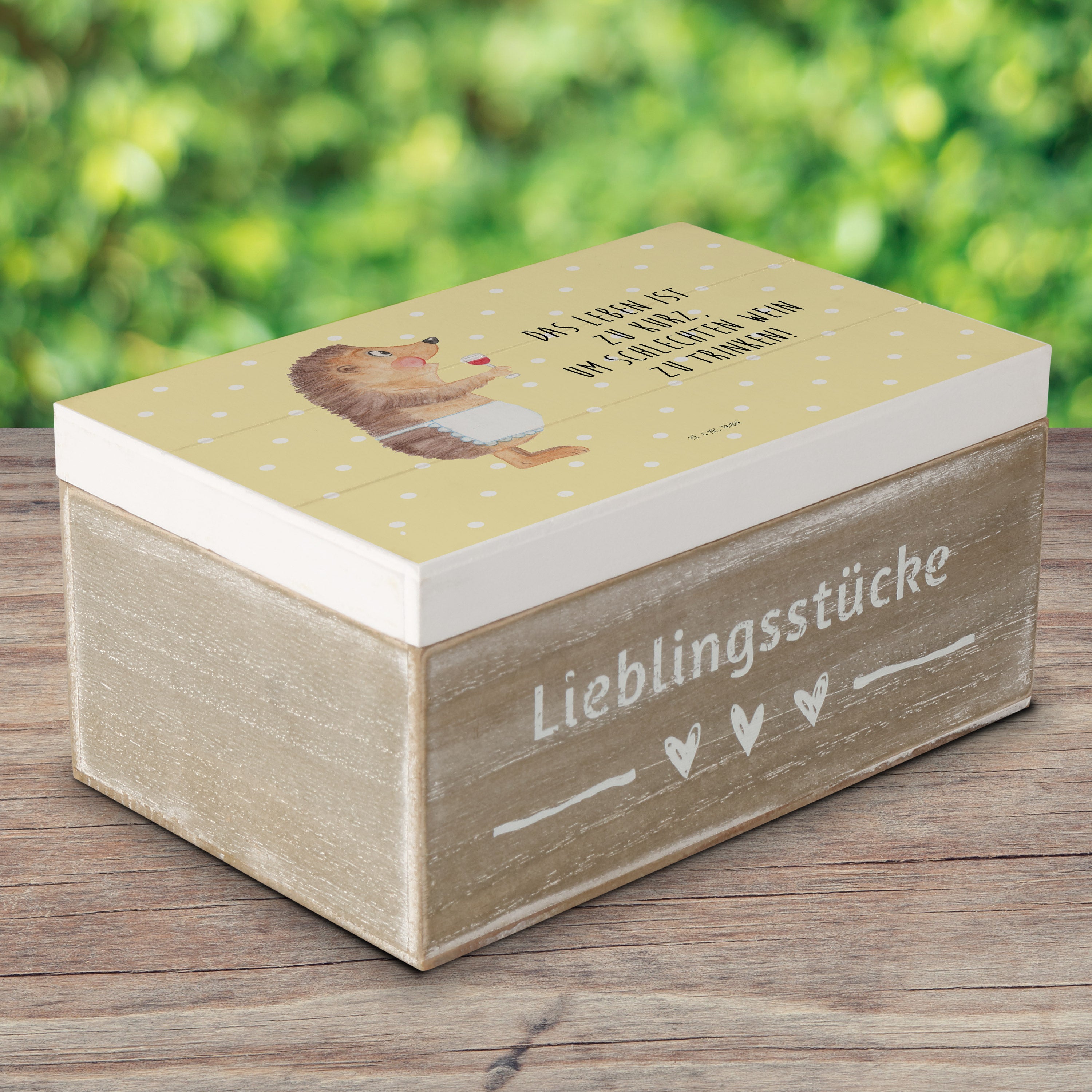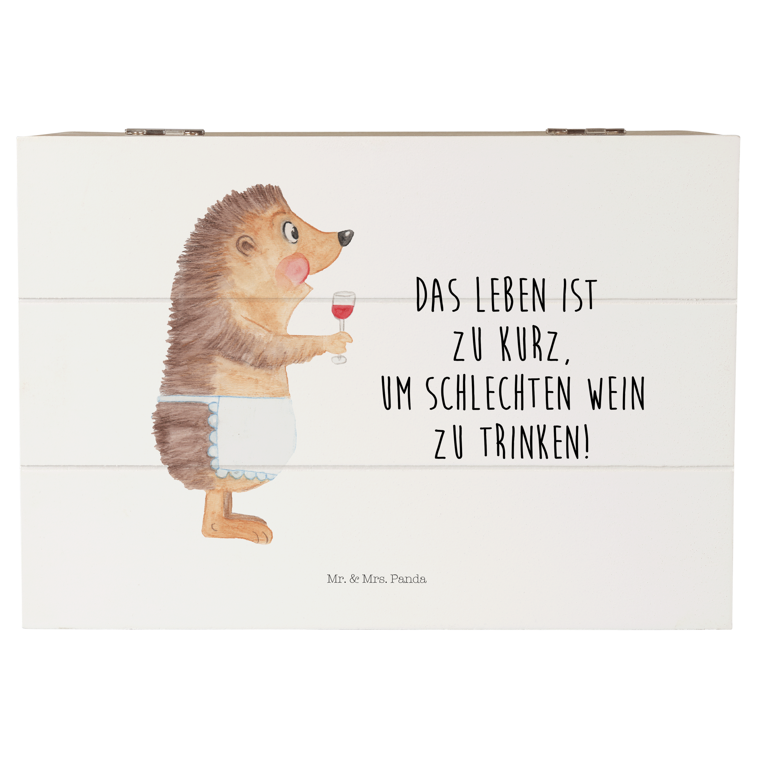 Holzkiste Igel mit Wein - 25 x 18 cm - mit Spruch - Weiß