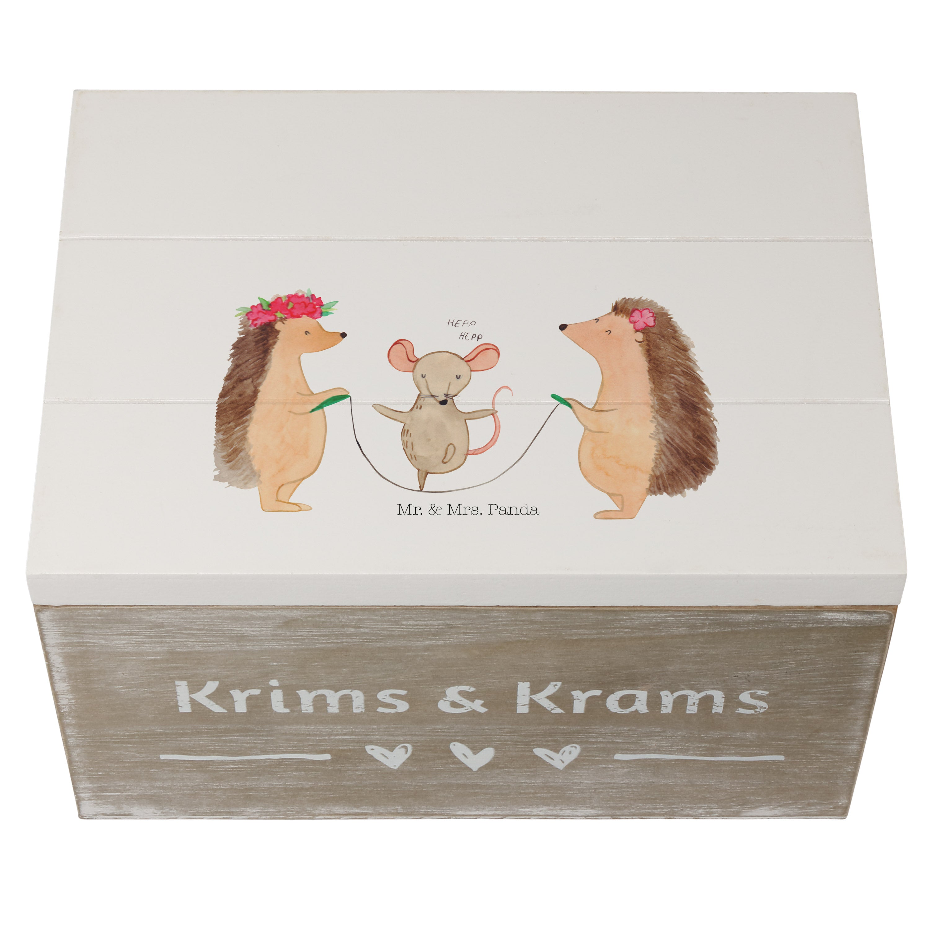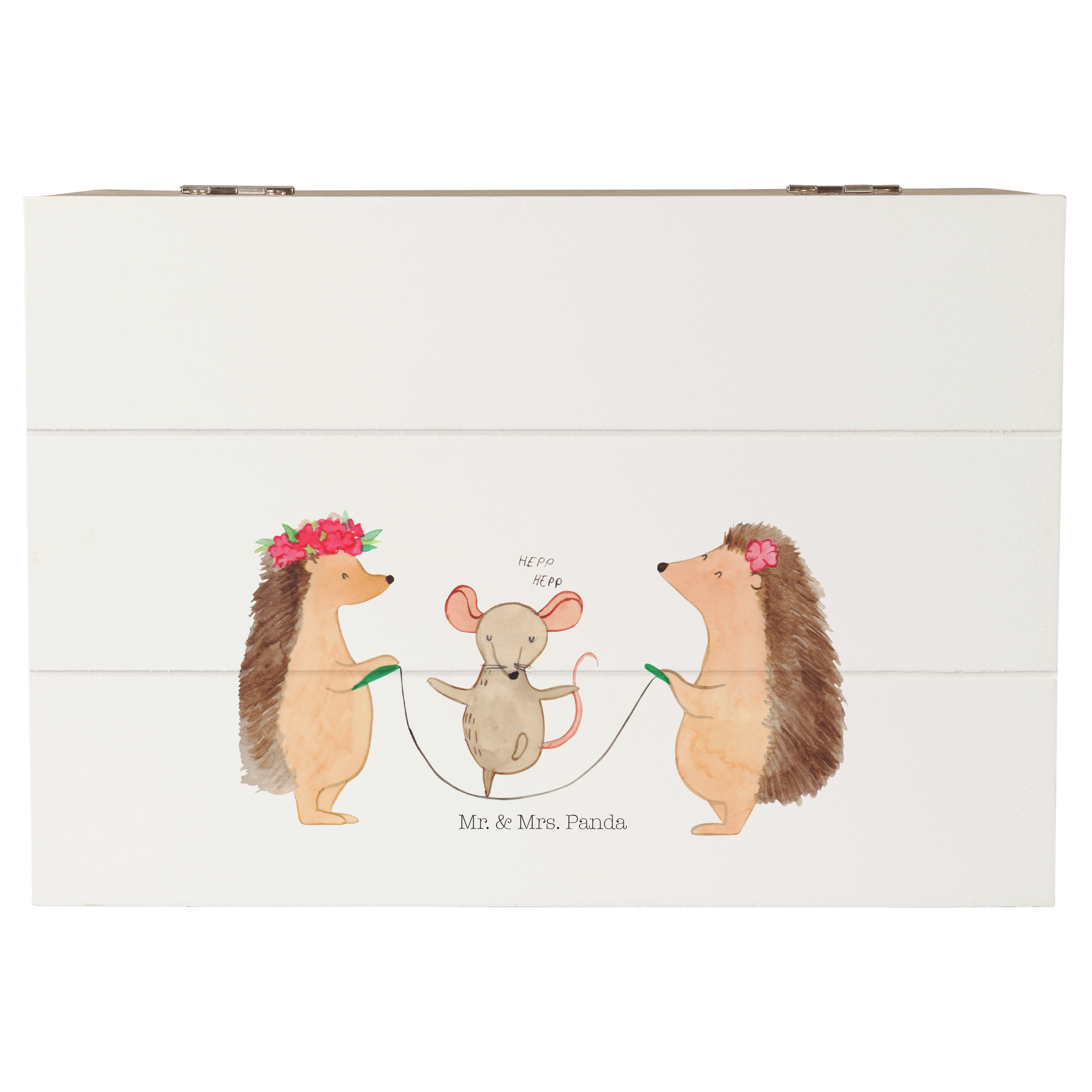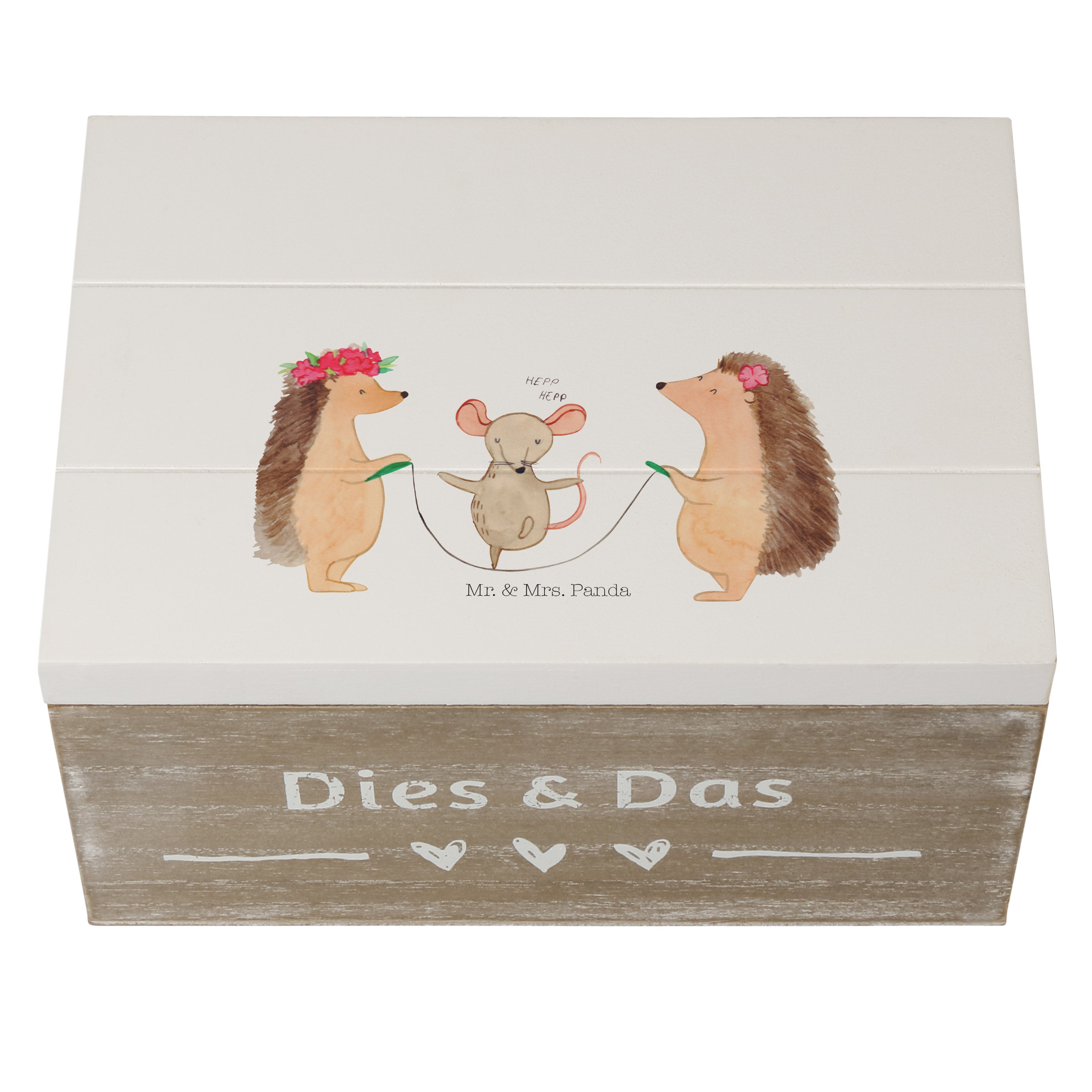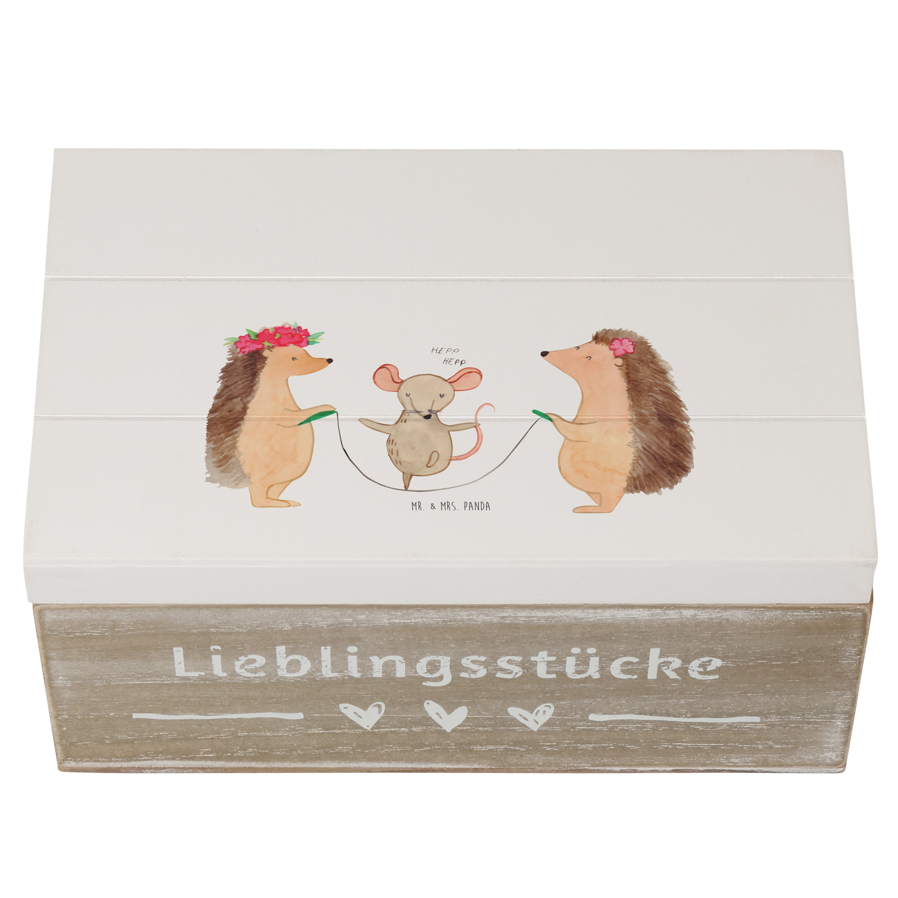 Holzkiste Igel Seilhüpfen - 25 x 18 cm - mit Spruch - Weiß