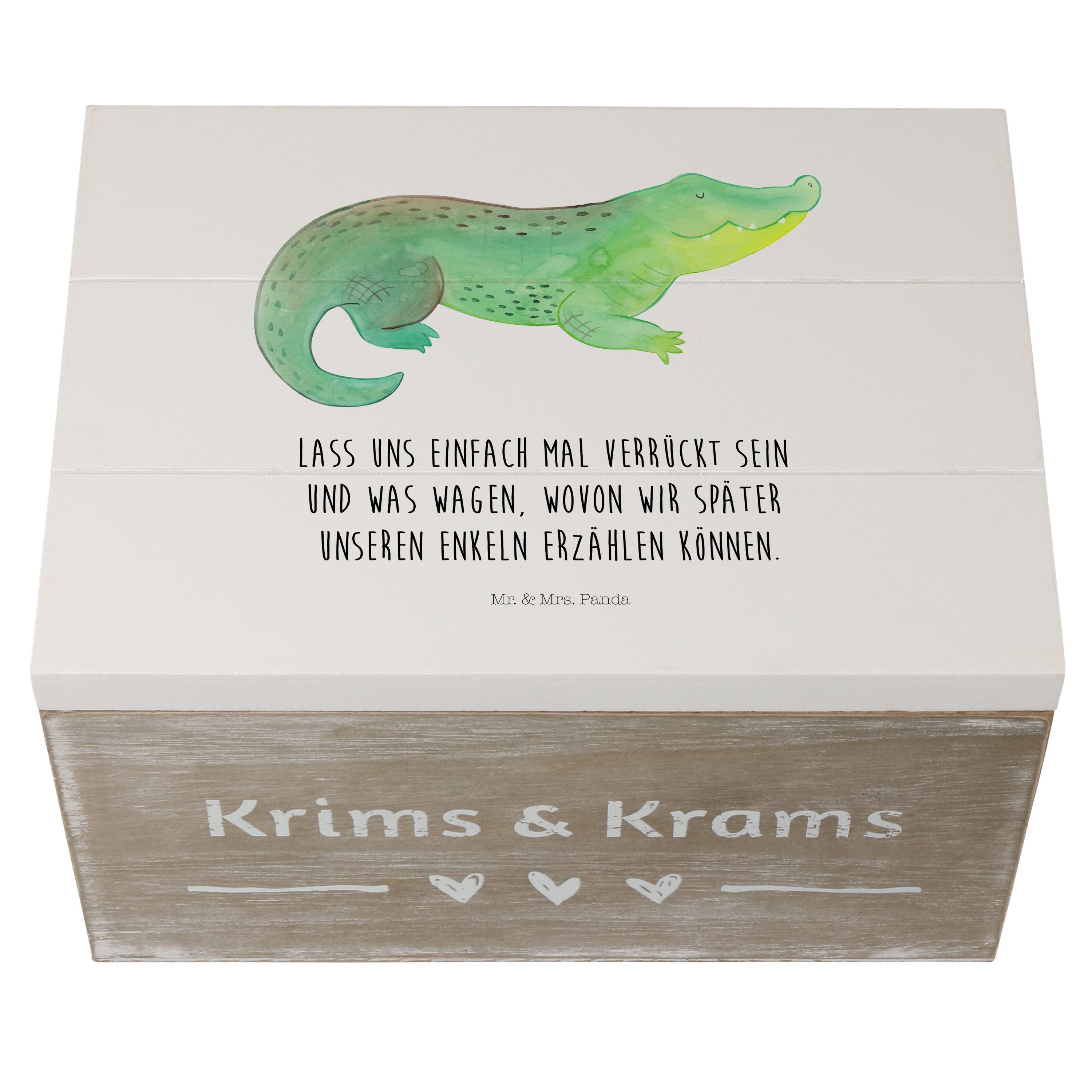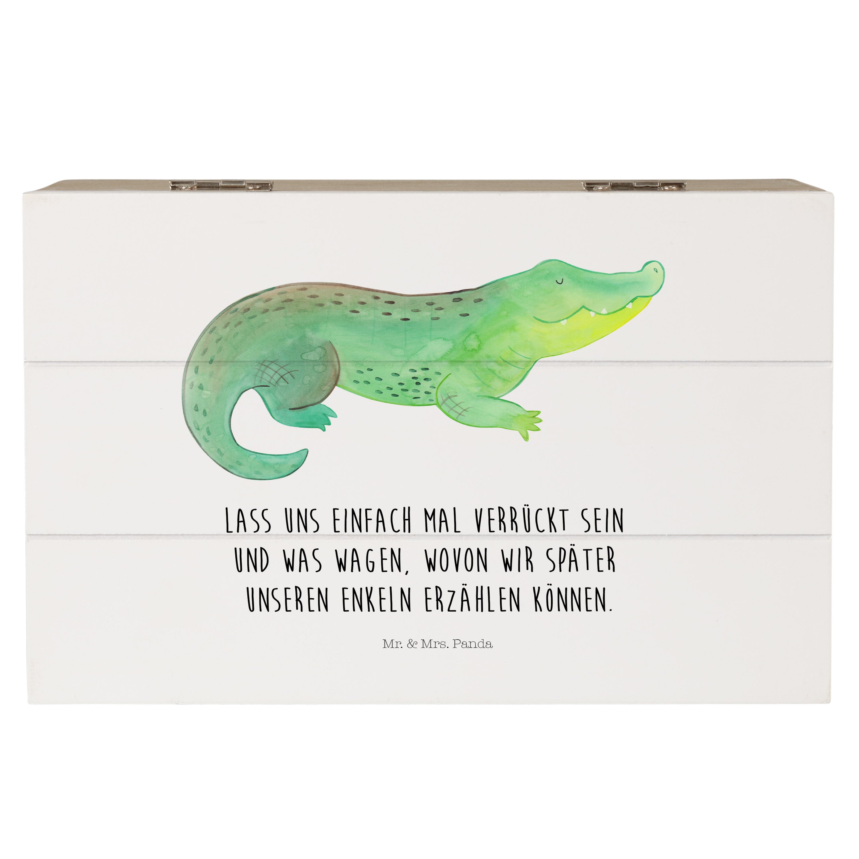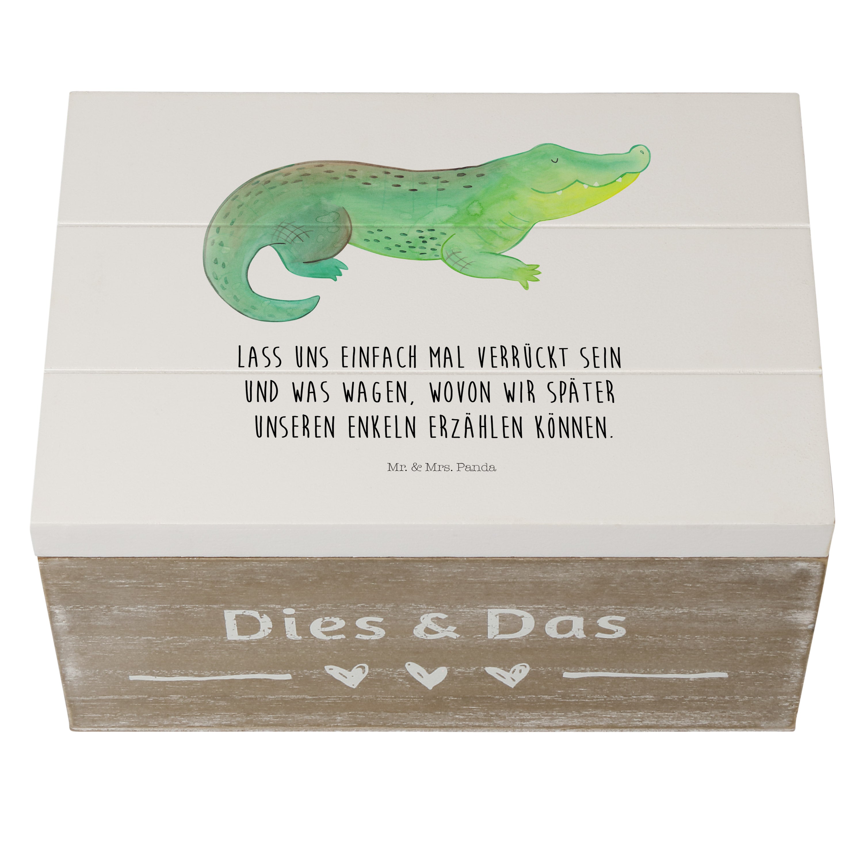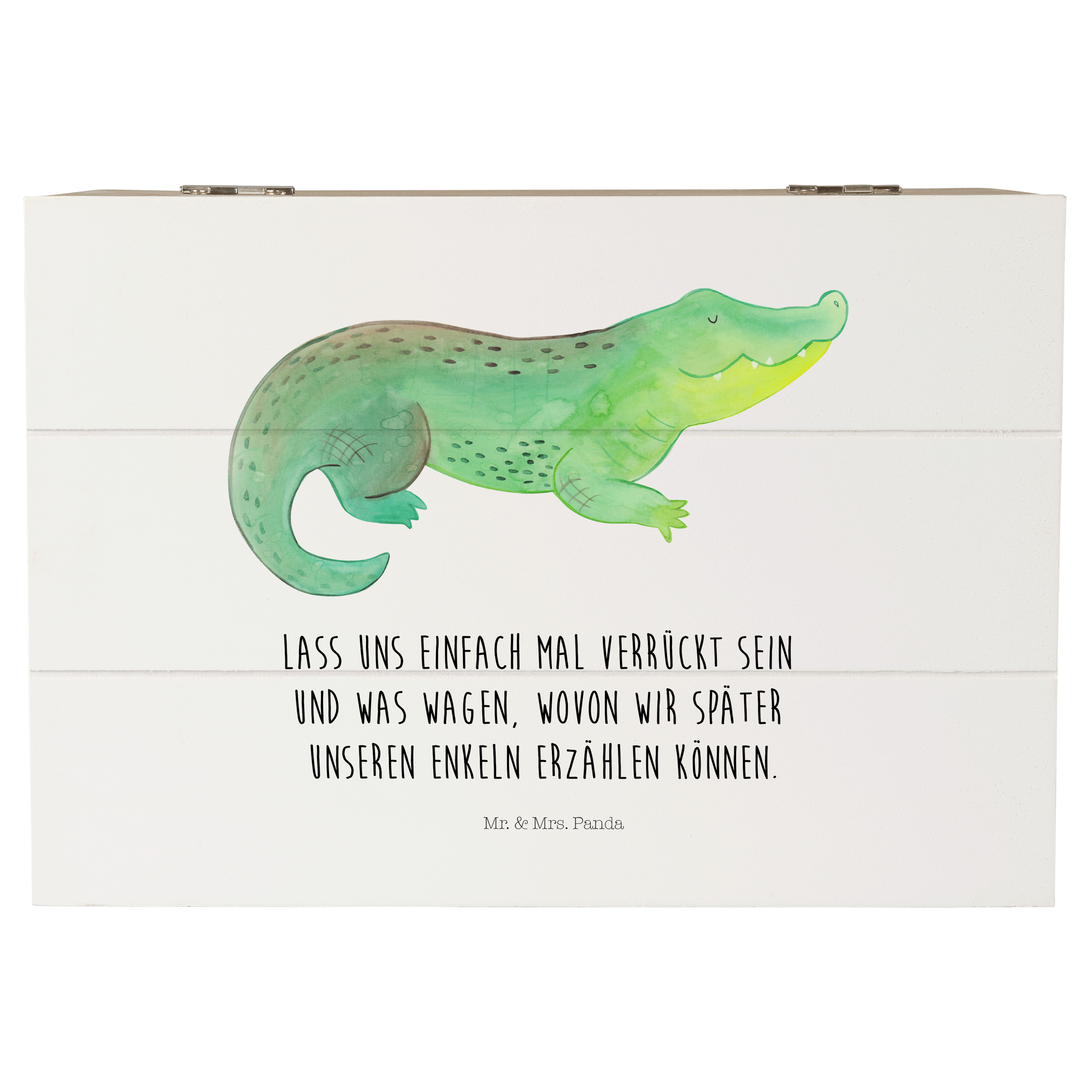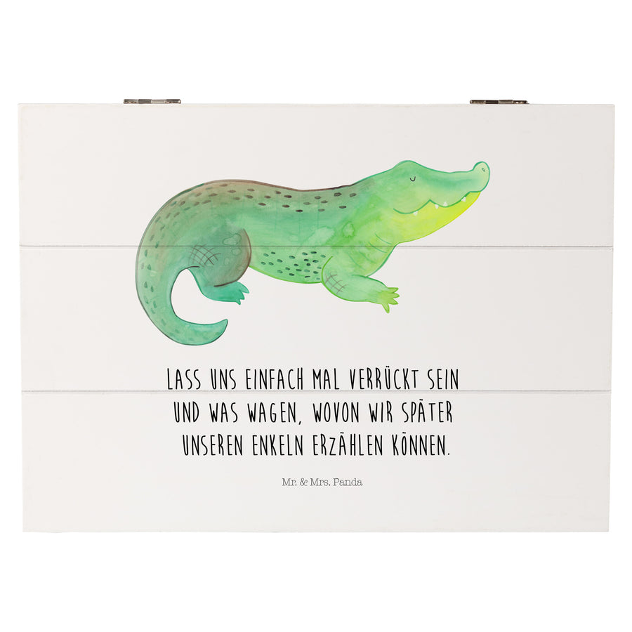 Holzkiste Krokodil - 25 x 18 cm - mit Spruch - Weiß