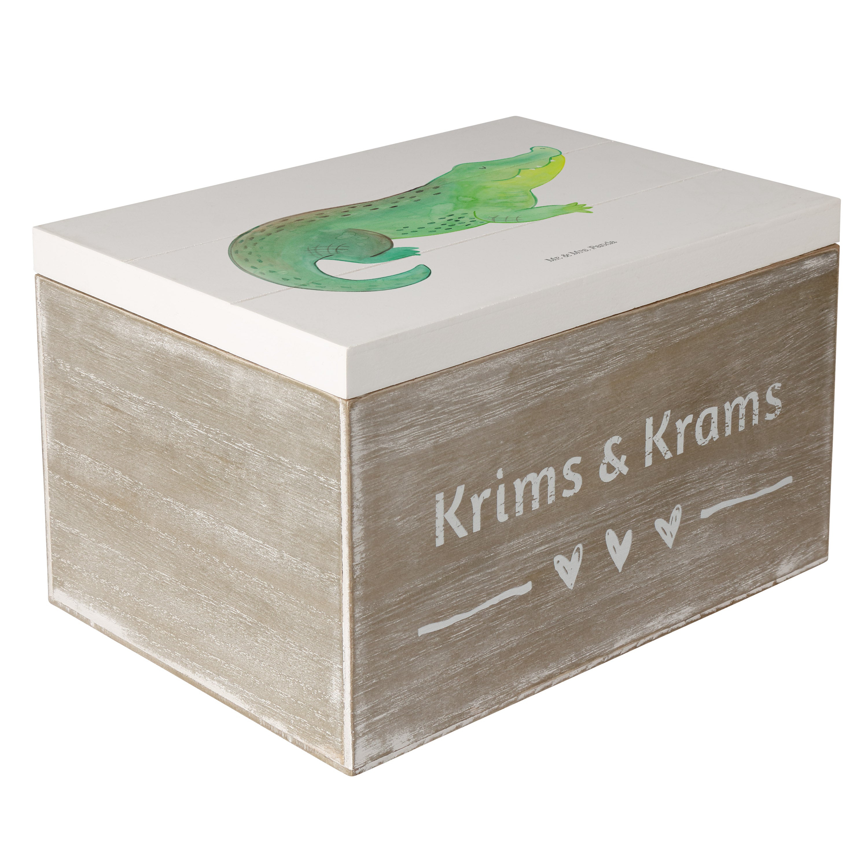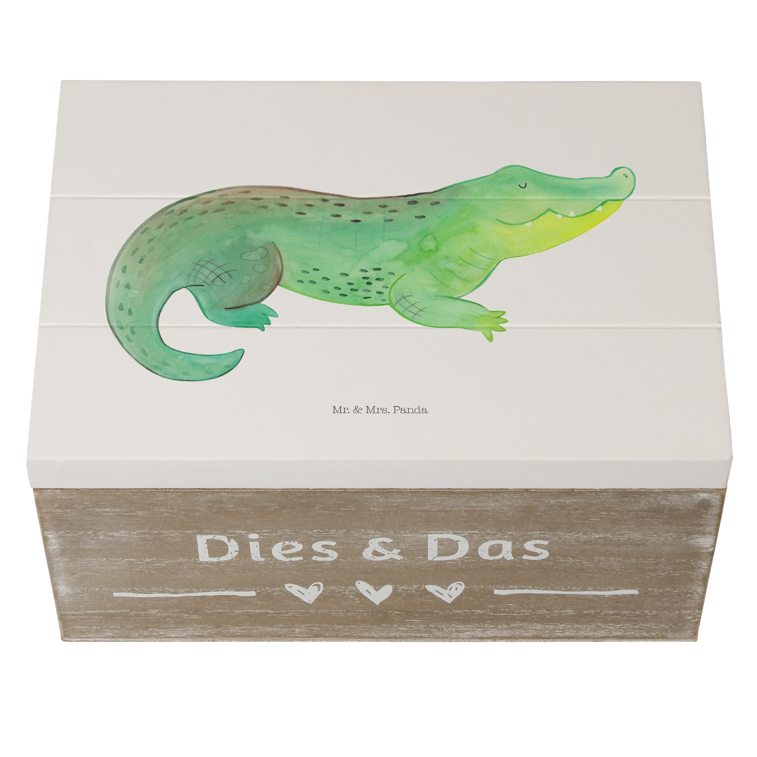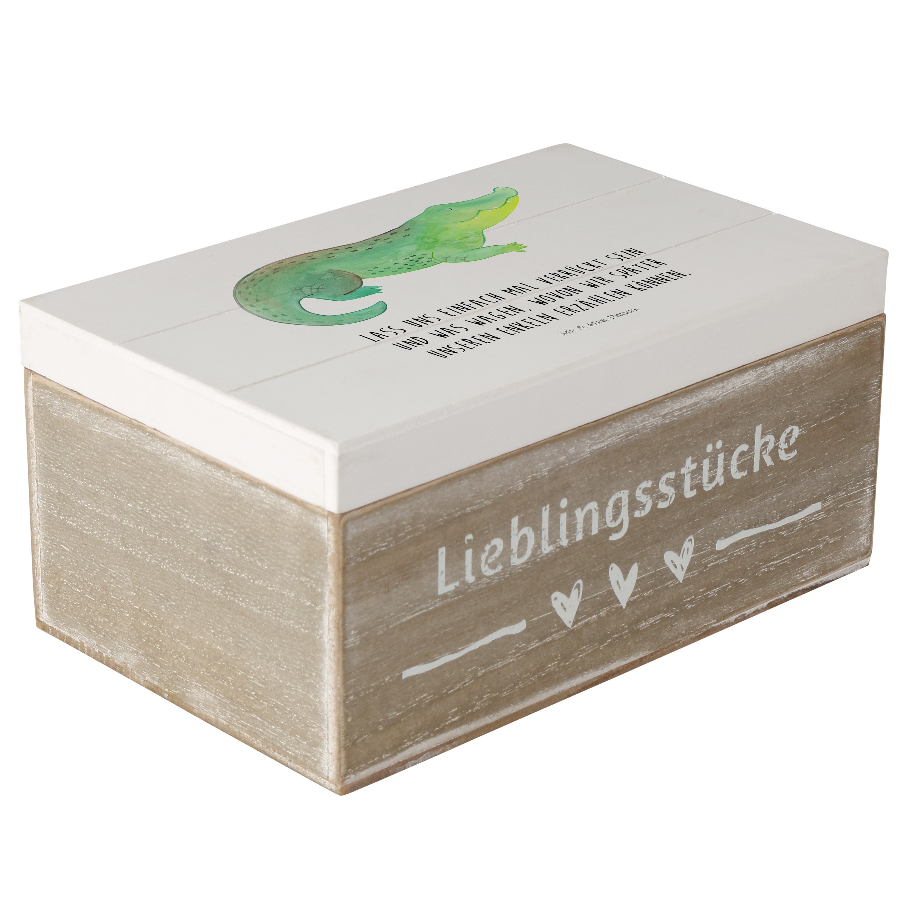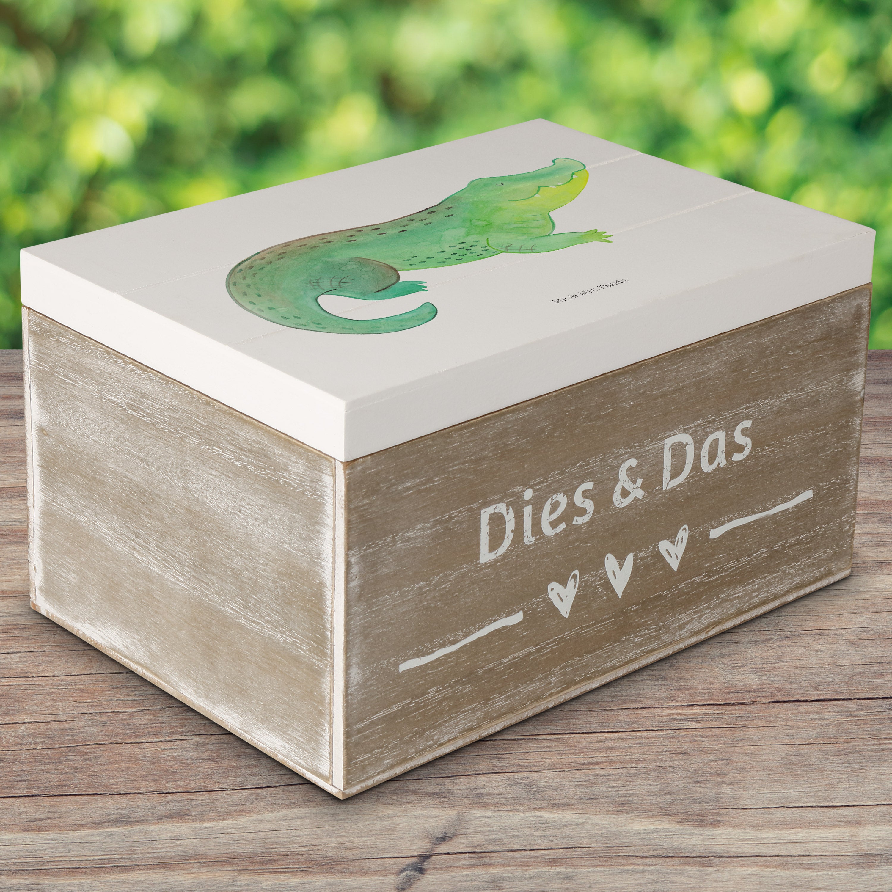 Holzkiste Krokodil - 25 x 18 cm - mit Spruch - Weiß
