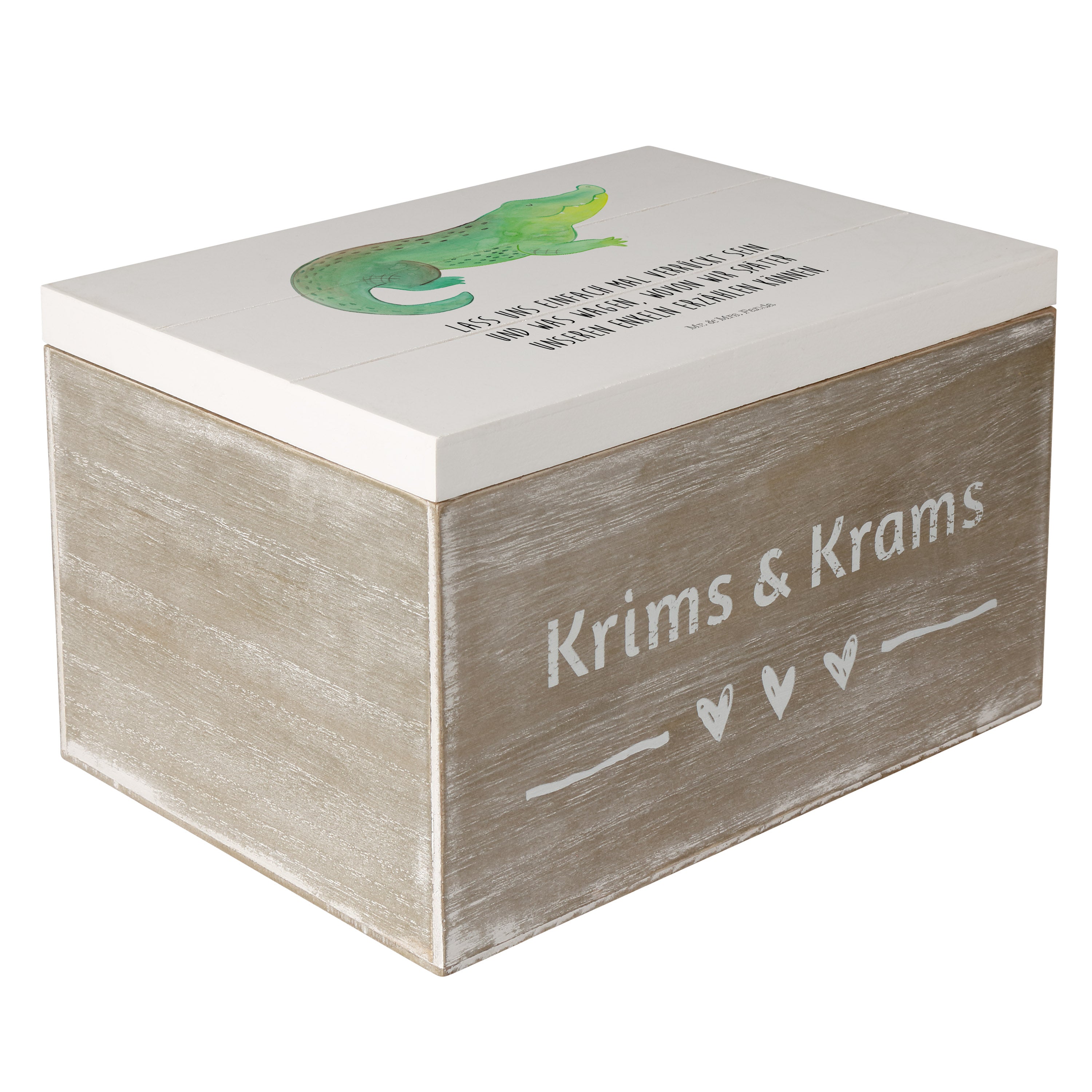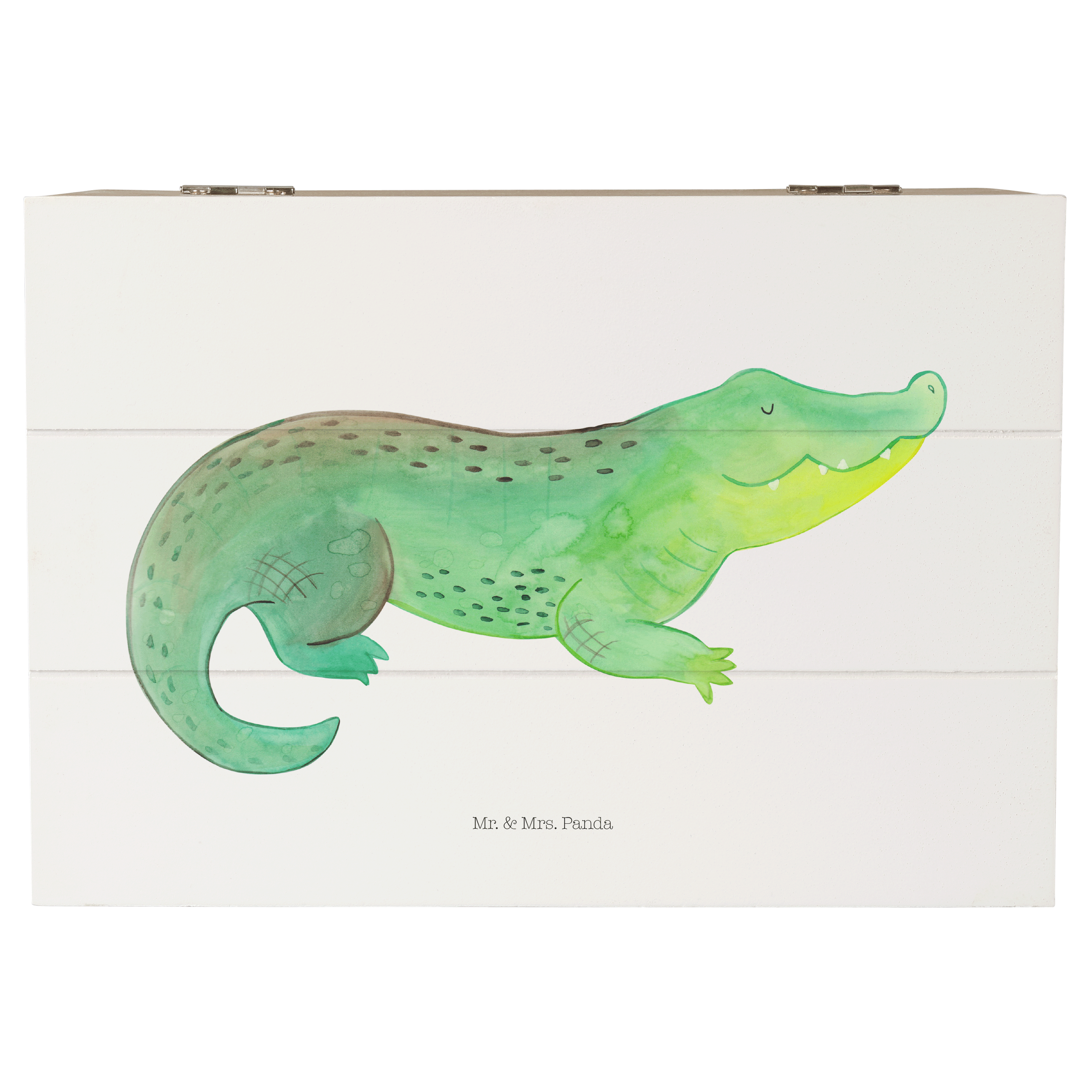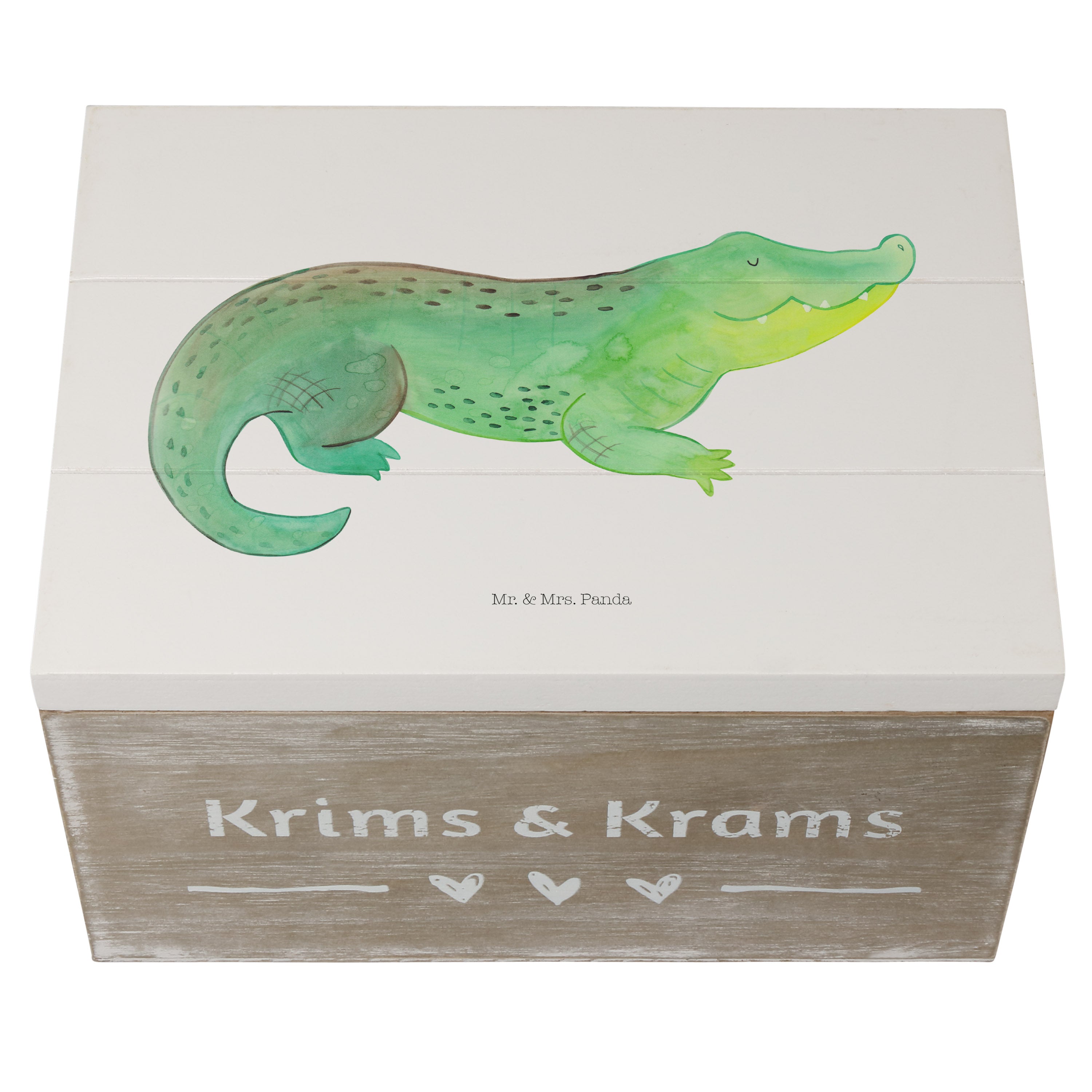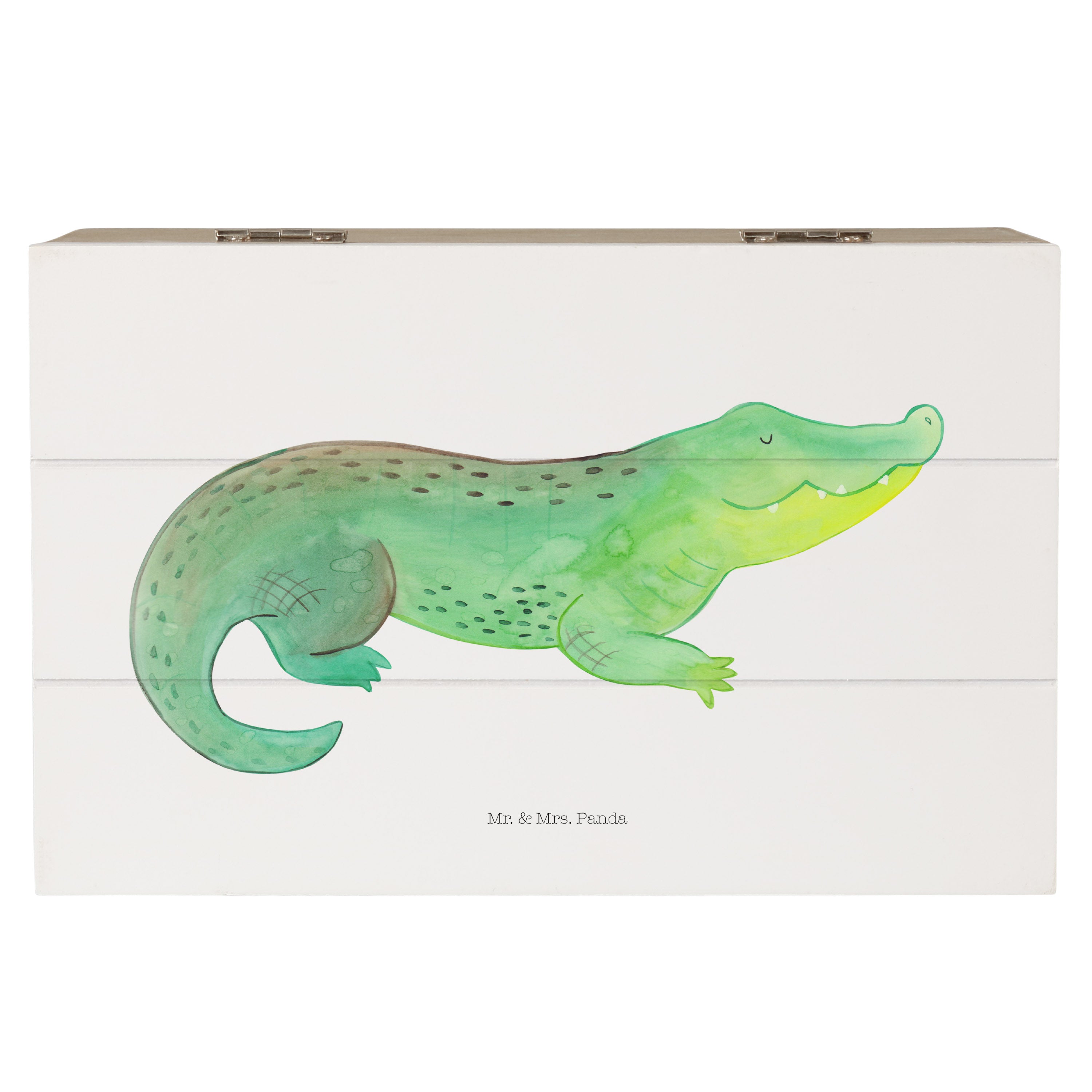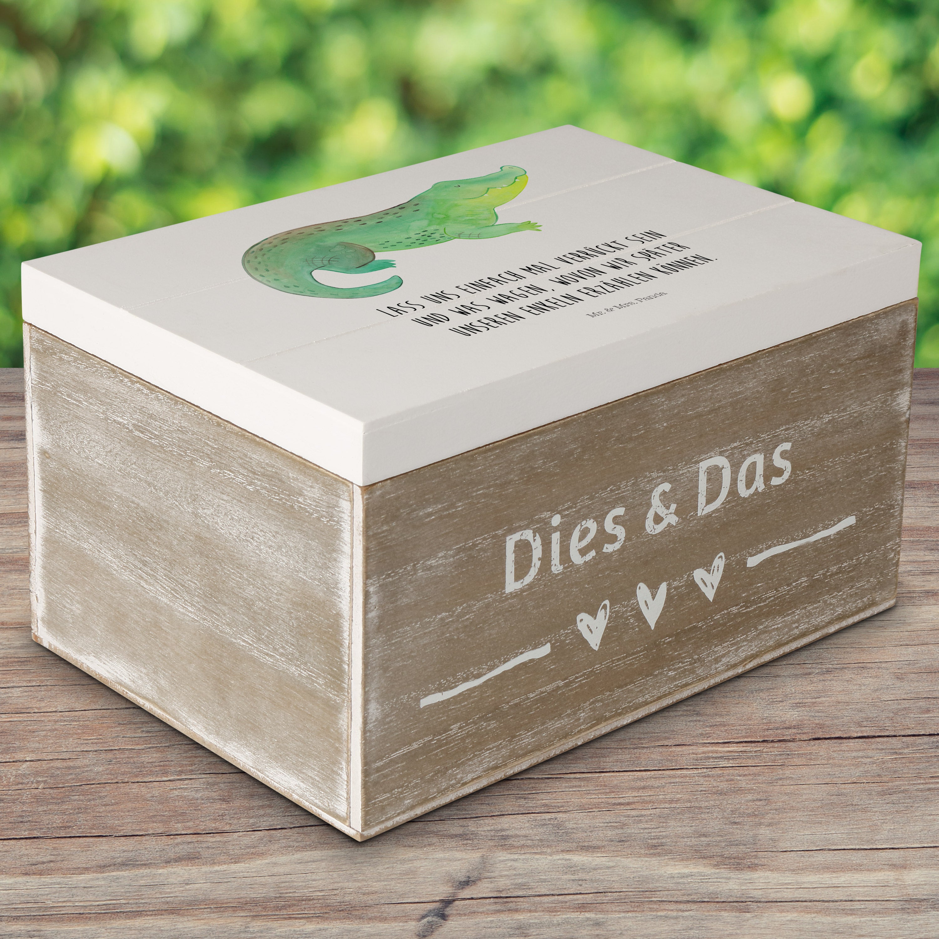 Holzkiste Krokodil - 25 x 18 cm - mit Spruch - Weiß