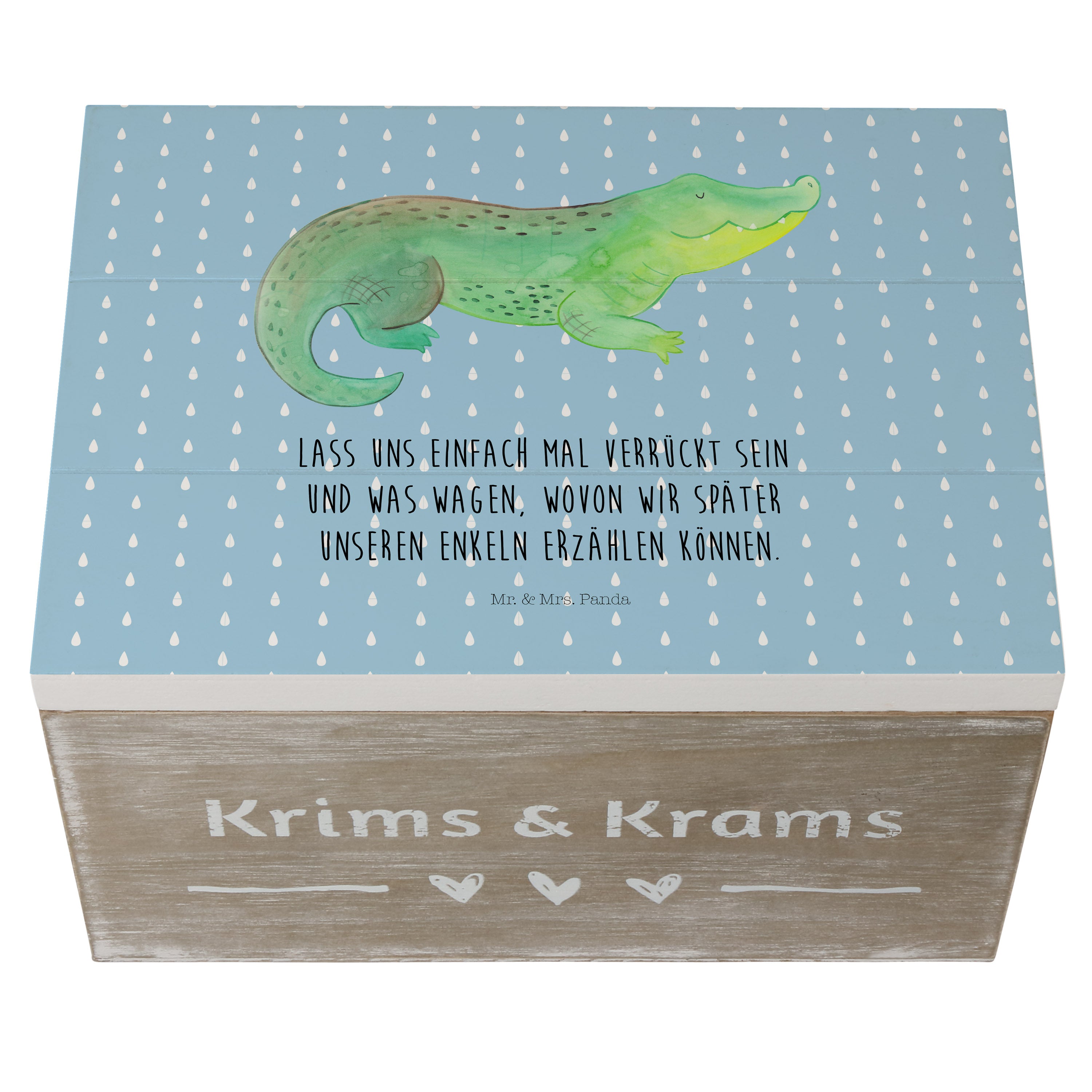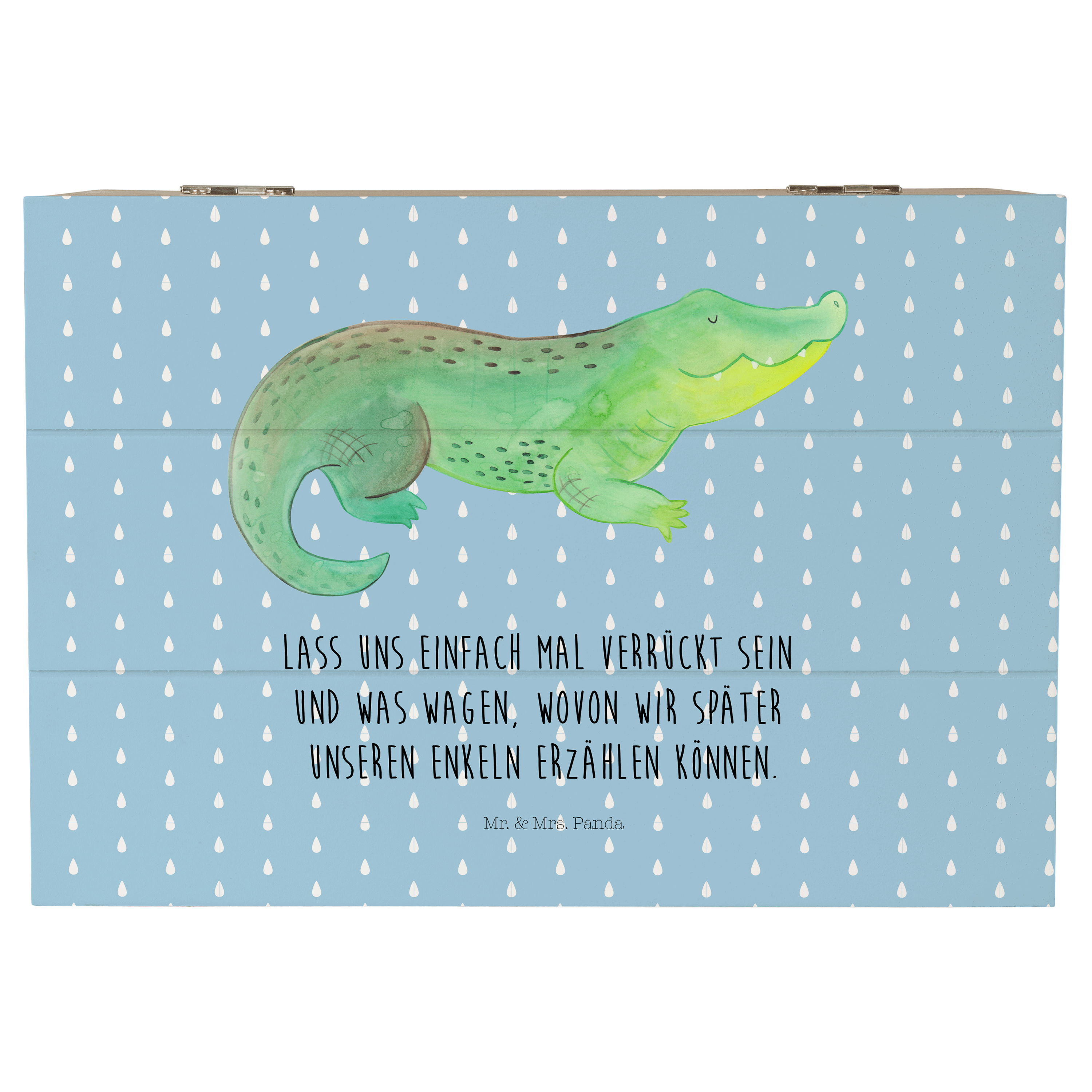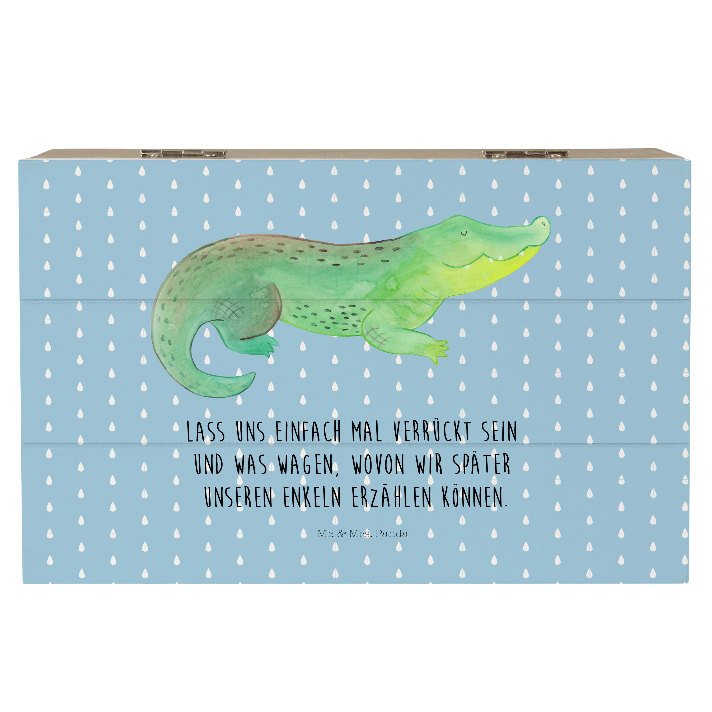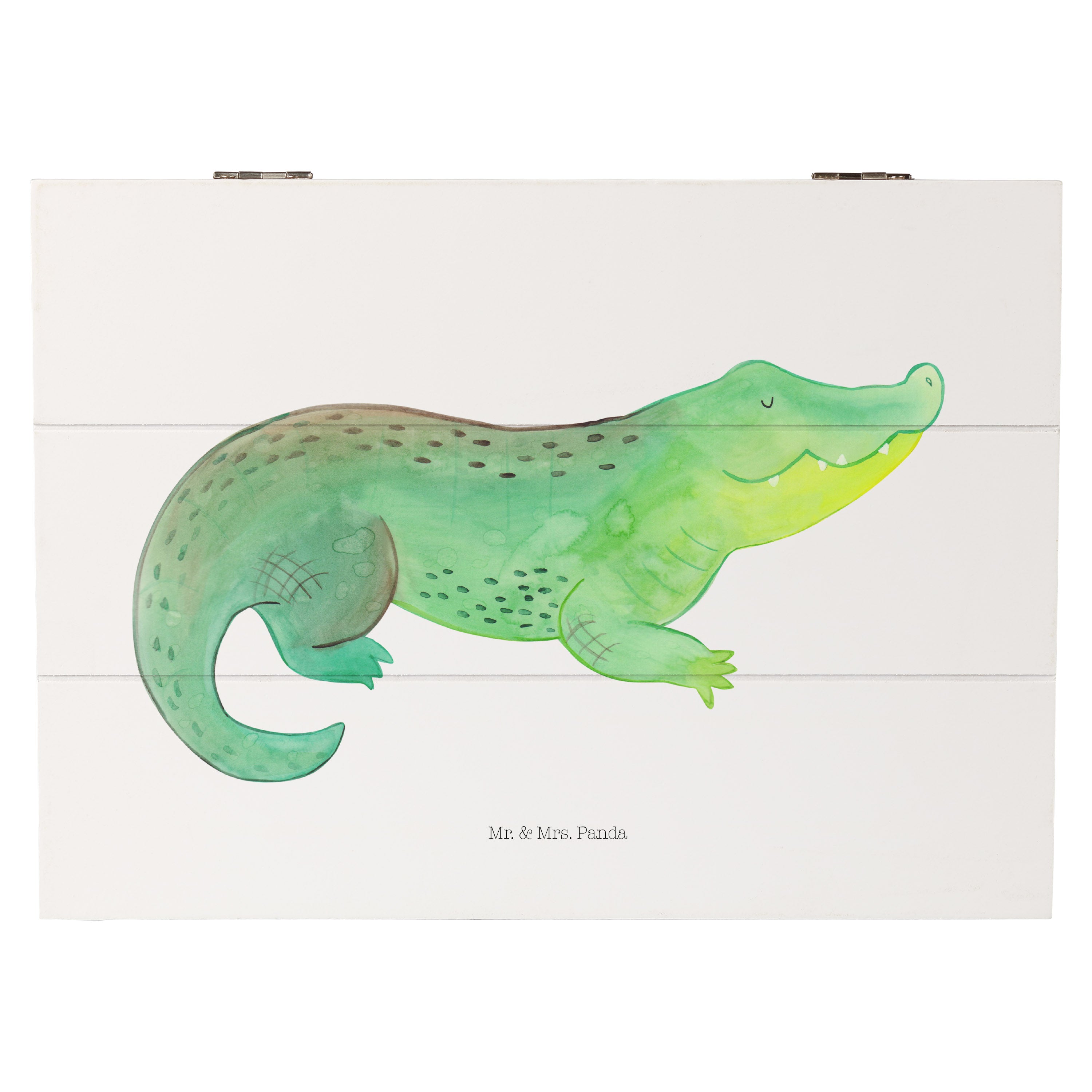 Holzkiste Krokodil - 25 x 18 cm - mit Spruch - Weiß