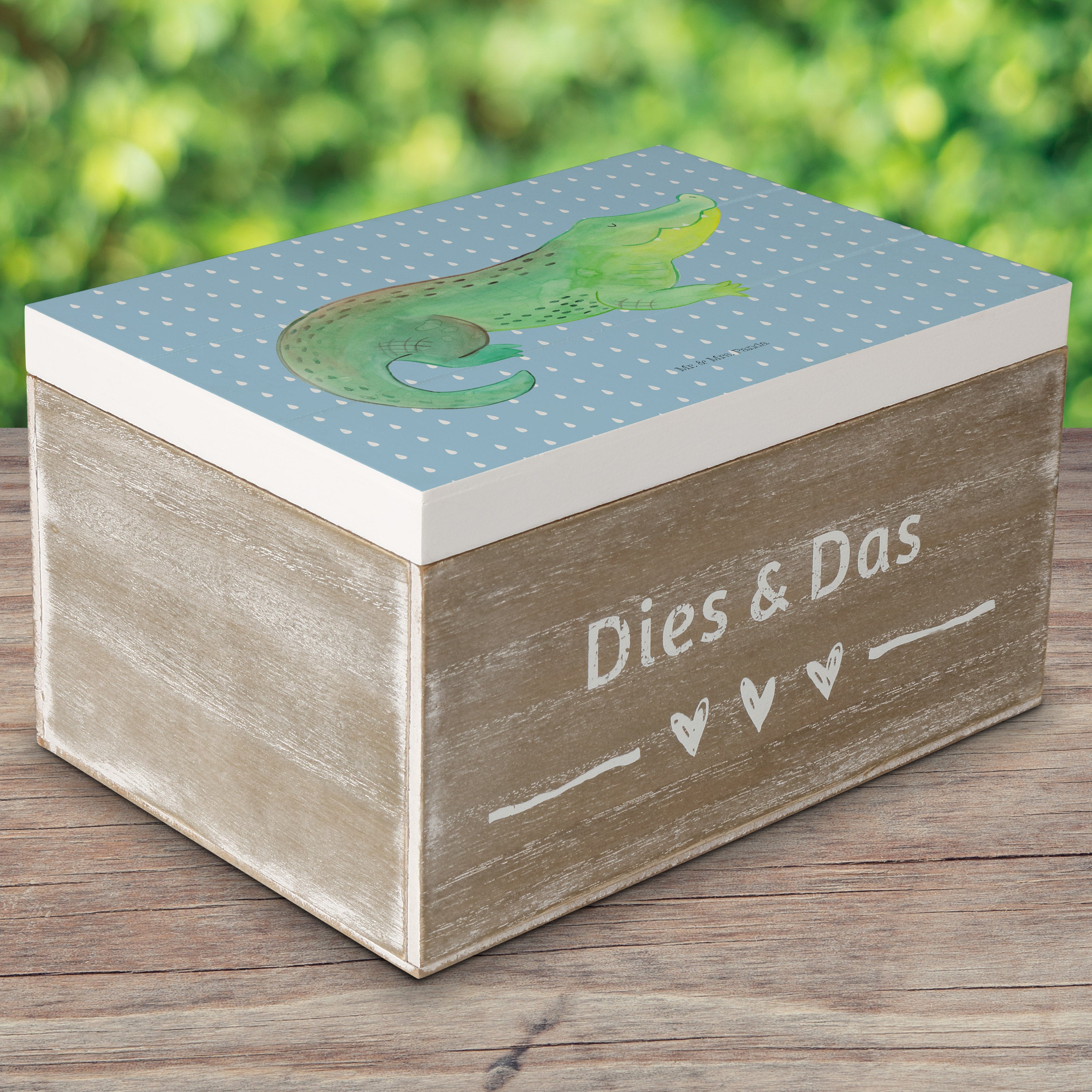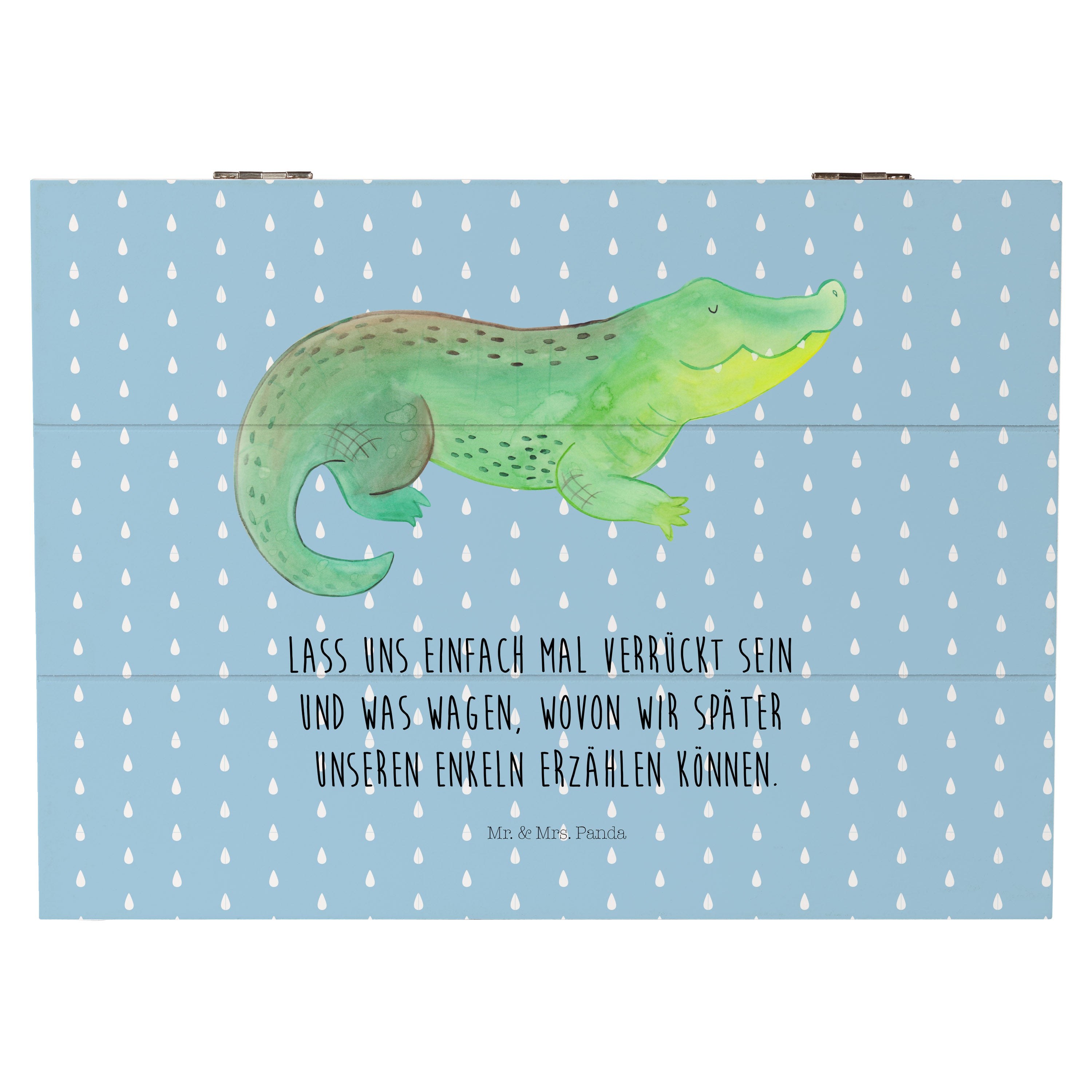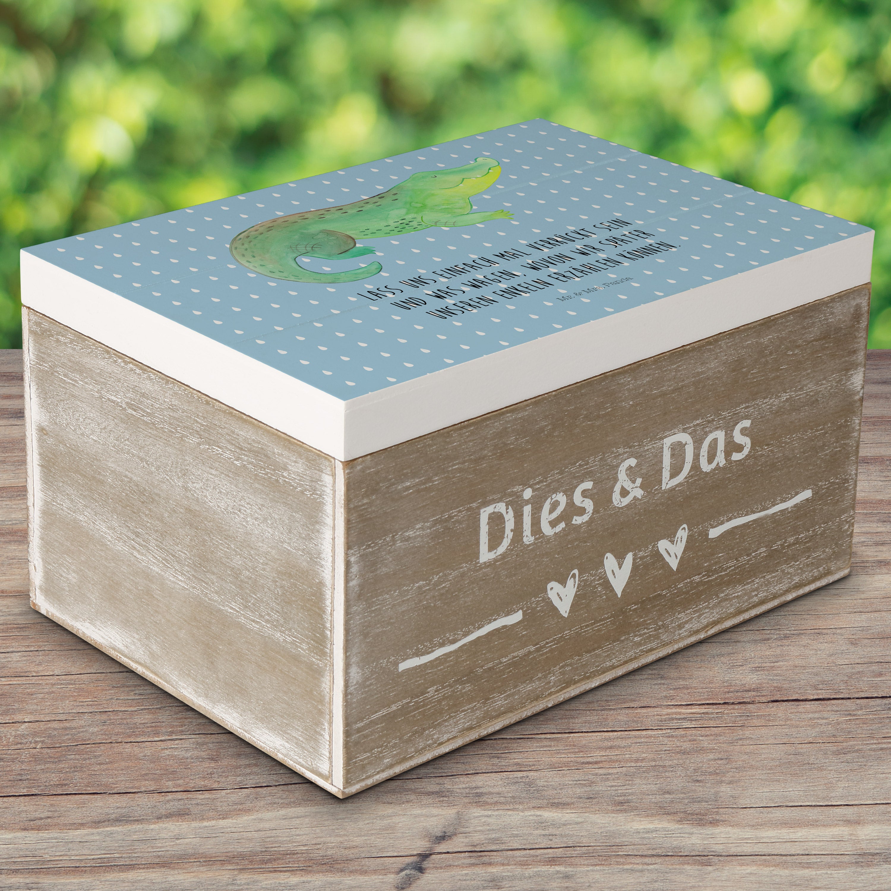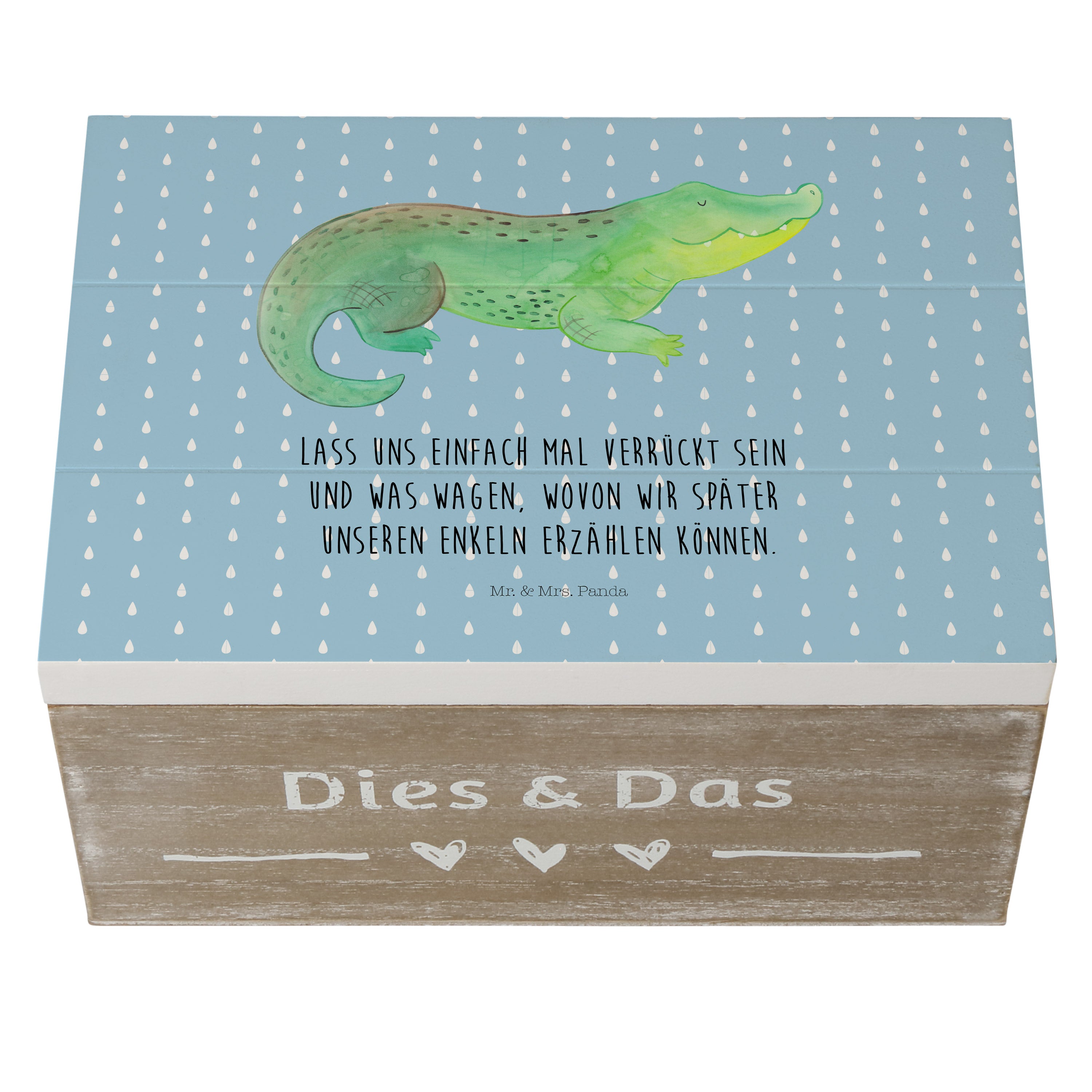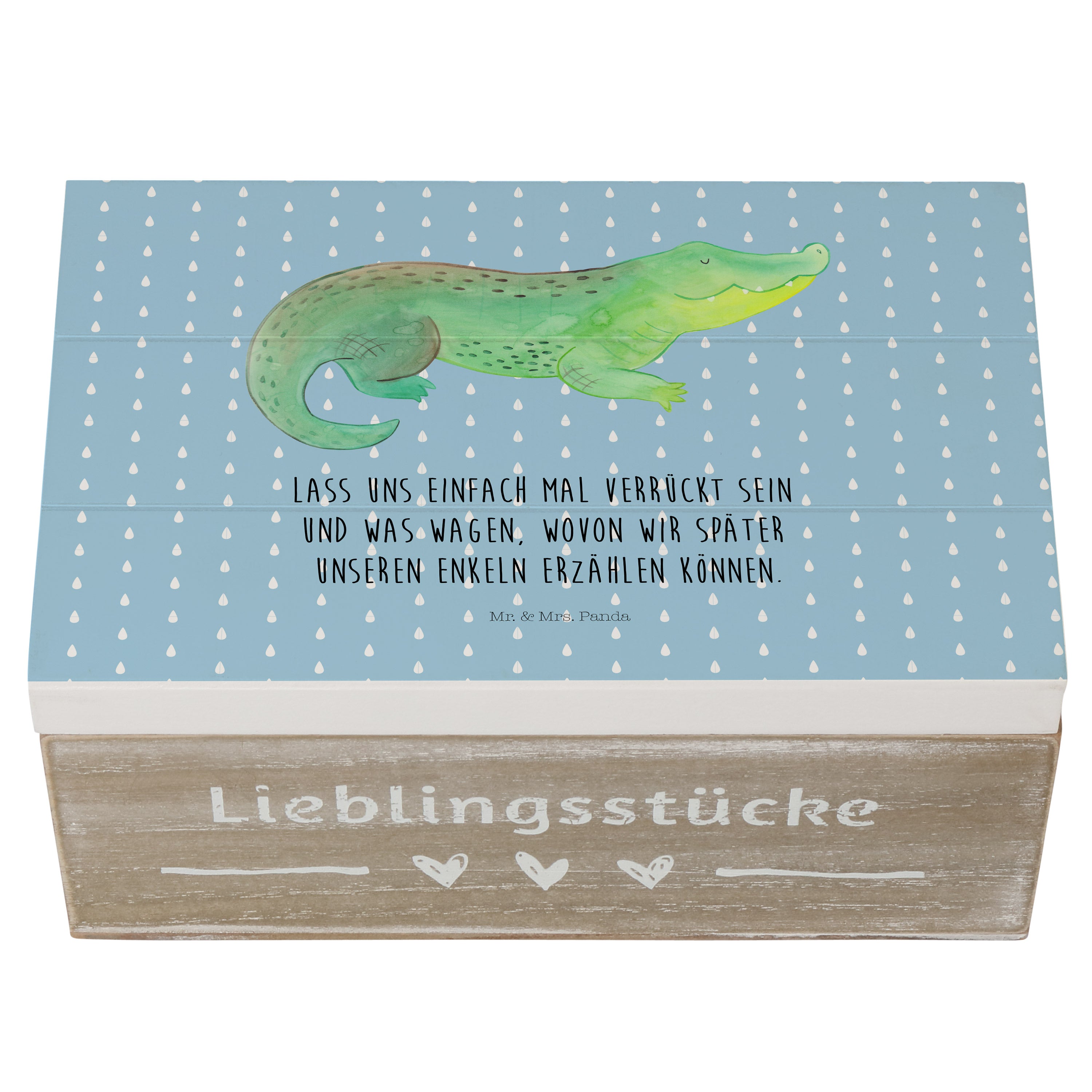 Holzkiste Krokodil - 25 x 18 cm - mit Spruch - Weiß