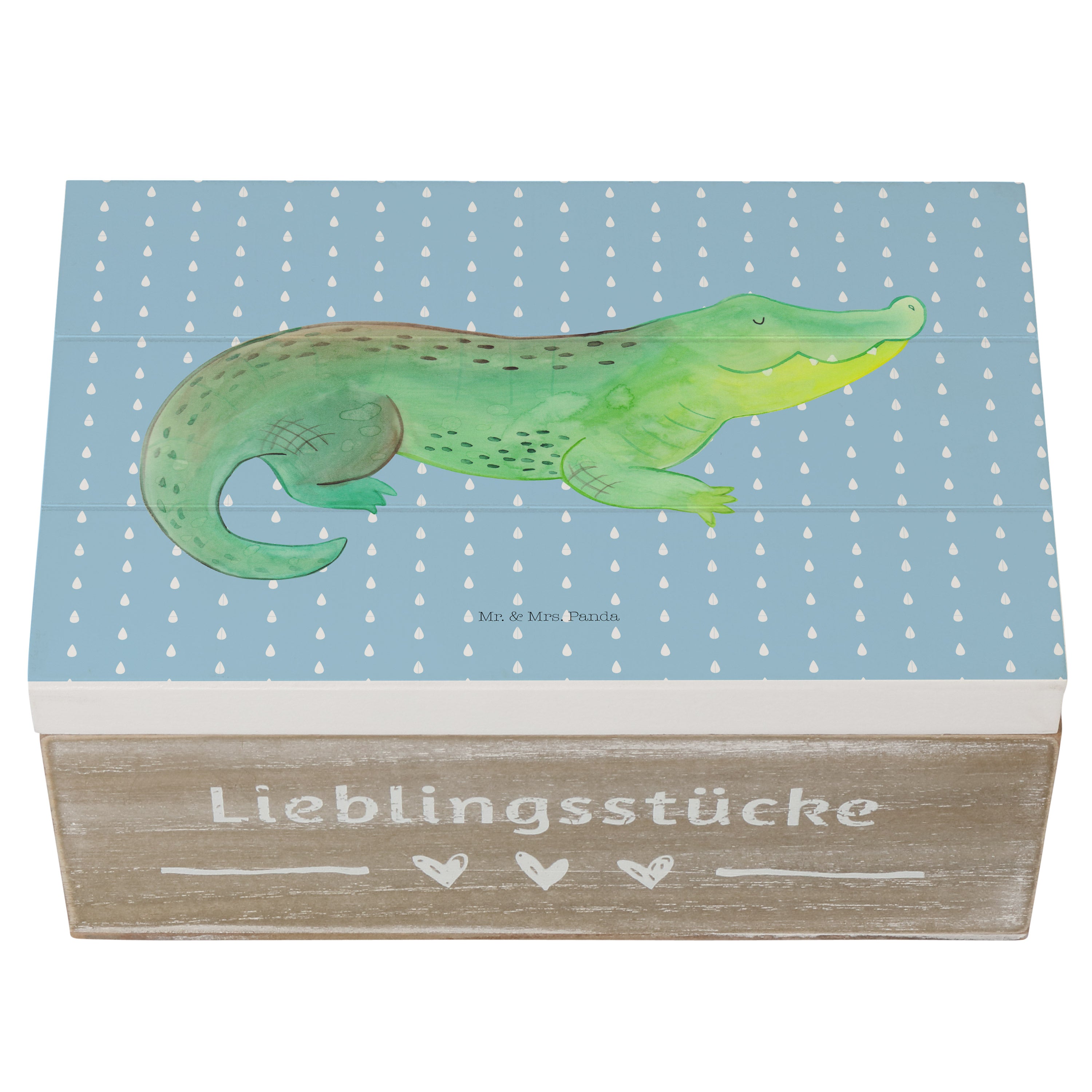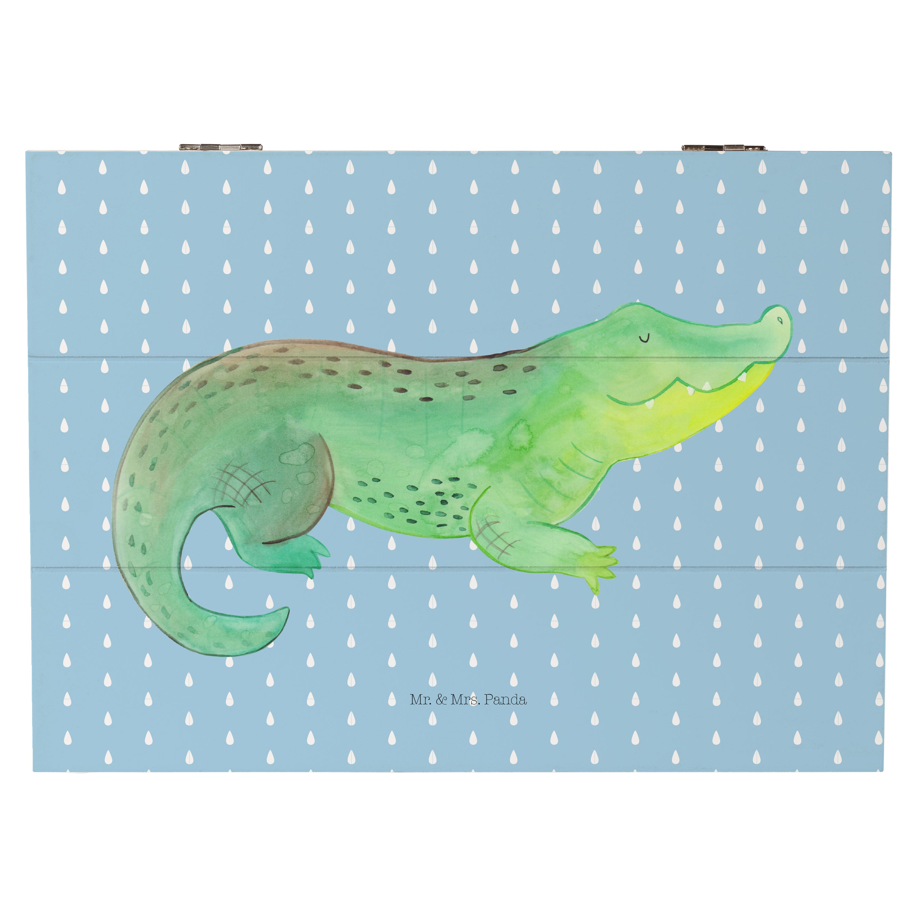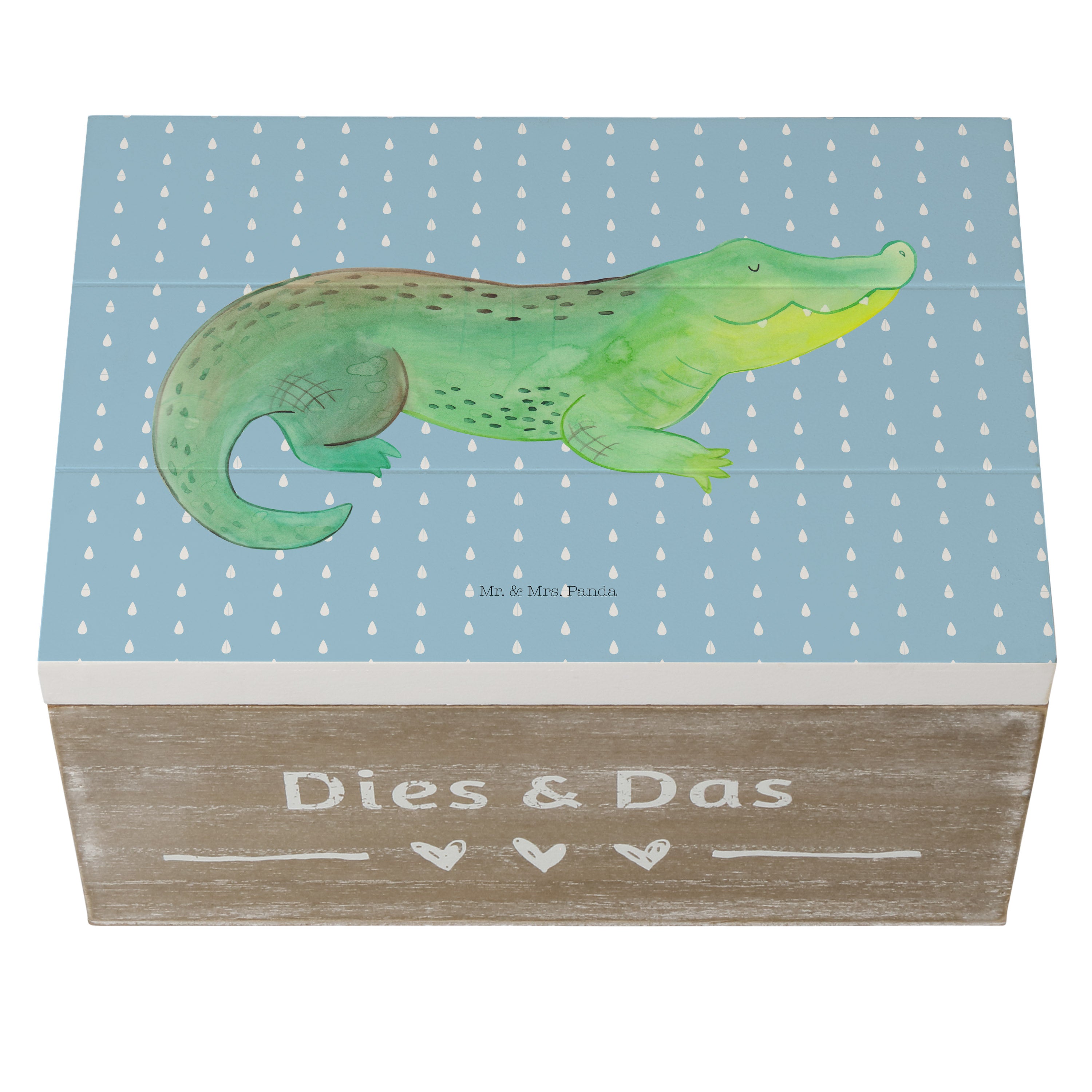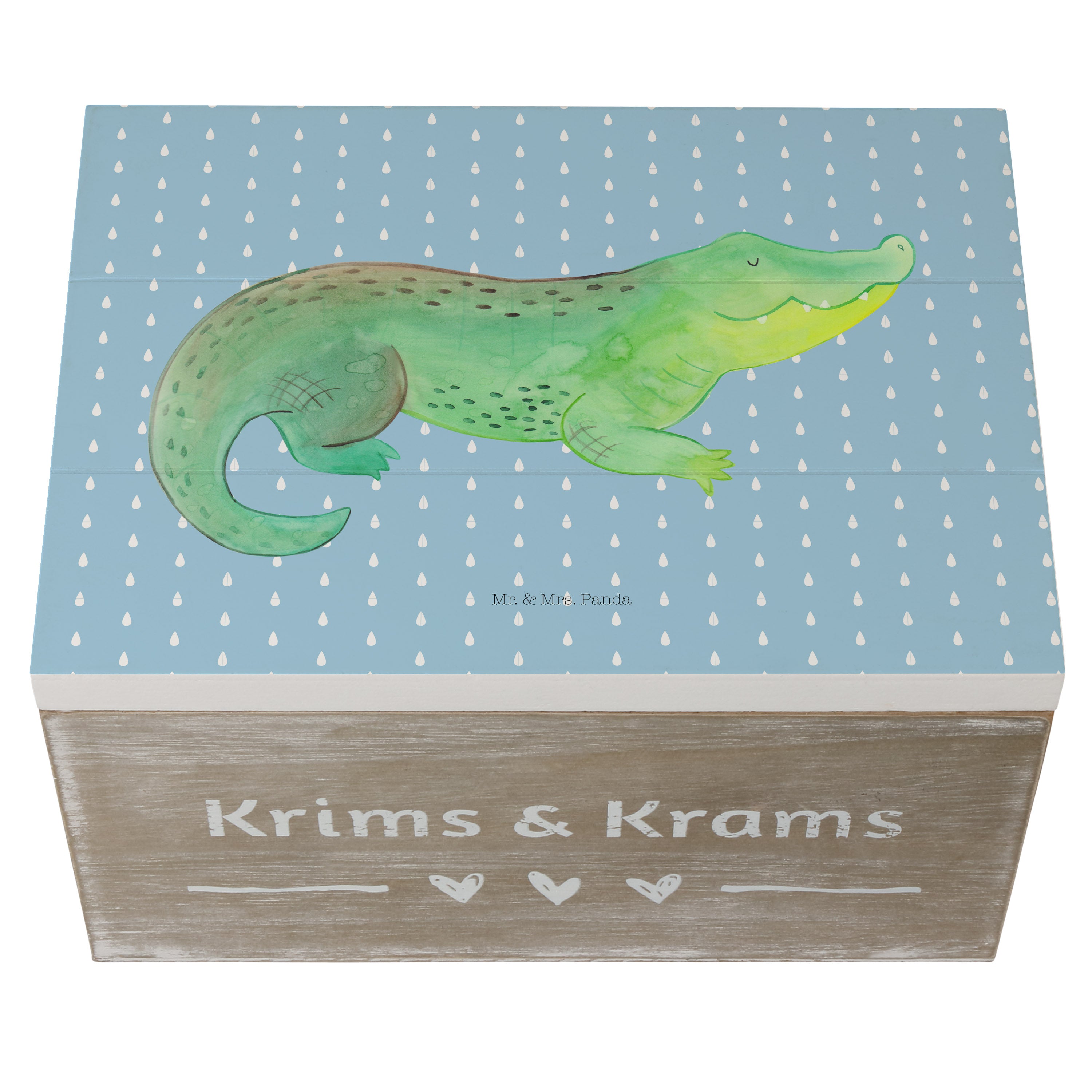 Holzkiste Krokodil - 25 x 18 cm - mit Spruch - Weiß