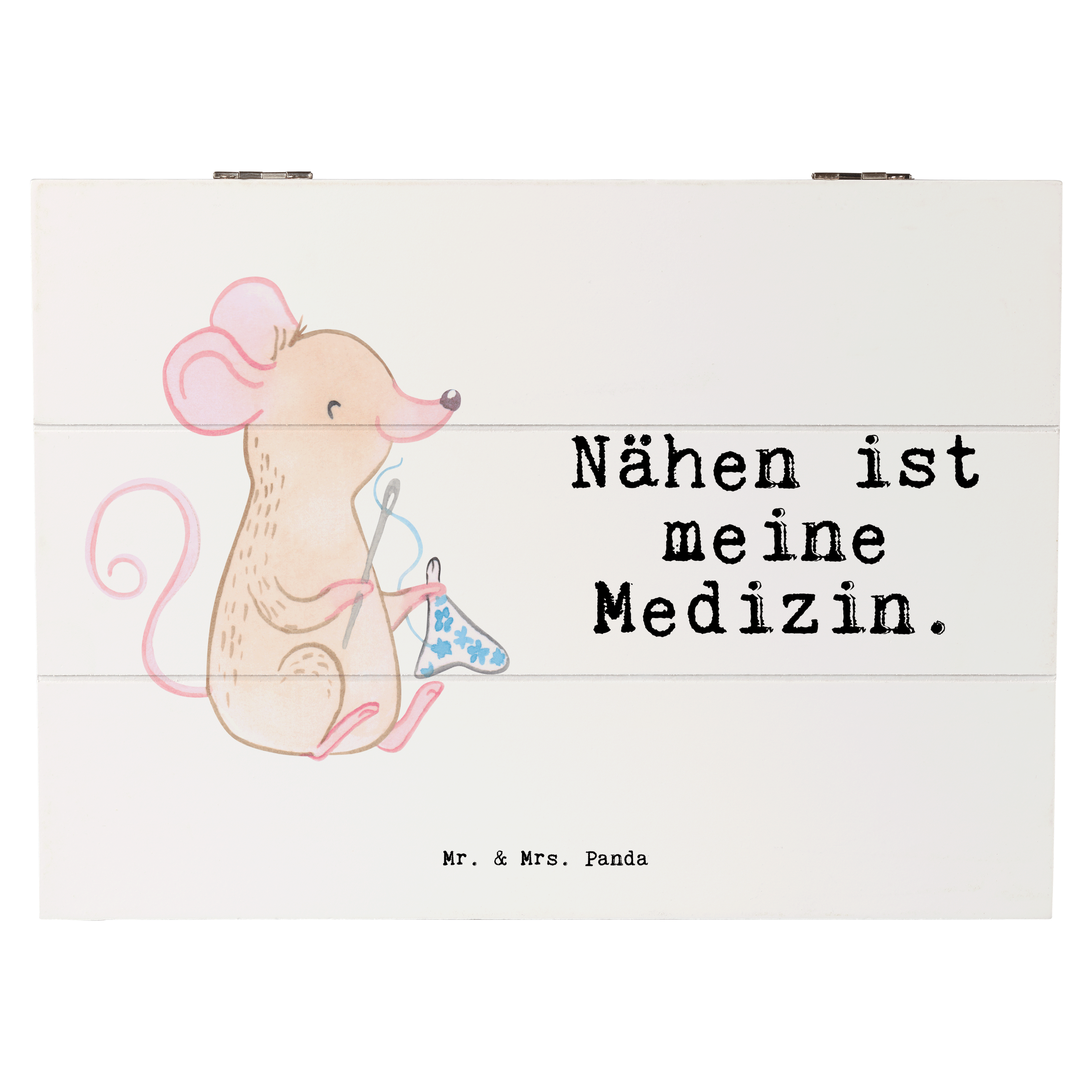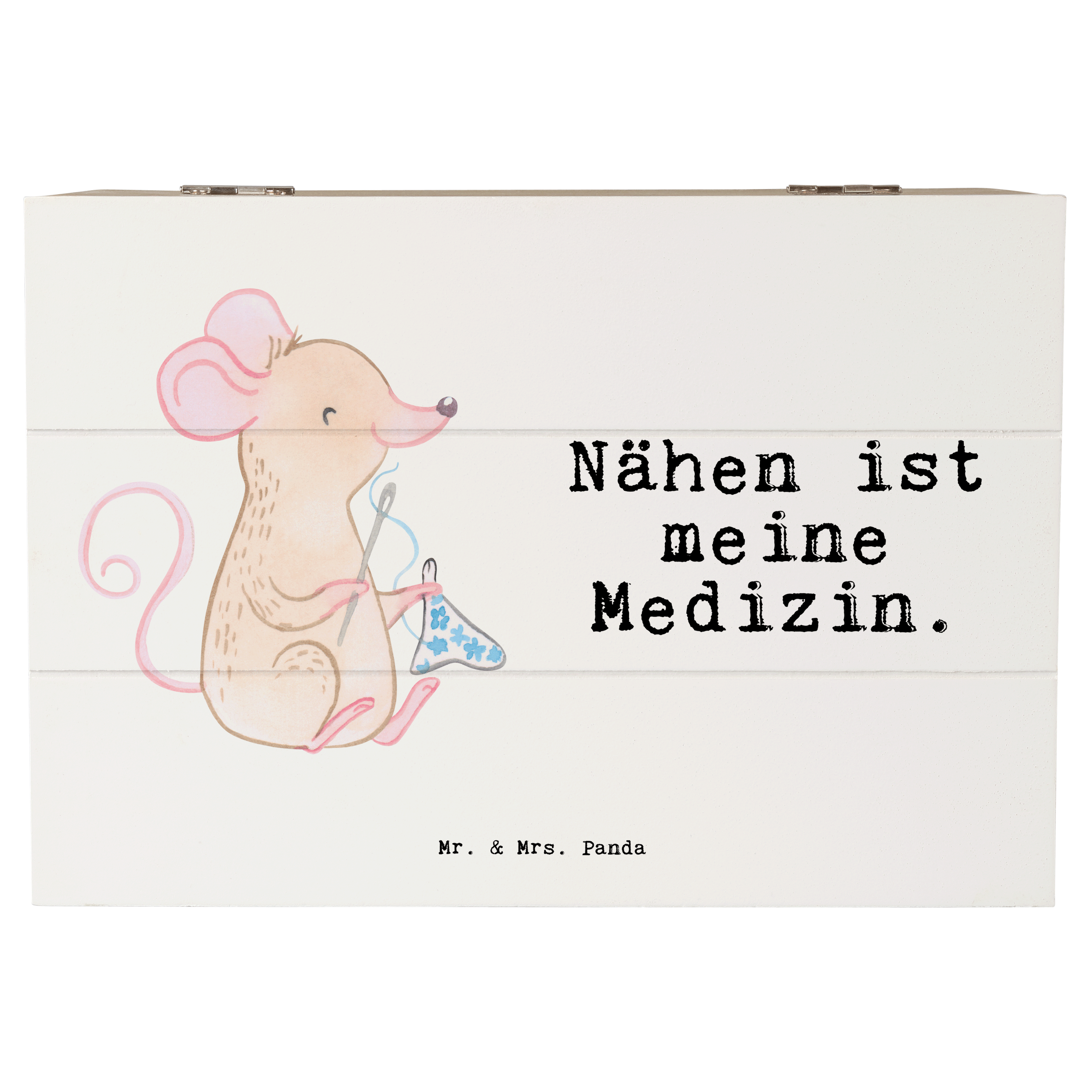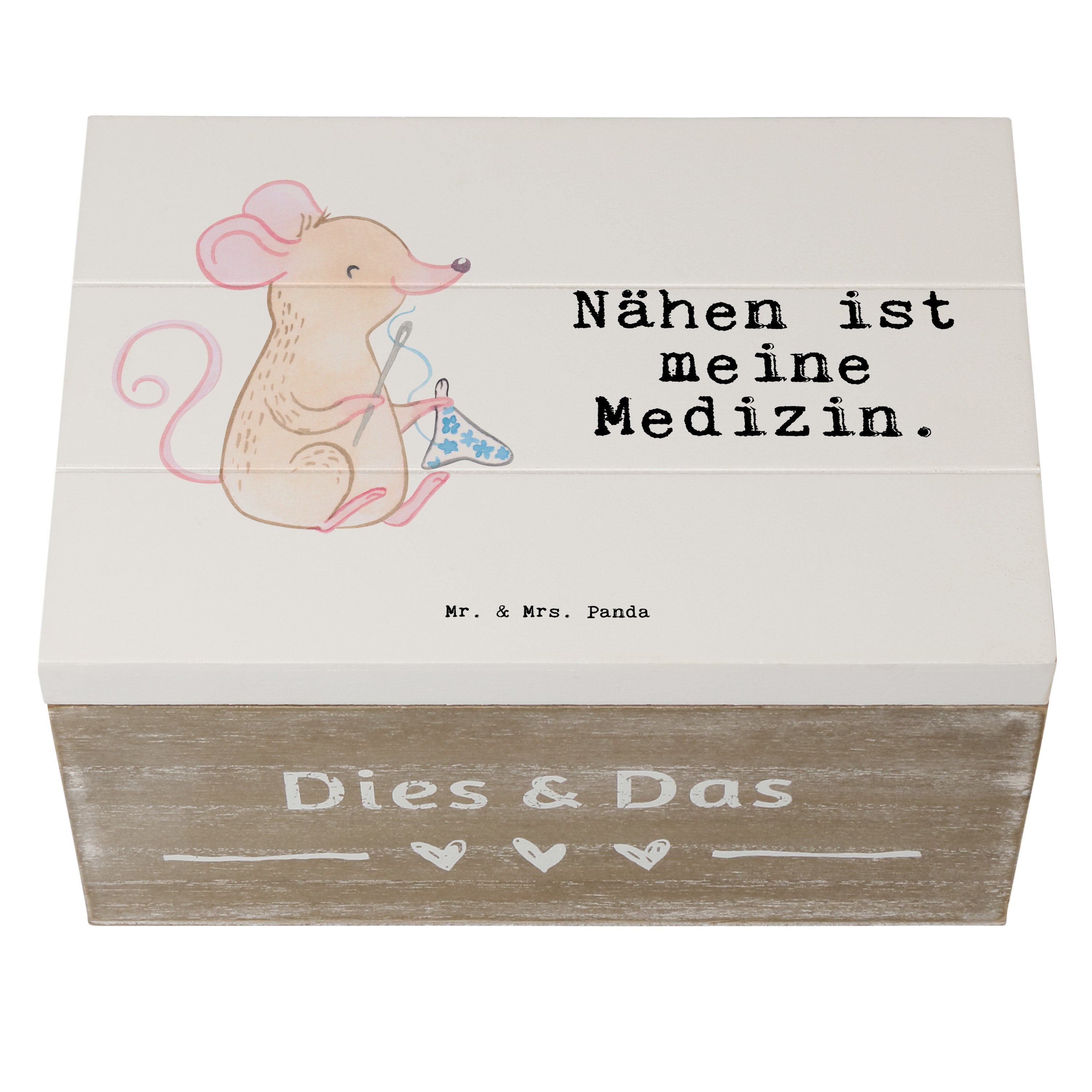 Holzkiste Maus Nähen Medizin - 19 x 12 cm