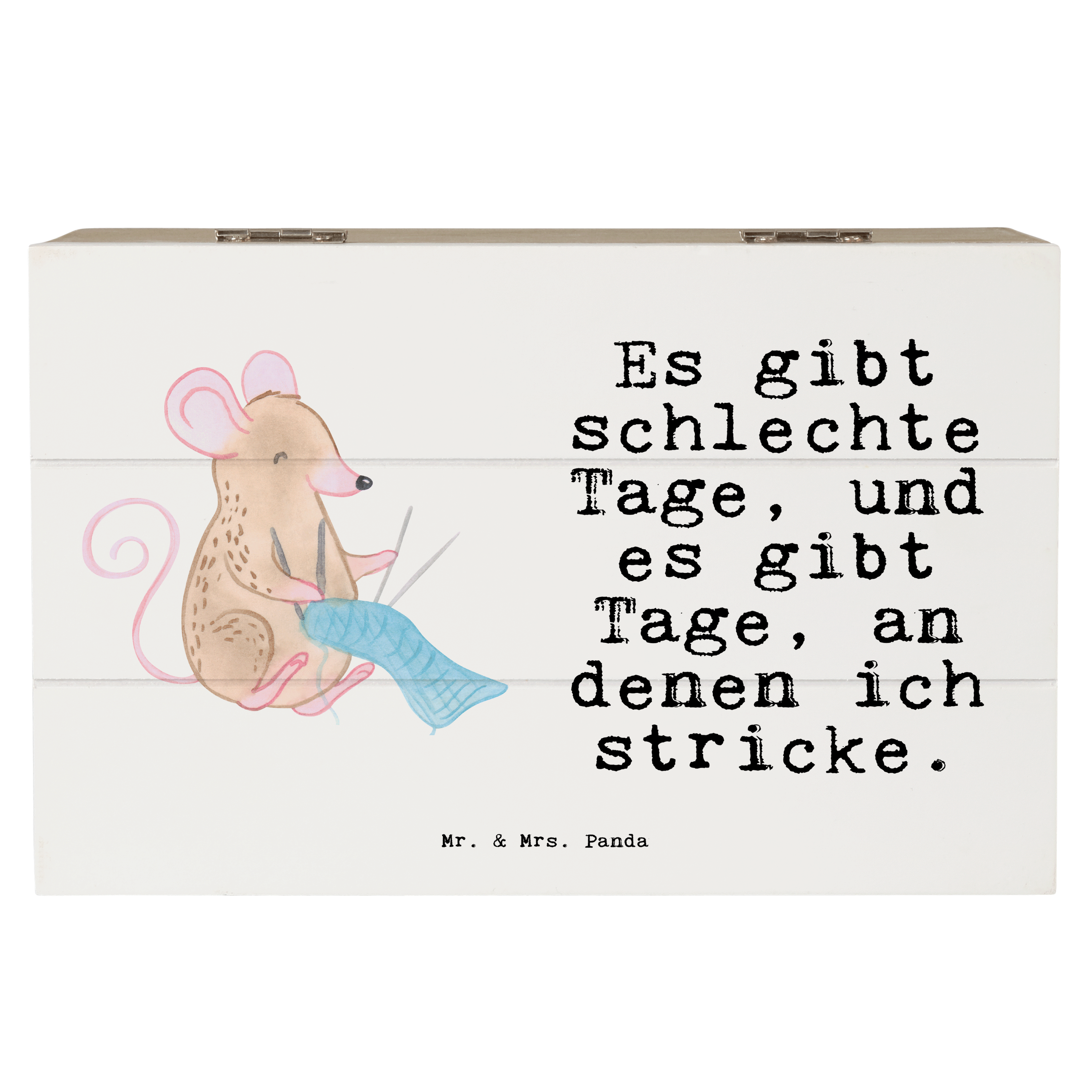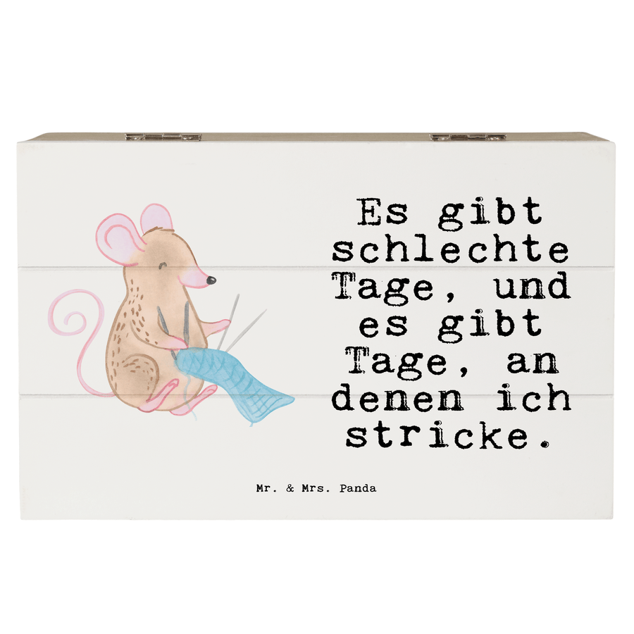 Holzkiste Maus Stricken Tage - 19 x 12 cm