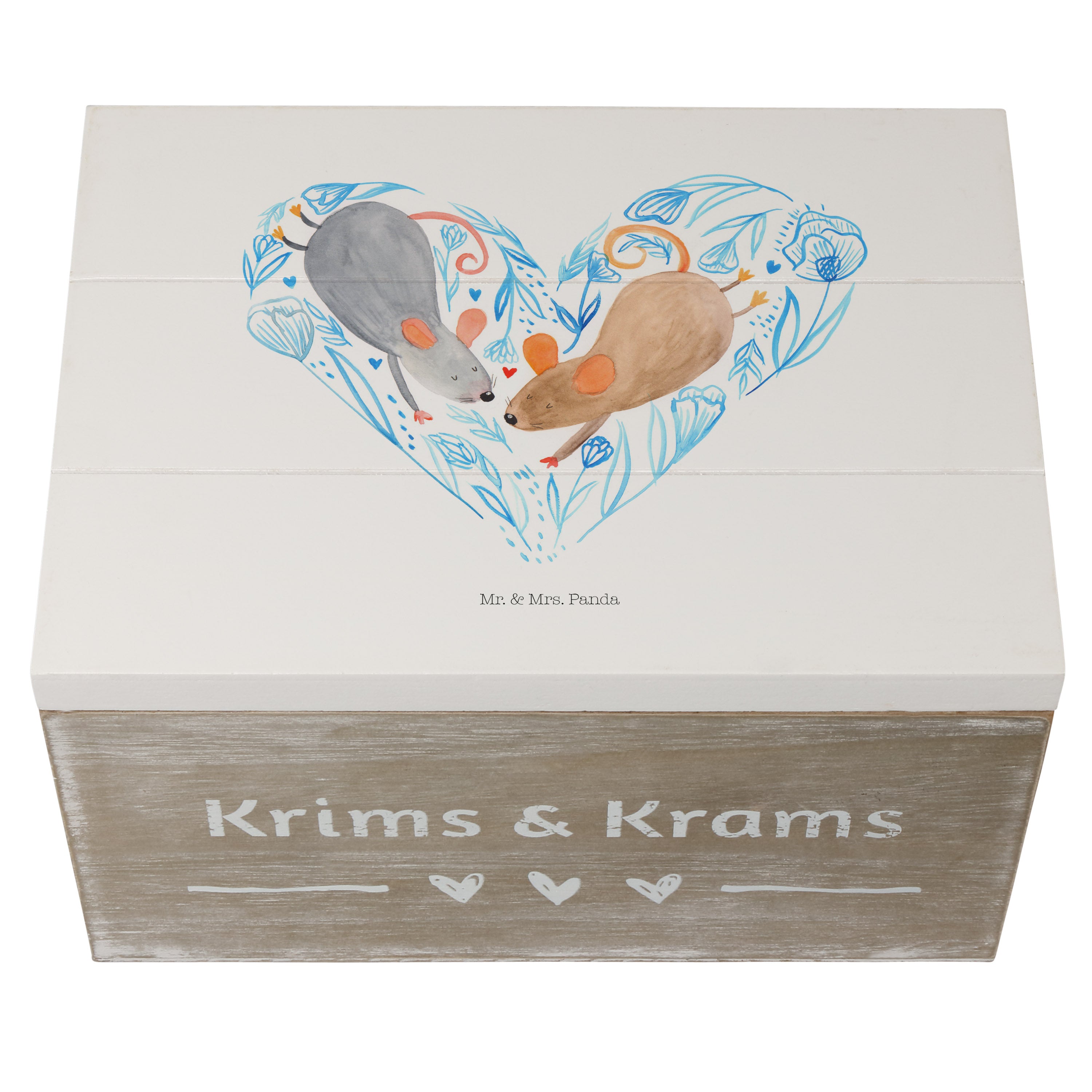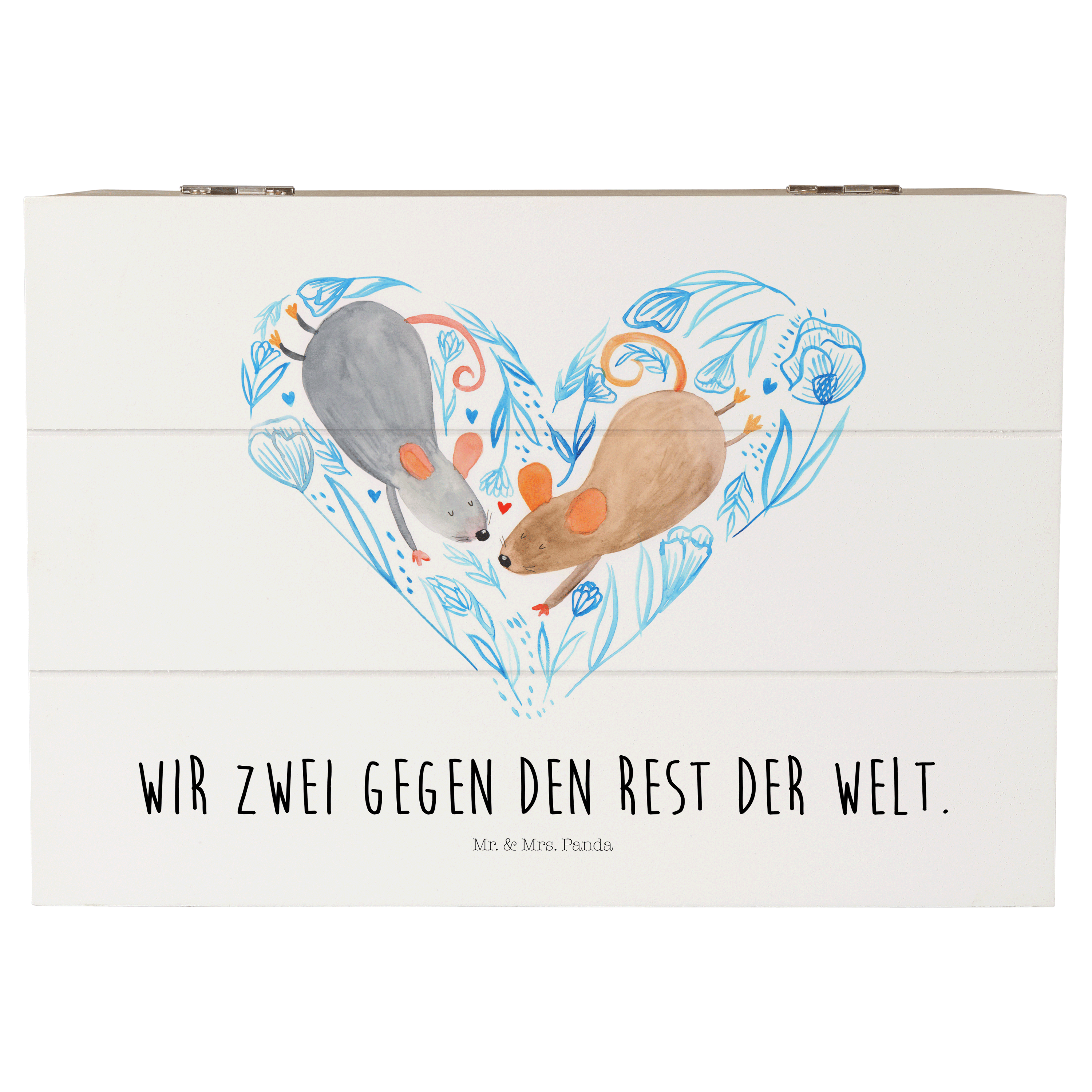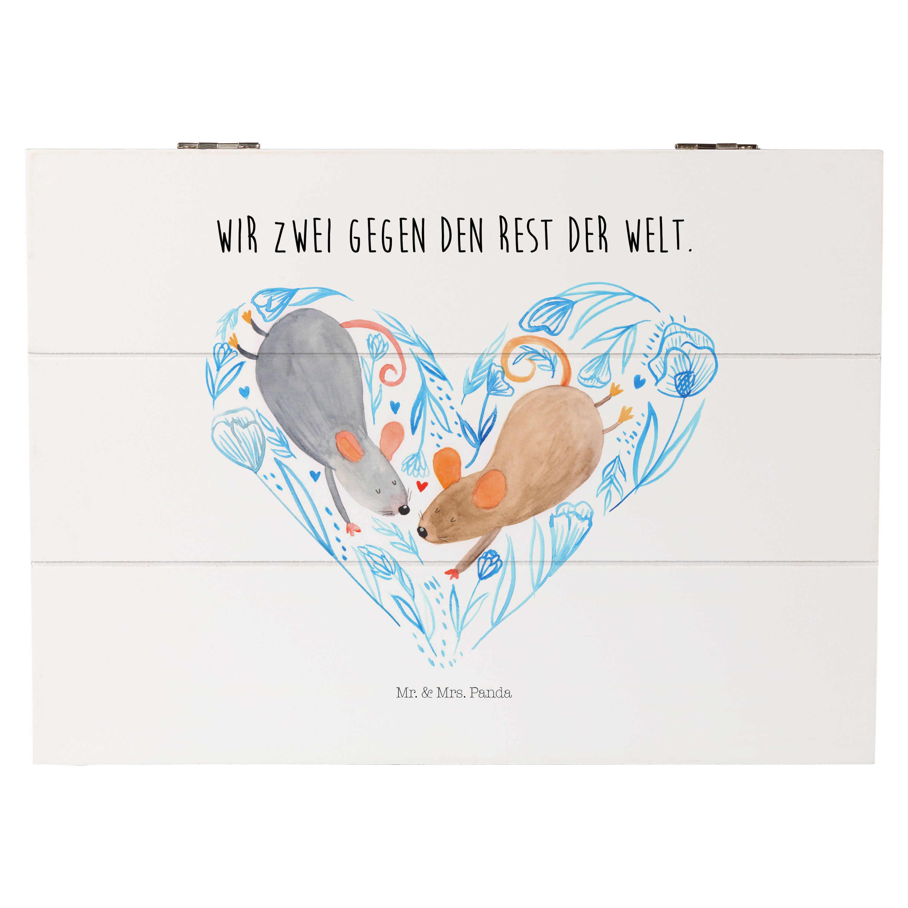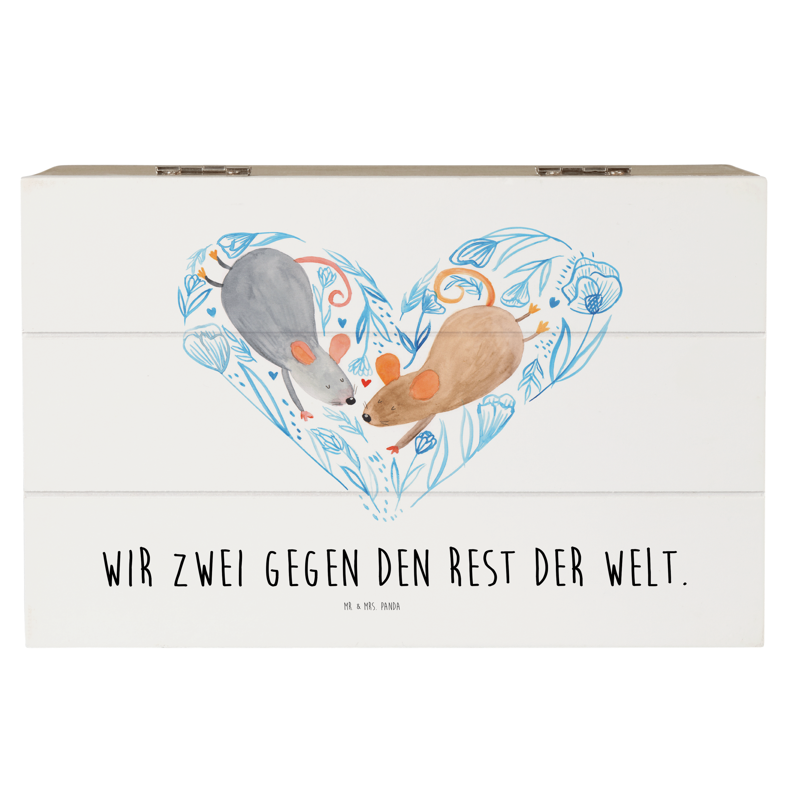 Holzkiste Mäuse Herz - 25 x 18 cm - mit Spruch - Weiß