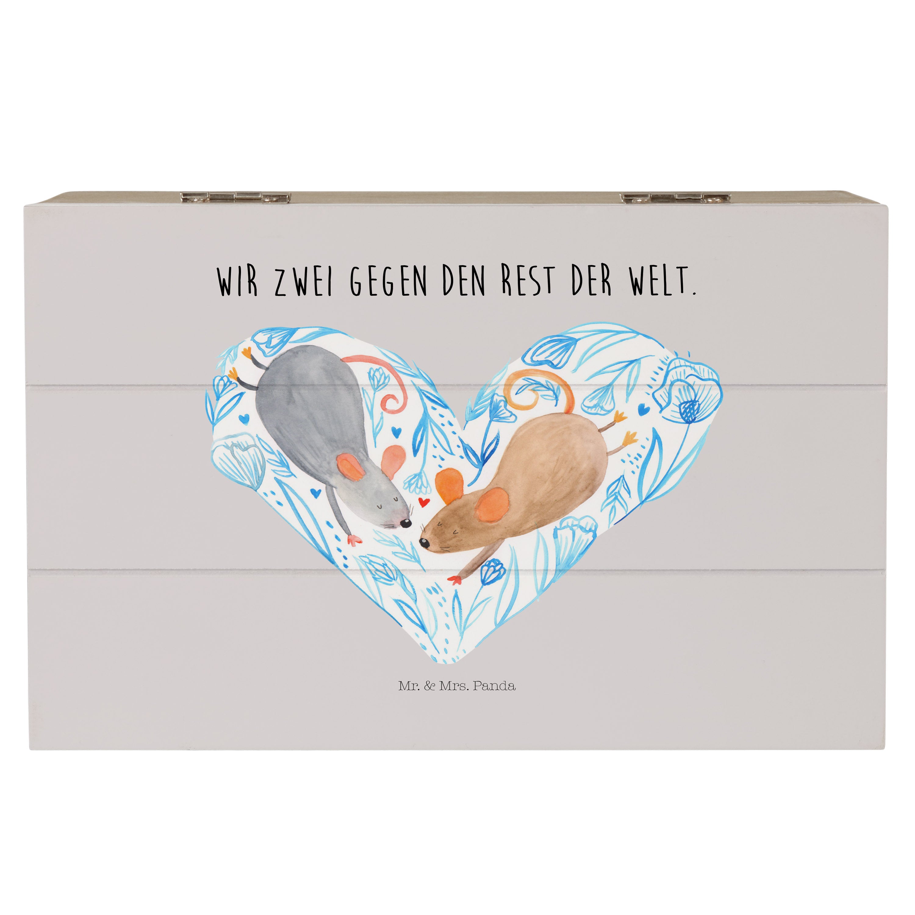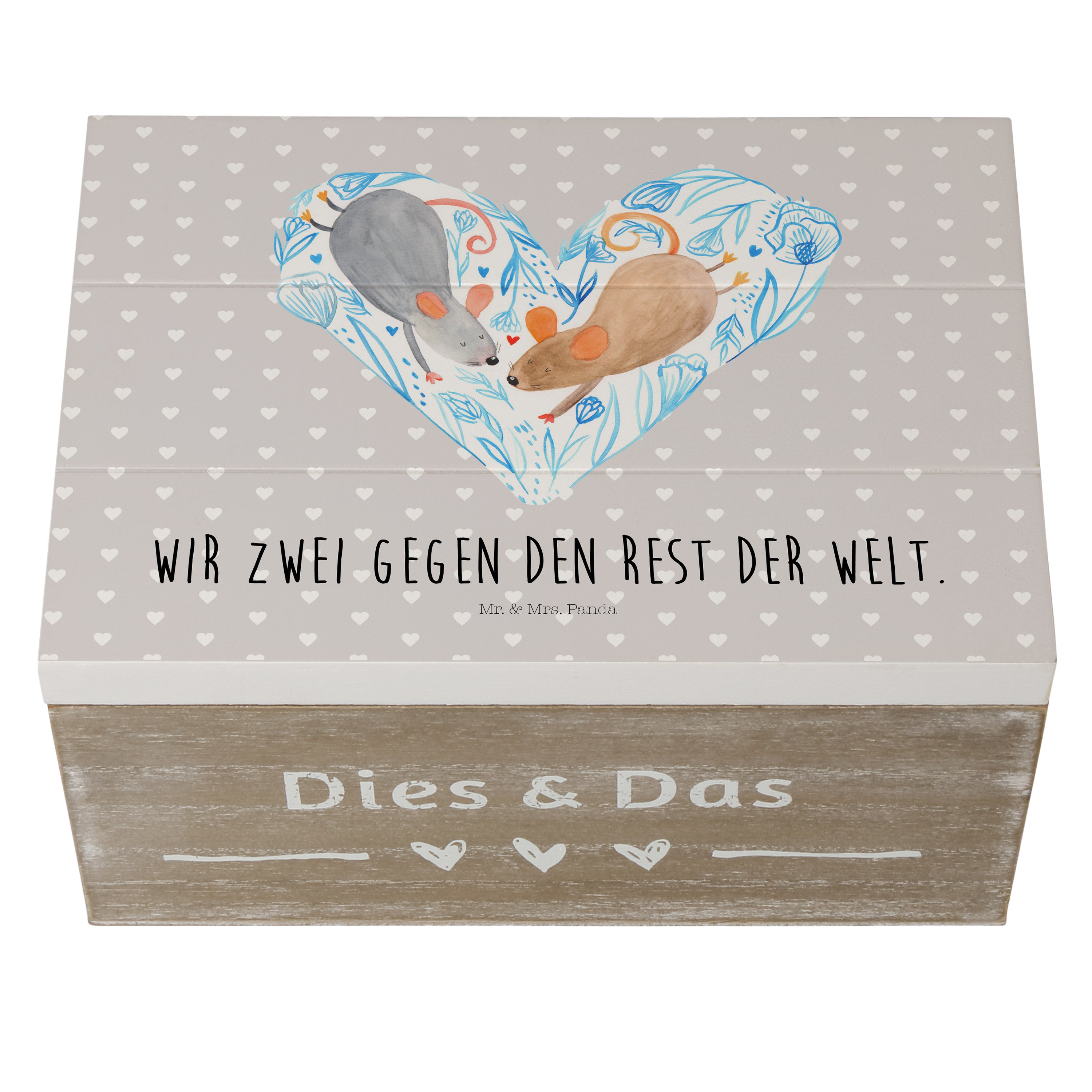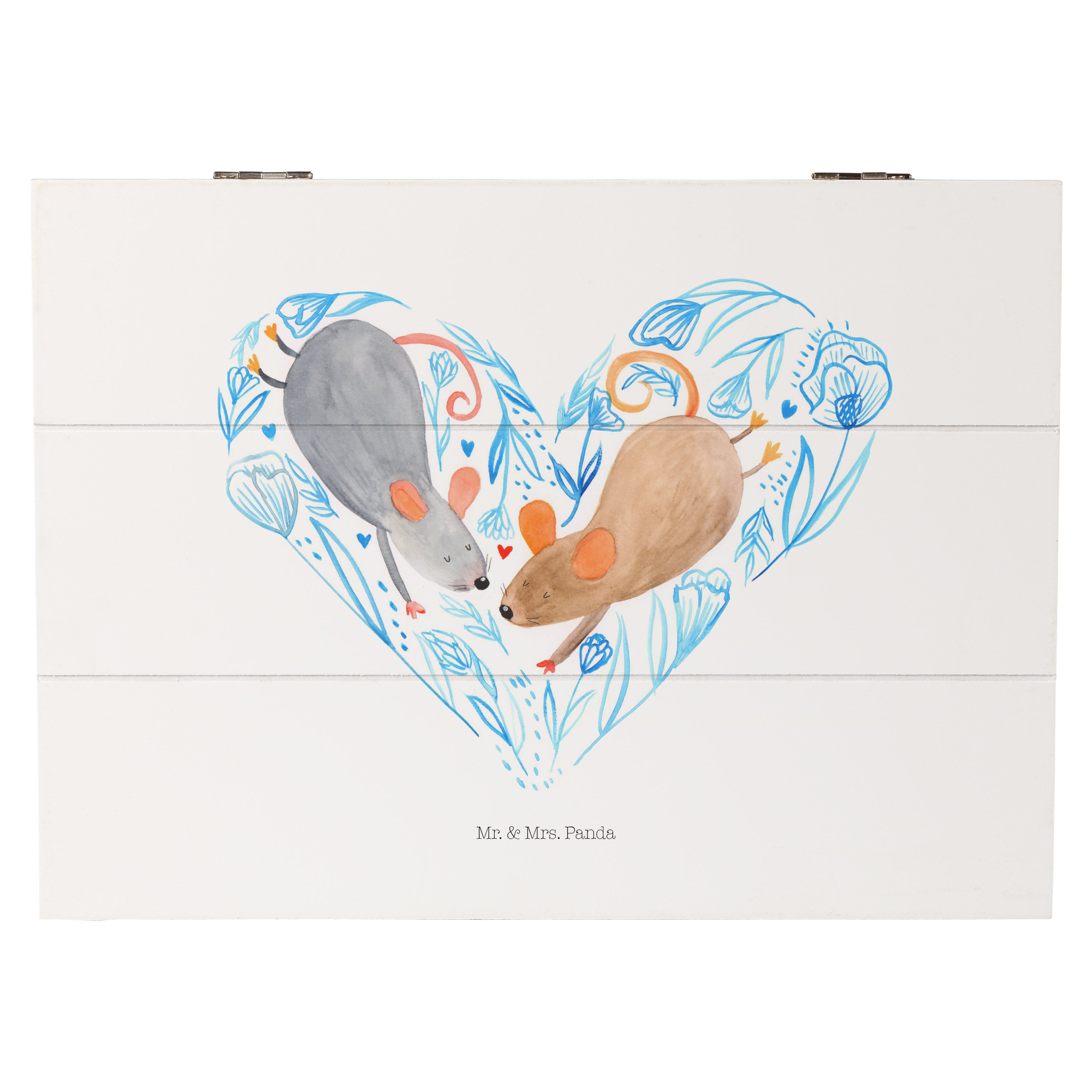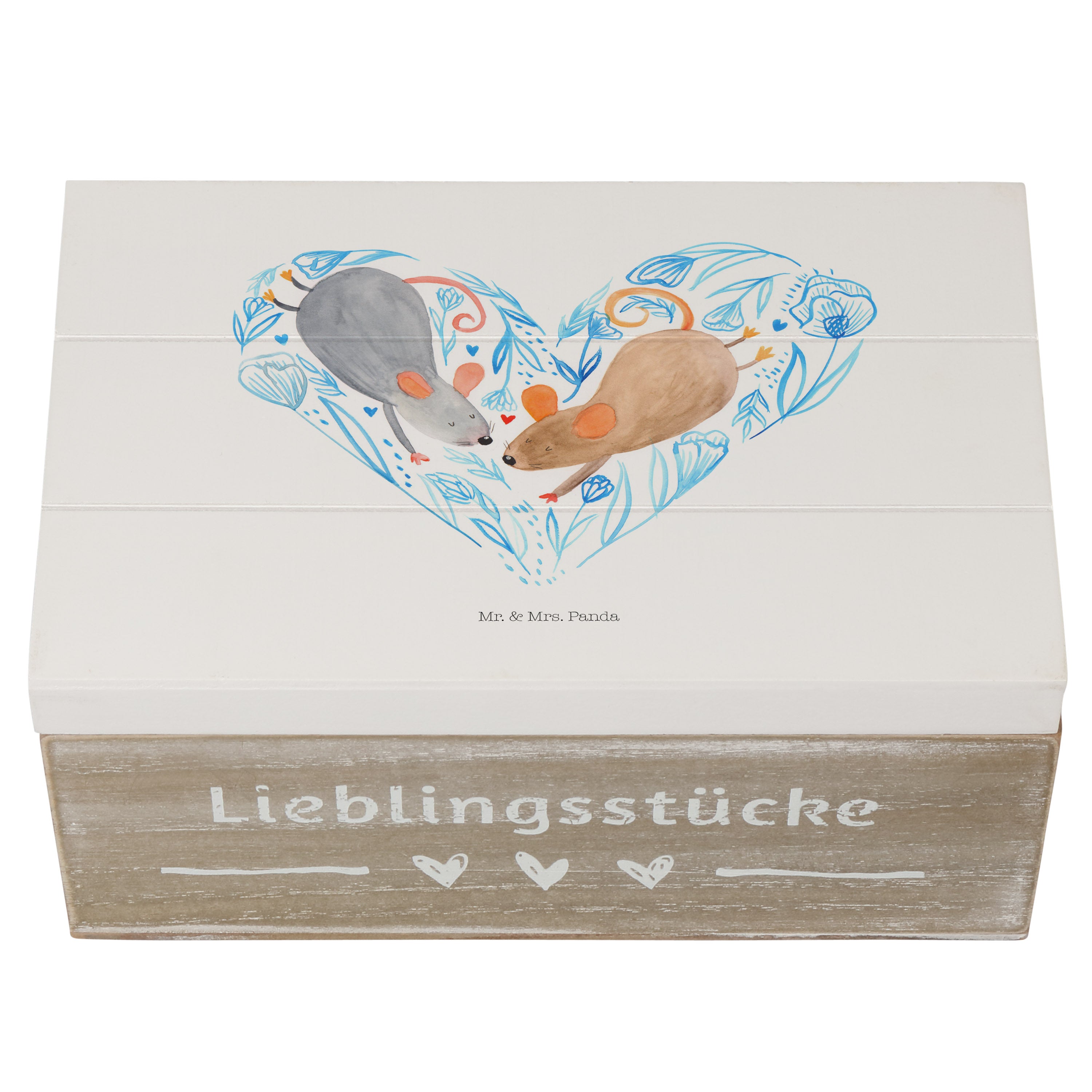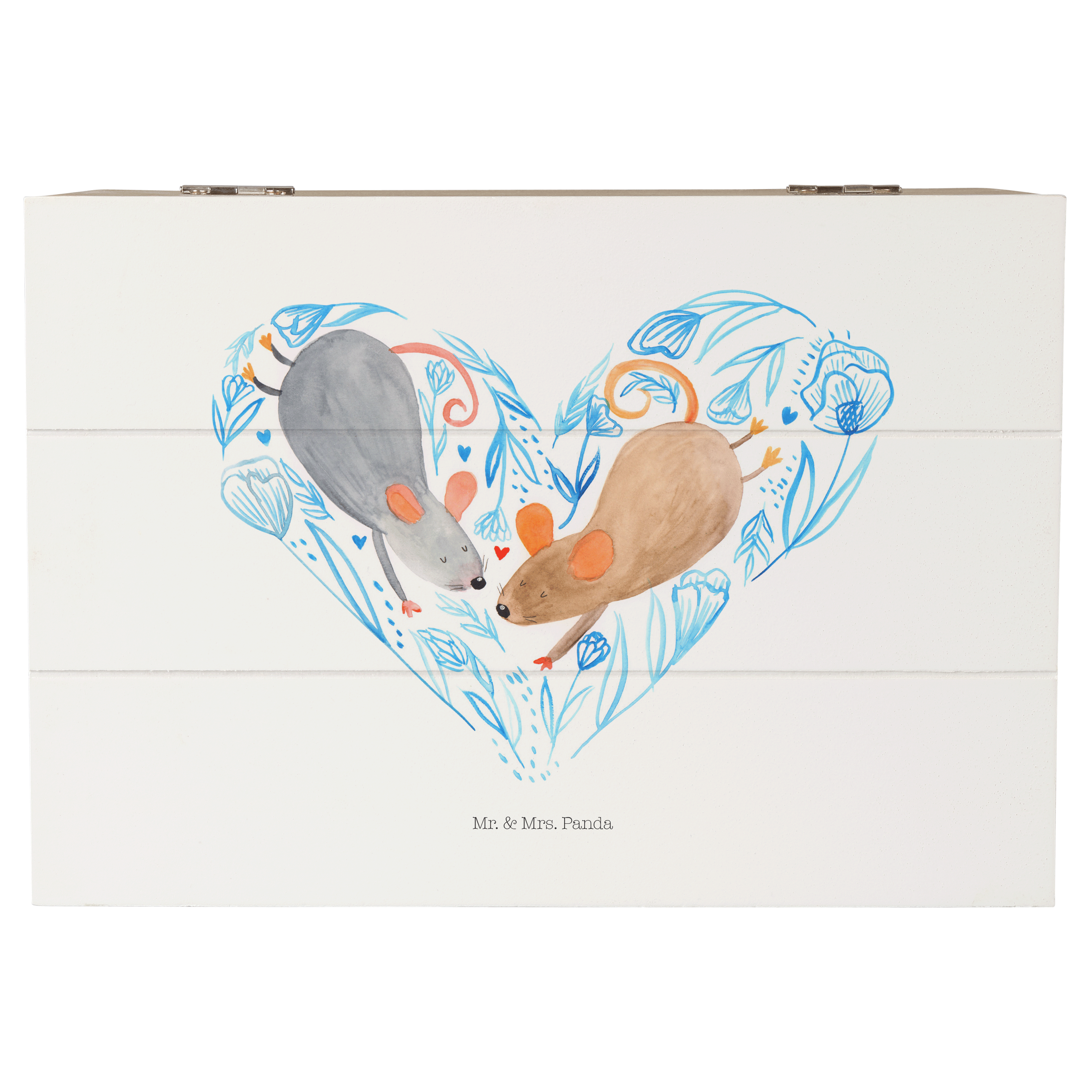 Holzkiste Mäuse Herz - 25 x 18 cm - mit Spruch - Weiß