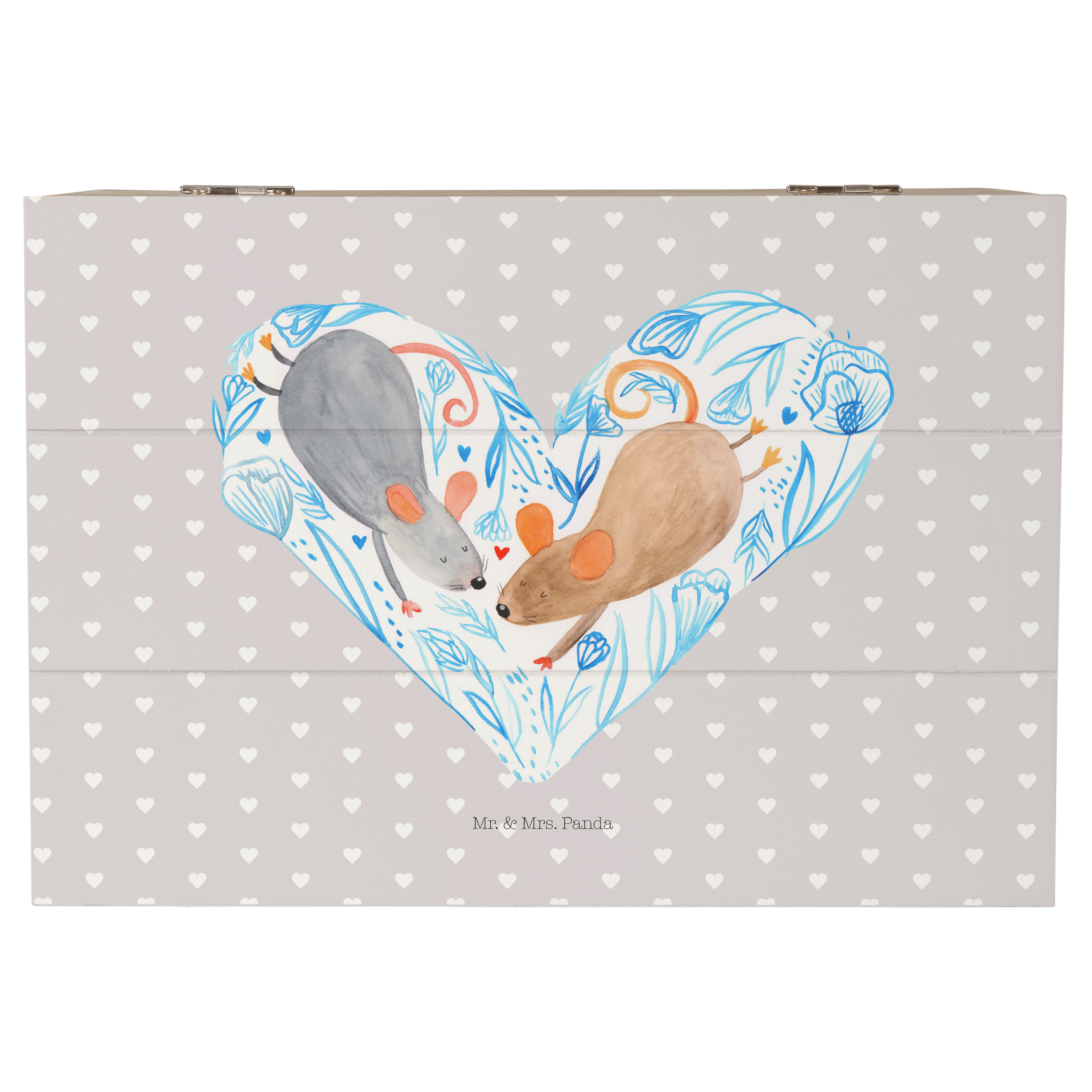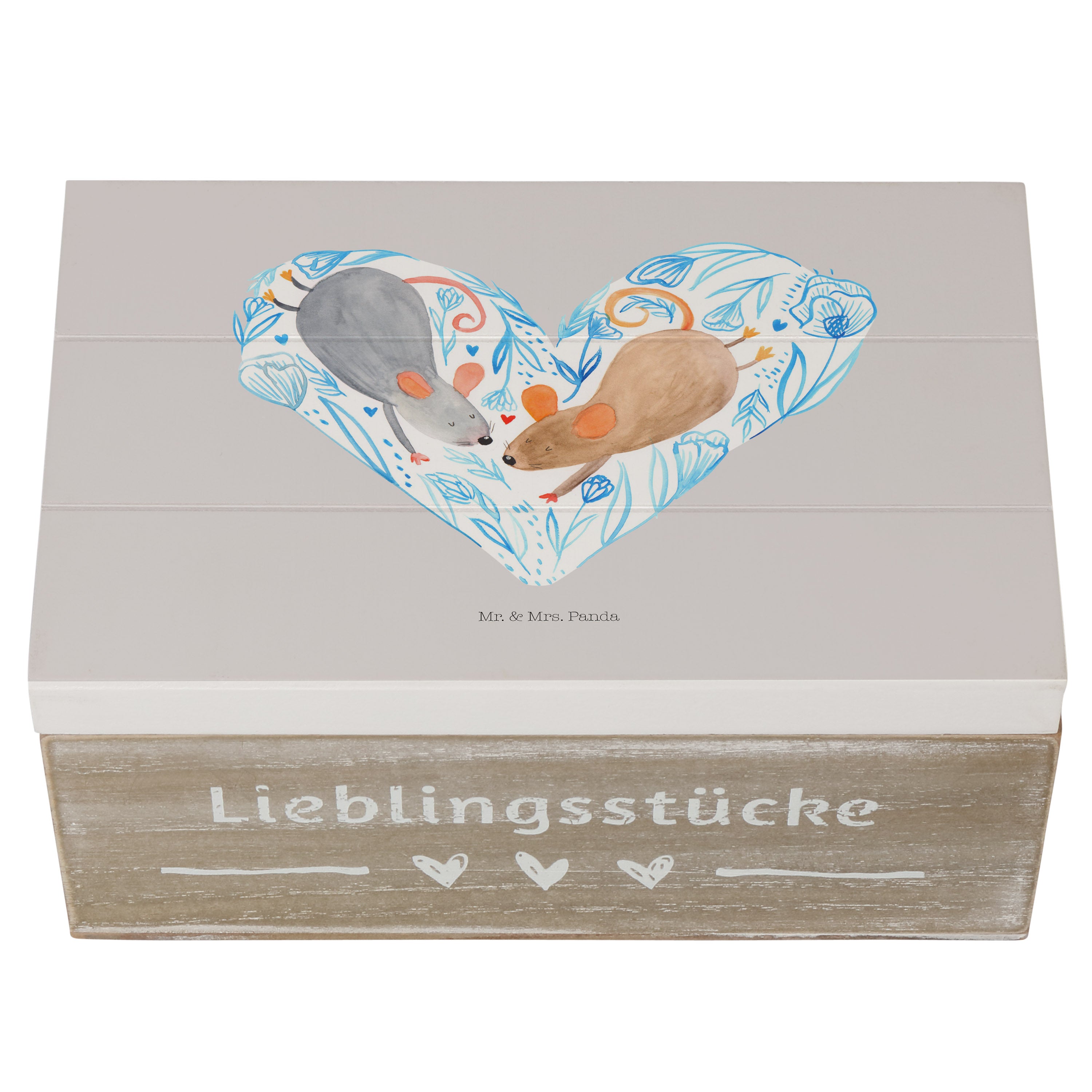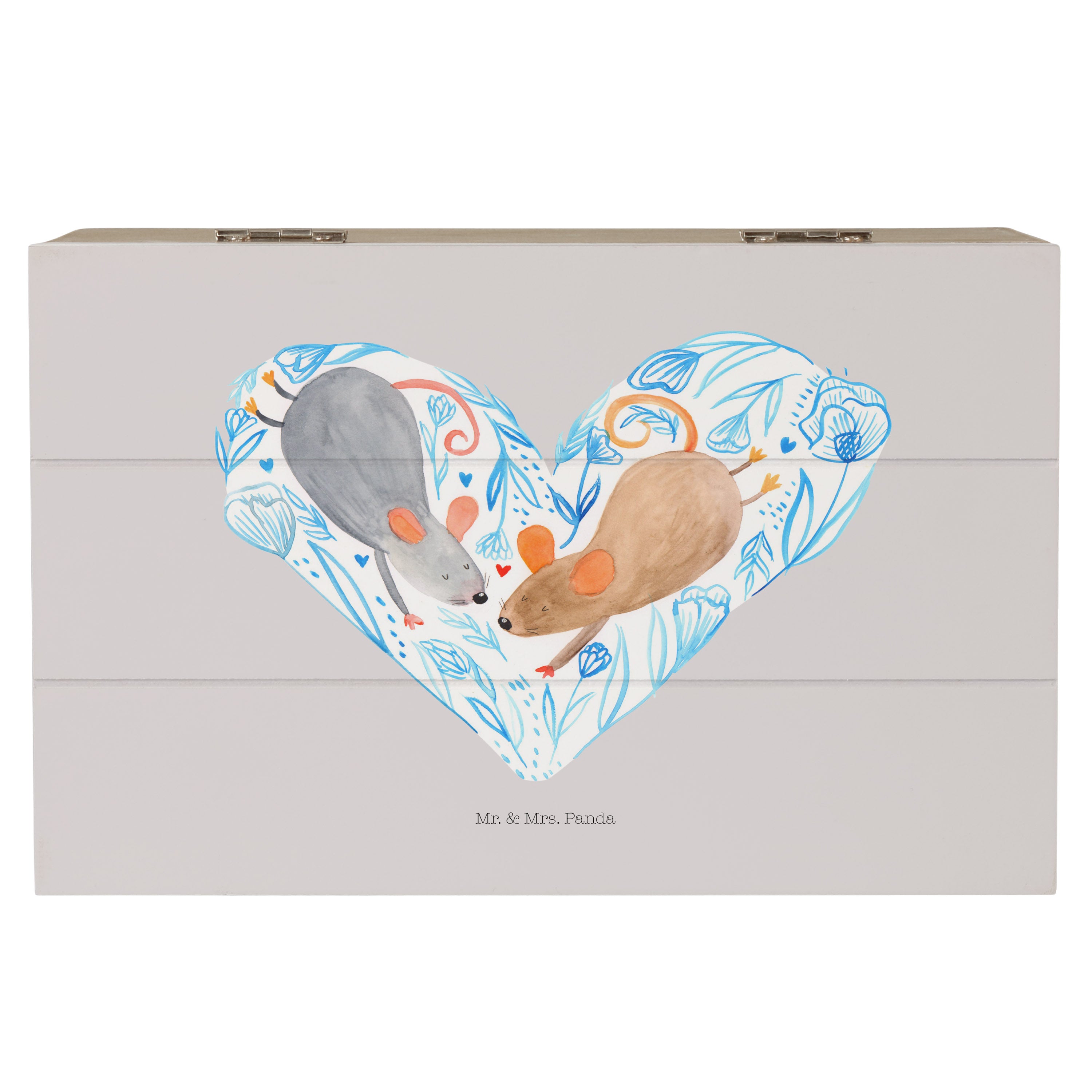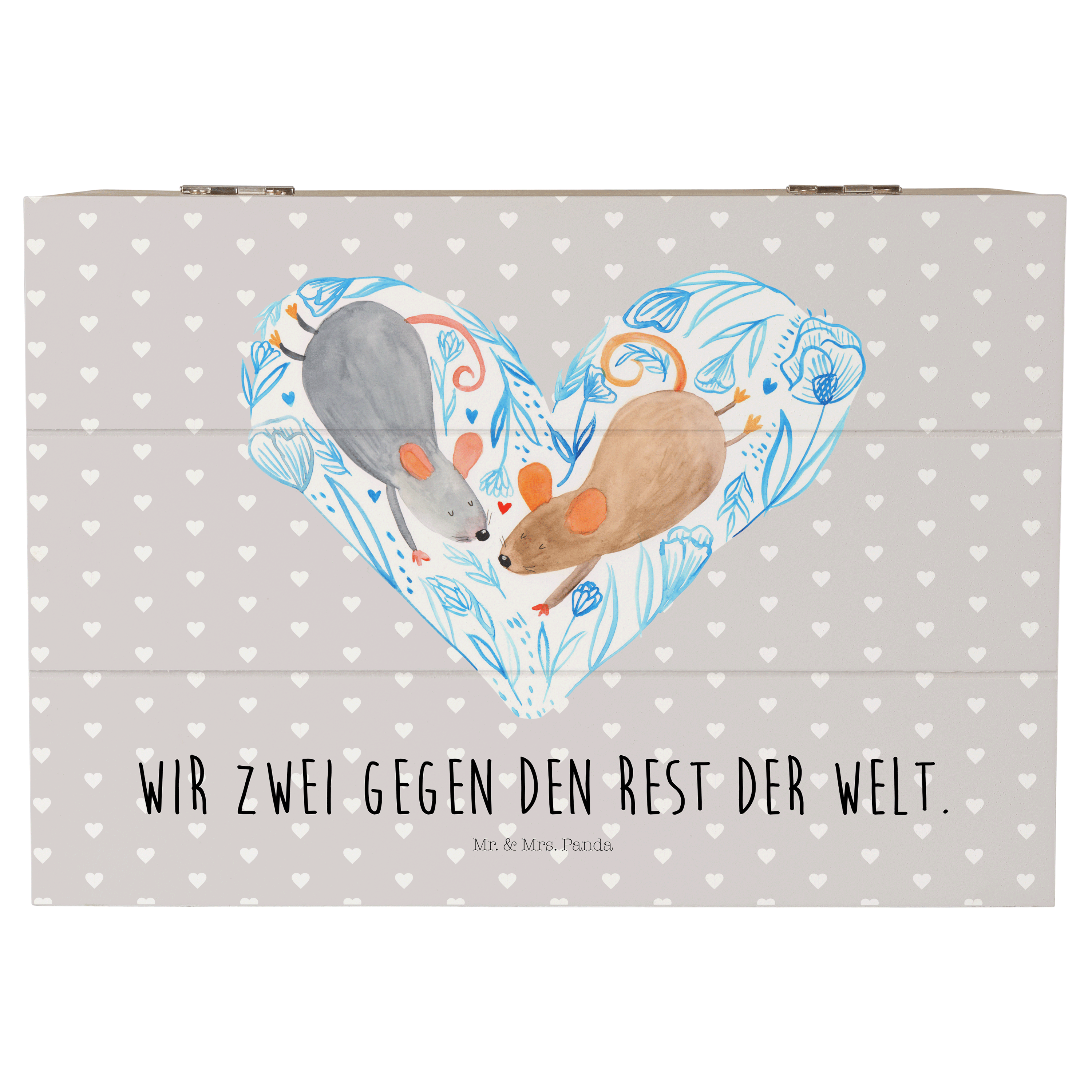 Holzkiste Mäuse Herz - 25 x 18 cm - mit Spruch - Weiß