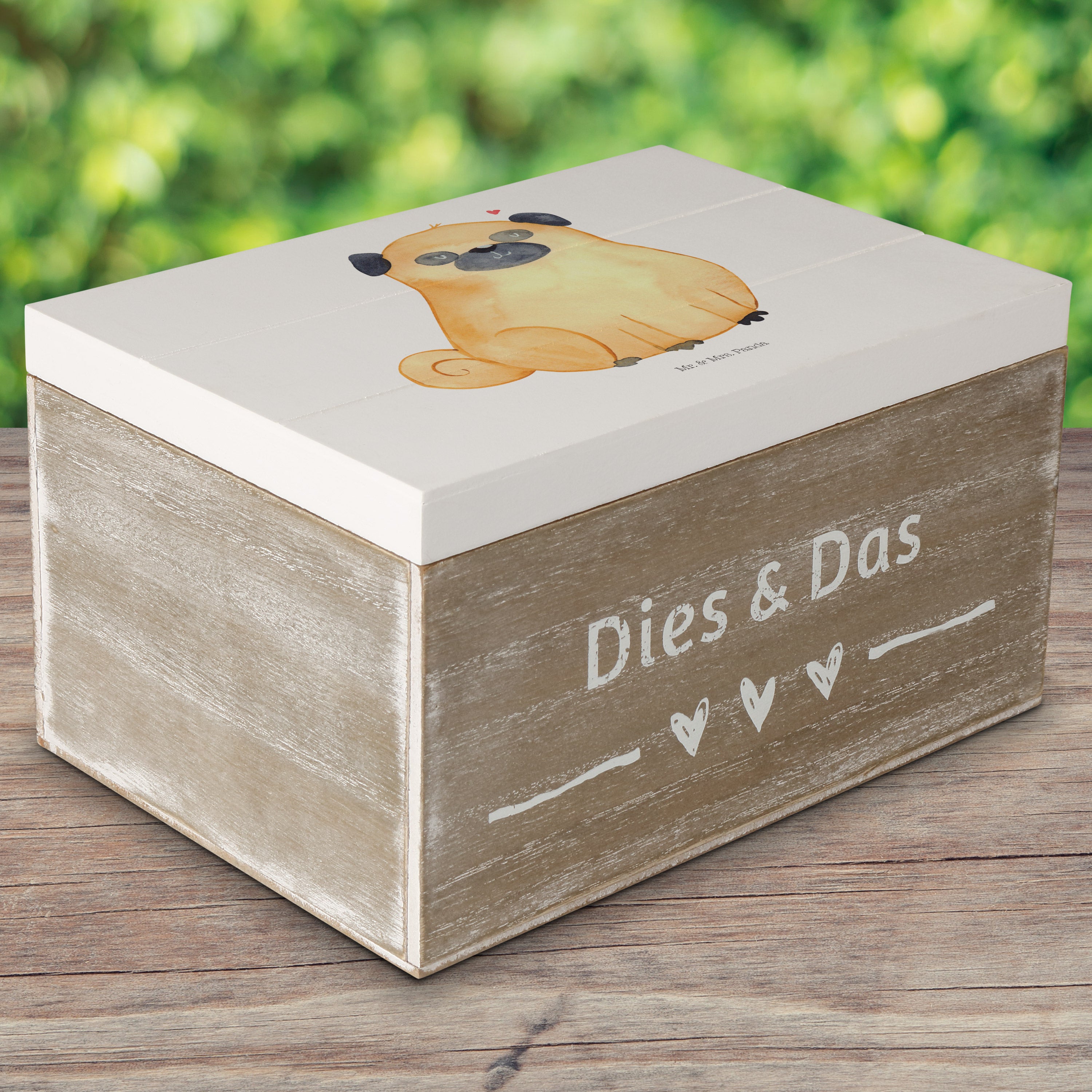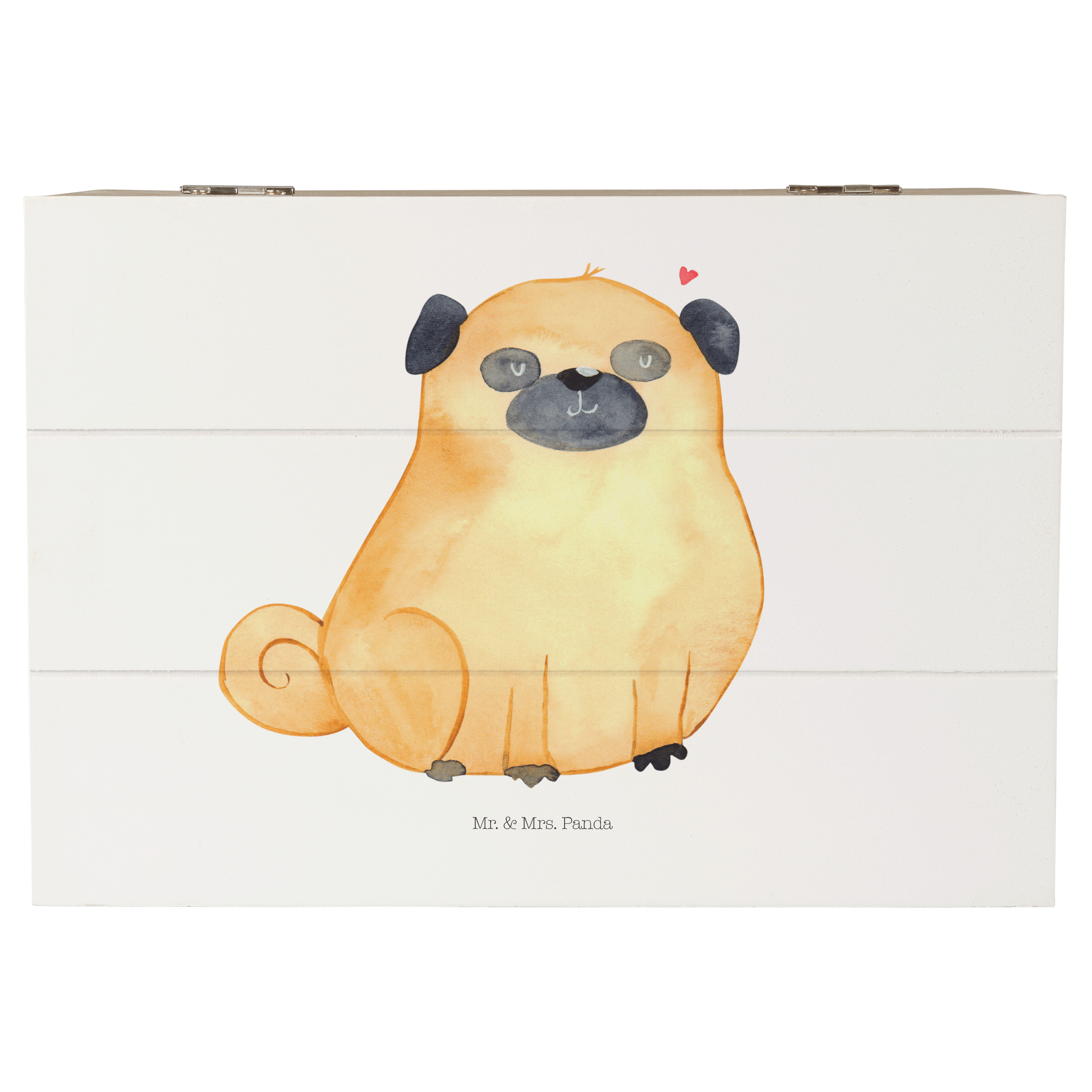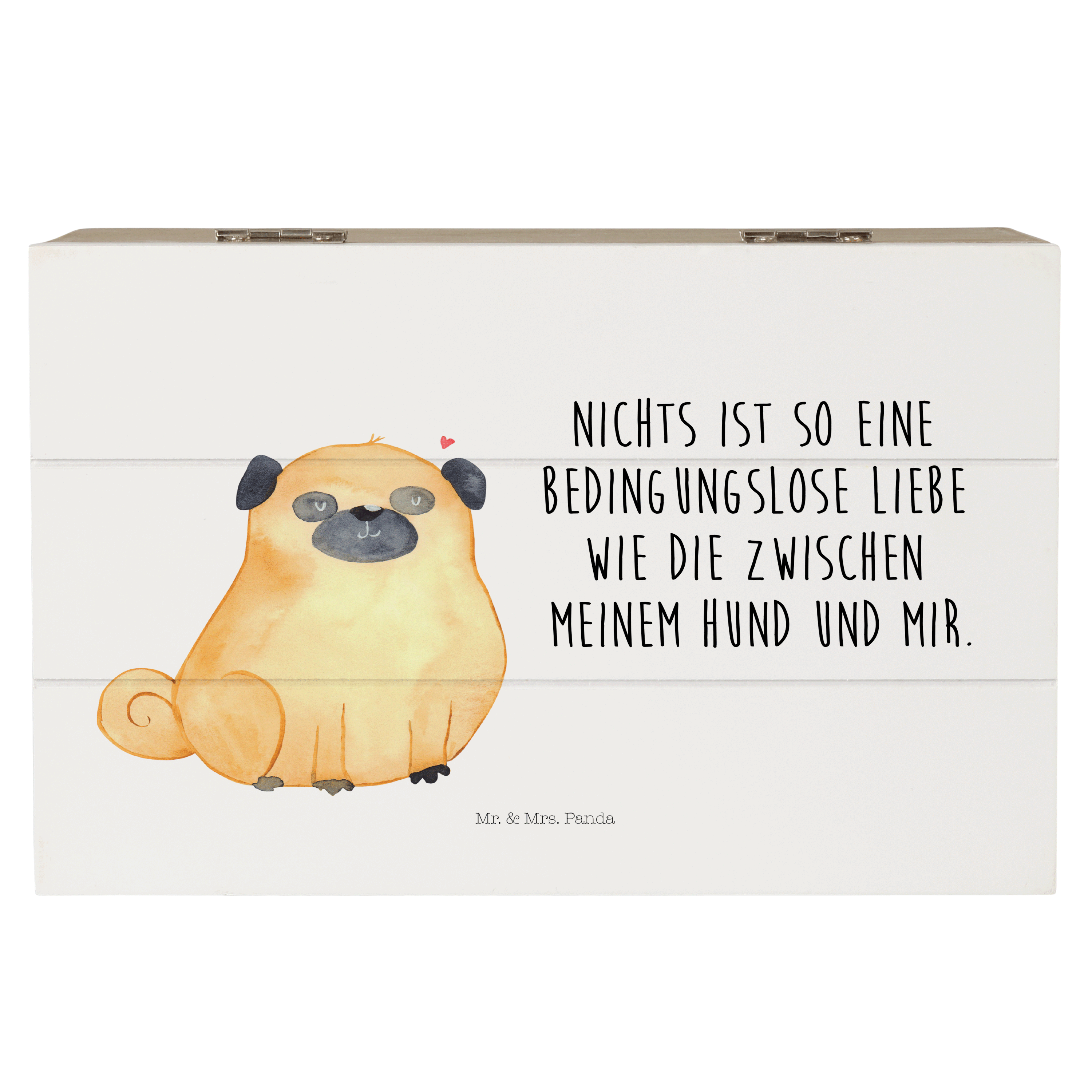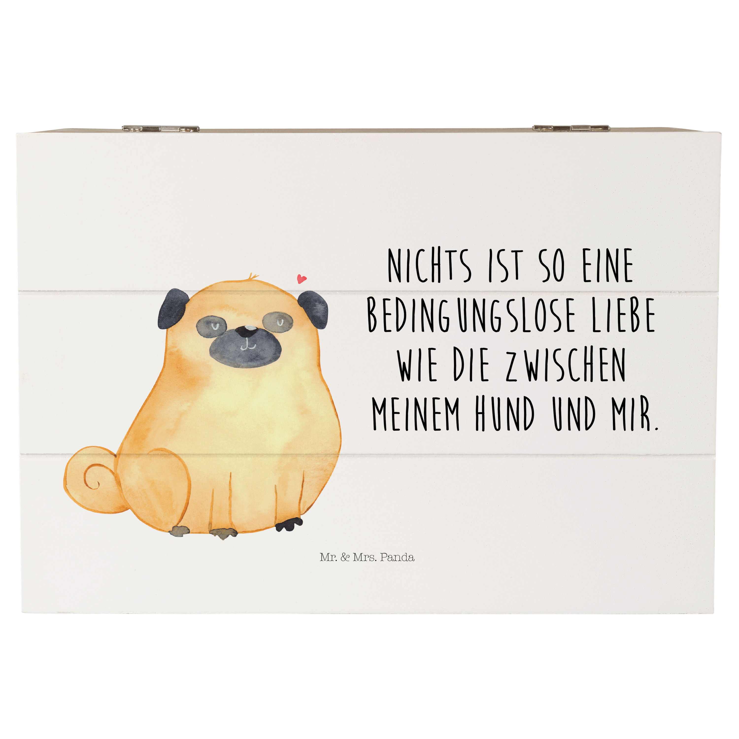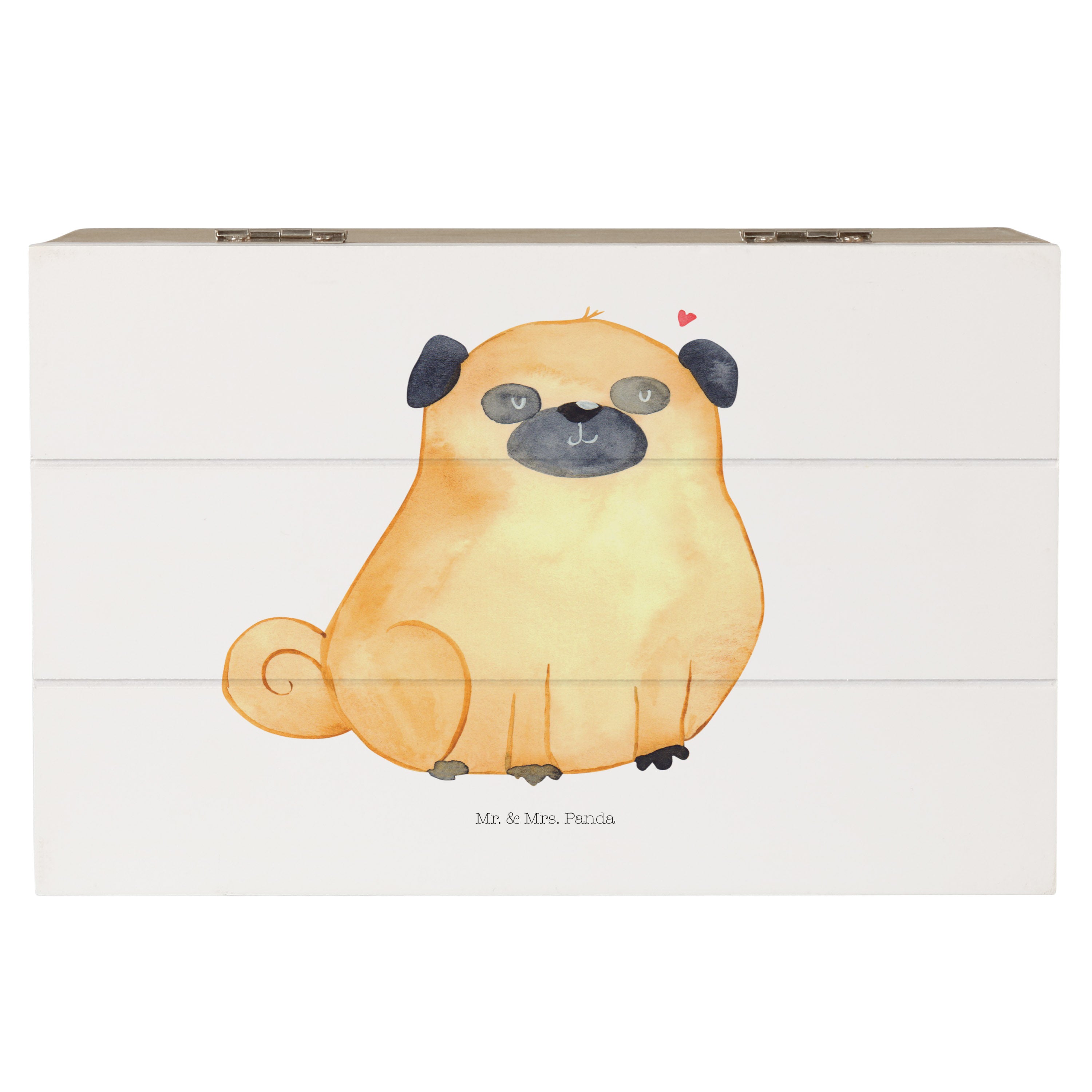 Holzkiste Mops - 25 x 18 cm - mit Spruch - Weiß