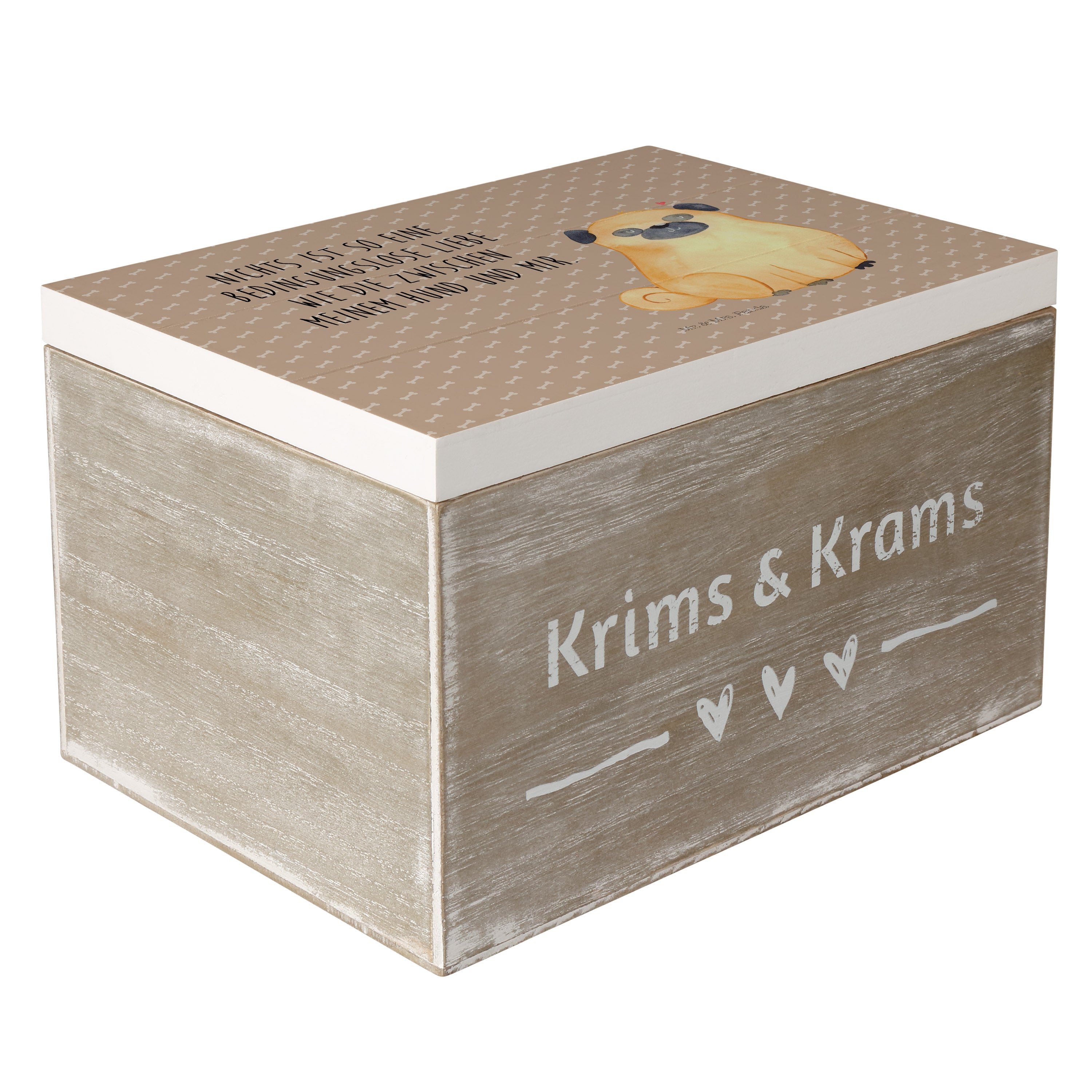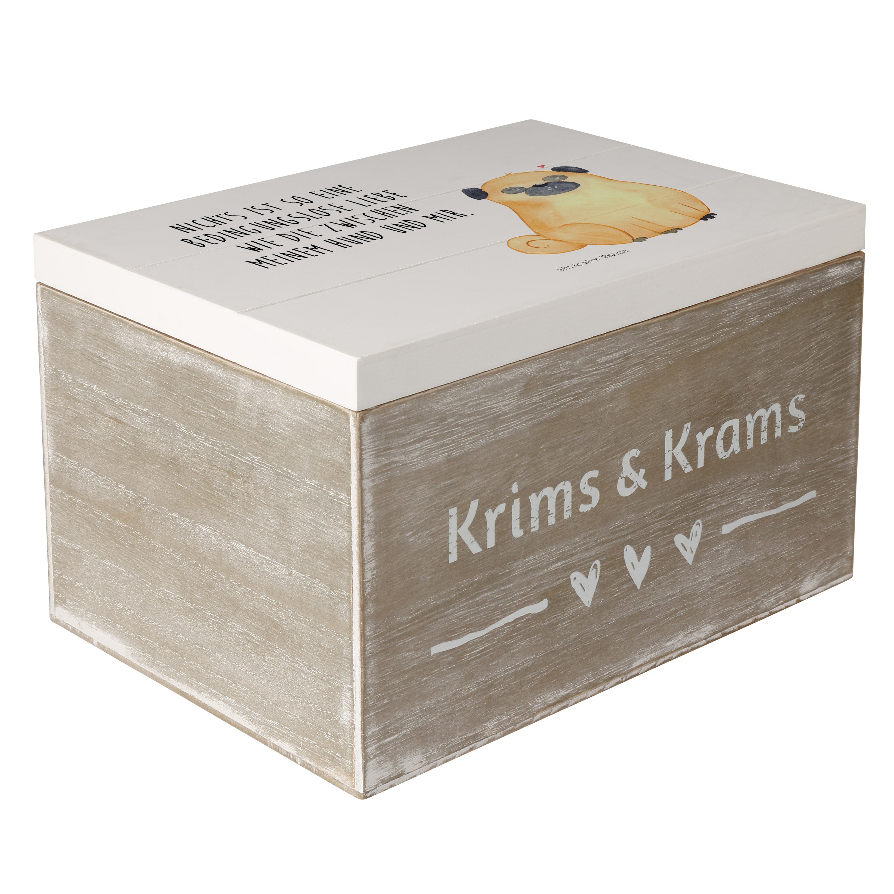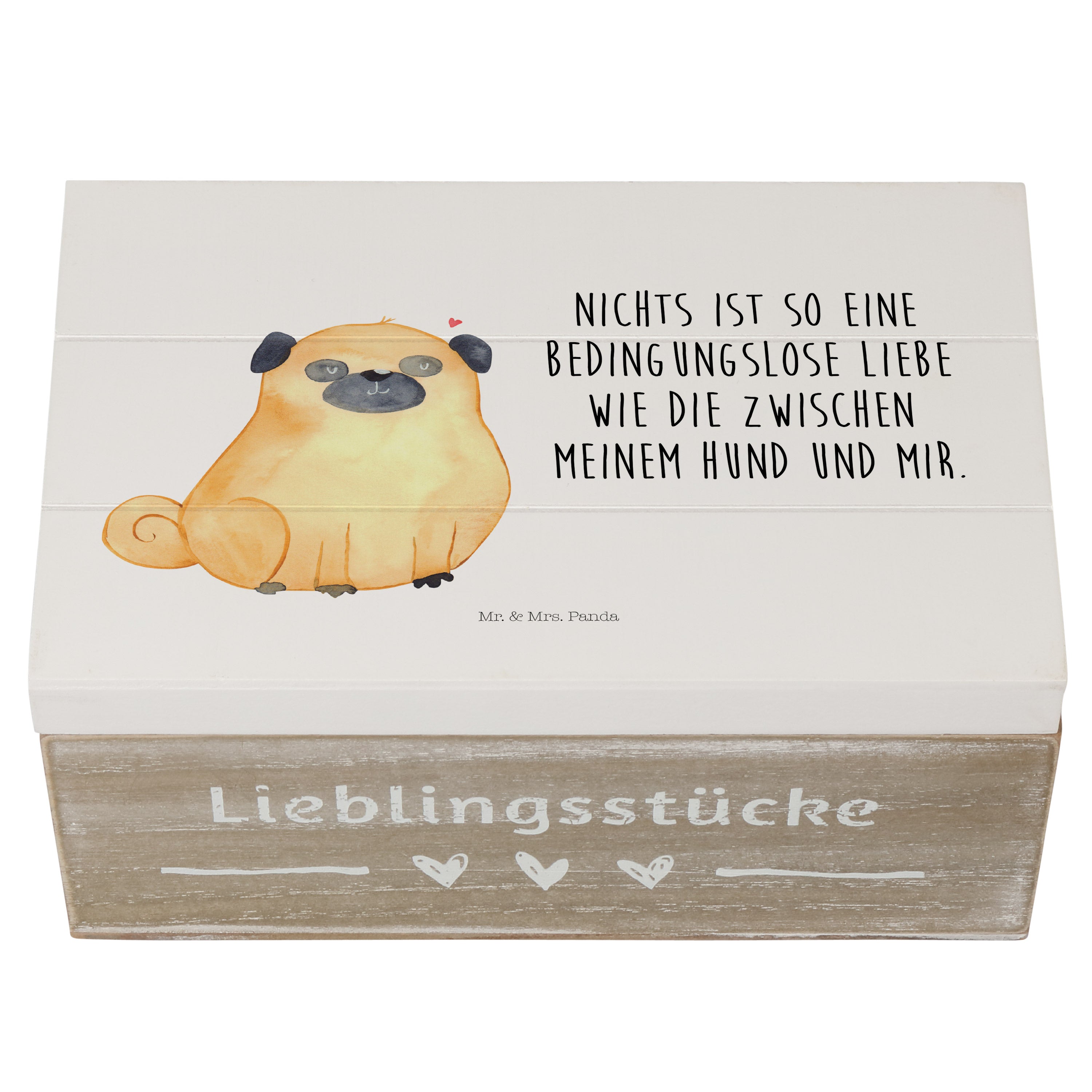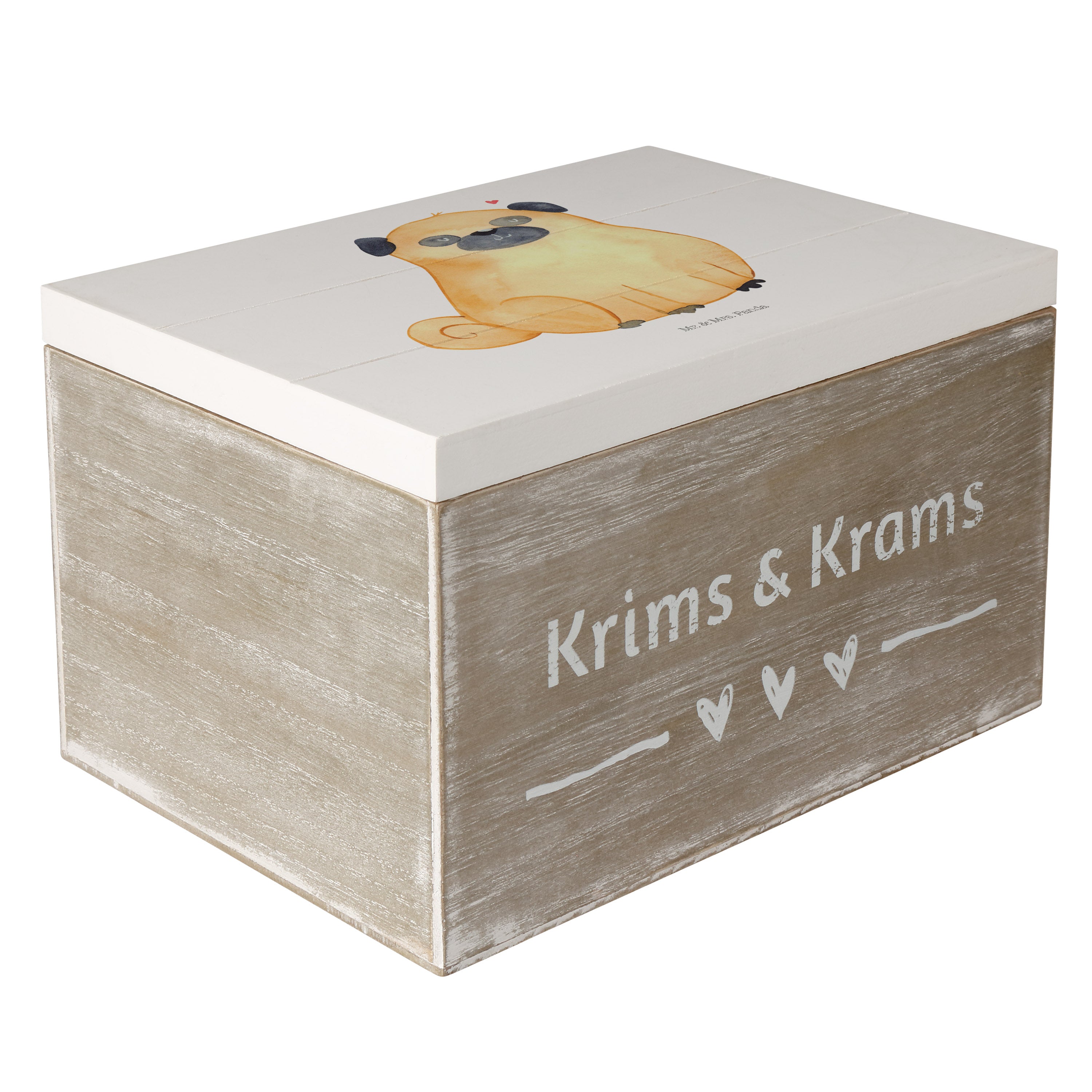 Holzkiste Mops - 25 x 18 cm - mit Spruch - Weiß