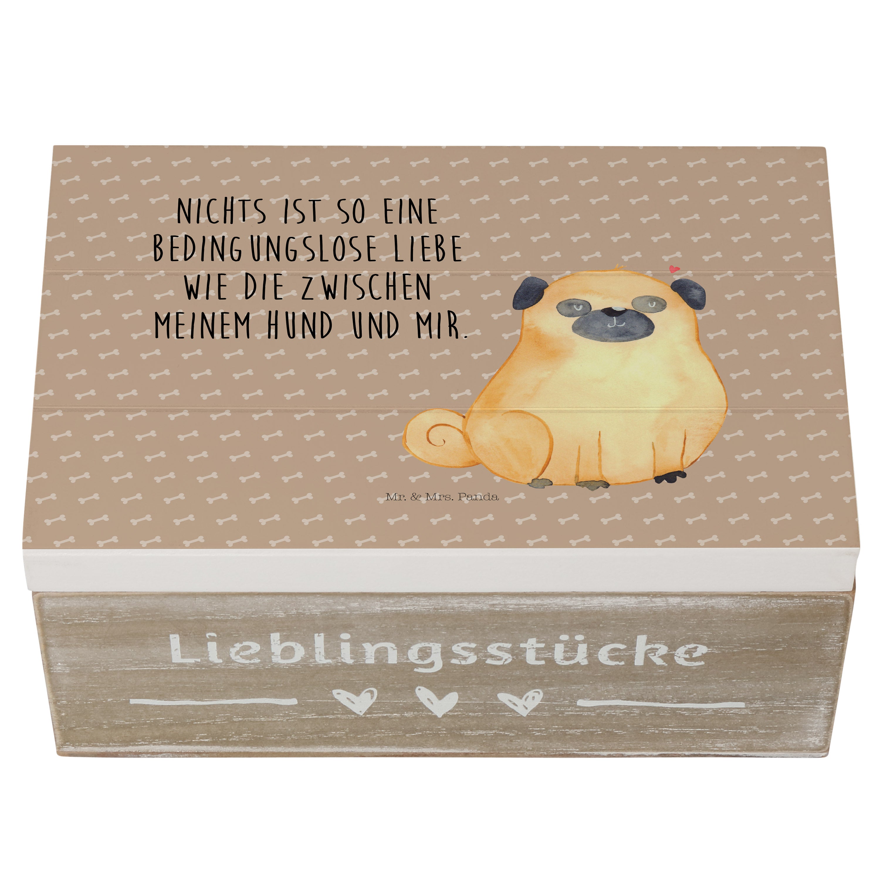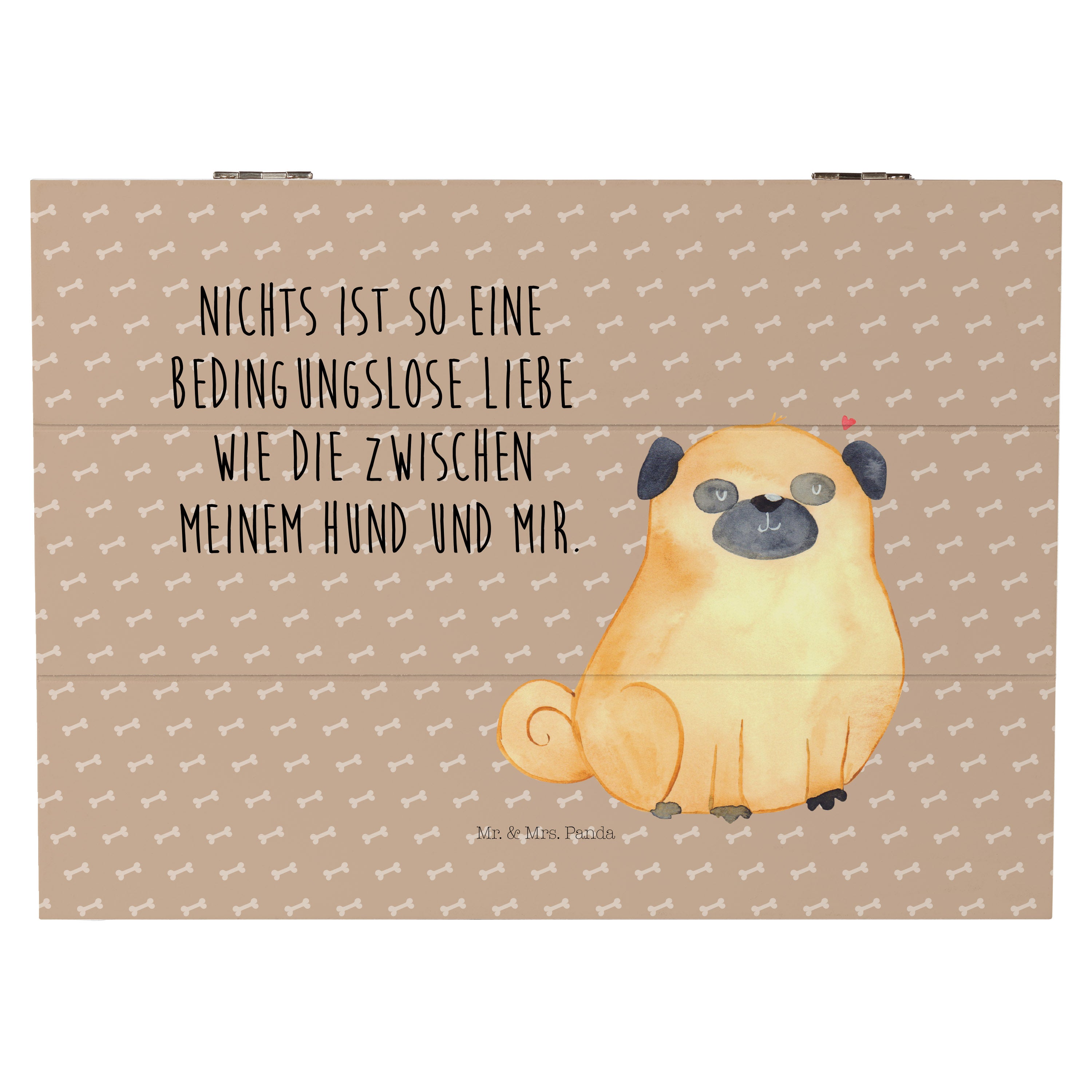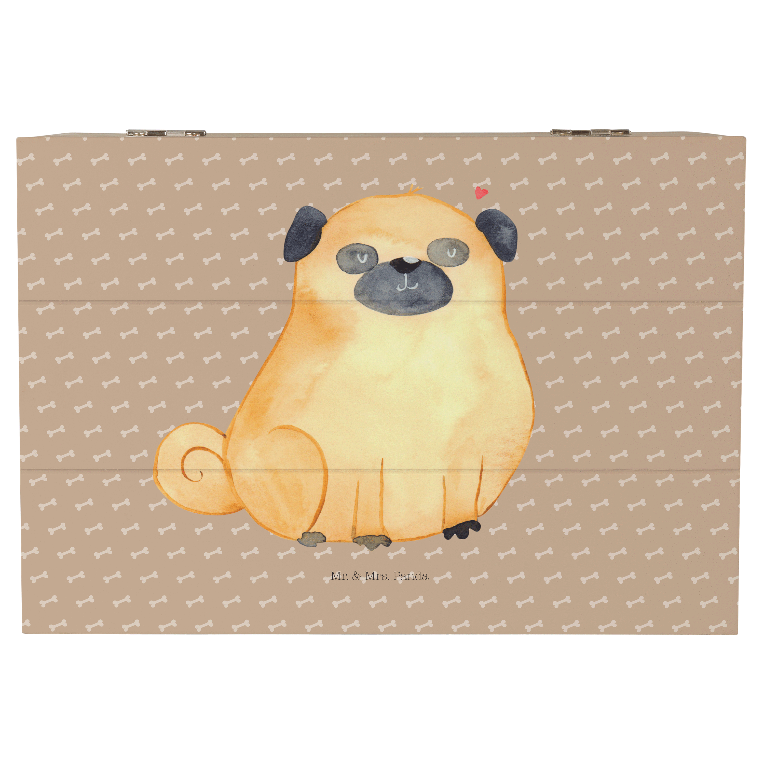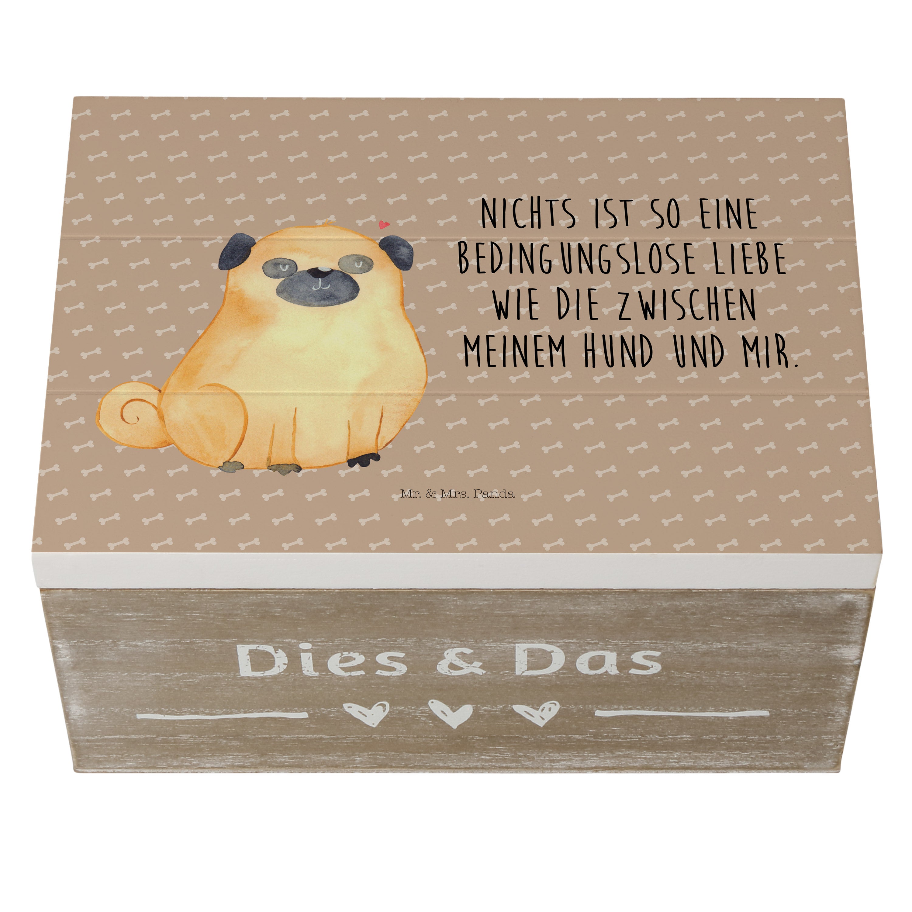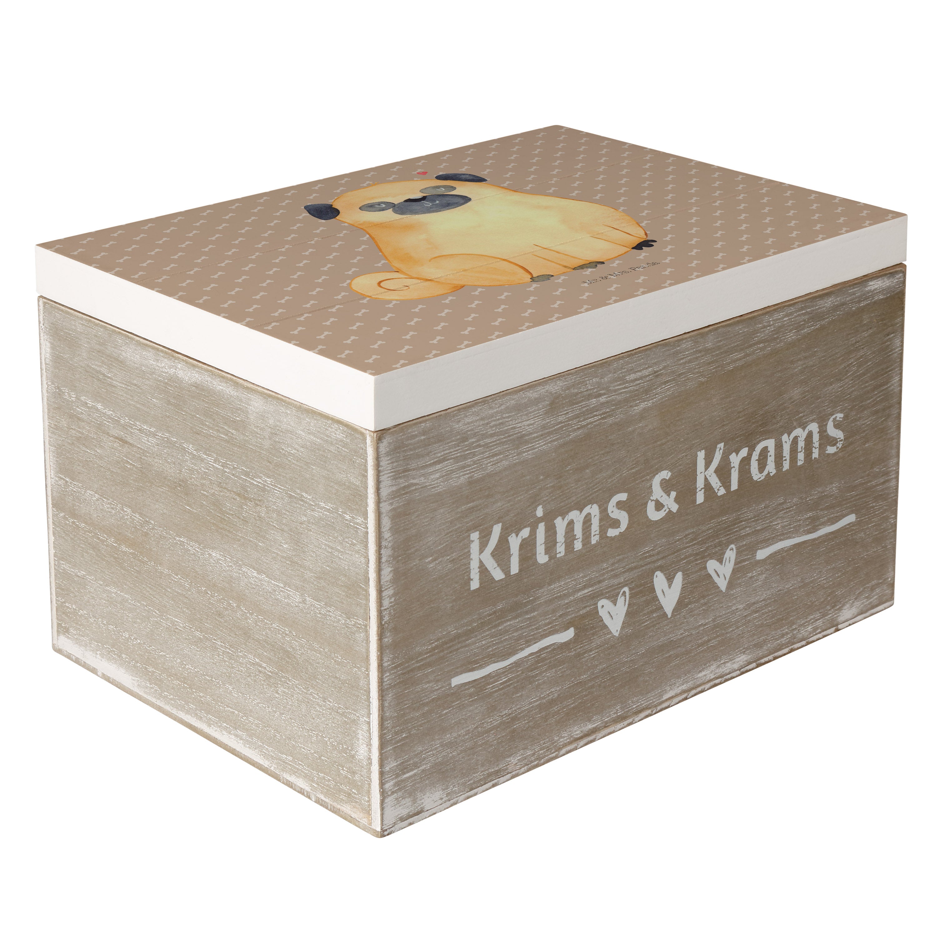 Holzkiste Mops - 25 x 18 cm - mit Spruch - Weiß