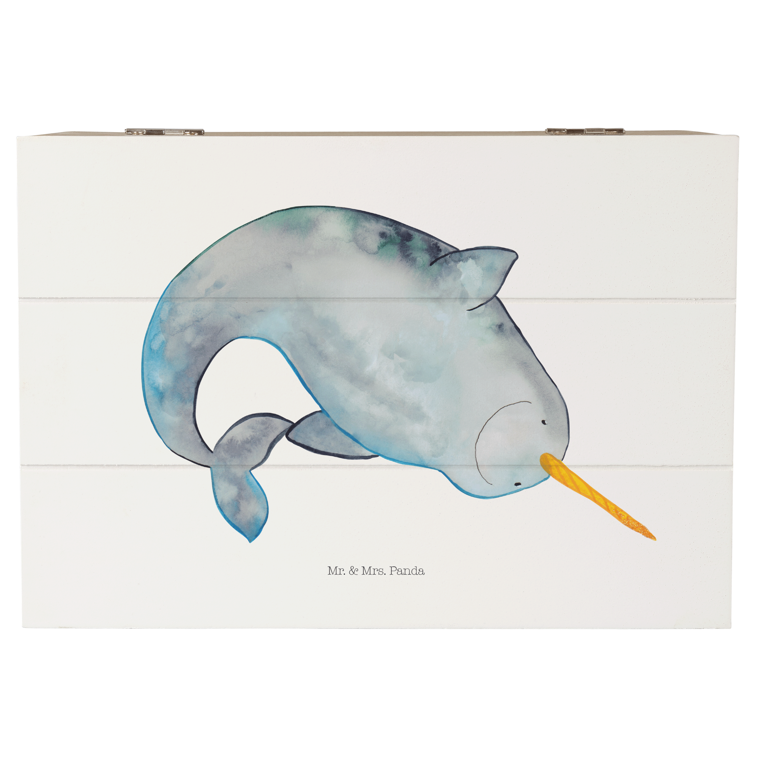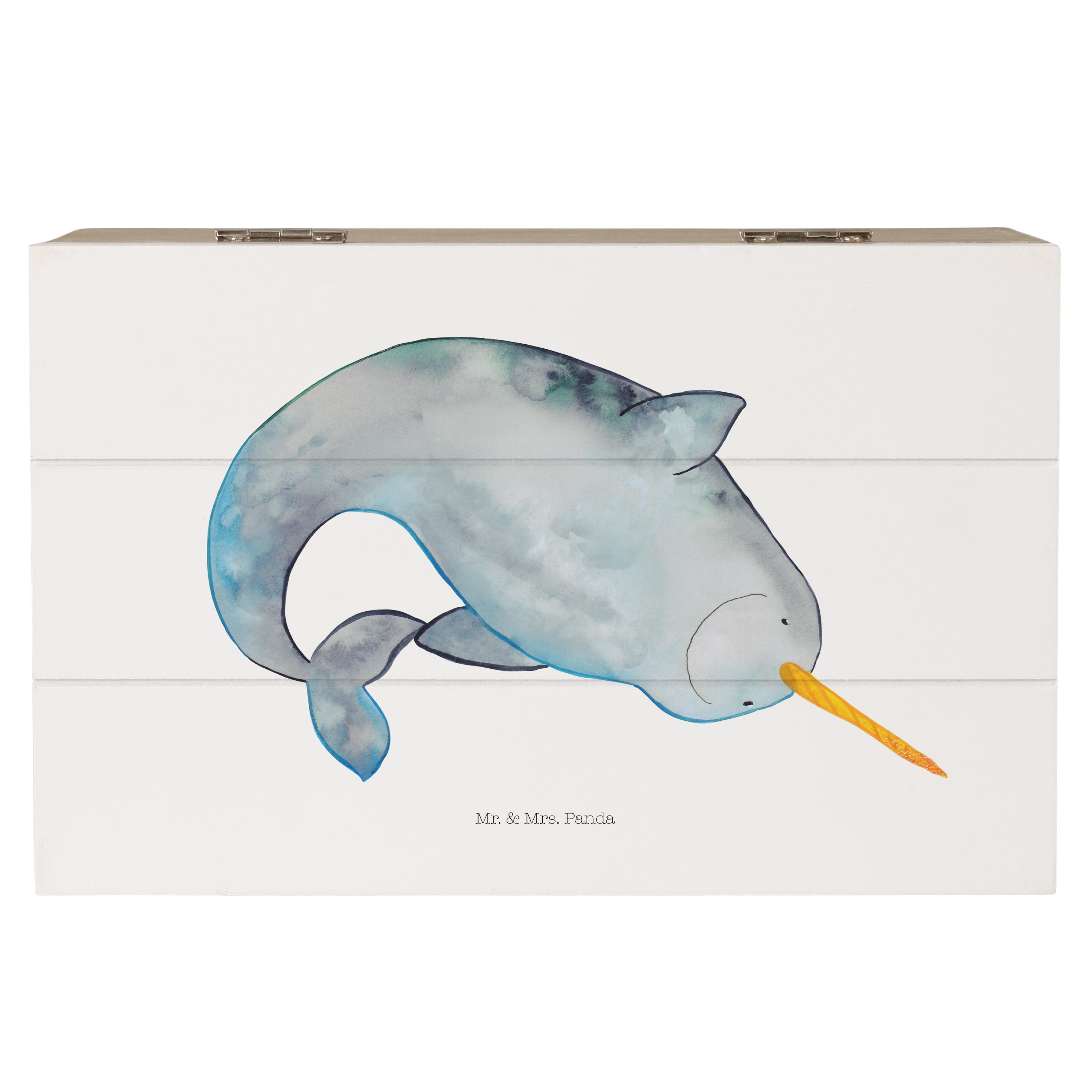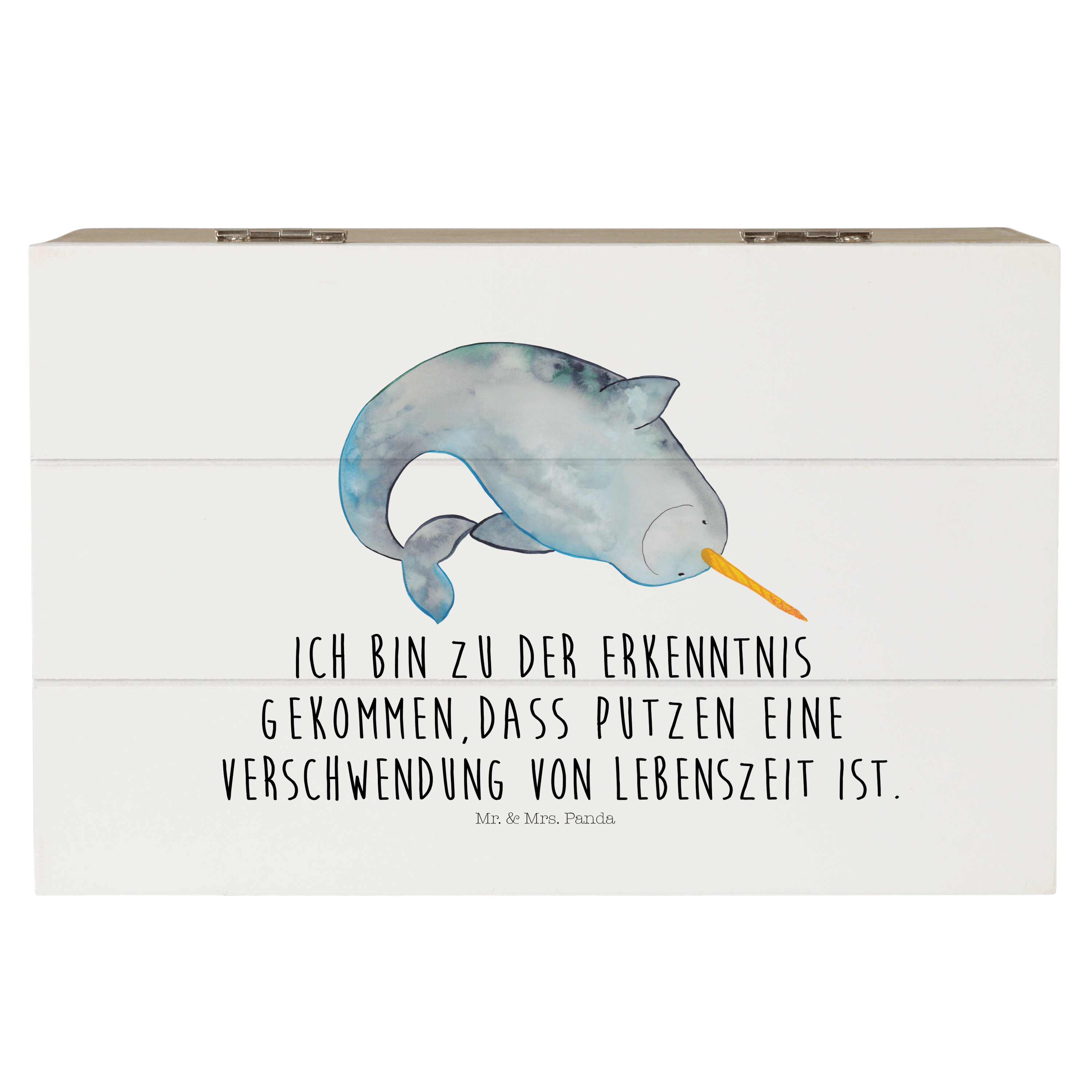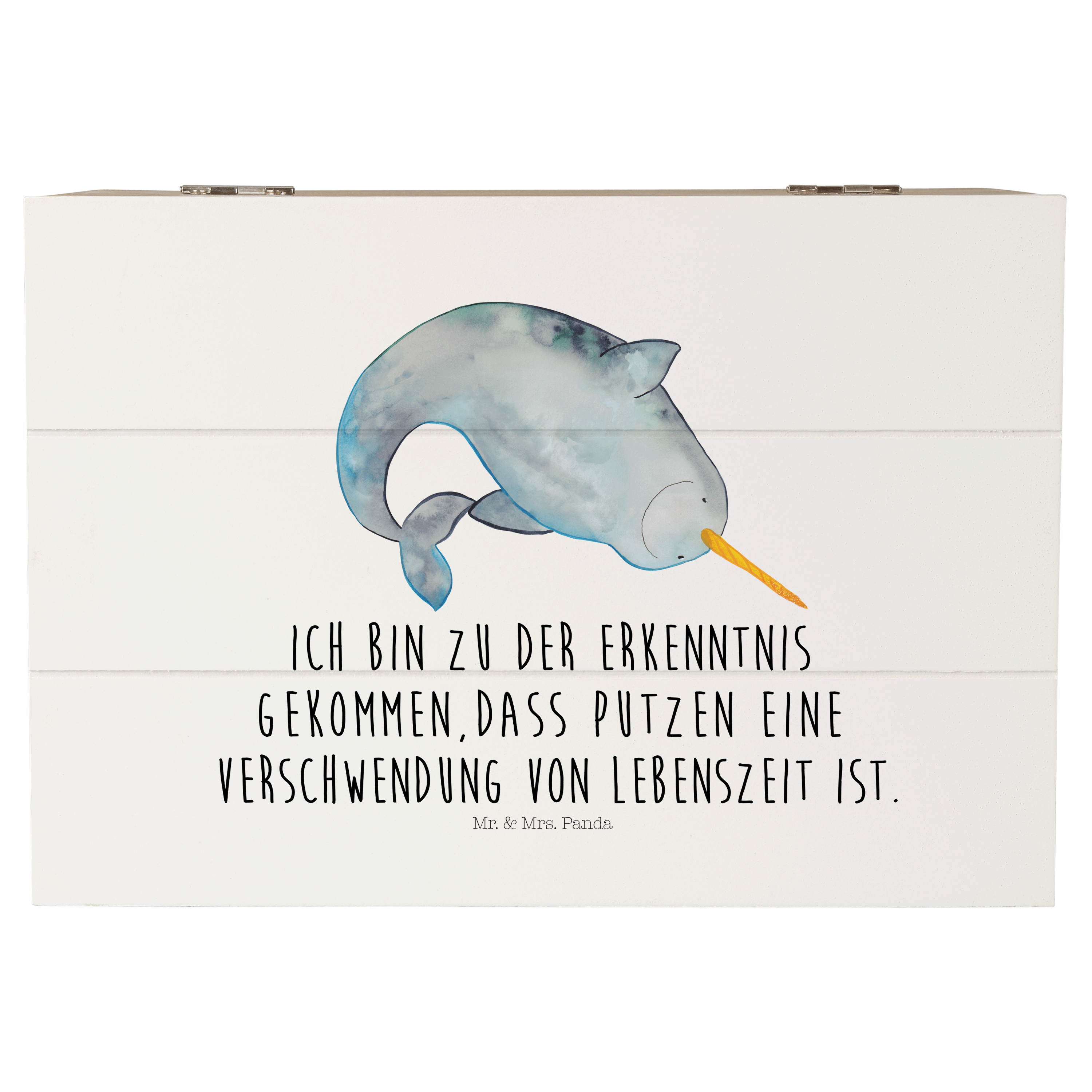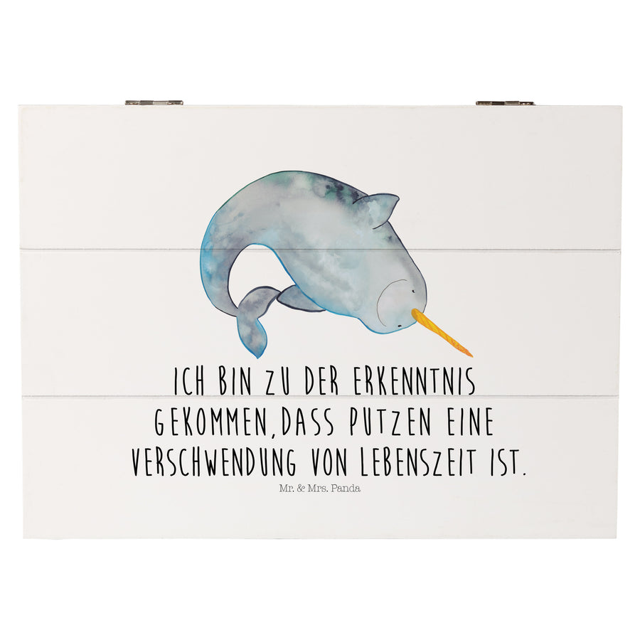 Holzkiste Narwal - 25 x 18 cm - mit Spruch - Weiß