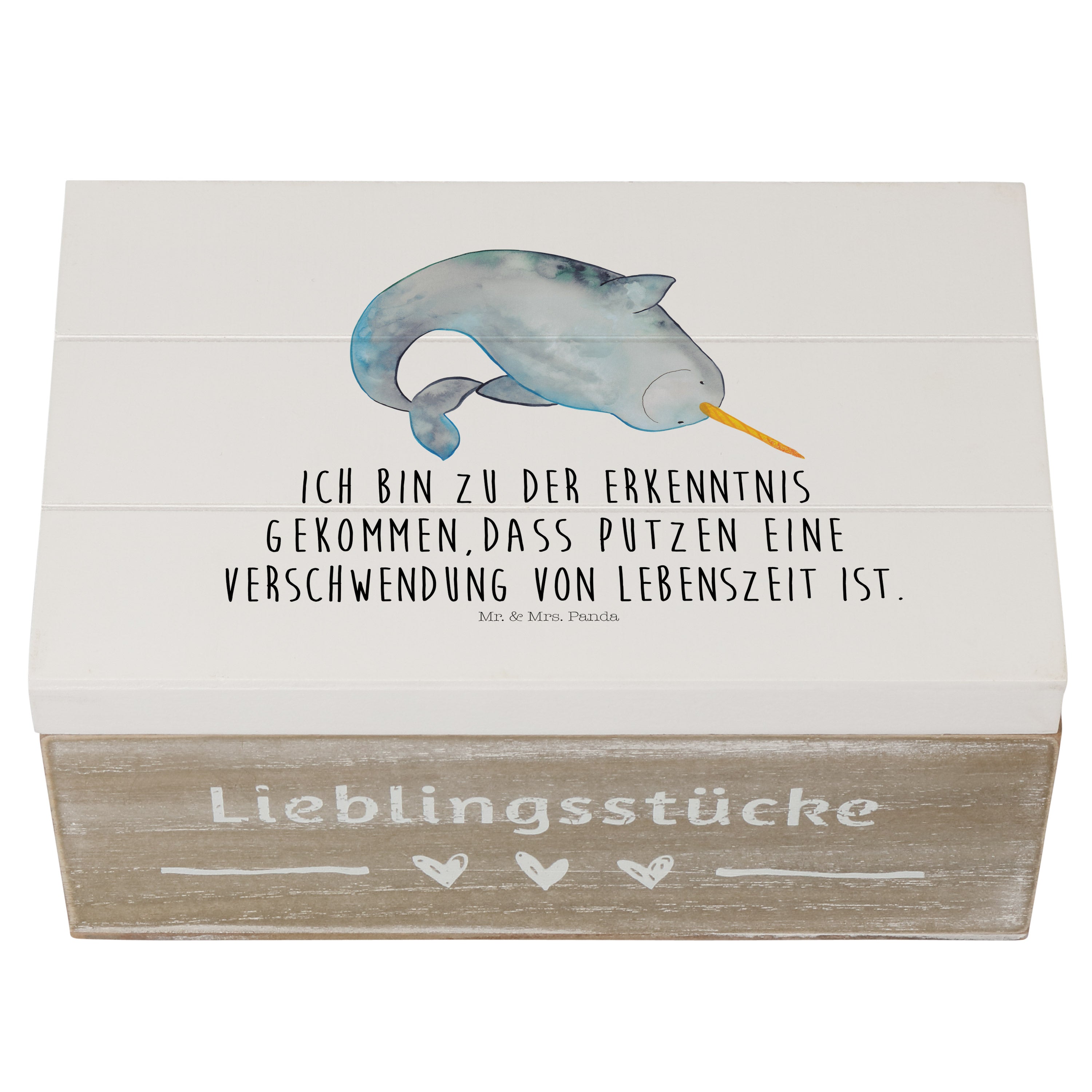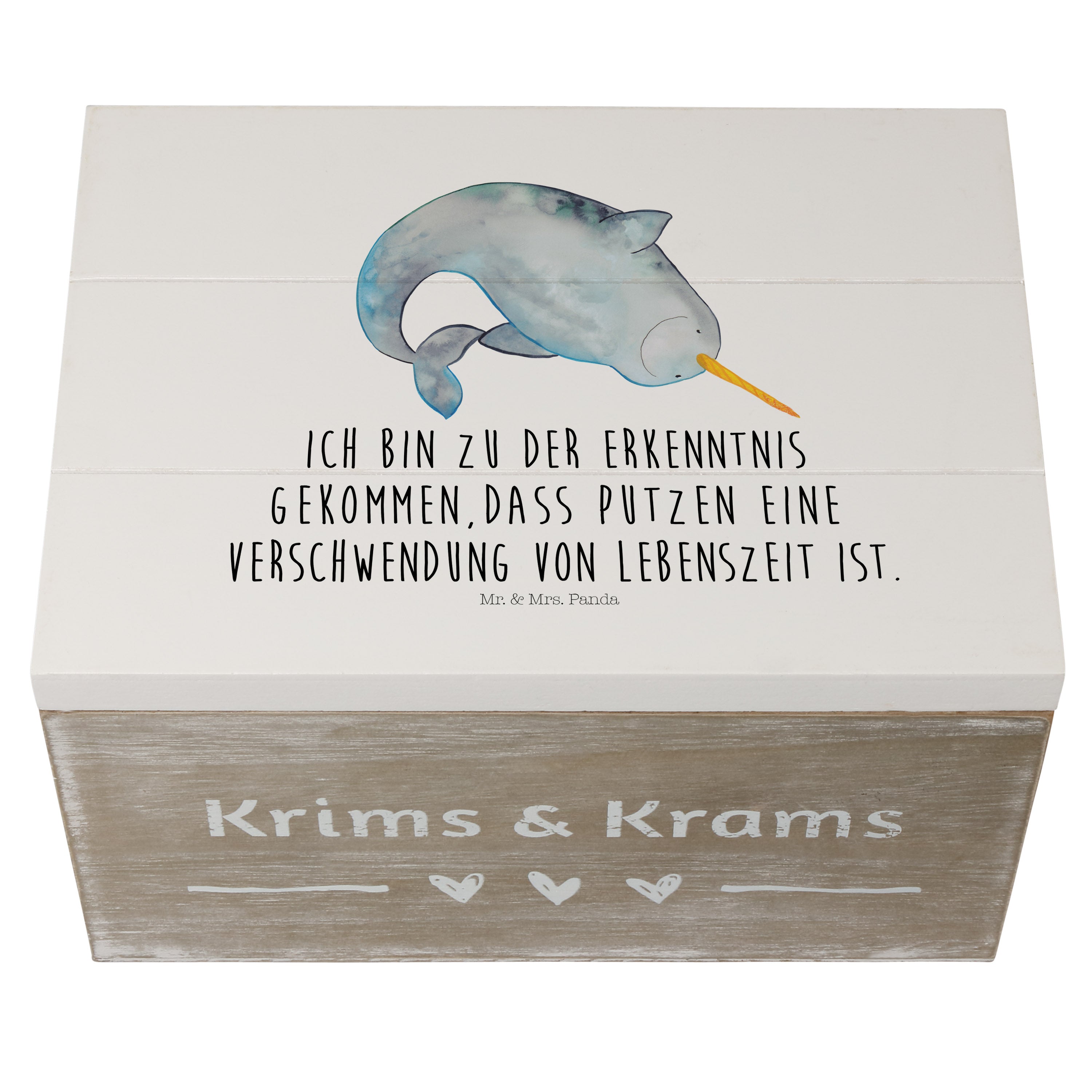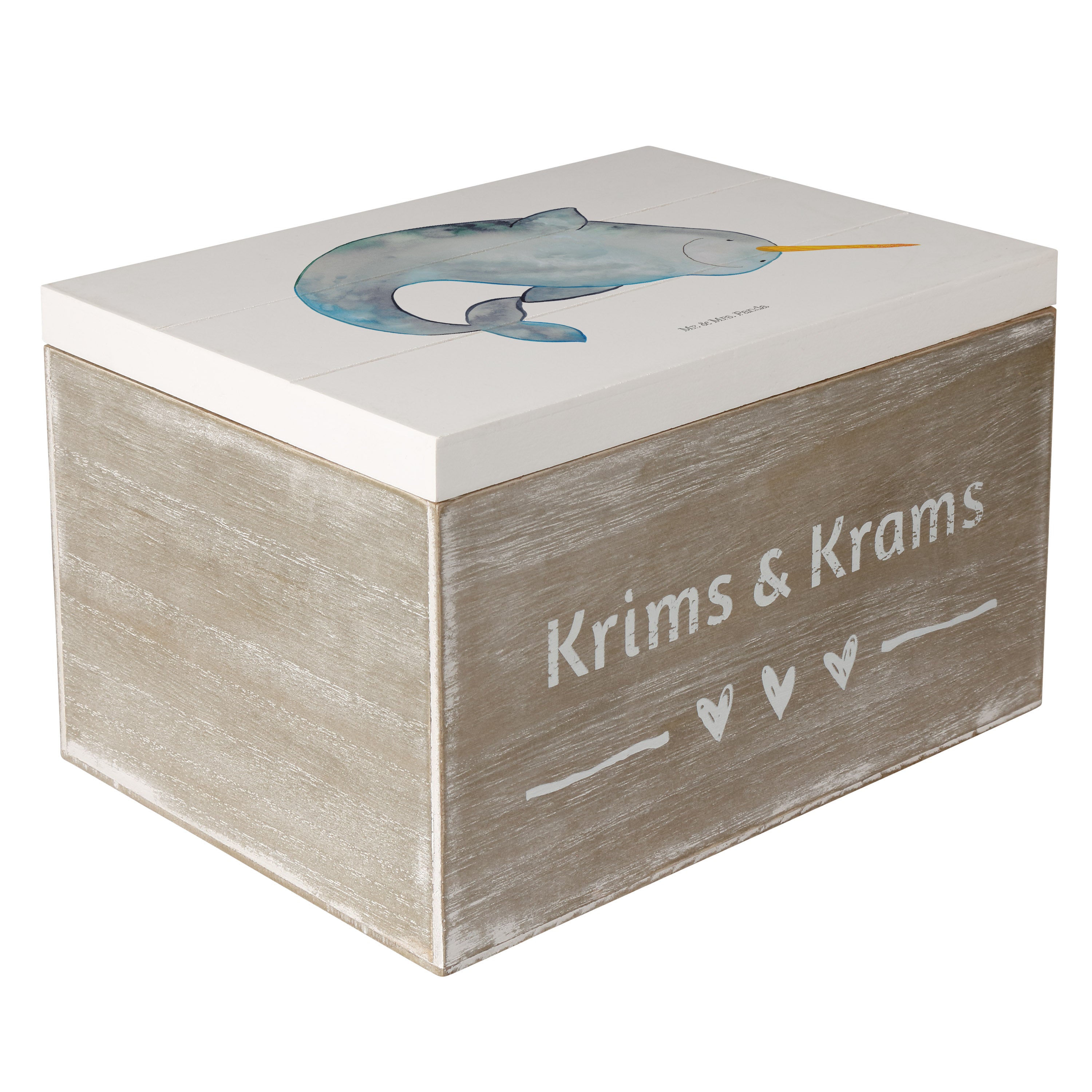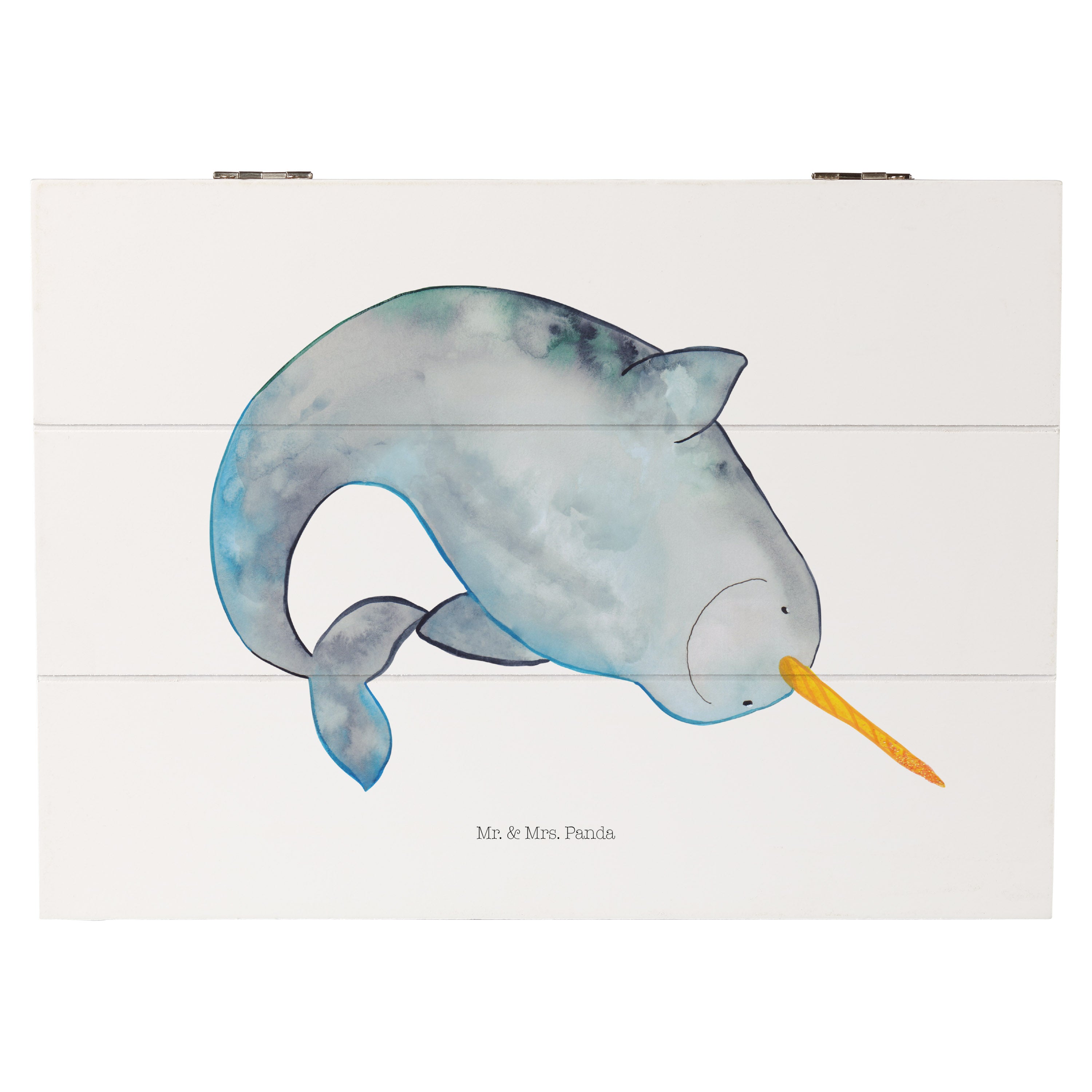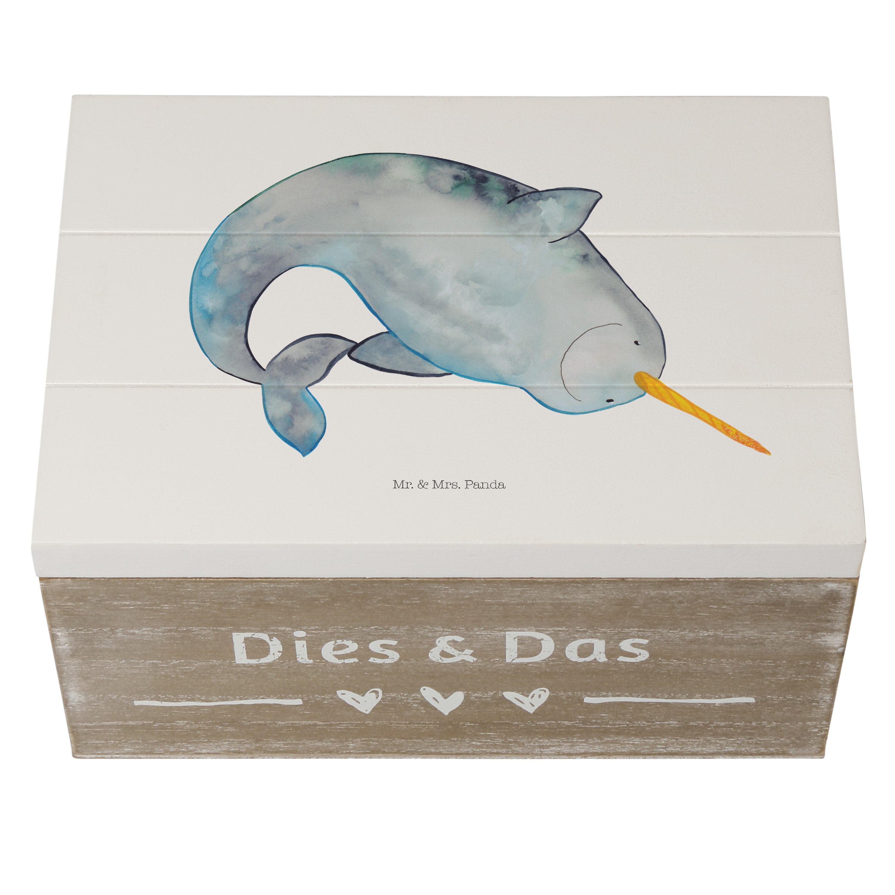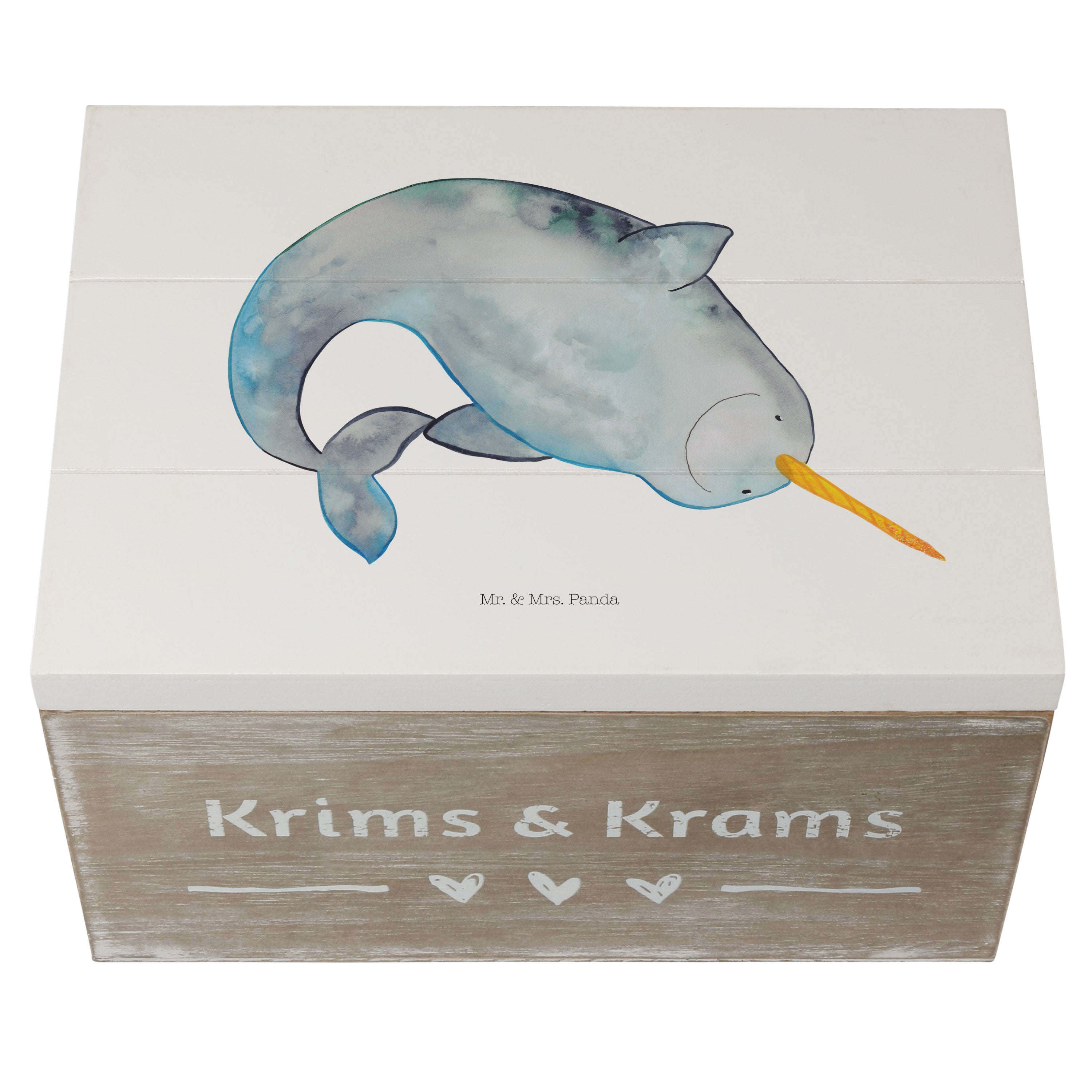 Holzkiste Narwal - 25 x 18 cm - mit Spruch - Weiß