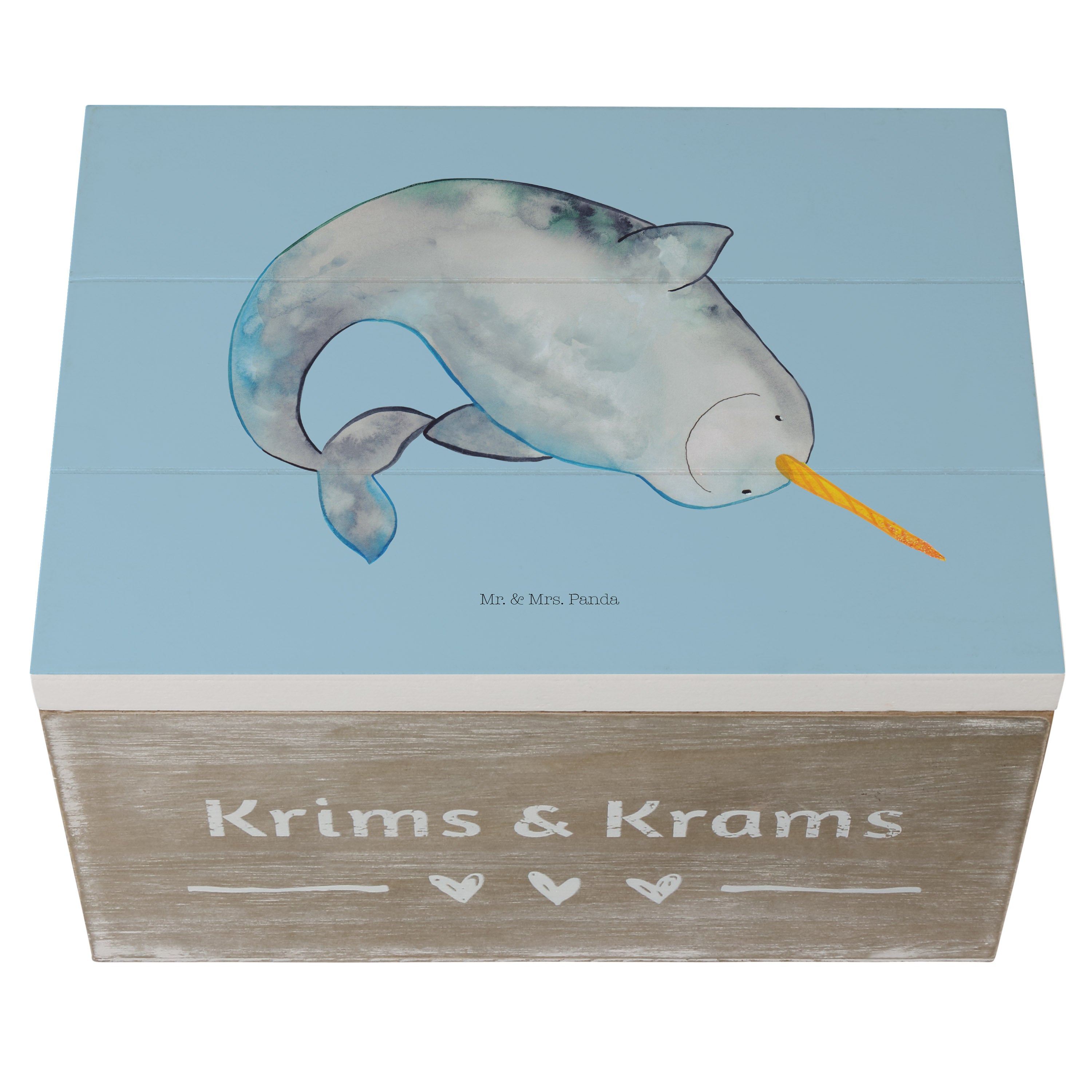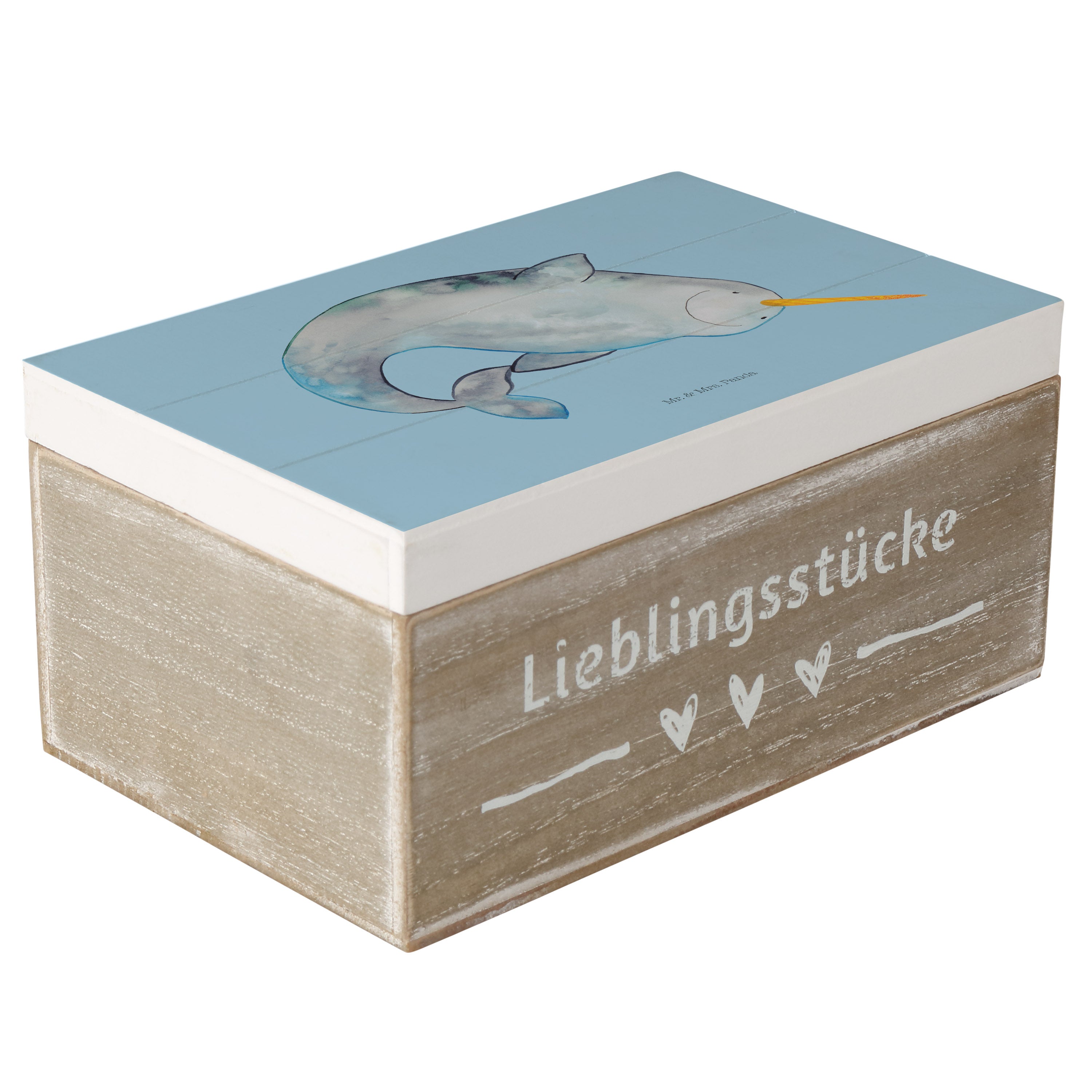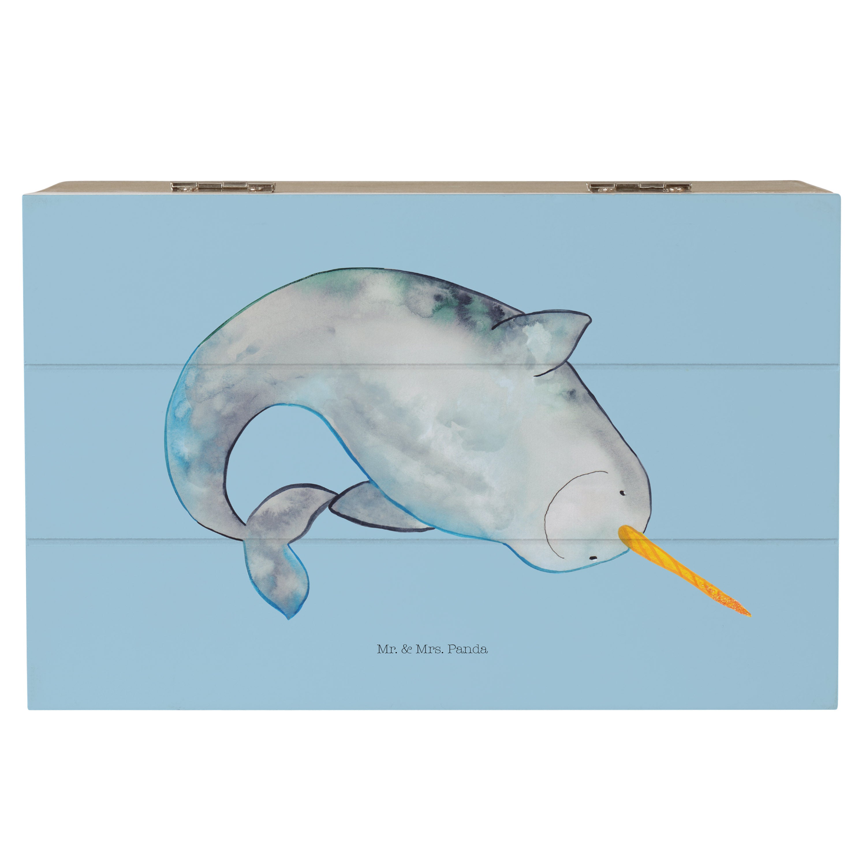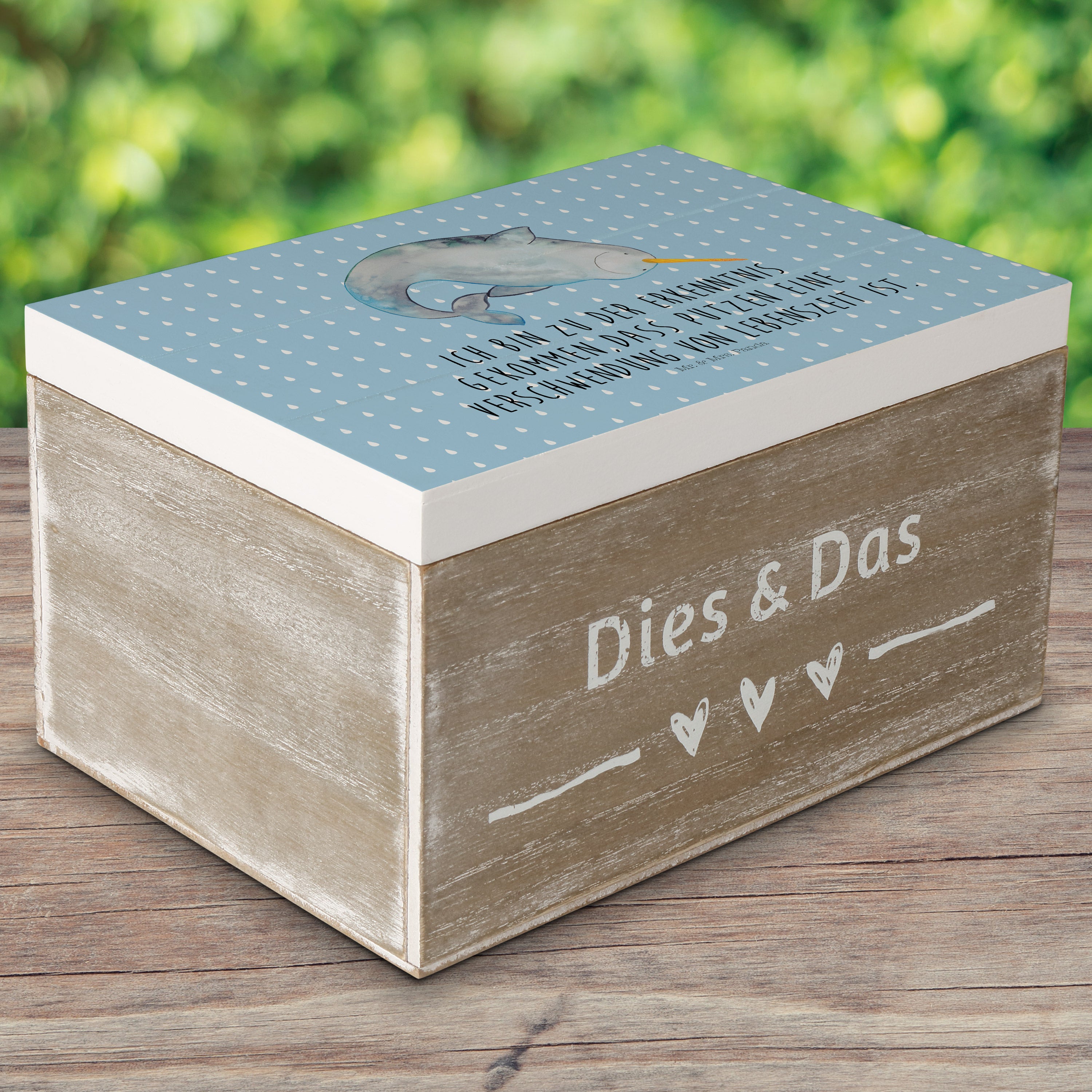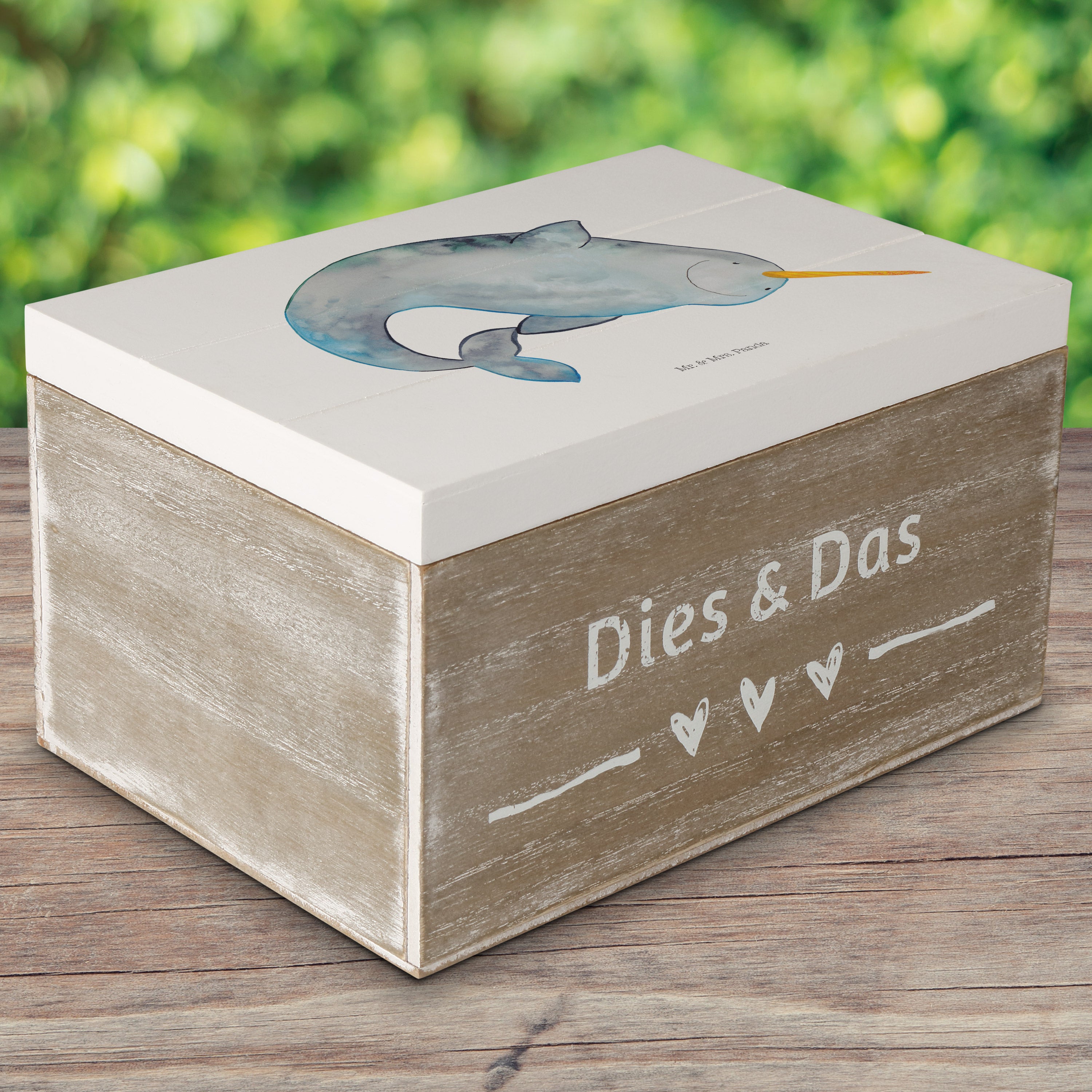 Holzkiste Narwal - 25 x 18 cm - mit Spruch - Weiß