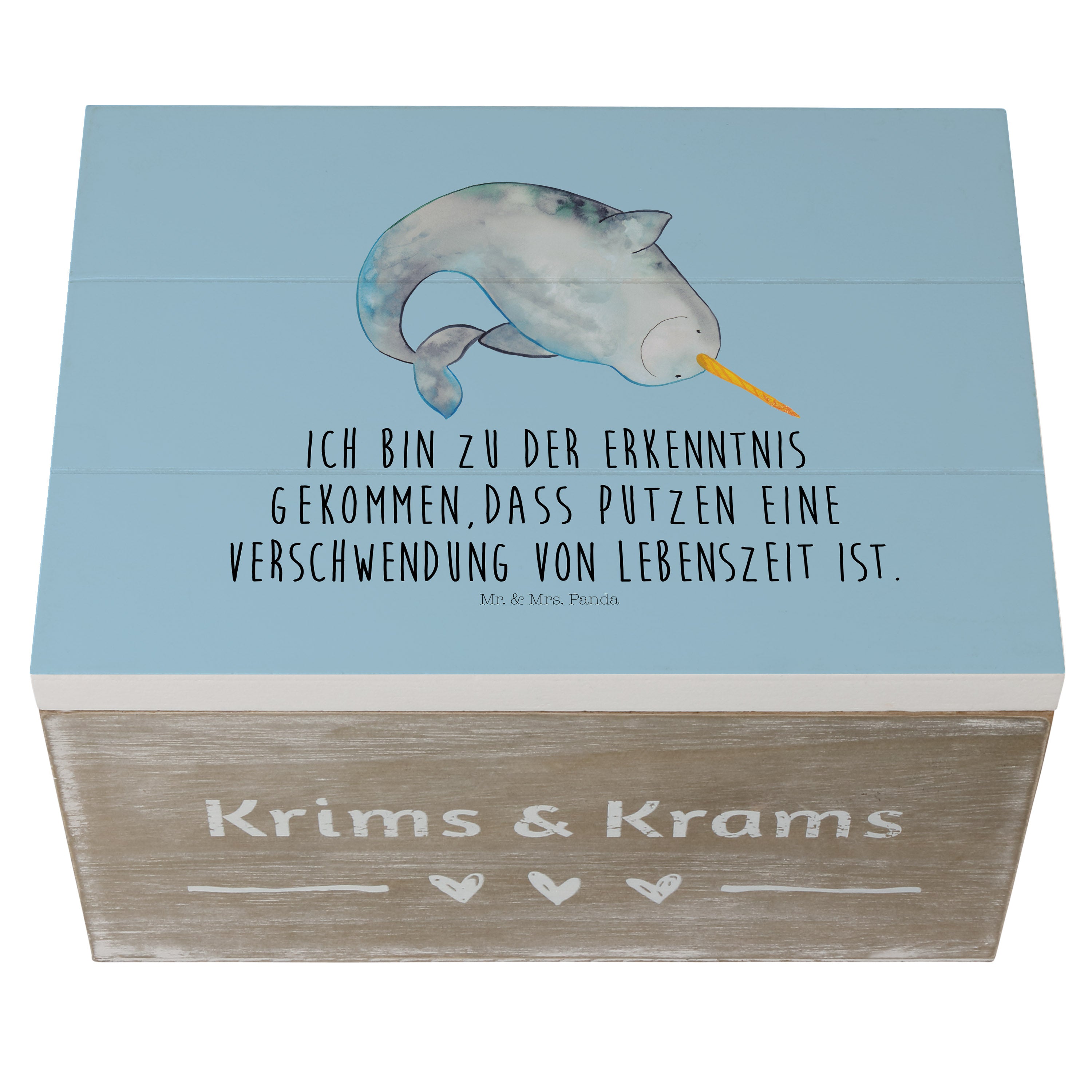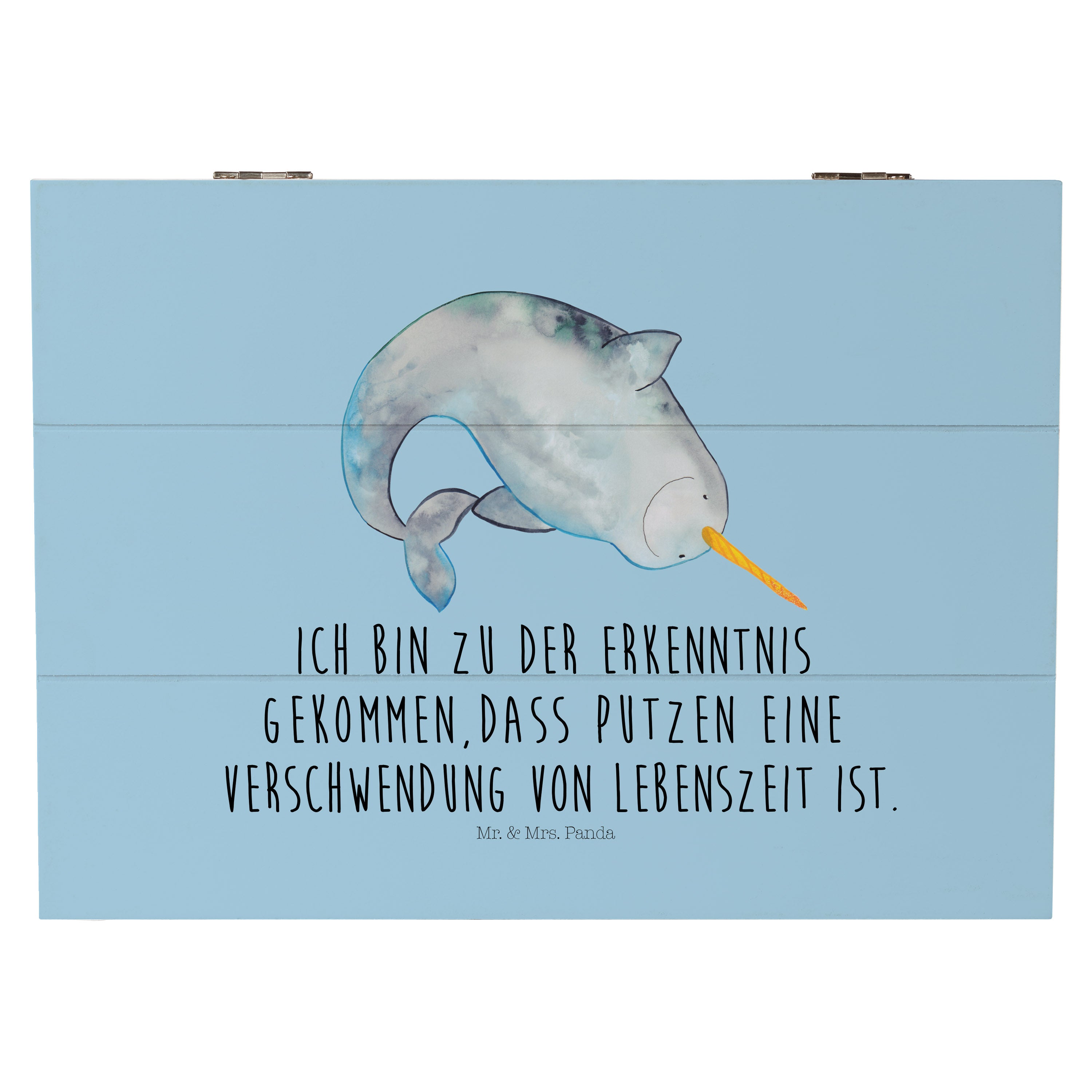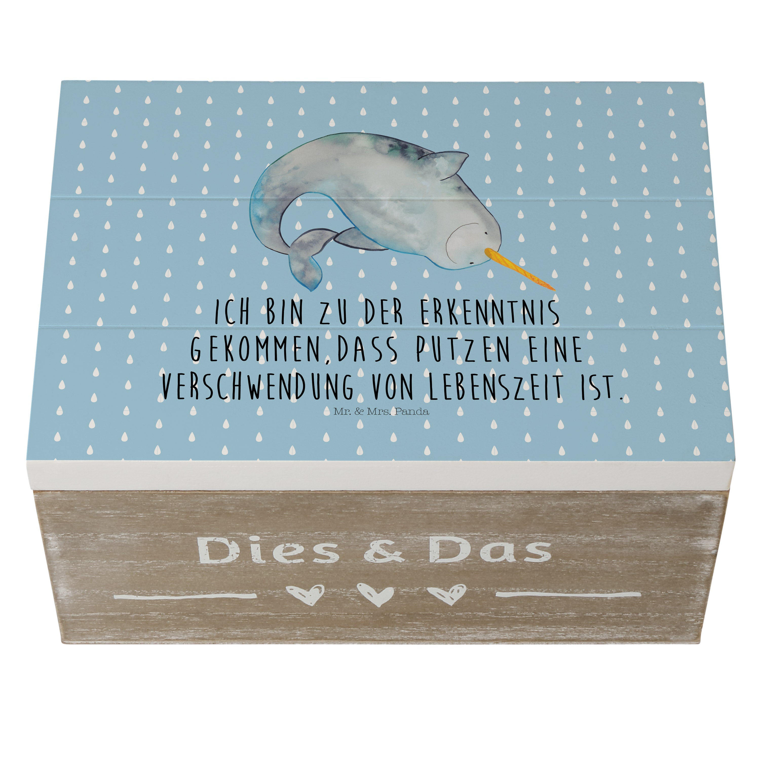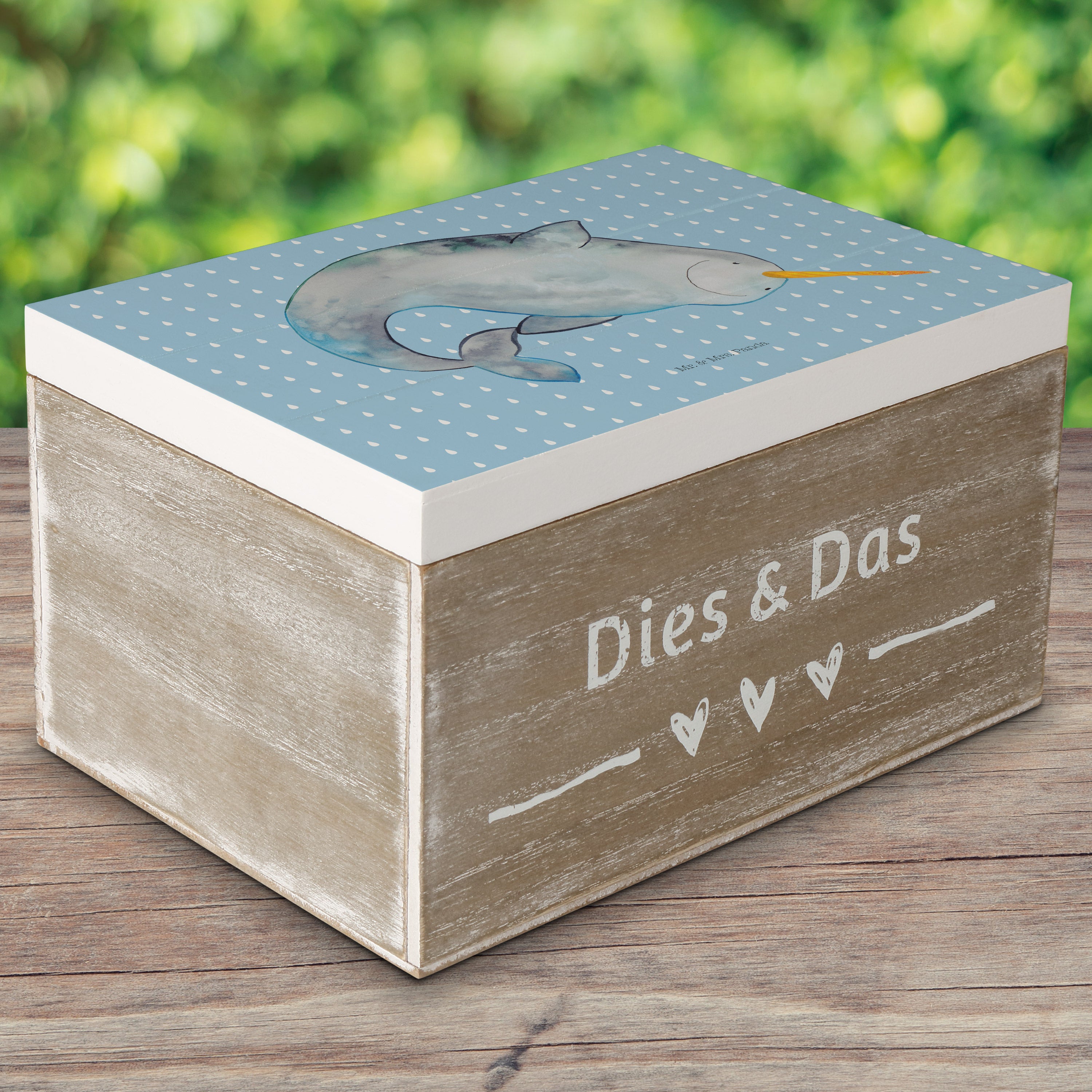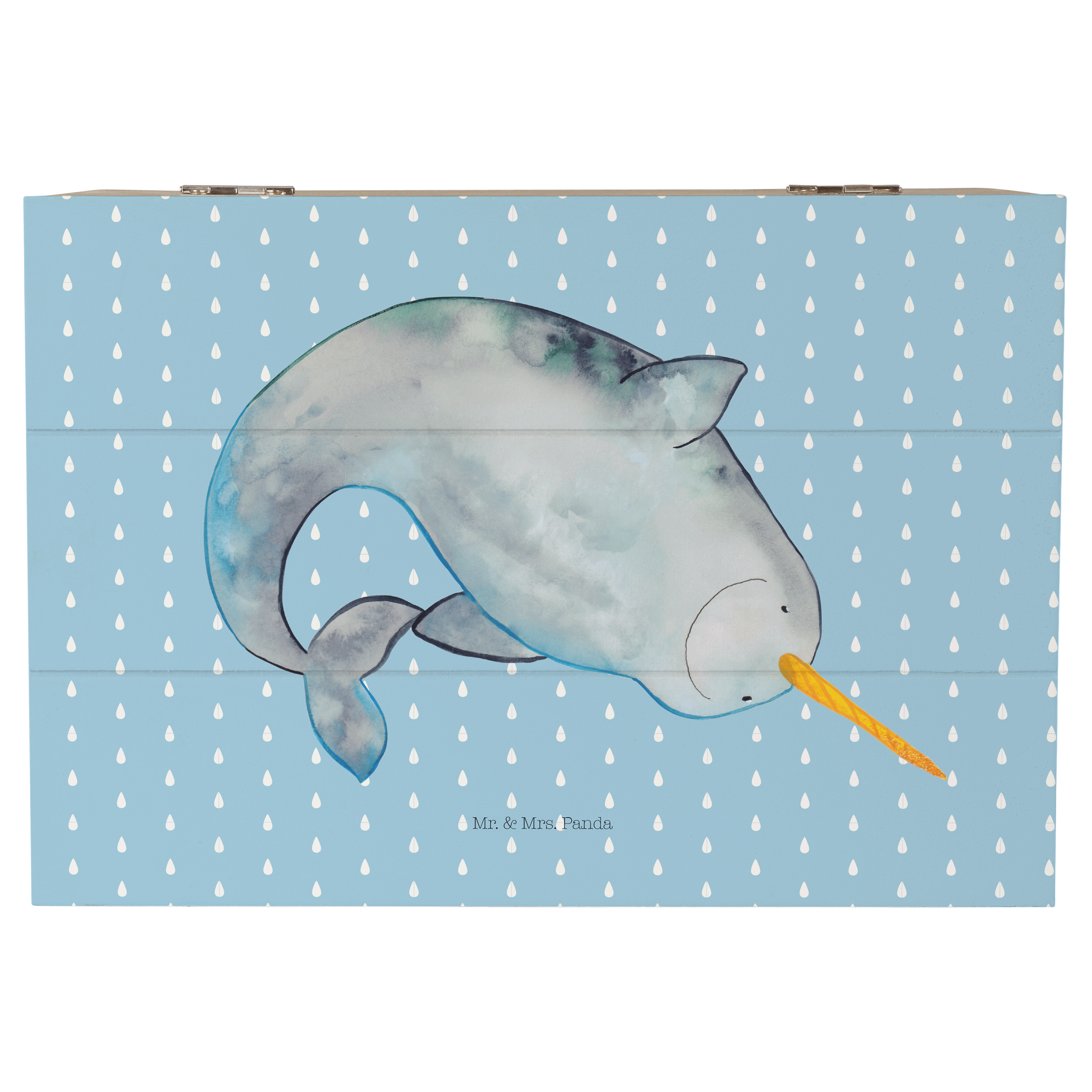 Holzkiste Narwal - 25 x 18 cm - mit Spruch - Weiß