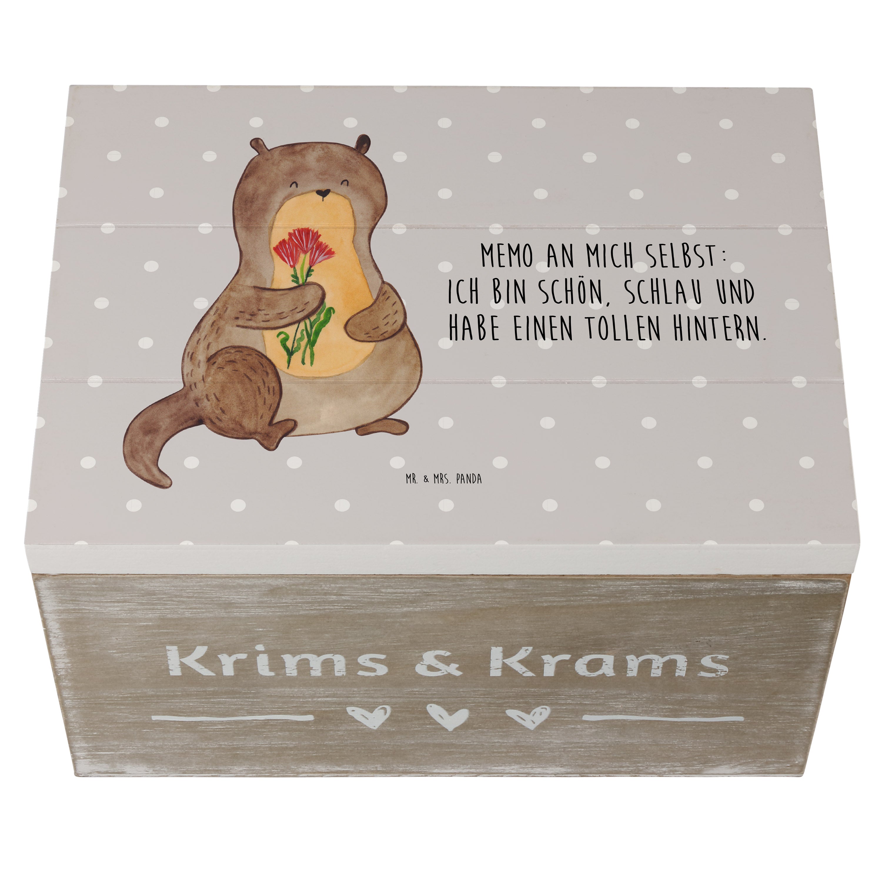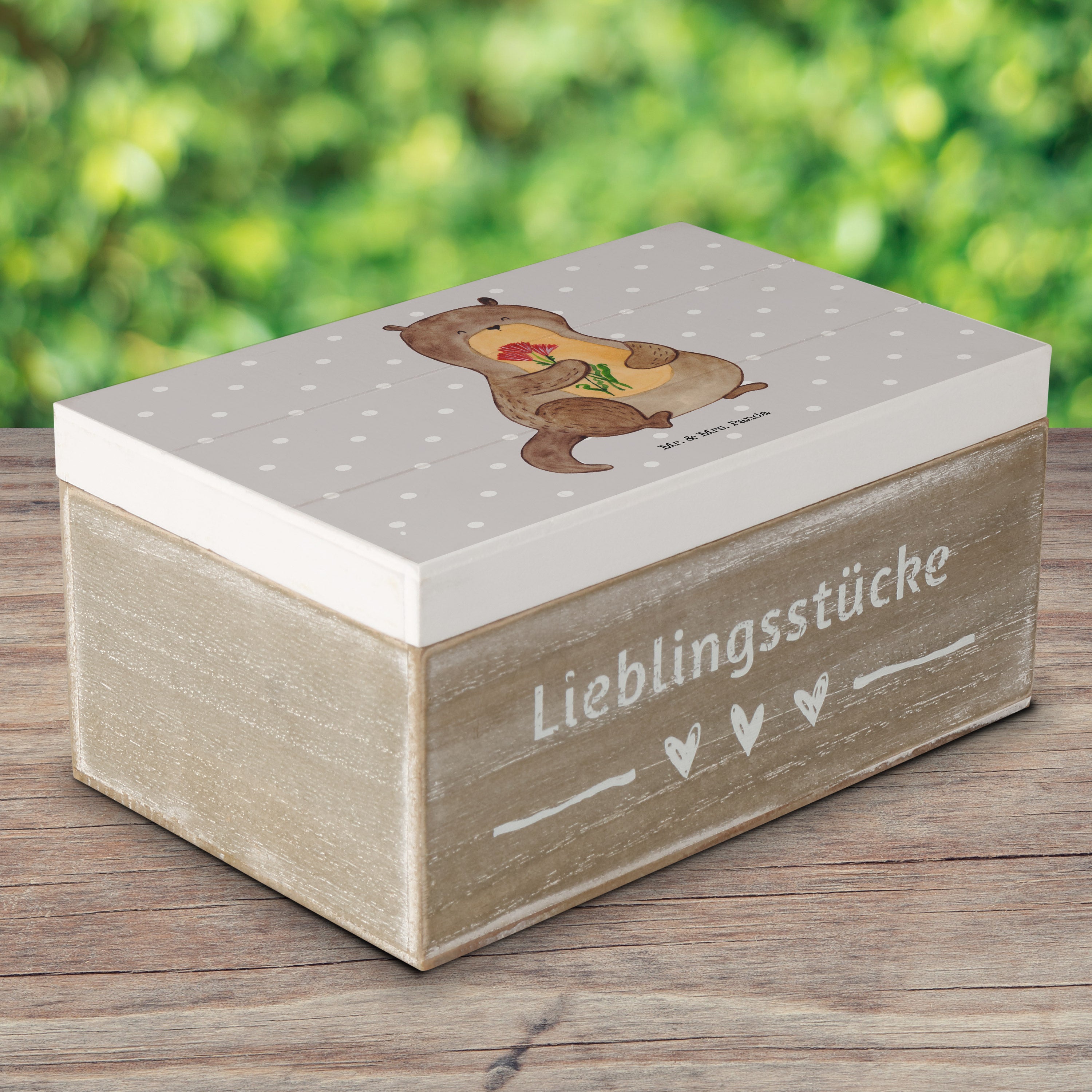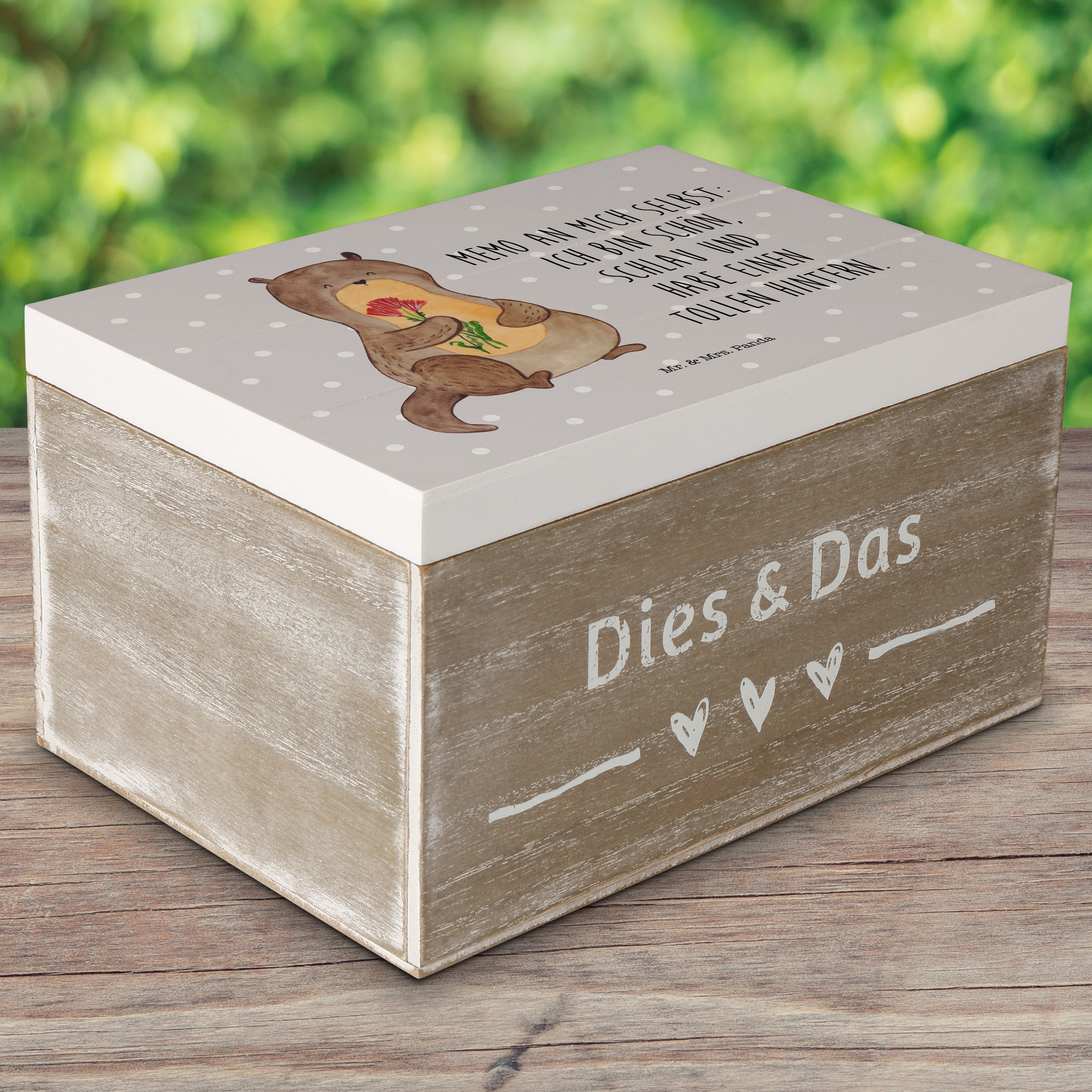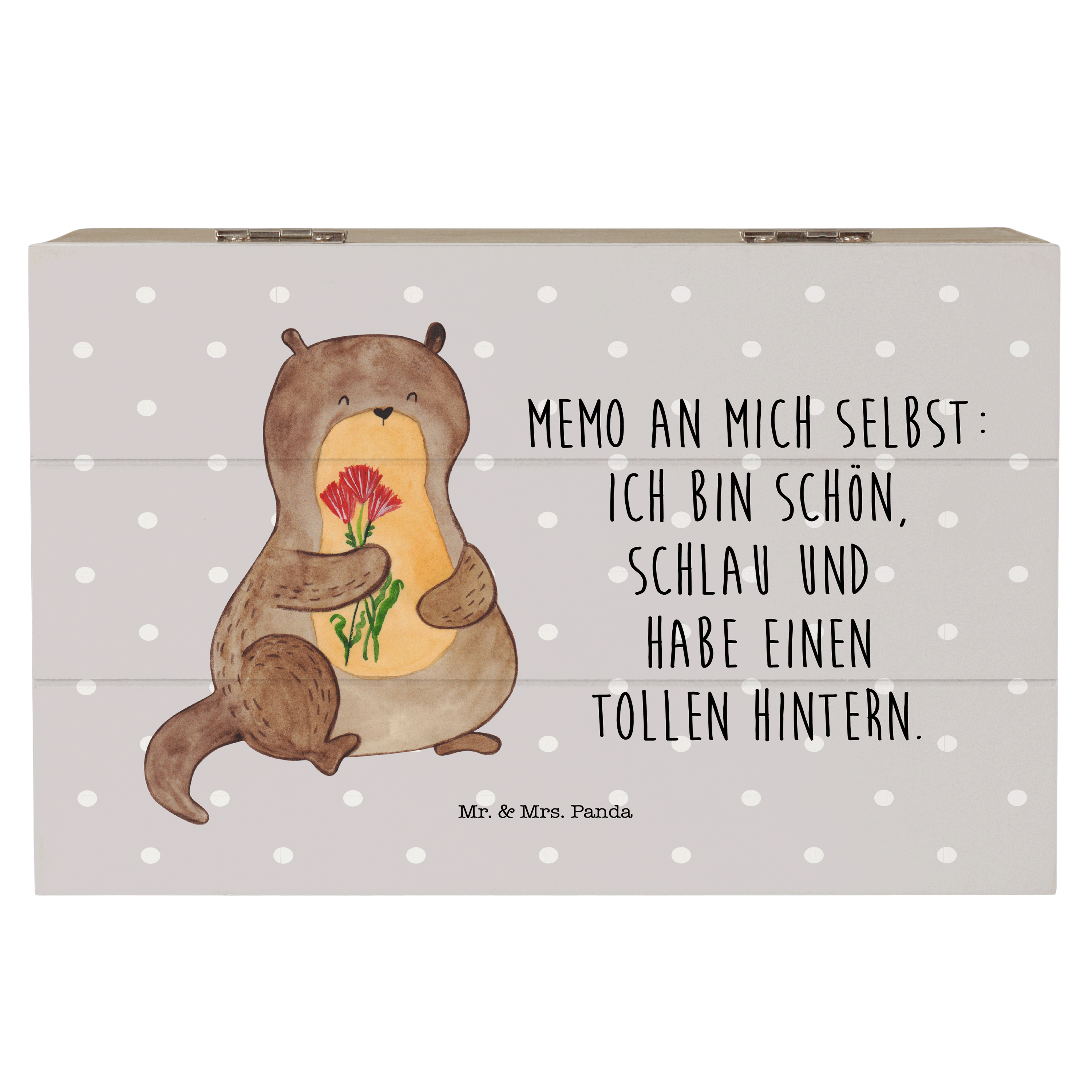Holzkiste Otter Blumenstrauß - 25 x 18 cm - mit Spruch - Grau Pastell