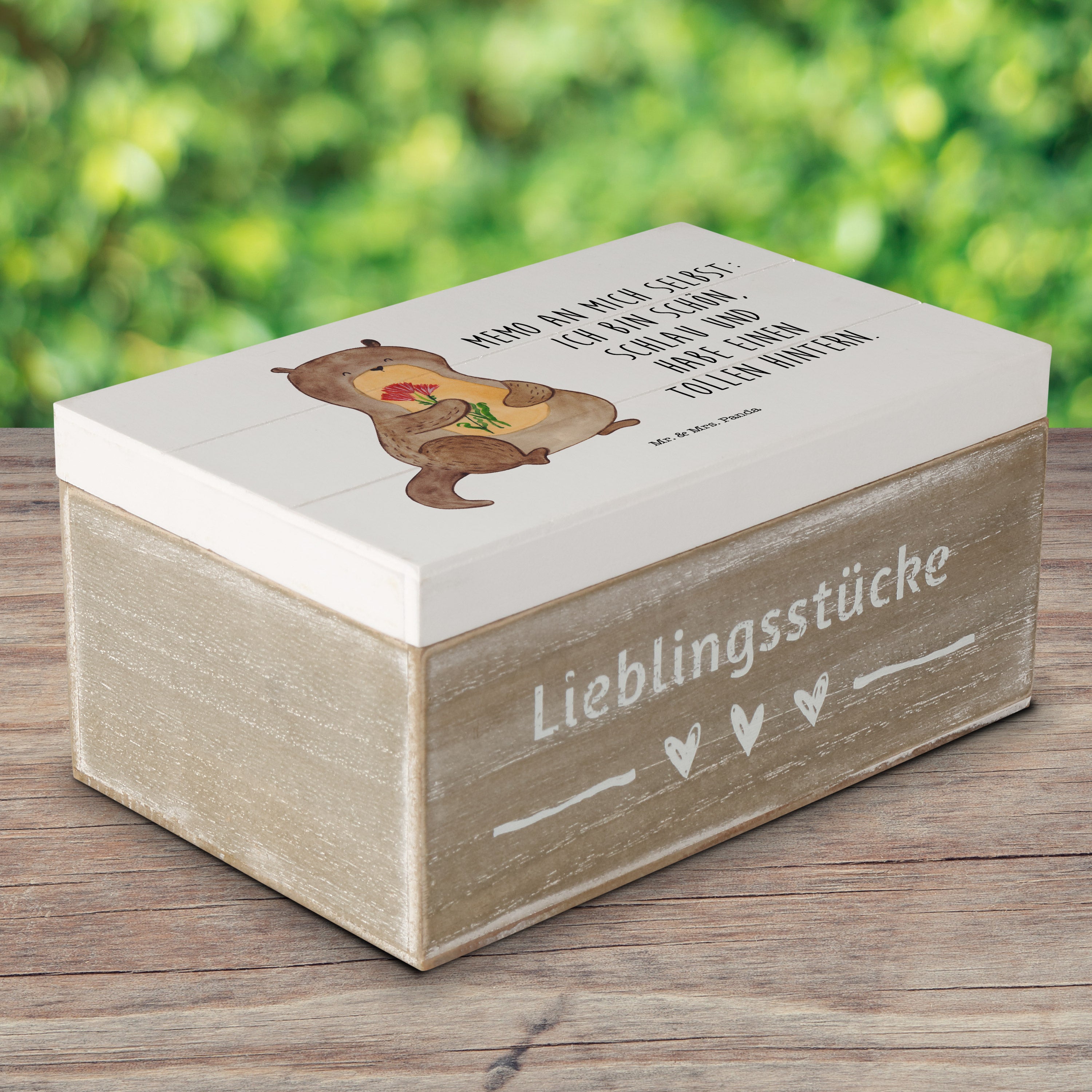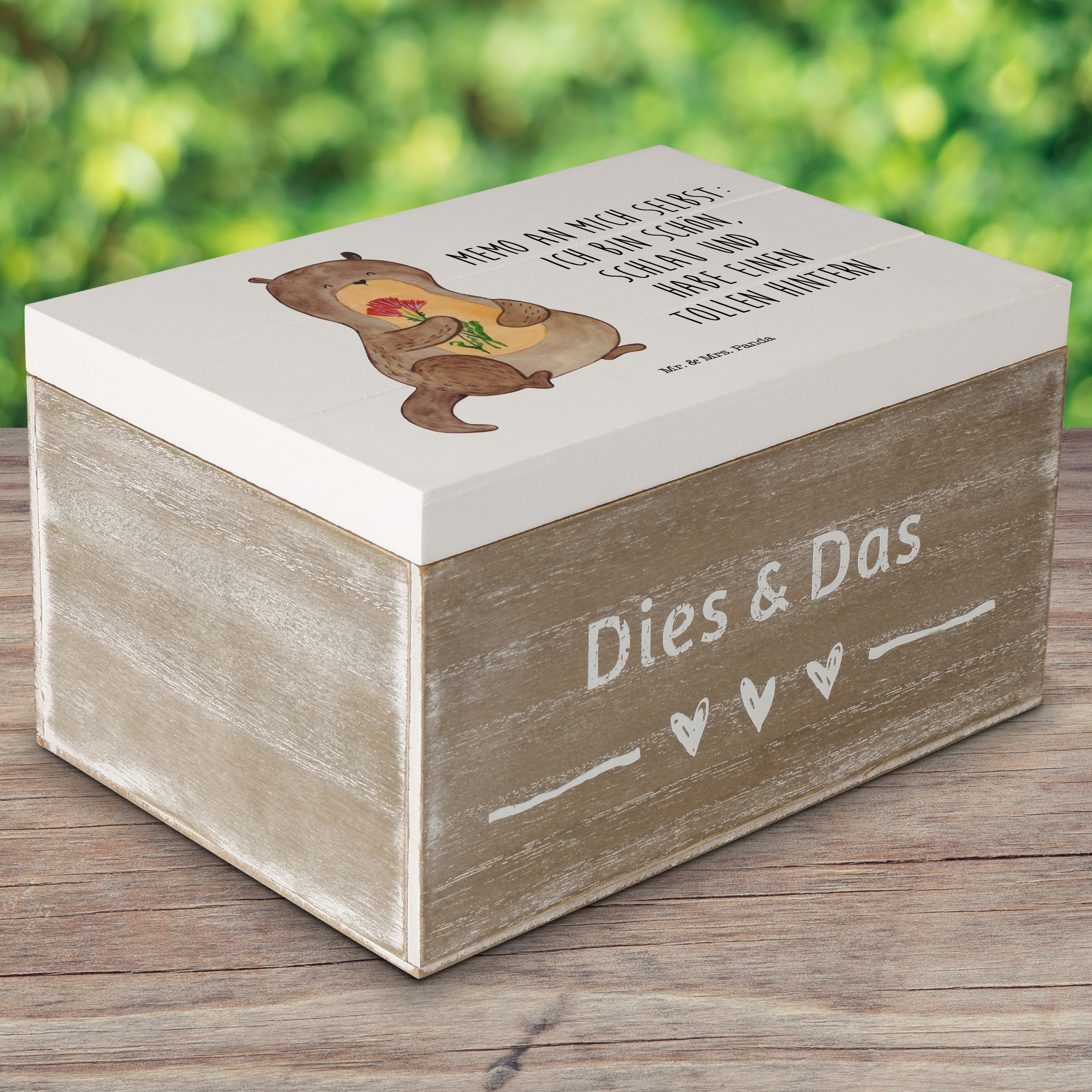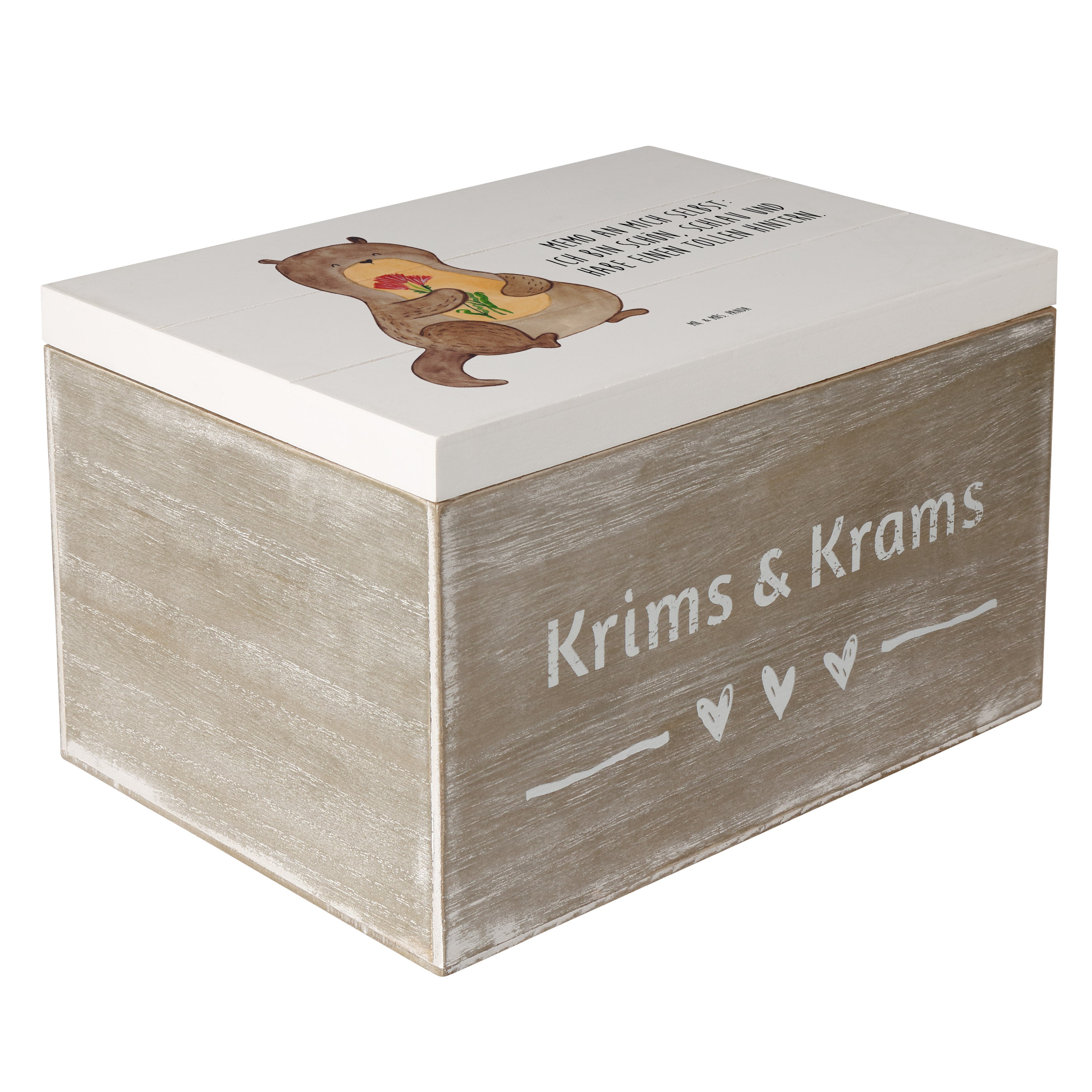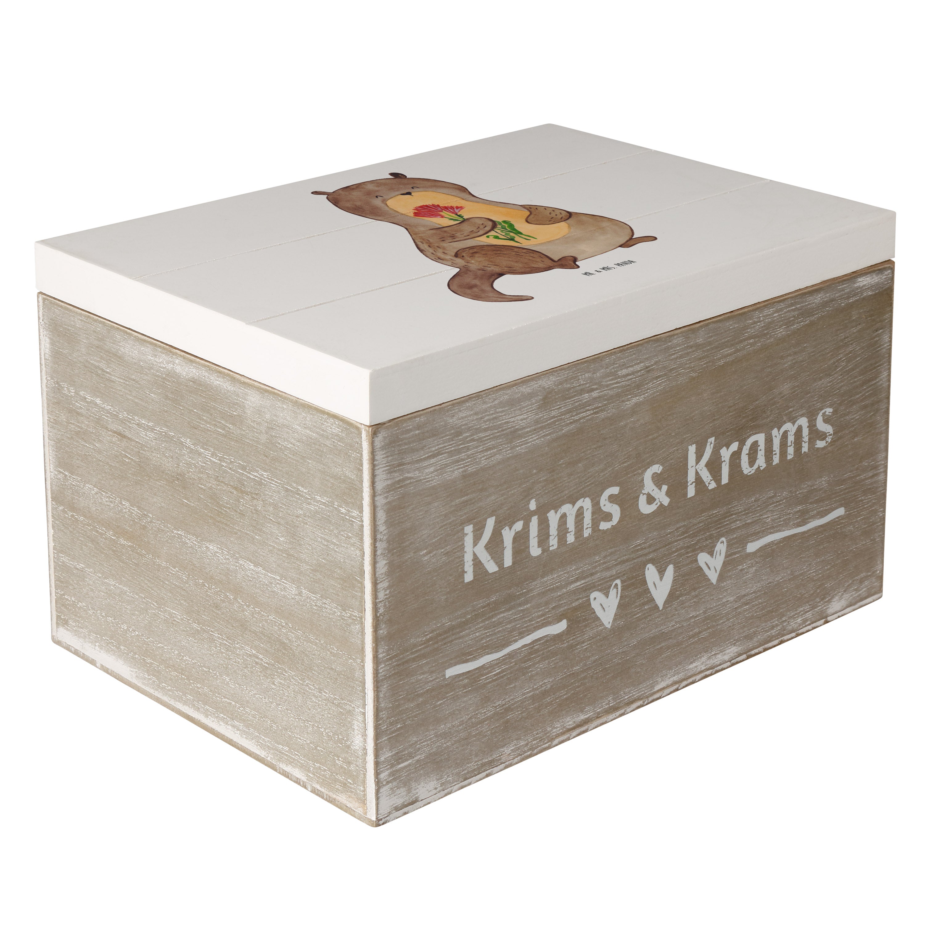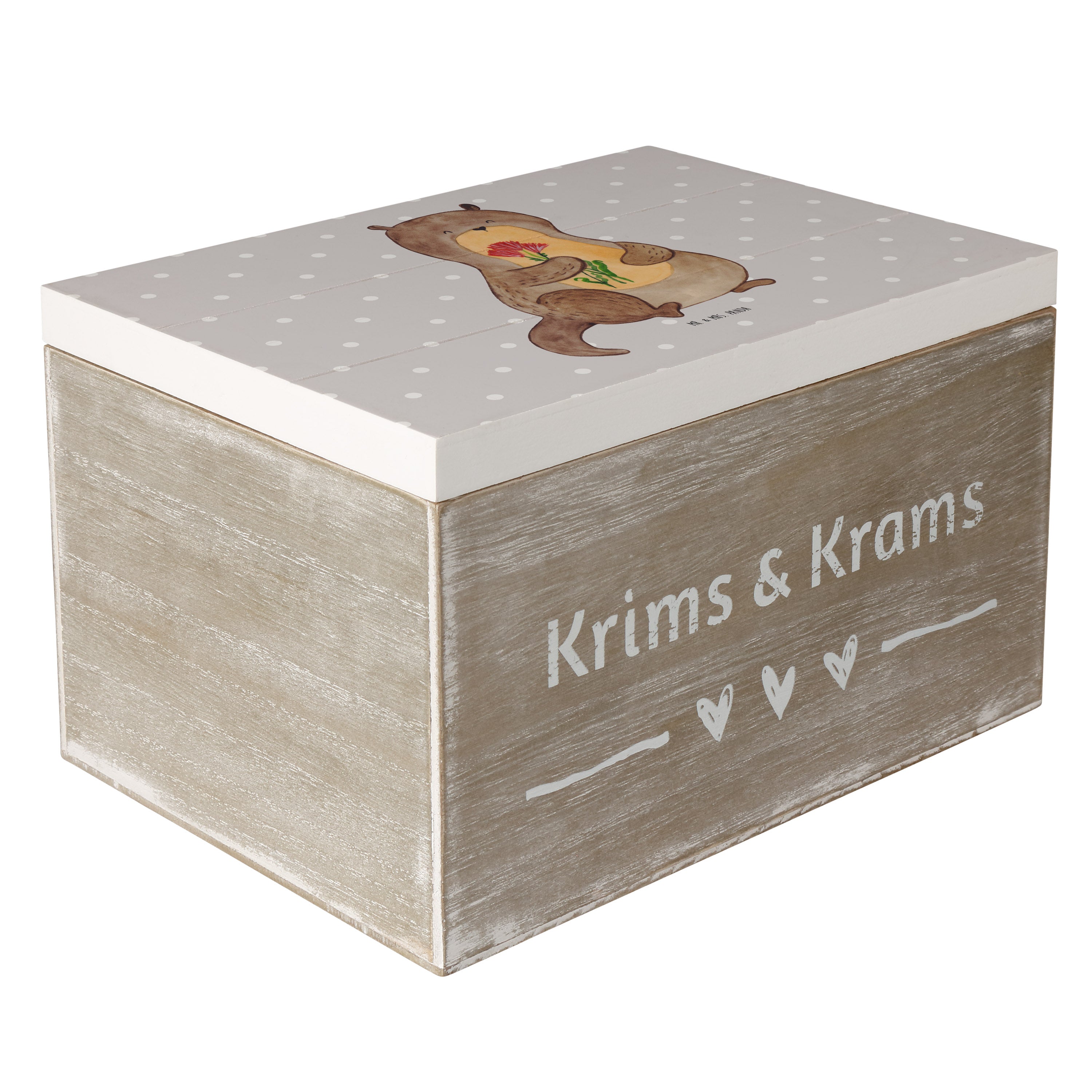 Holzkiste Otter Blumenstrauß - 25 x 18 cm - mit Spruch - Grau Pastell