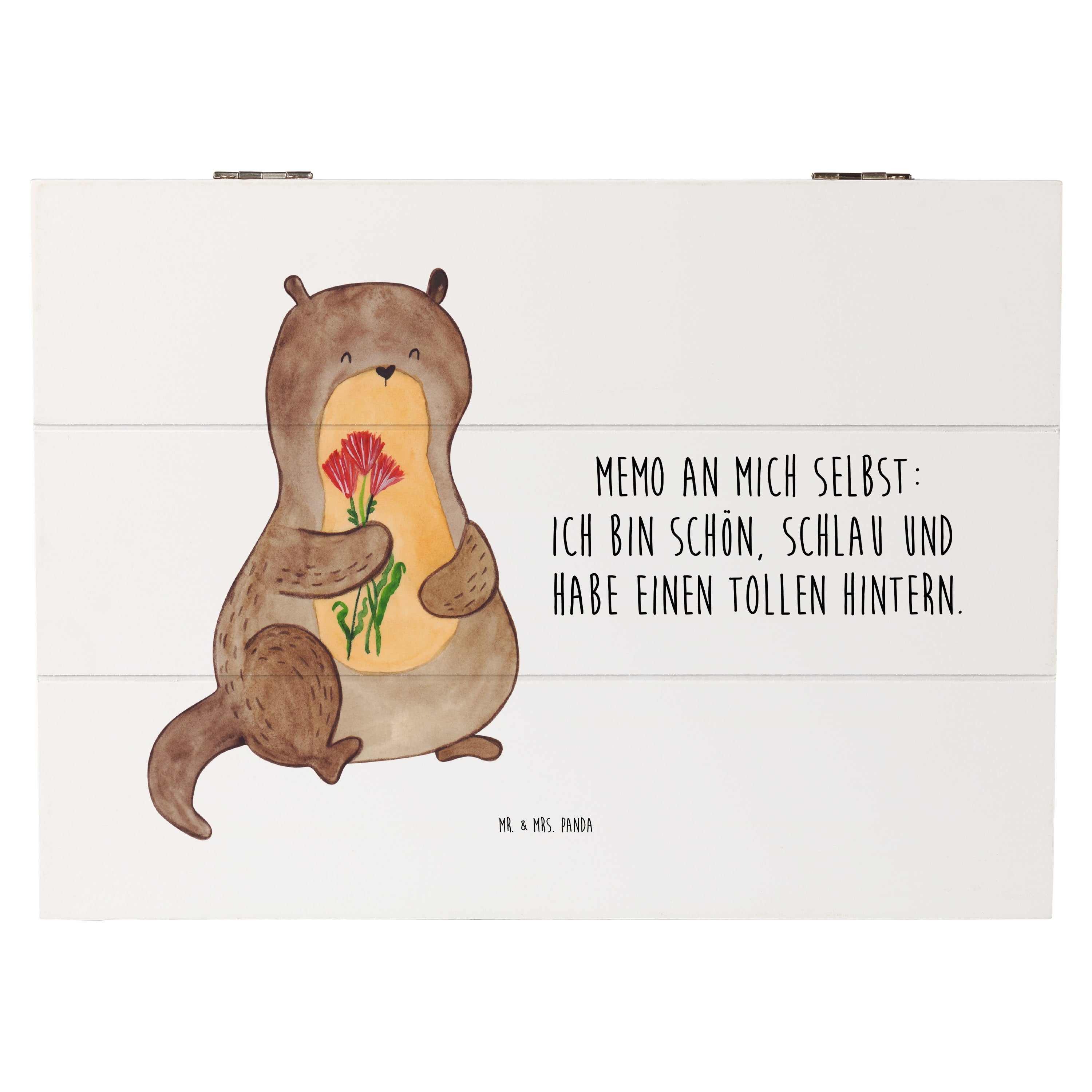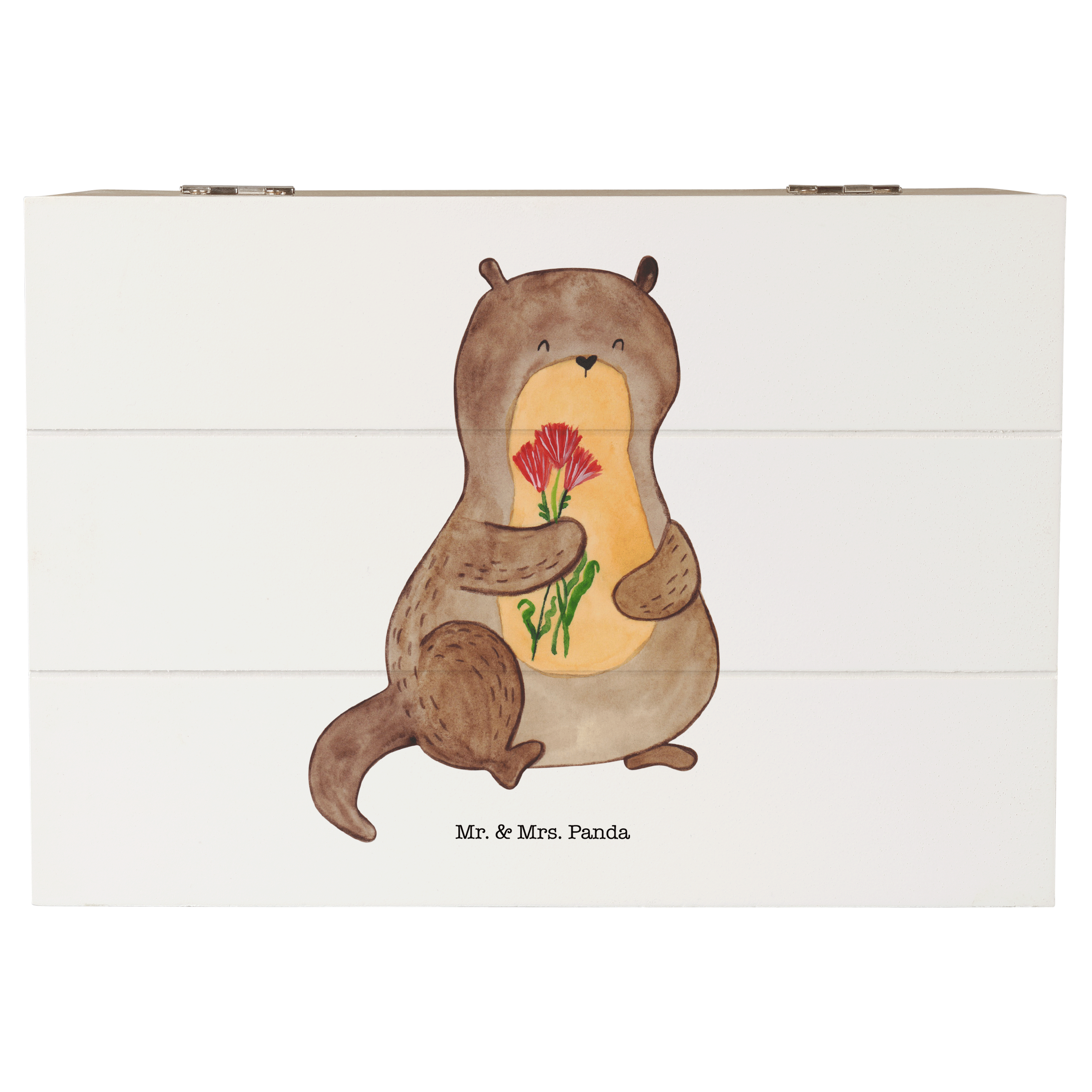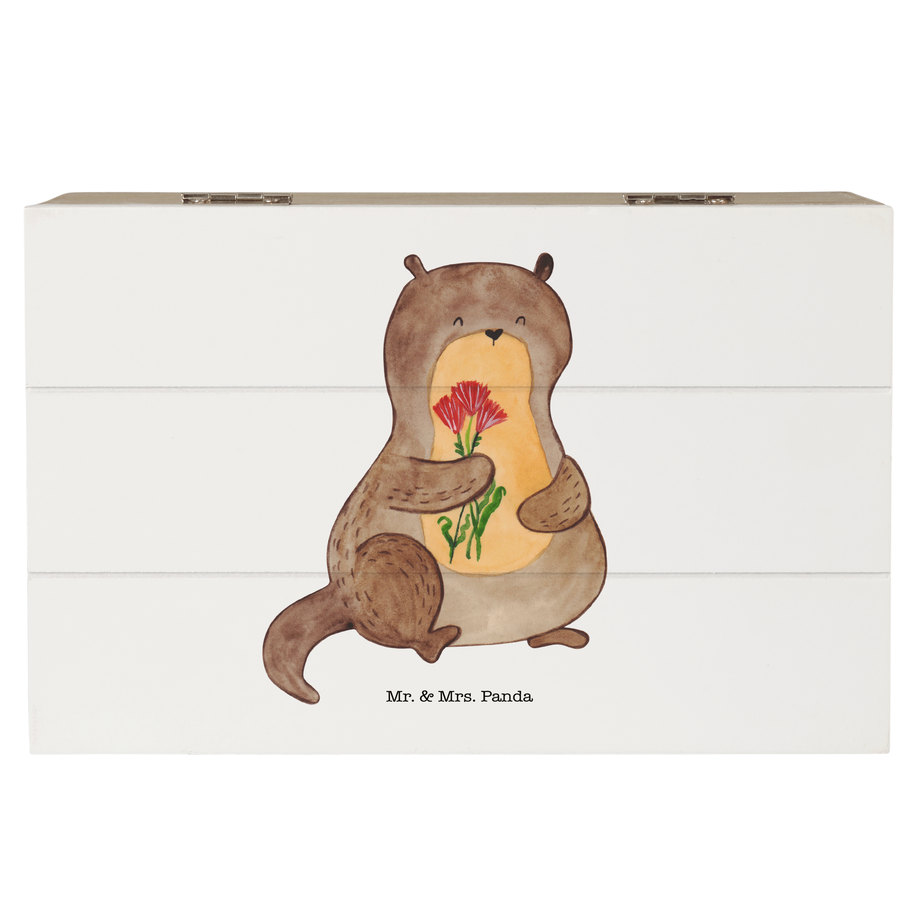 Ein süßer kleiner Otter hält einen kunterbunten Blumenstrauß in seinen Pfötchen und schaut dich glücklich an. Das fröhliche Motiv namens "Otter Blumenstrauß" von Mr. & Mrs. Panda versprüht Leichtigkeit und gute Laune und zaubert mit seinen leuchtenden Farben jedem ein Lächeln ins Gesicht.