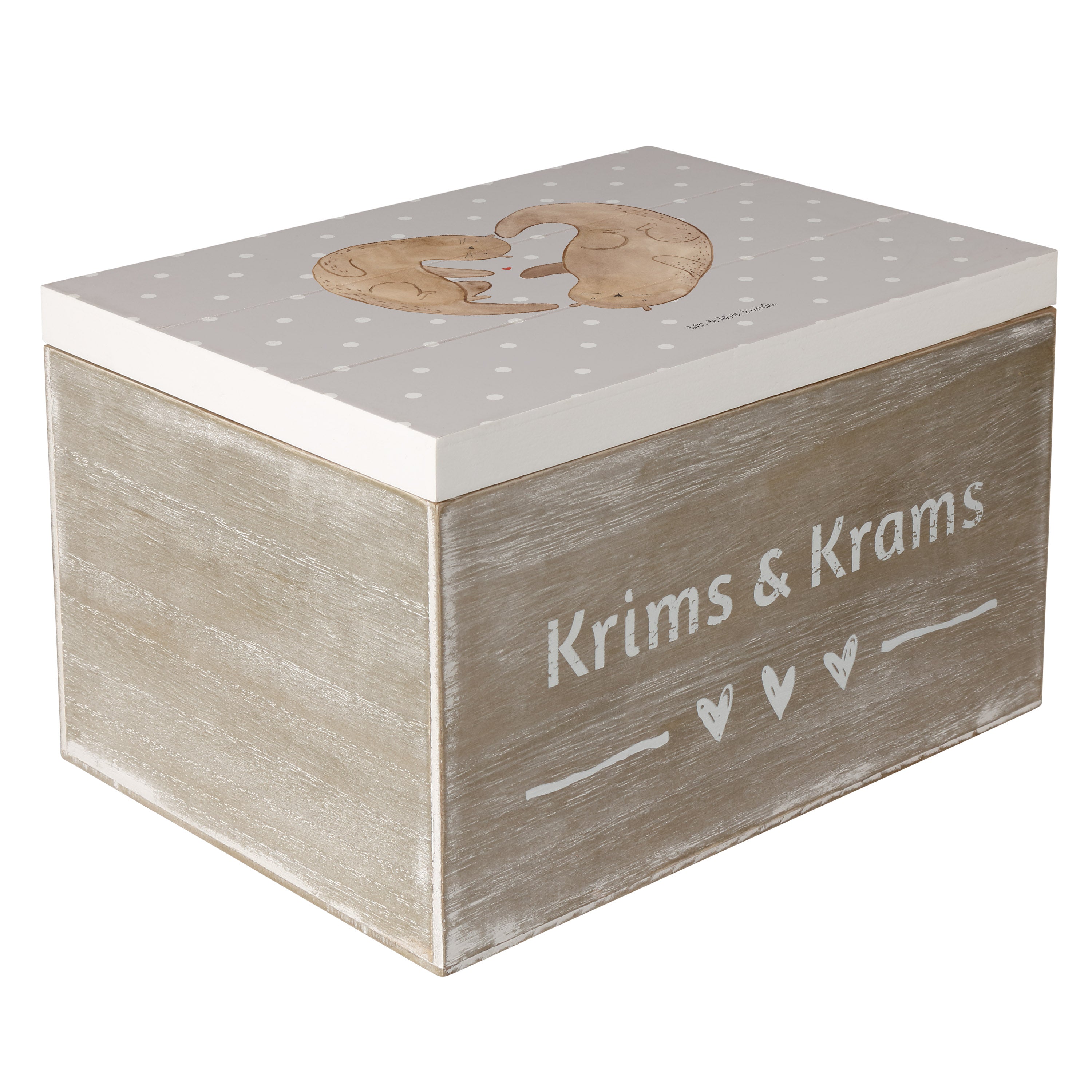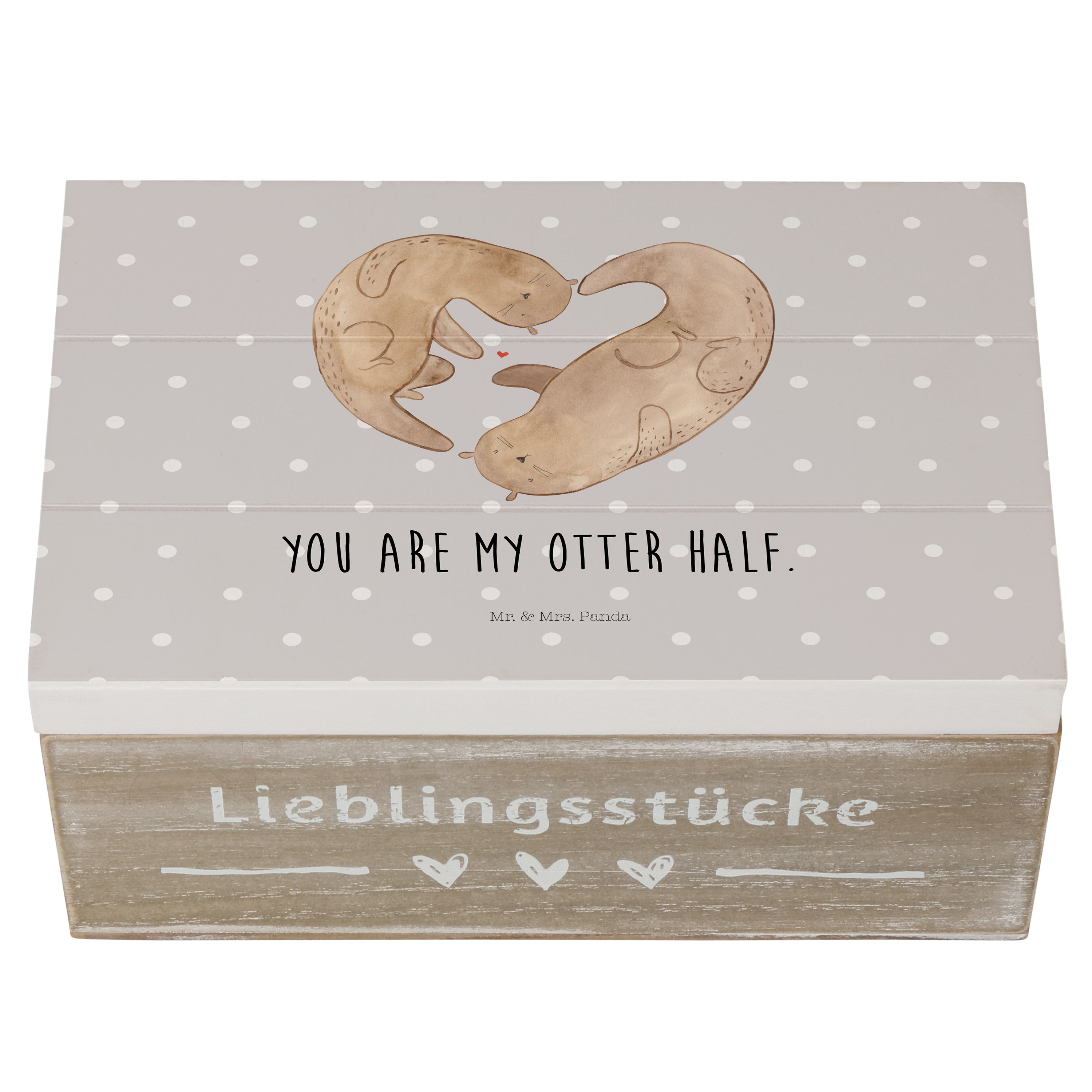 Holzkiste Otter Herz - 25 x 18 cm - mit Spruch - Grau Pastell