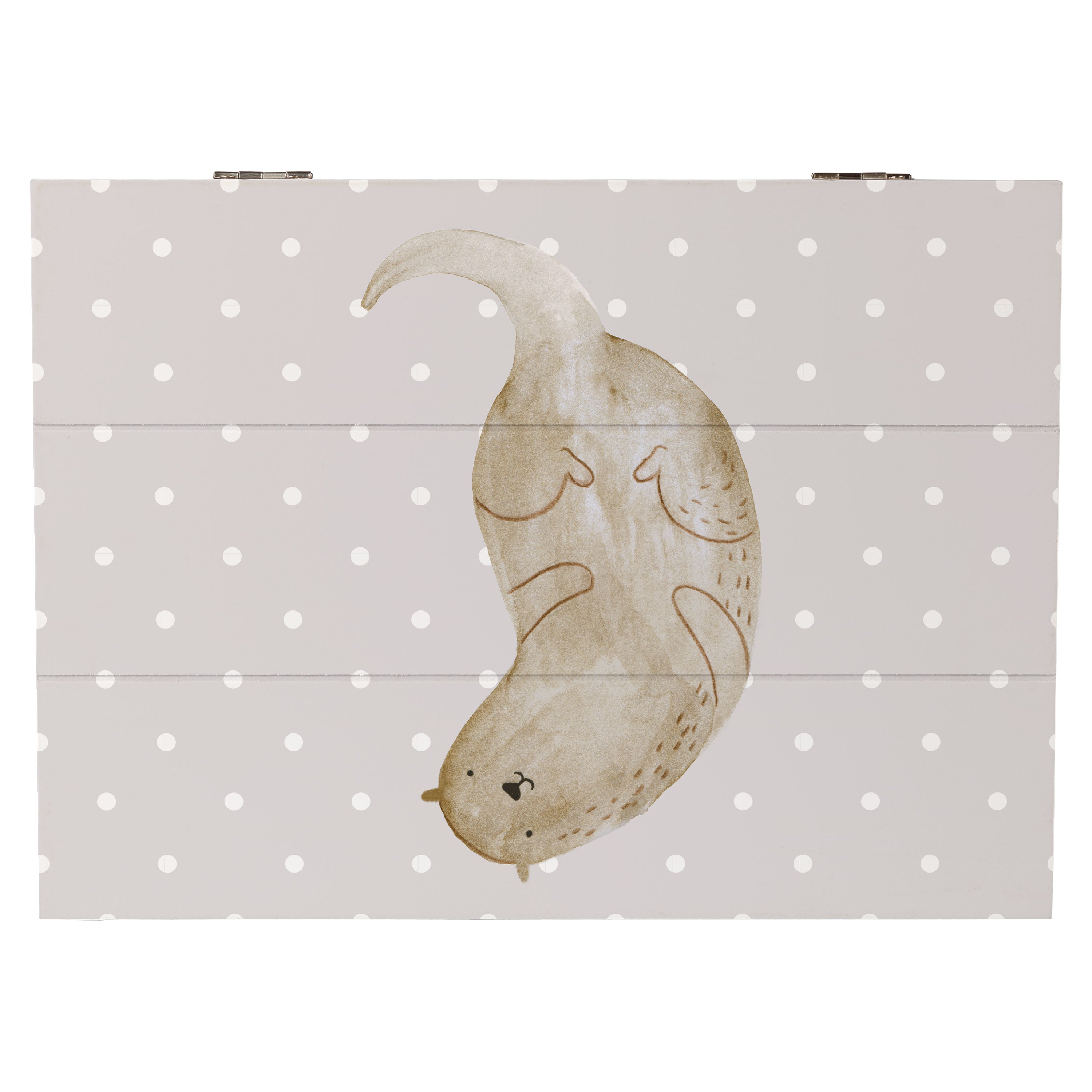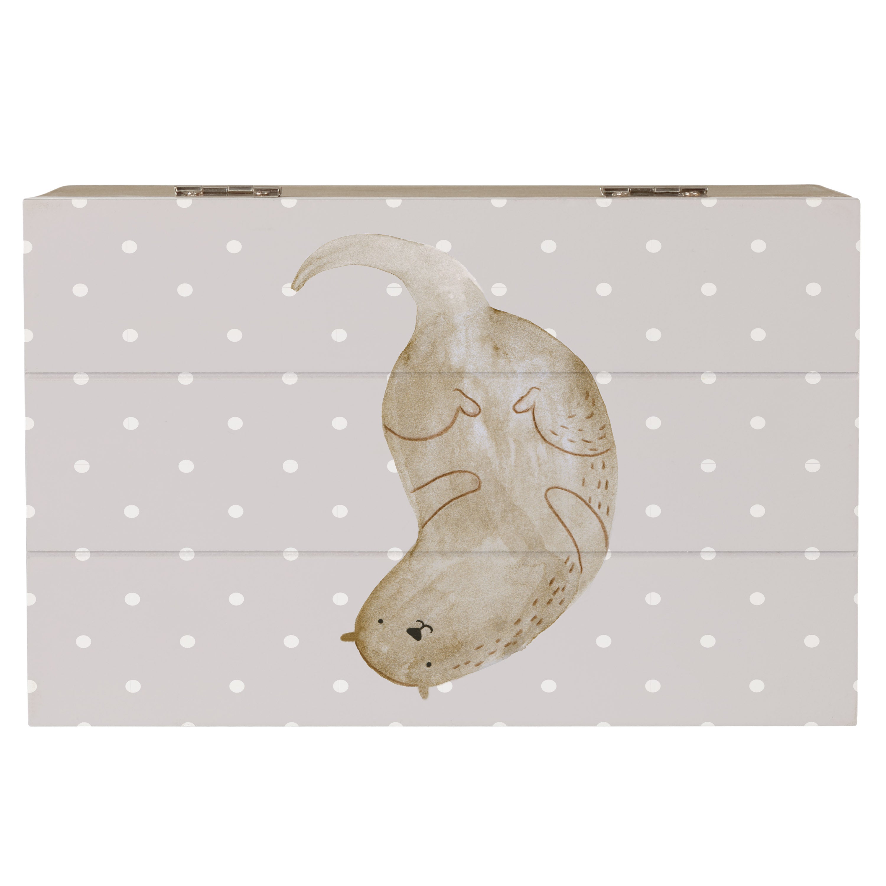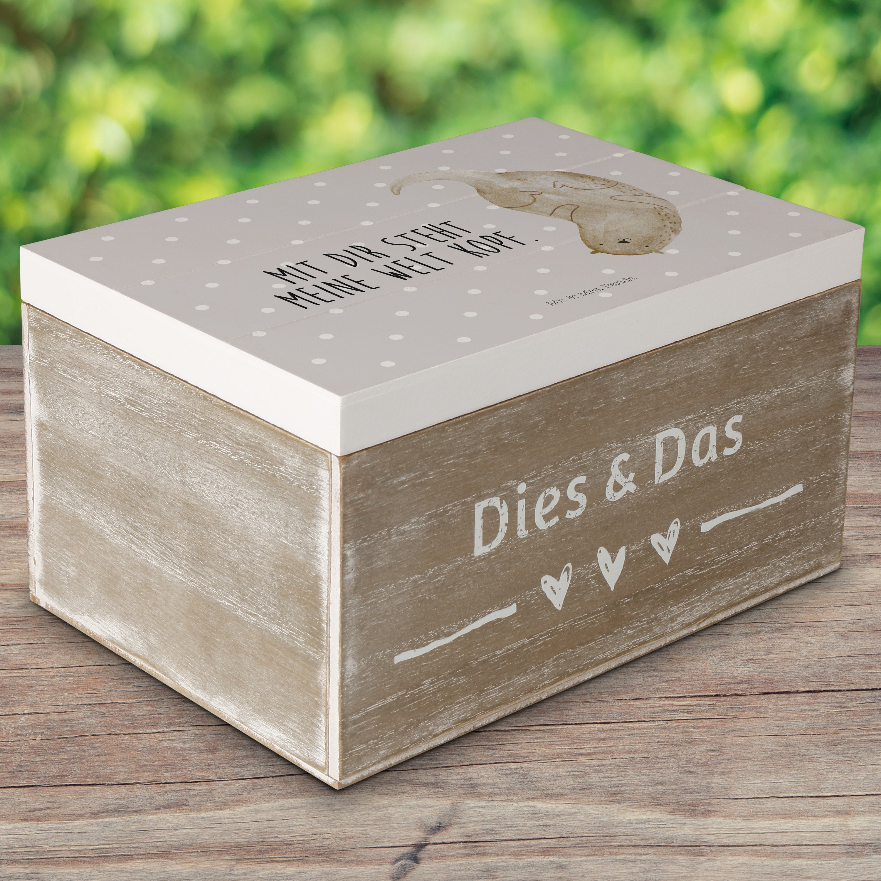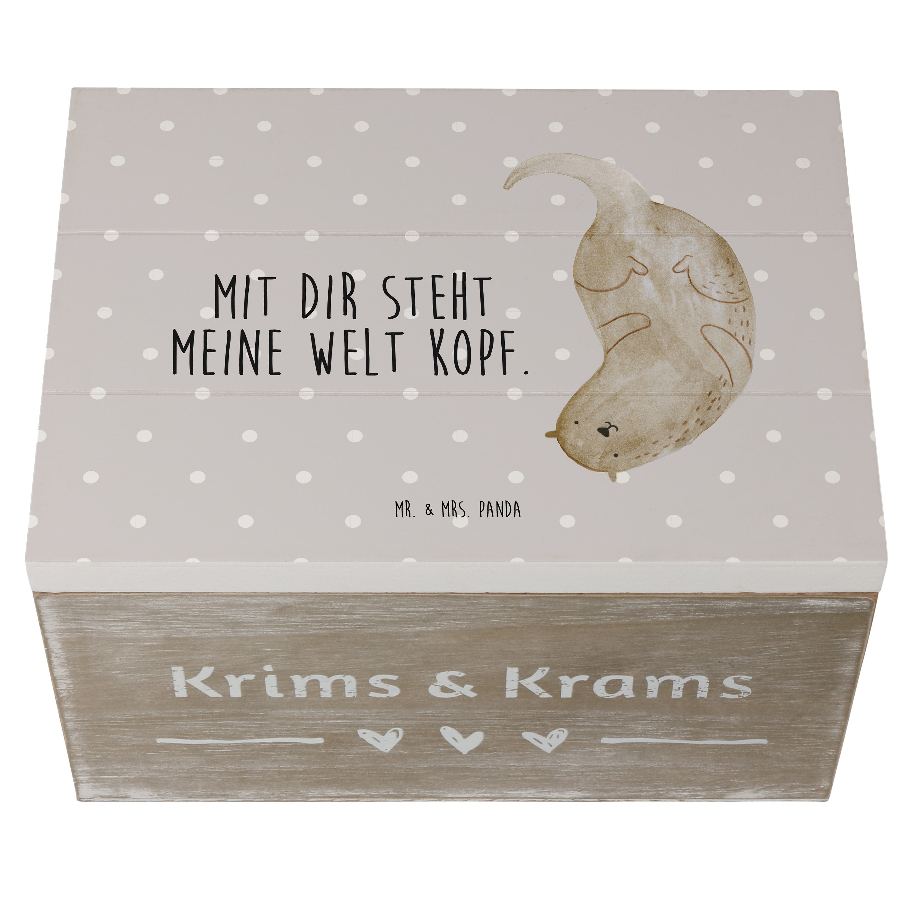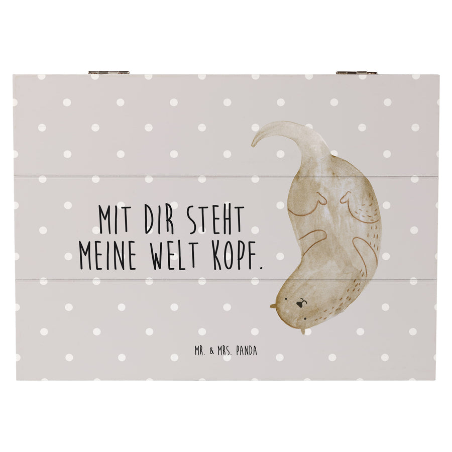 Holzkiste Otter kopfüber - 25 x 18 cm - mit Spruch - Grau Pastell