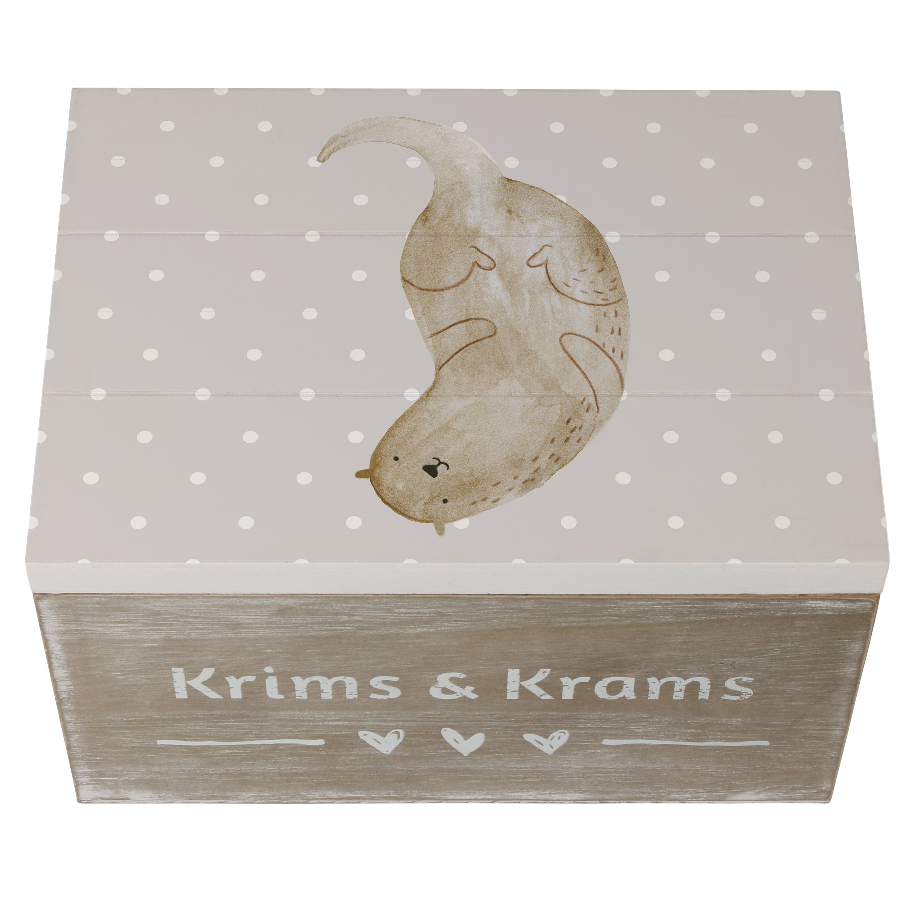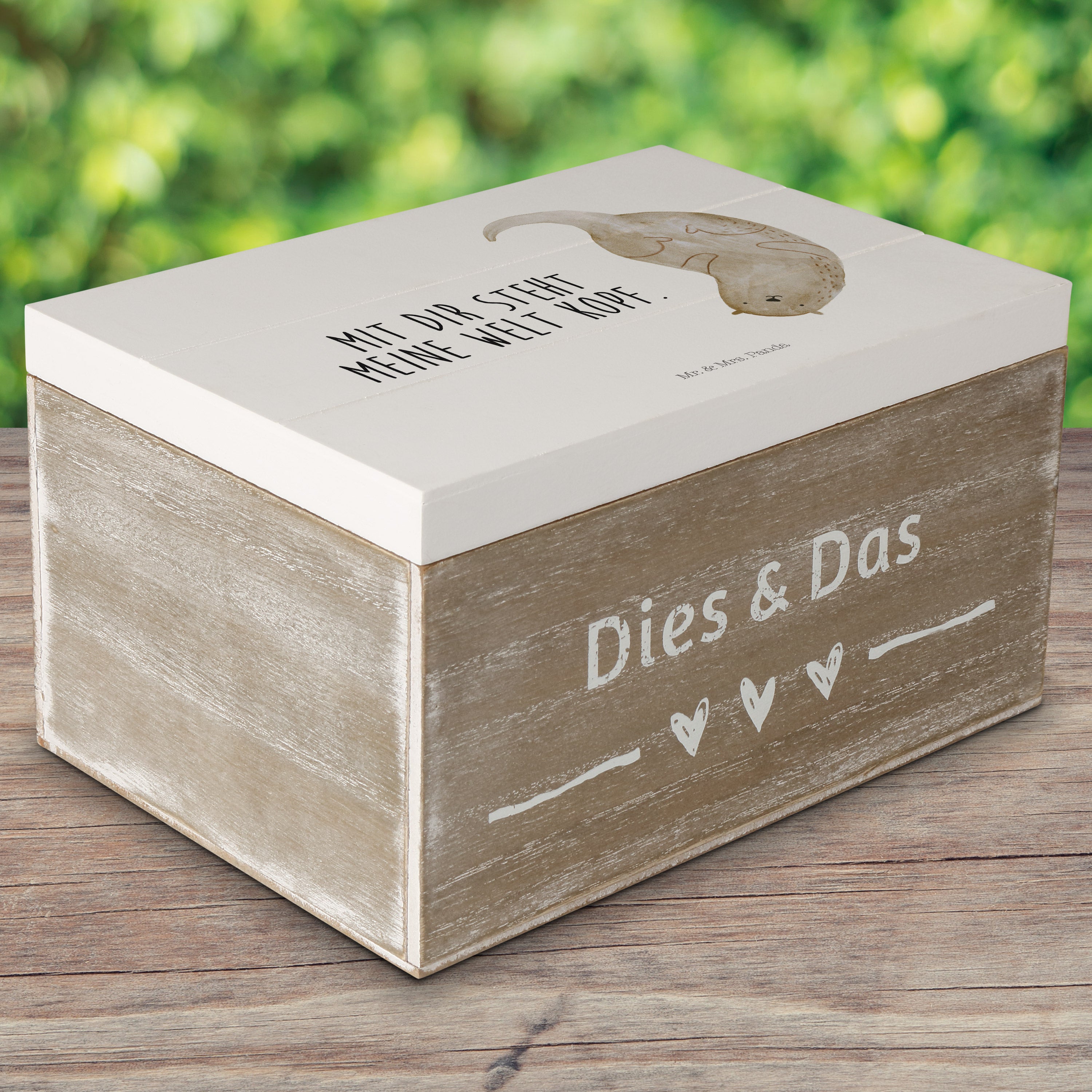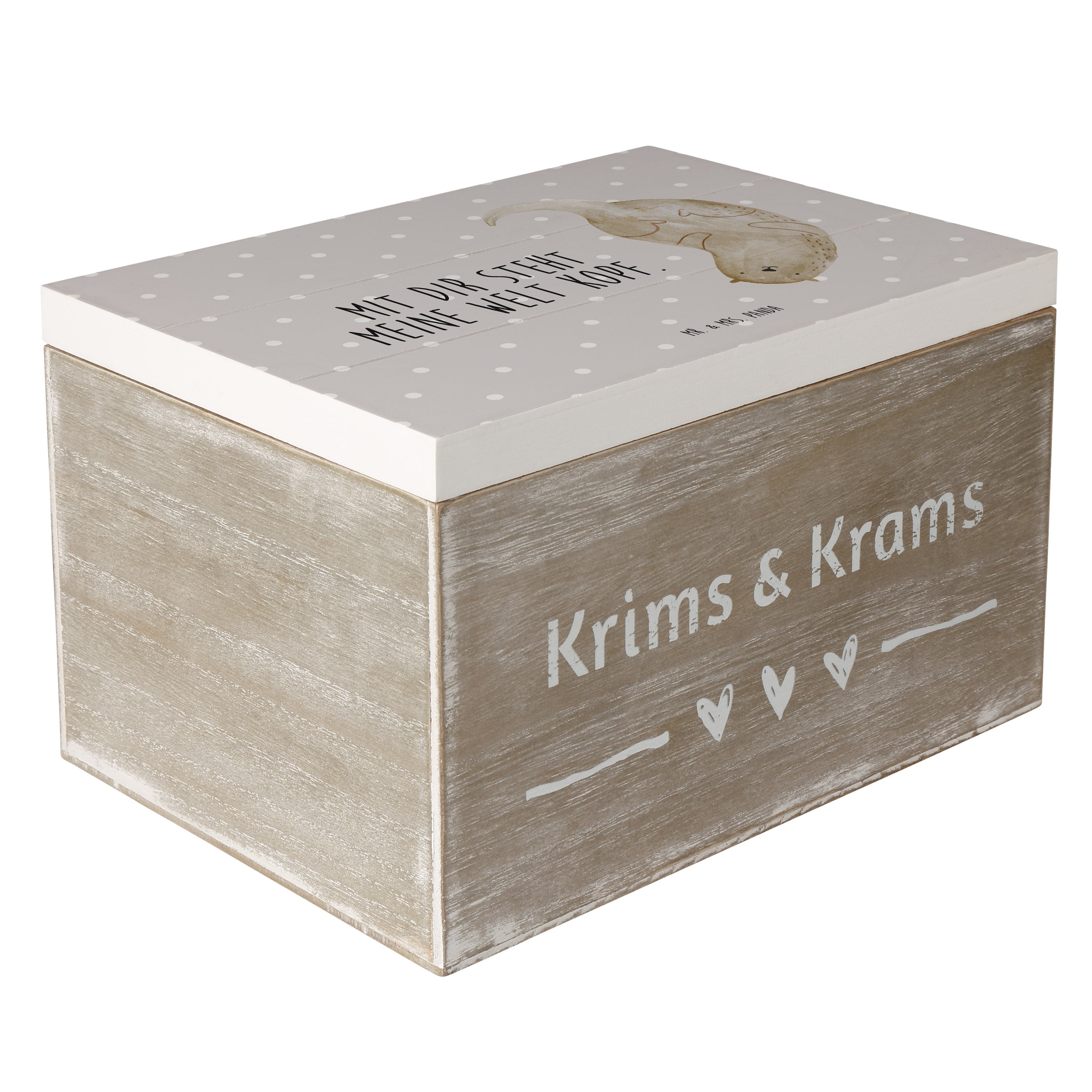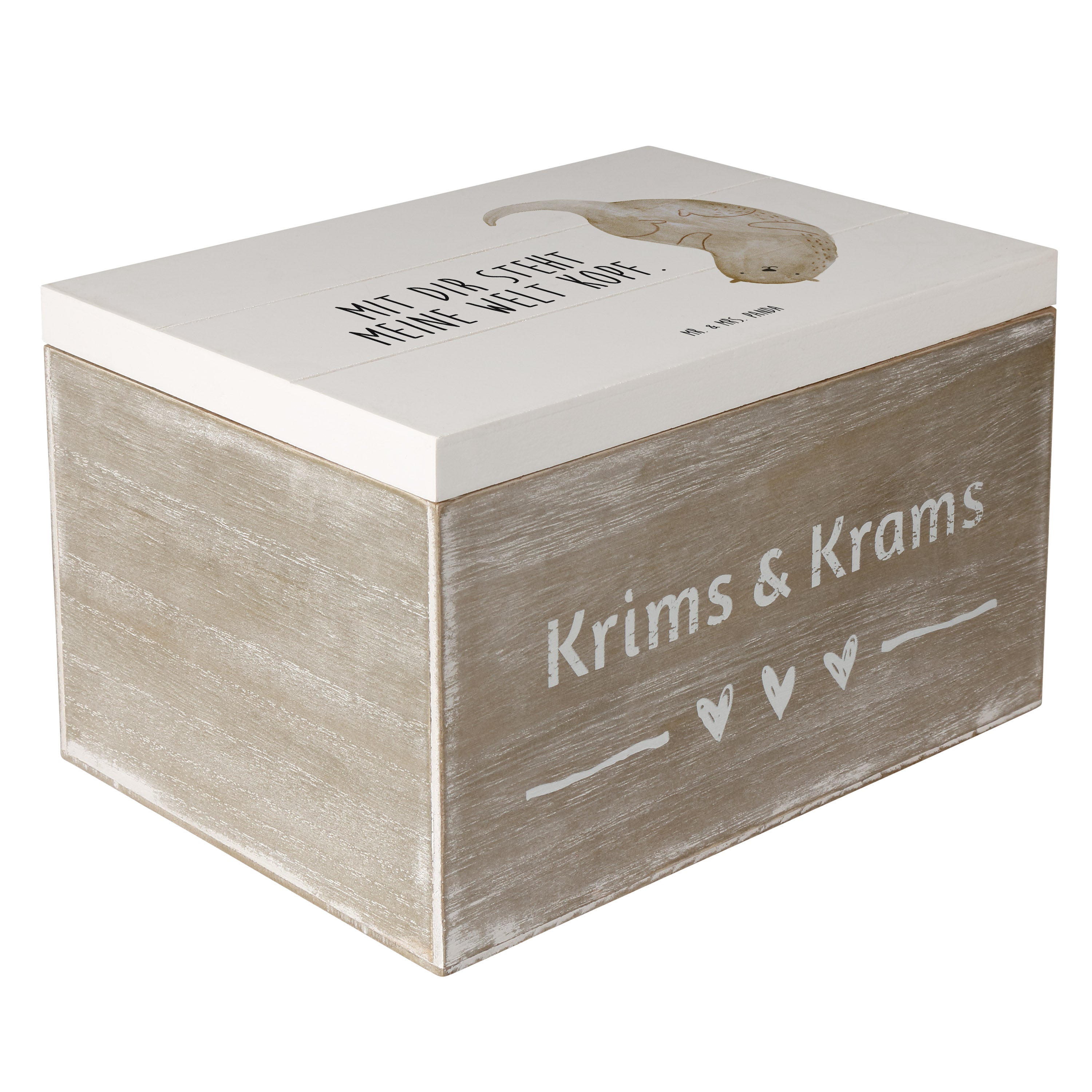 Holzkiste Otter kopfüber - 25 x 18 cm - mit Spruch - Grau Pastell