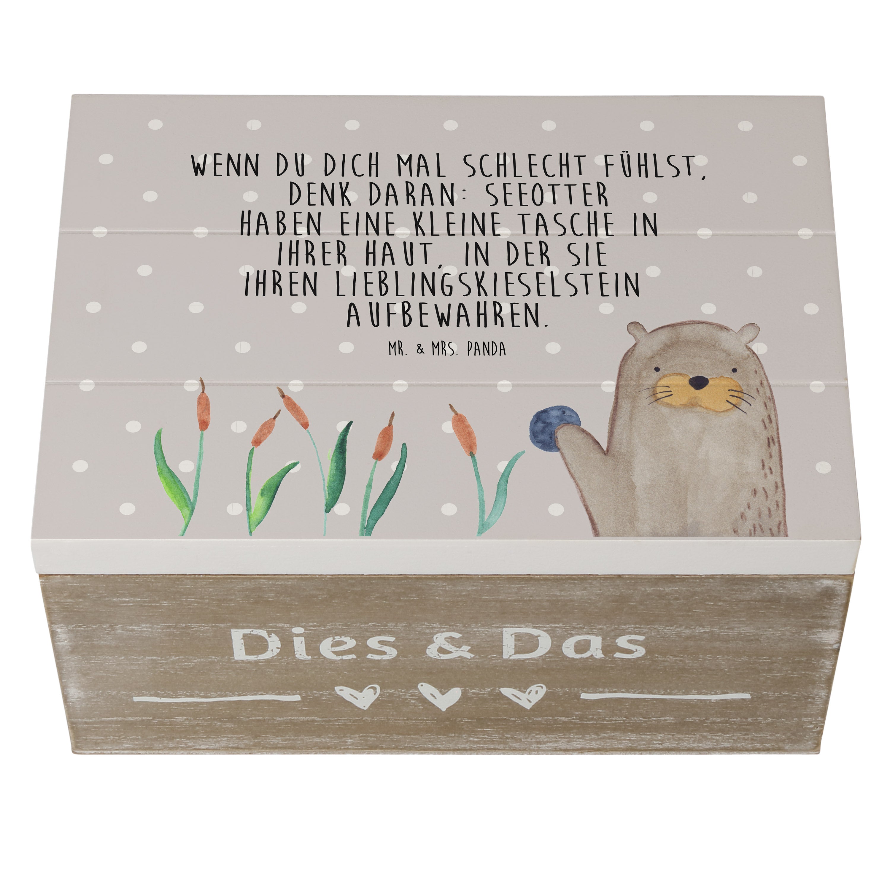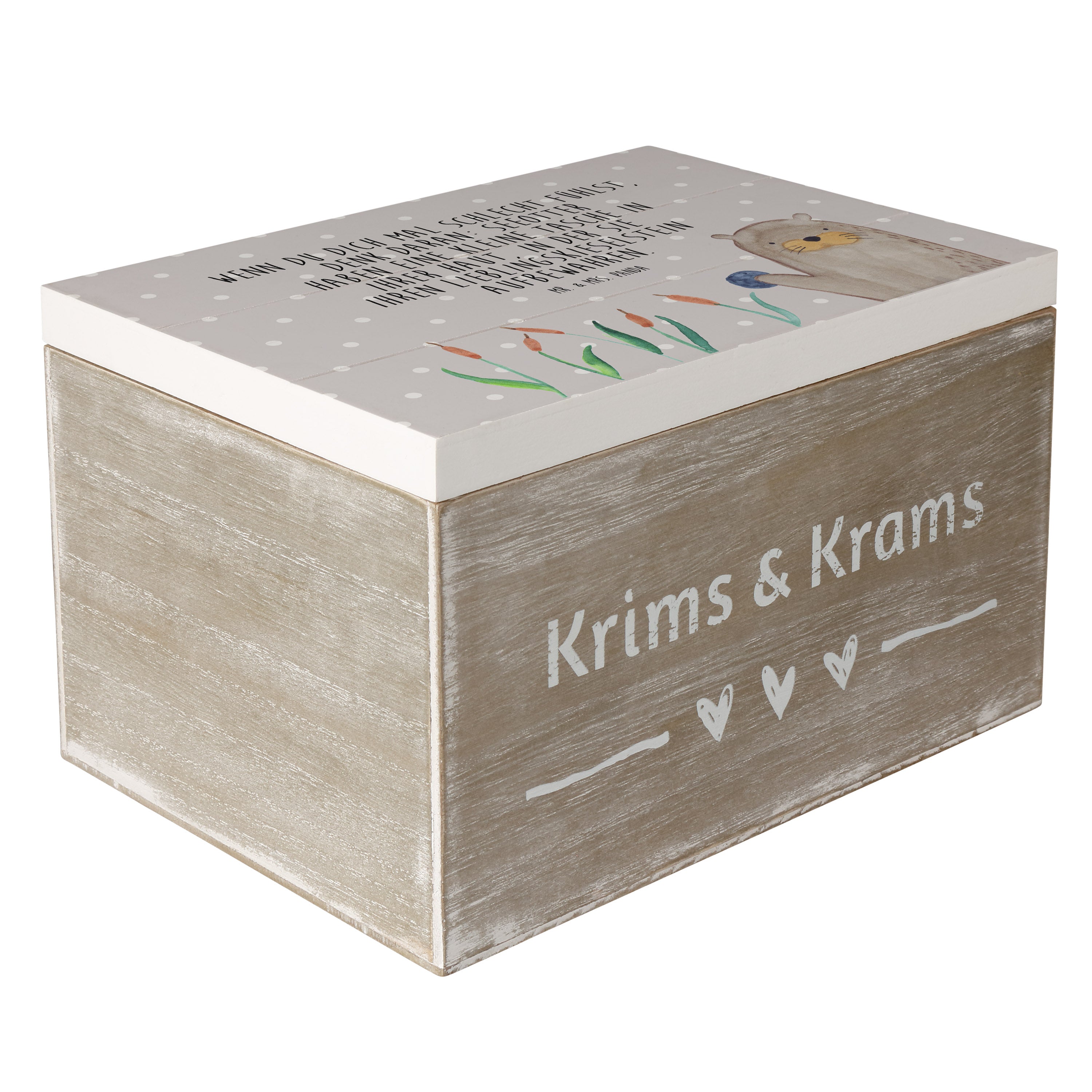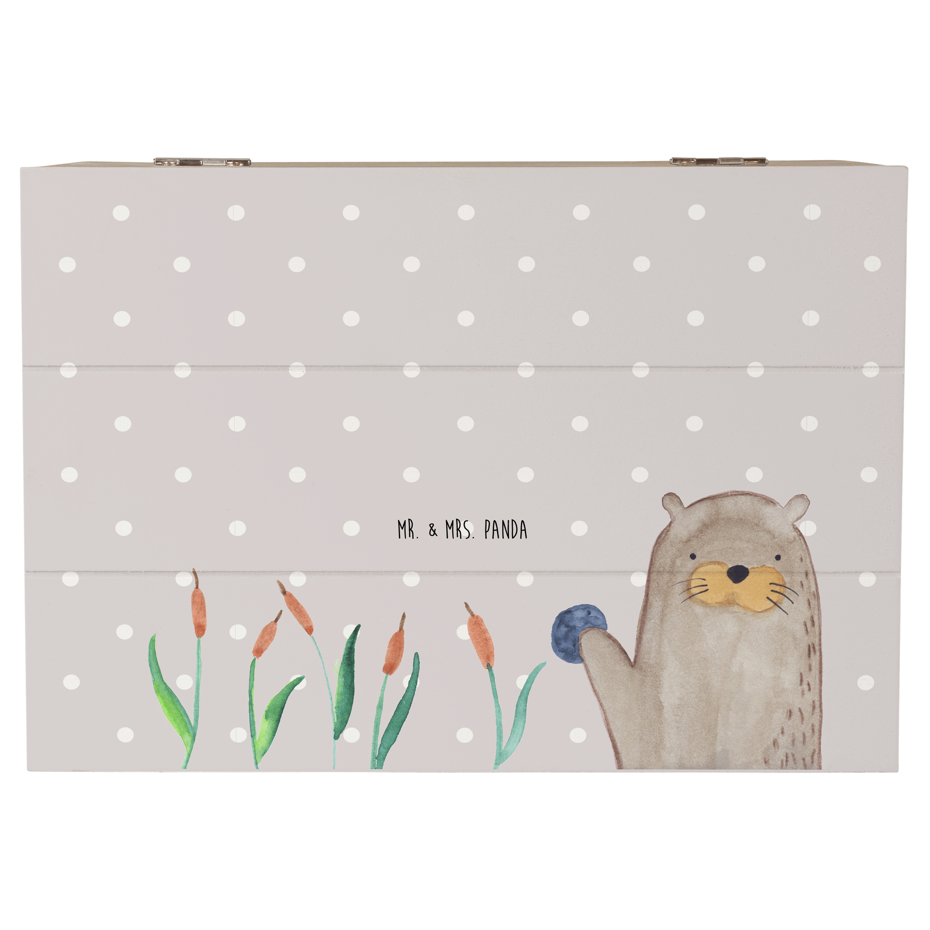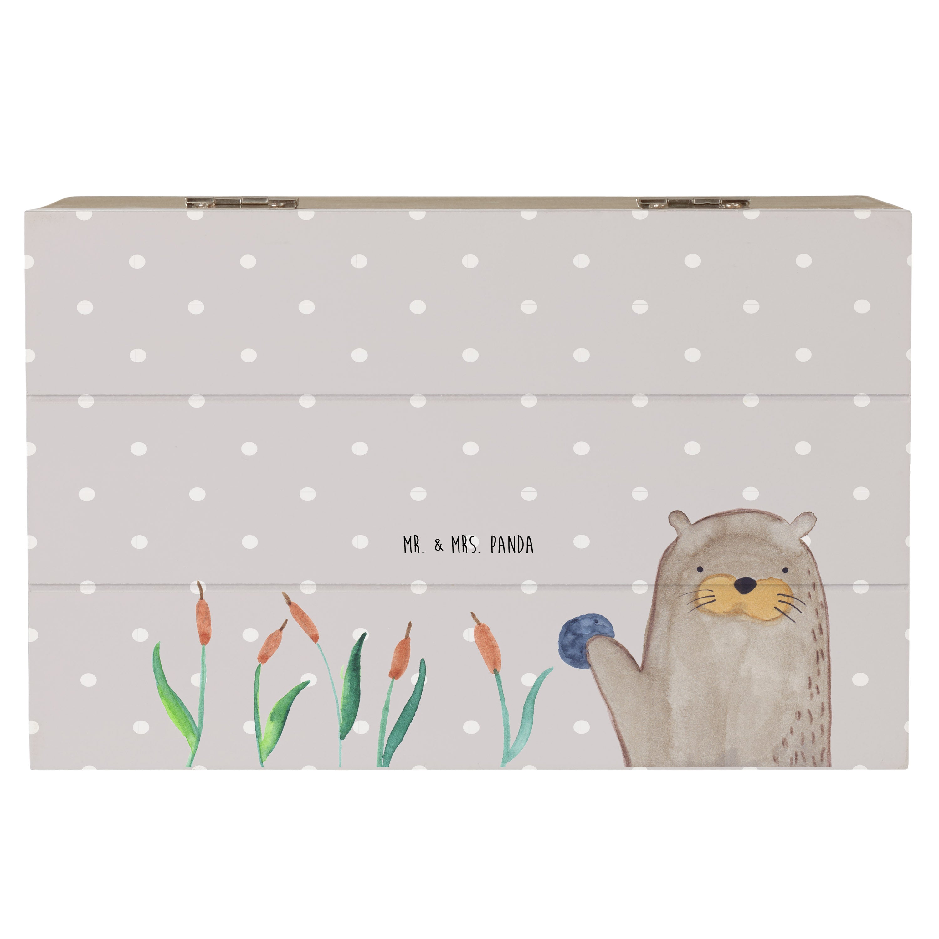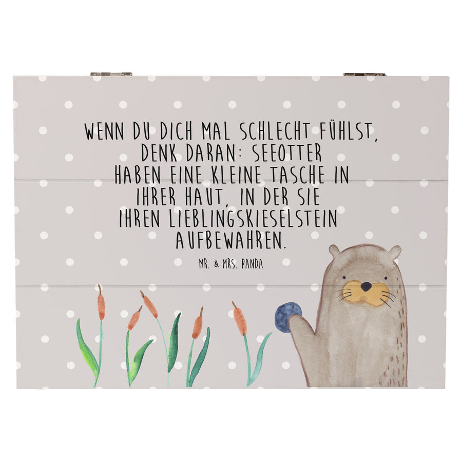 Holzkiste Otter mit Stein - 25 x 18 cm - mit Spruch - Grau Pastell