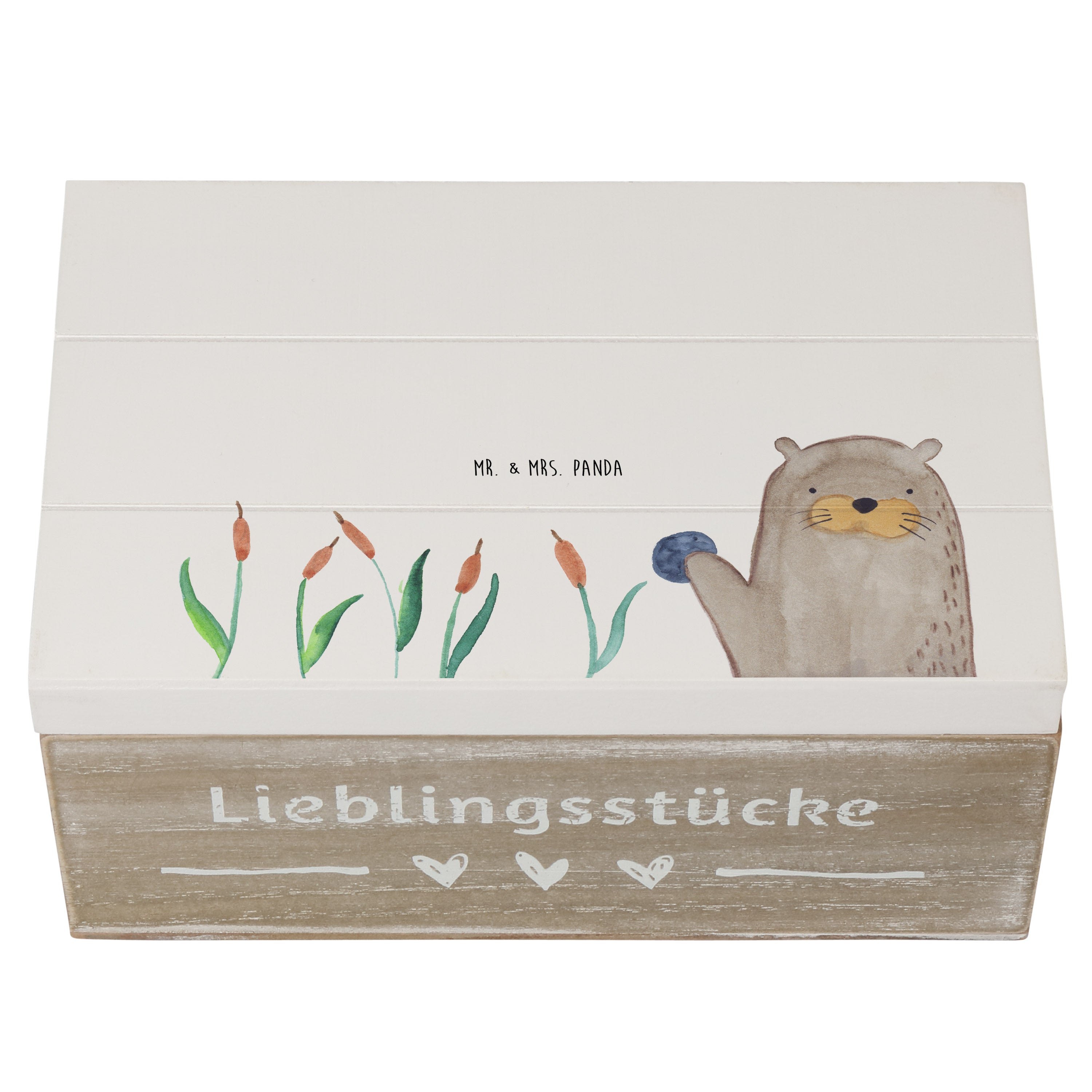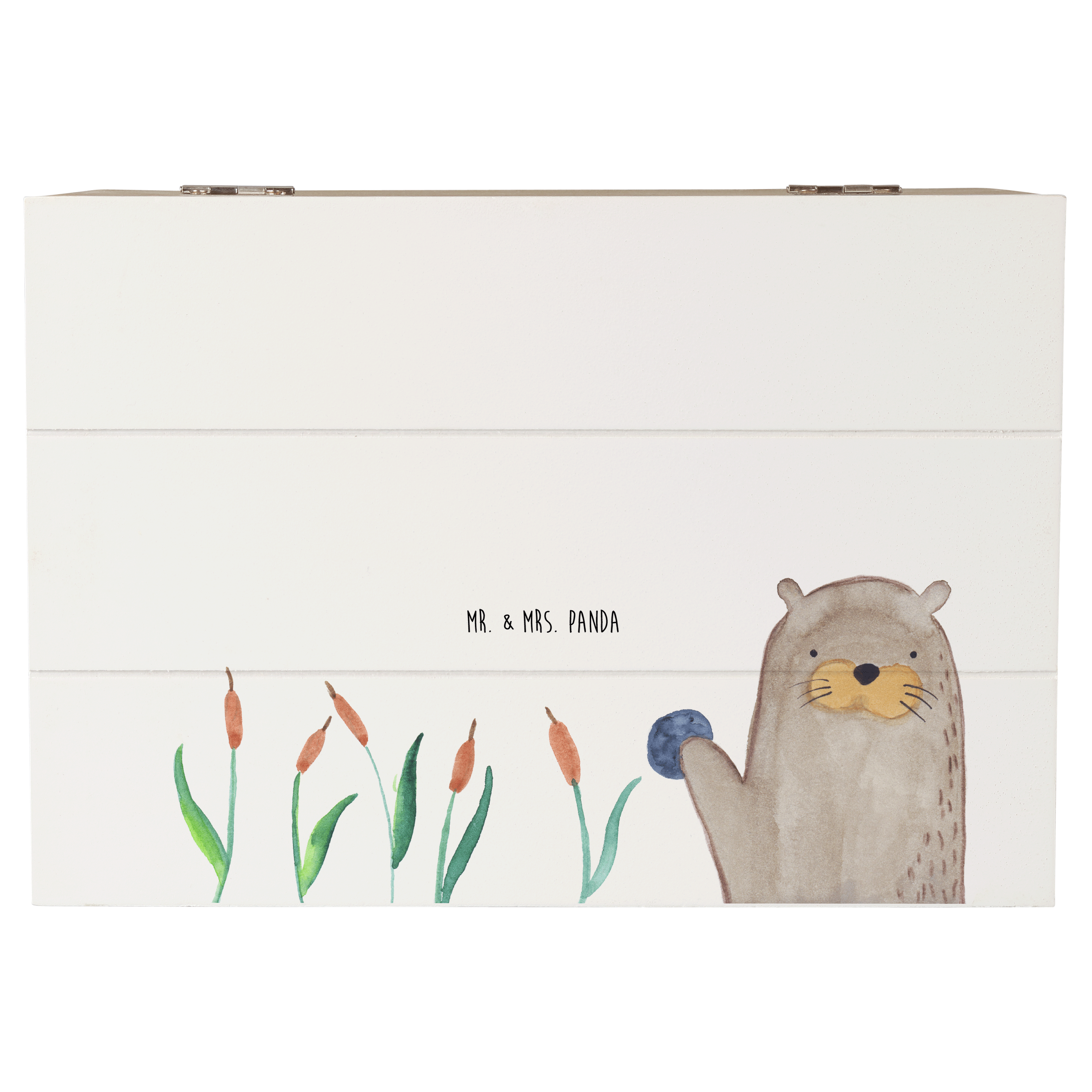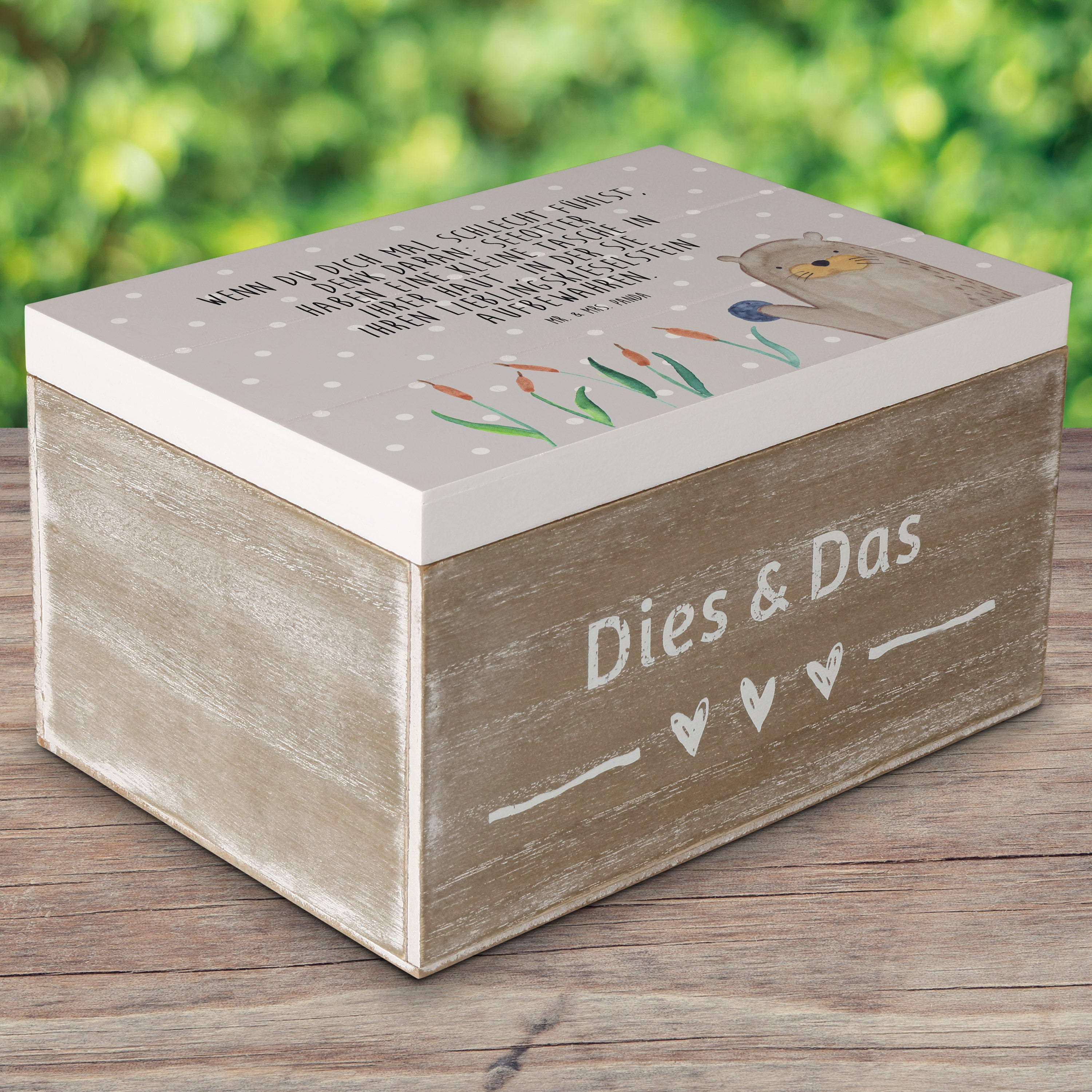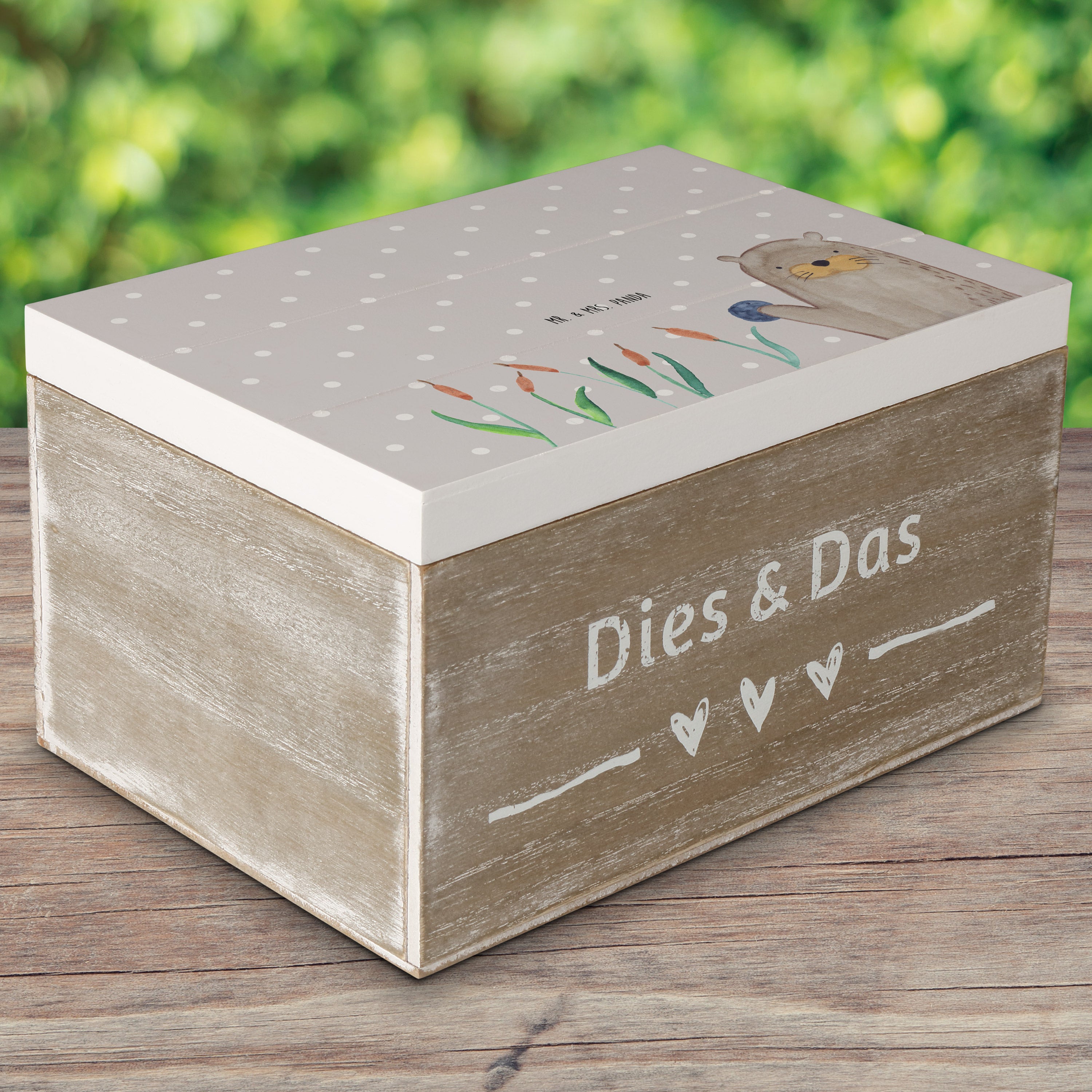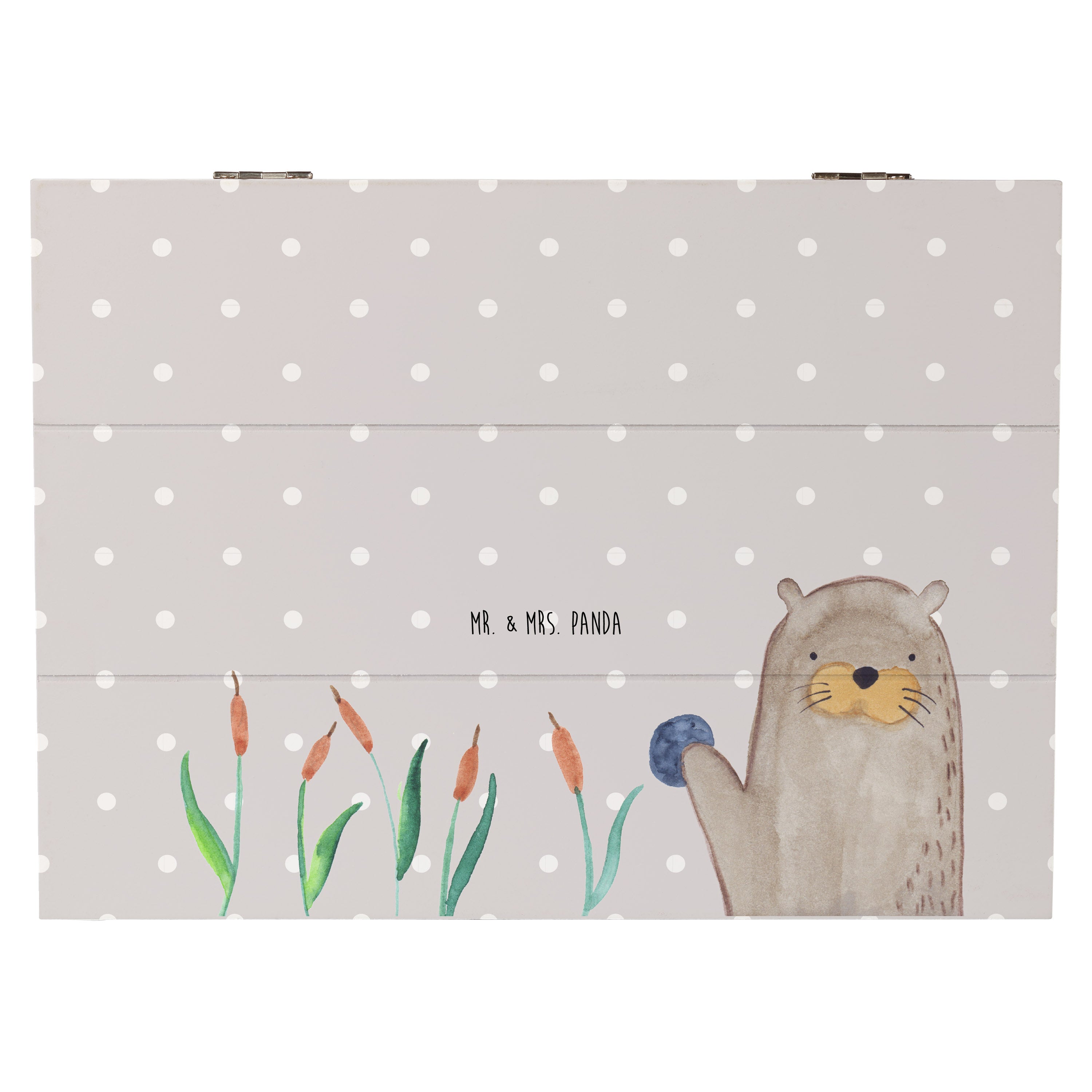 Holzkiste Otter mit Stein - 25 x 18 cm - mit Spruch - Grau Pastell