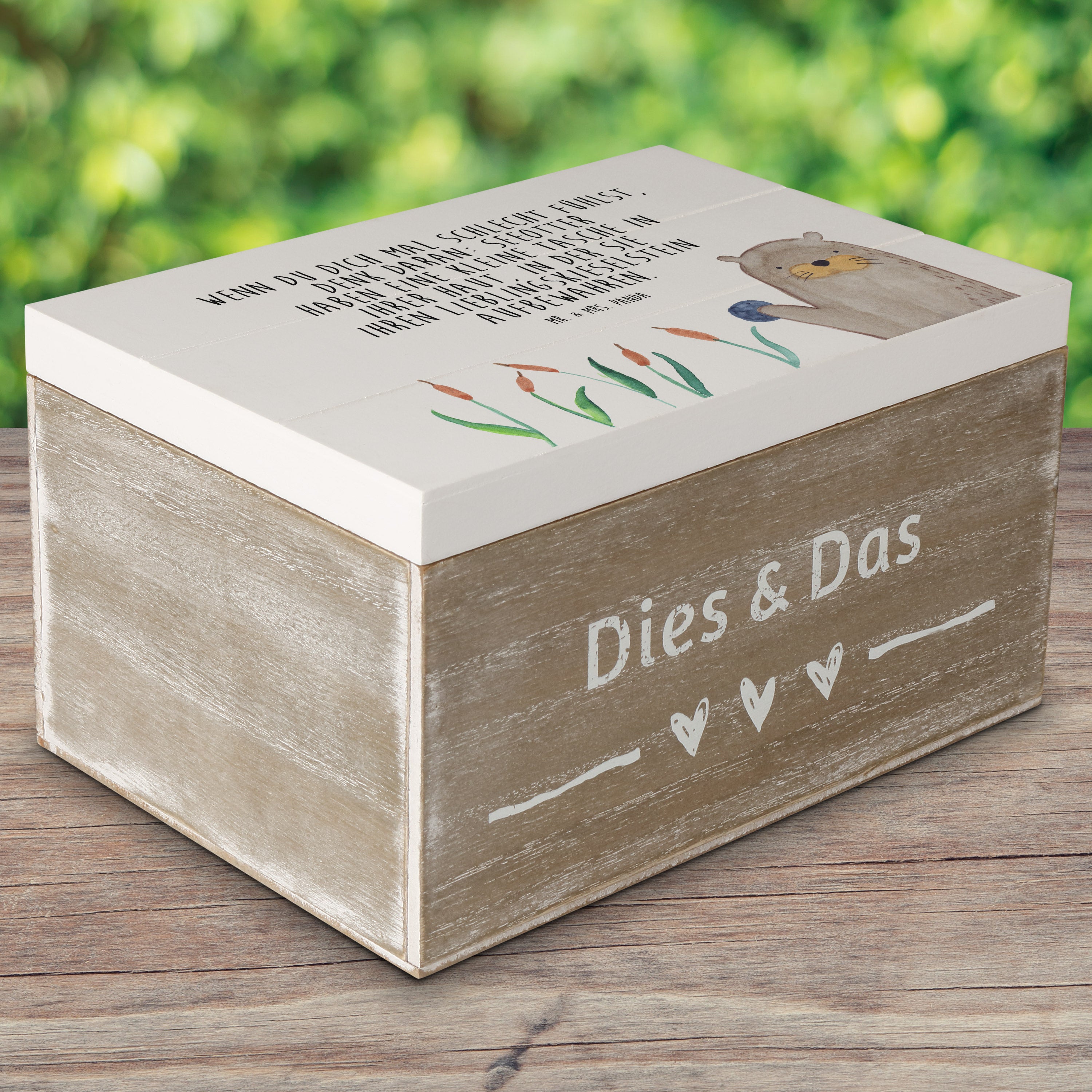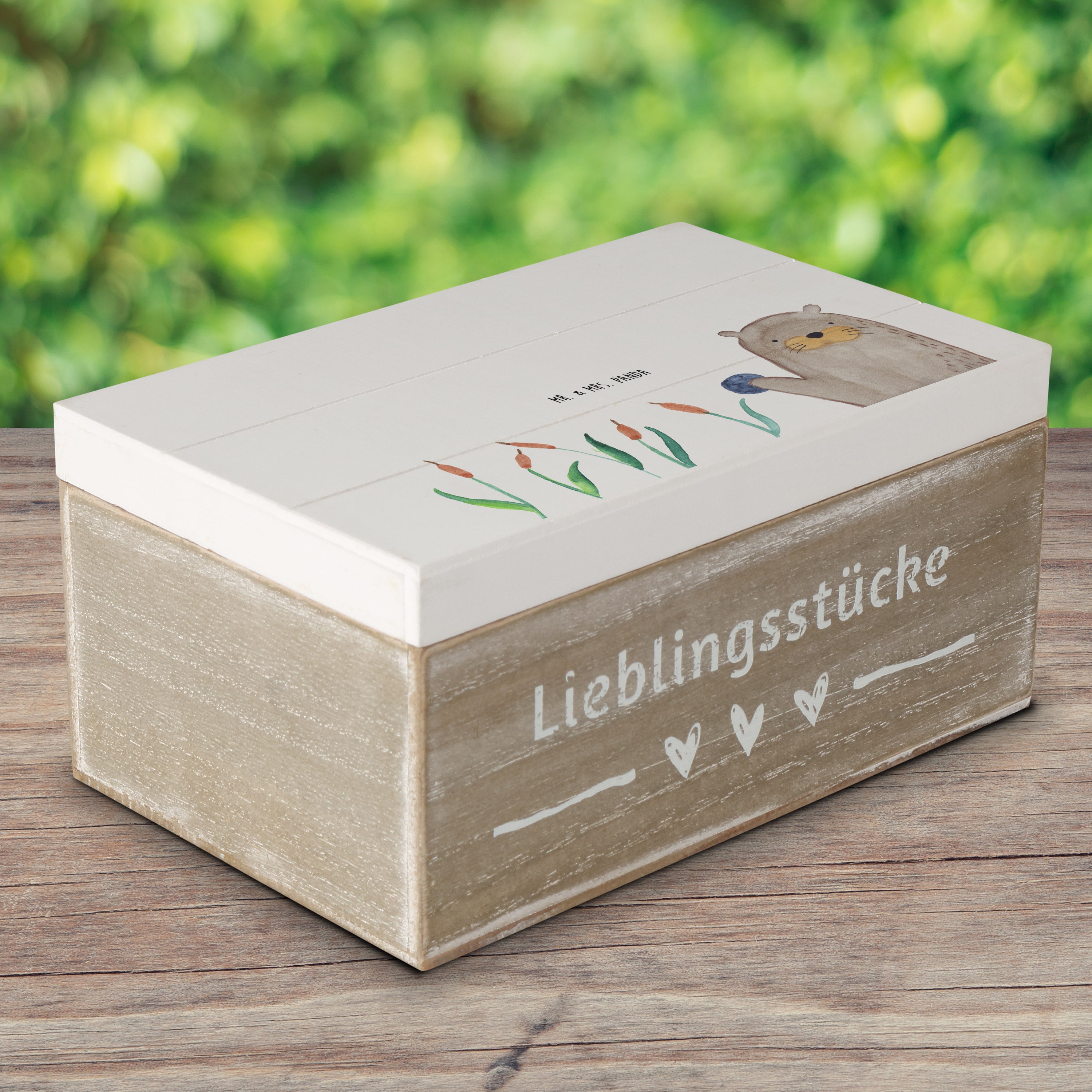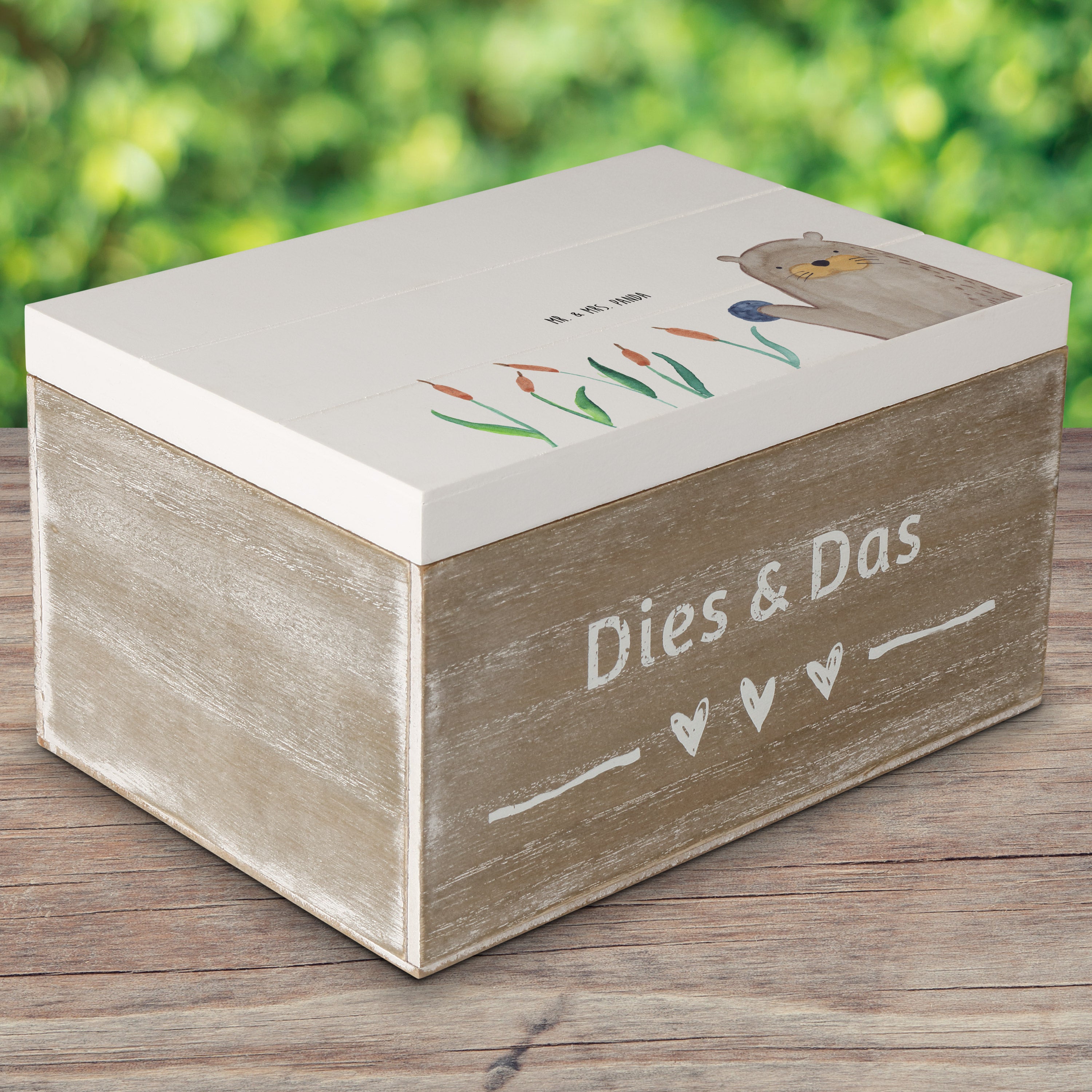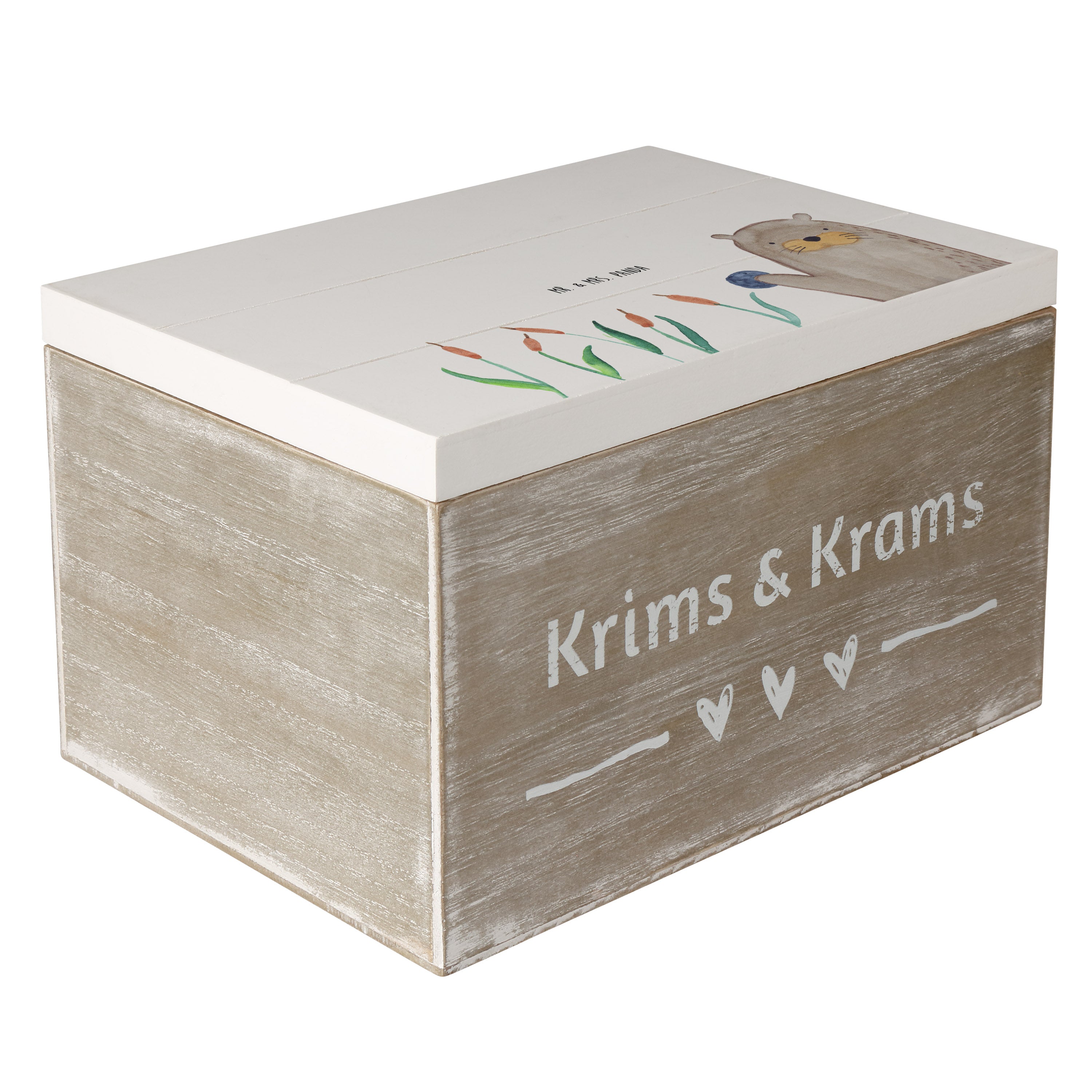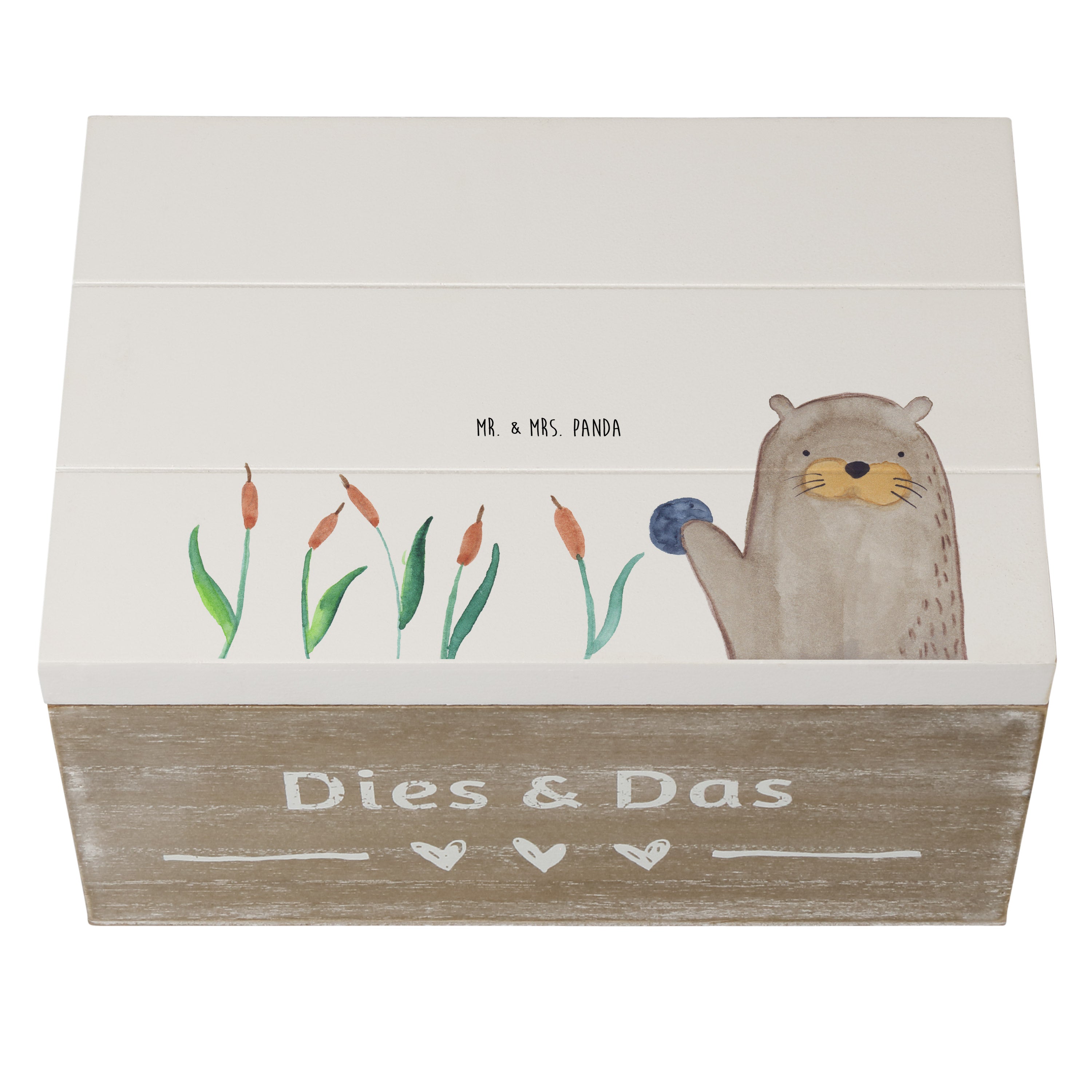 Holzkiste Otter mit Stein - 25 x 18 cm - mit Spruch - Grau Pastell