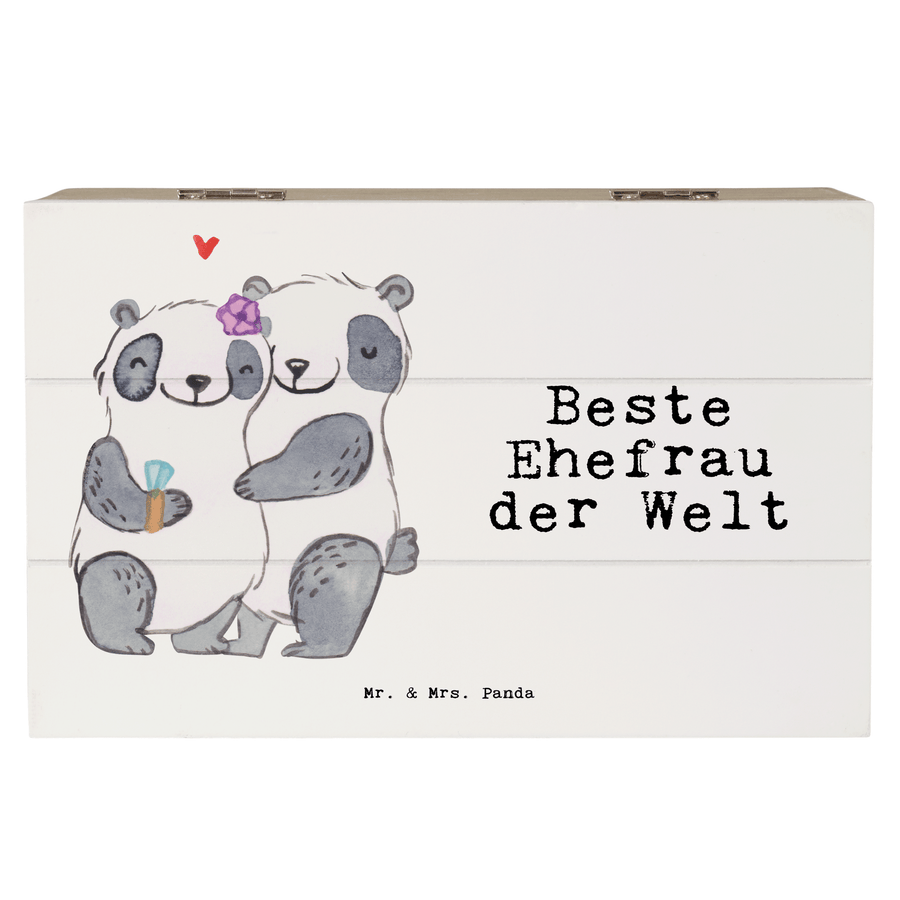 Holzkiste Panda Beste Ehefrau der Welt - Weiß - 19 x 12 cm