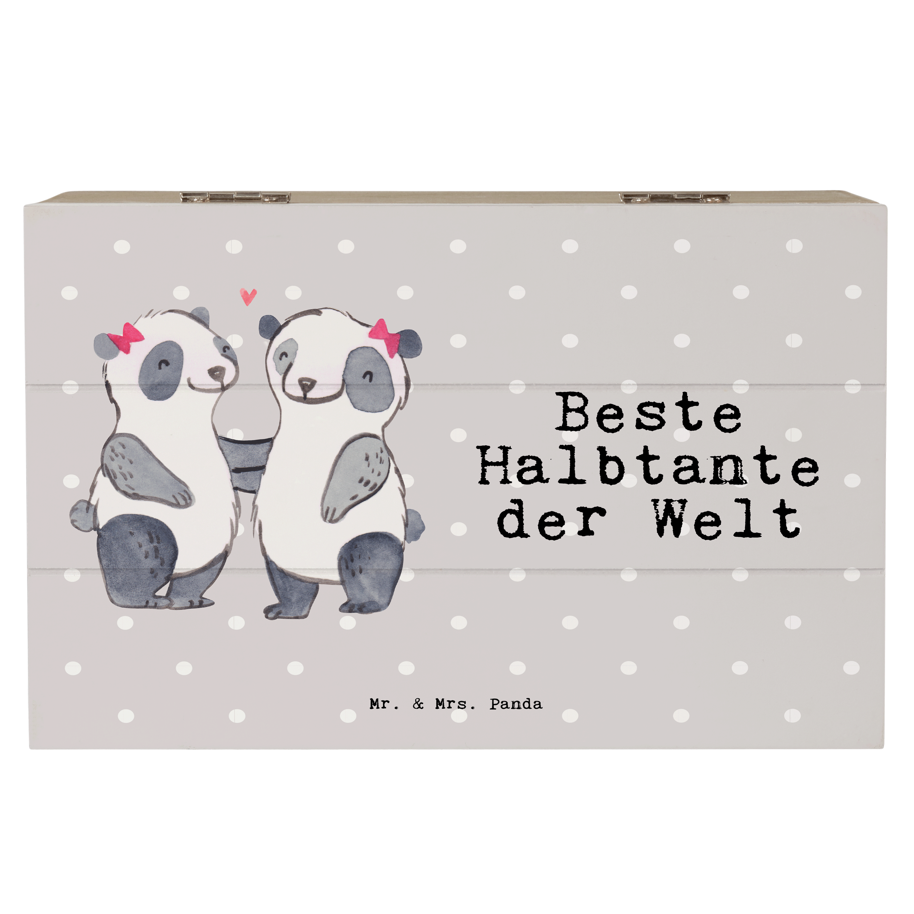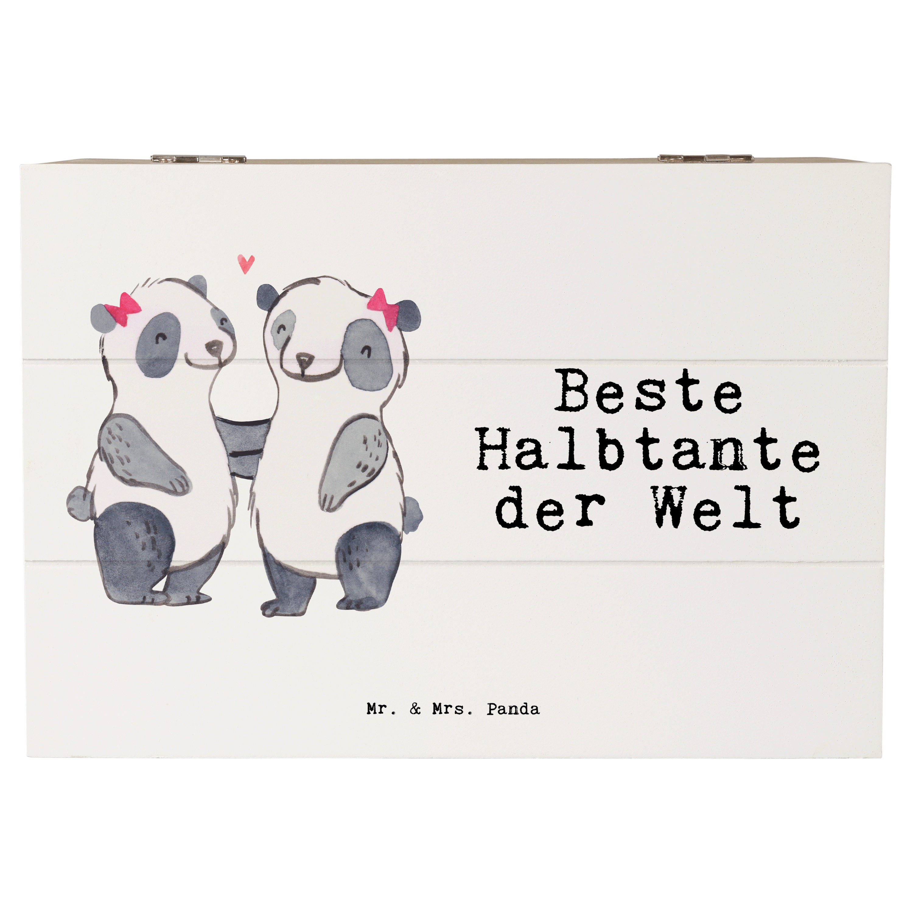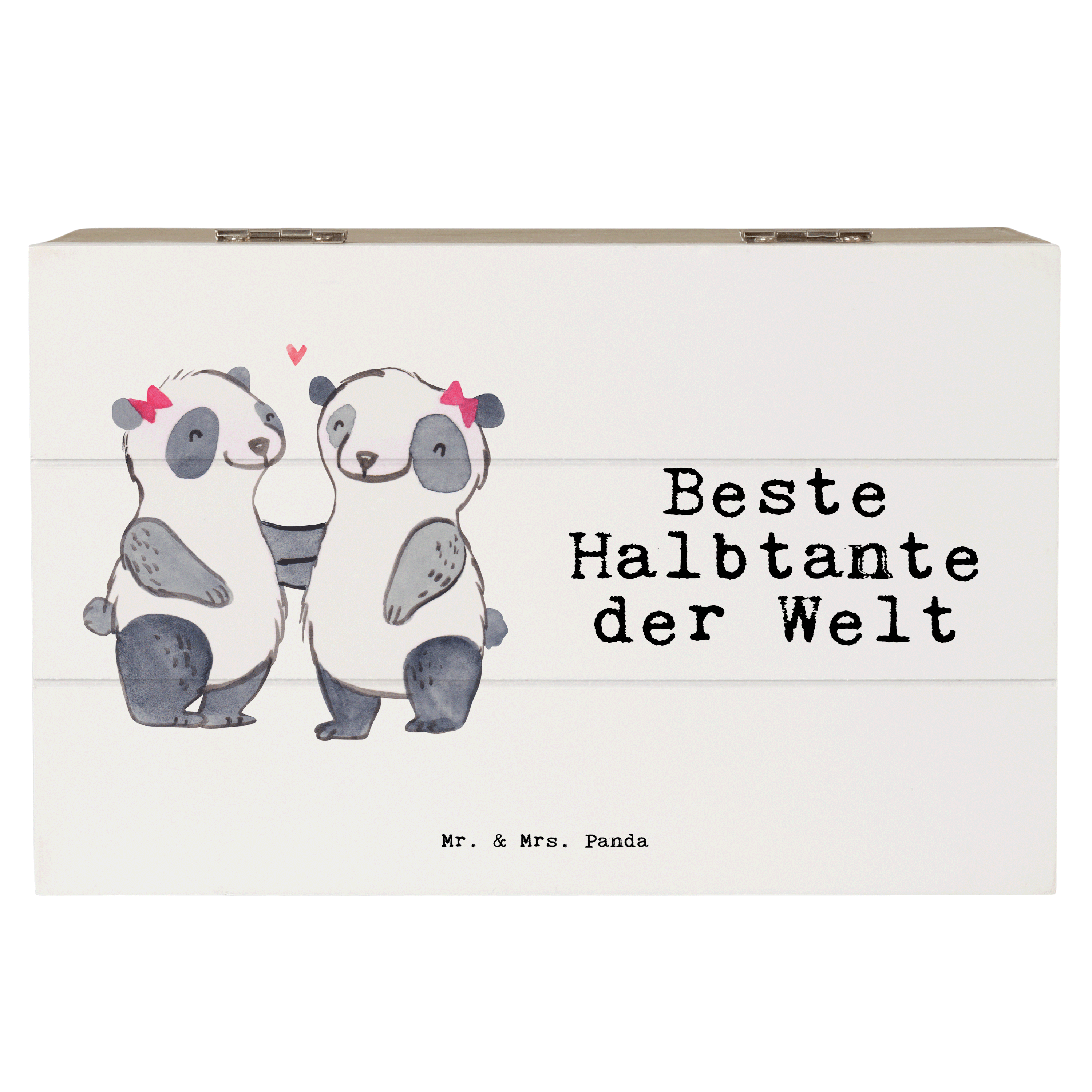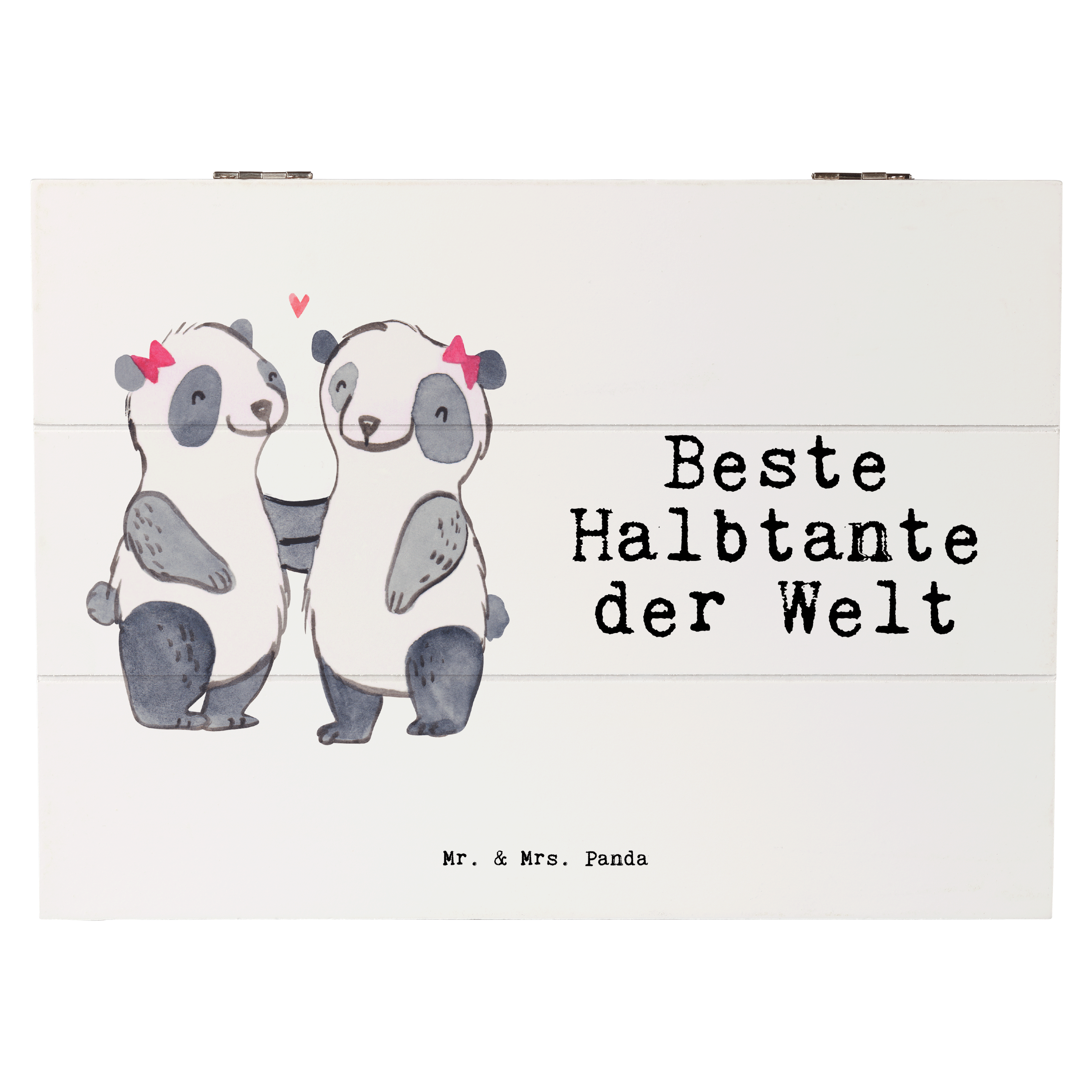 Holzkiste Panda Beste Halbtante der Welt - Weiß - 19 x 12 cm
