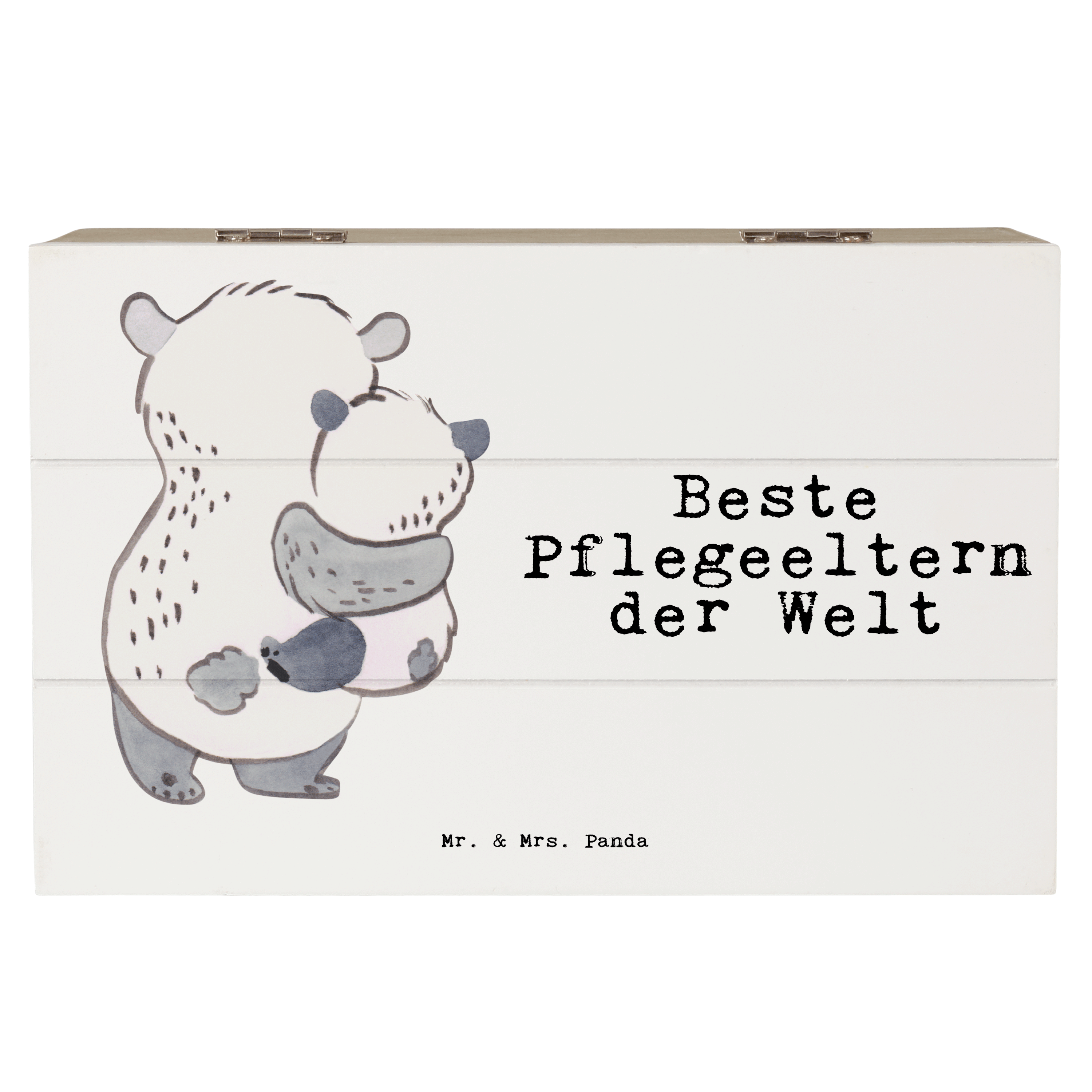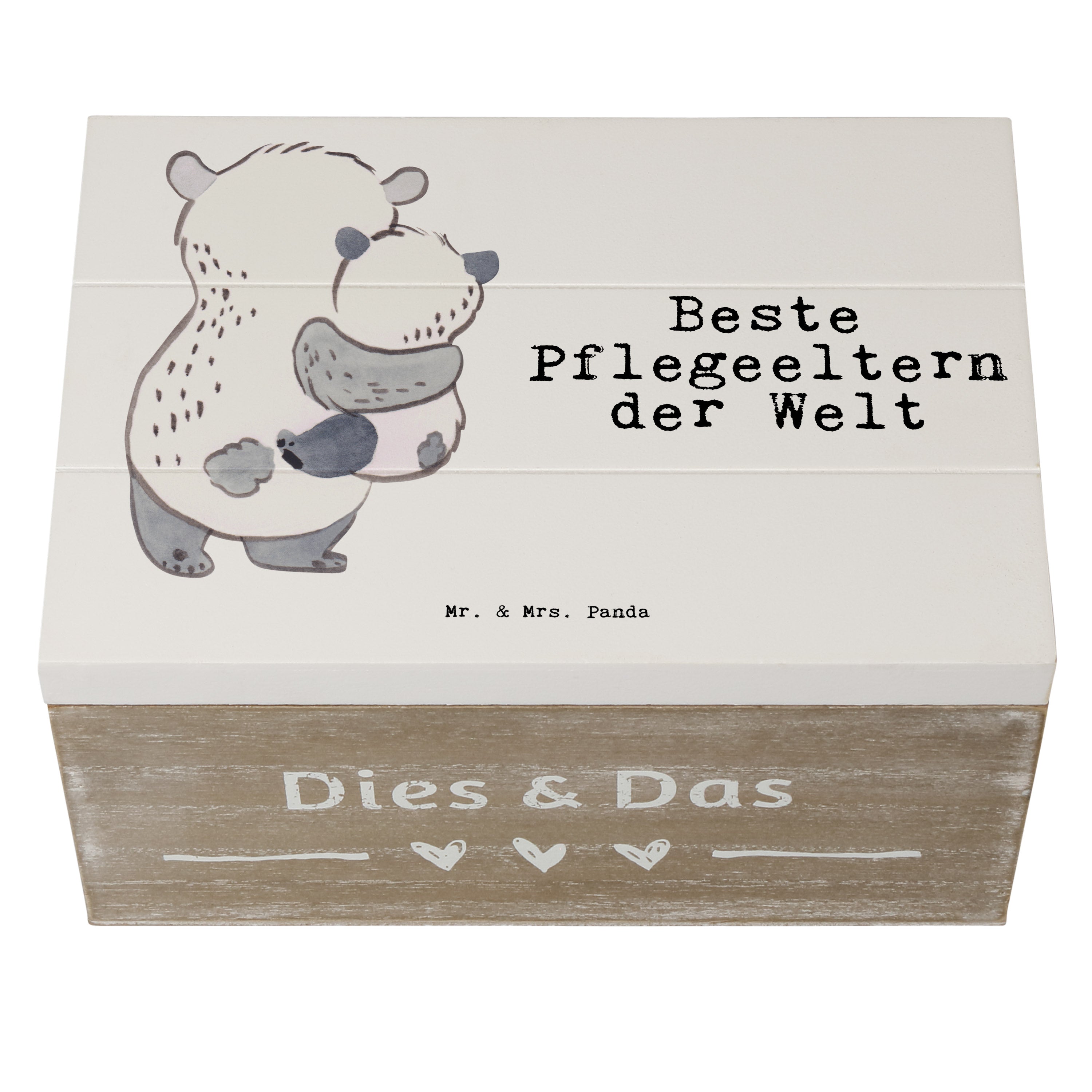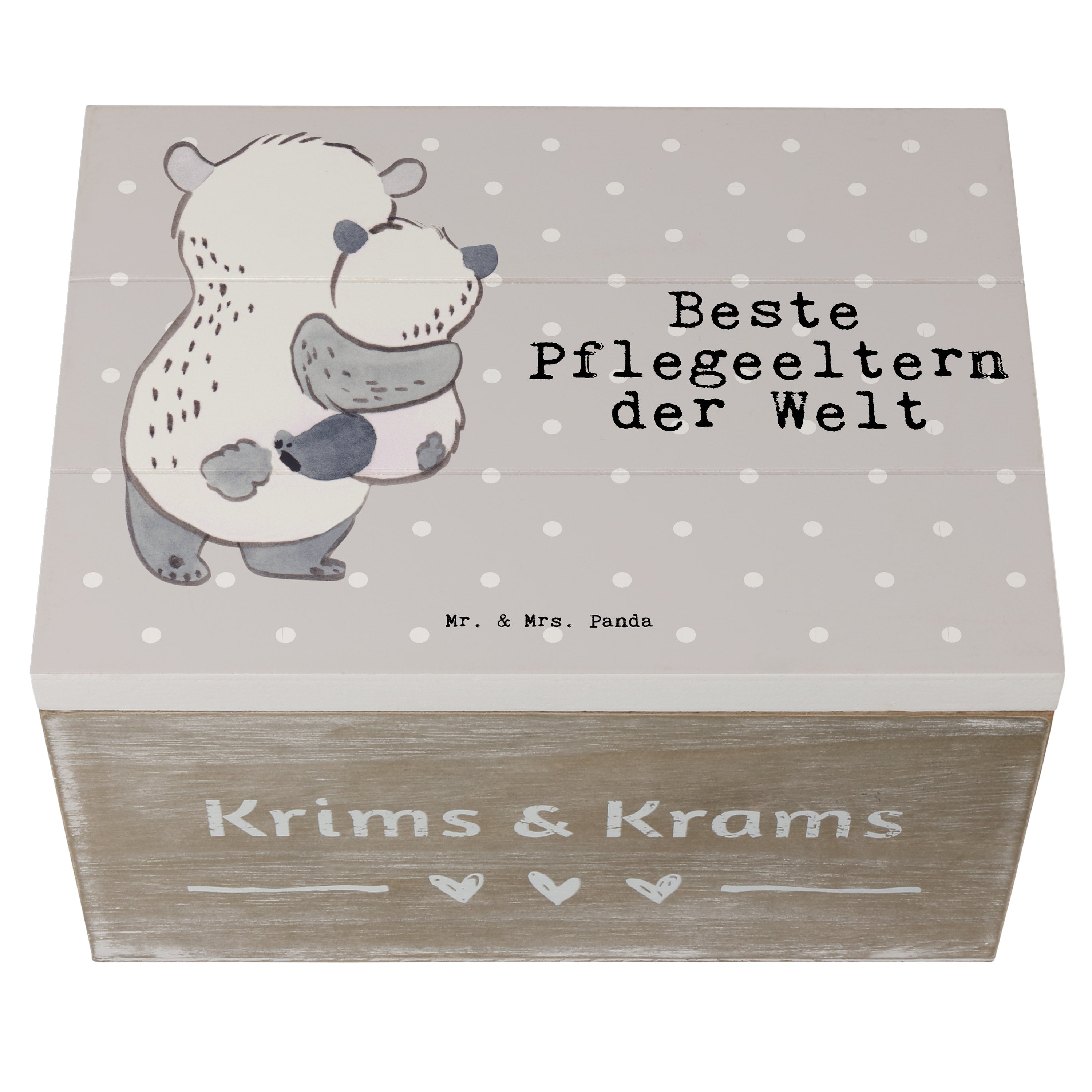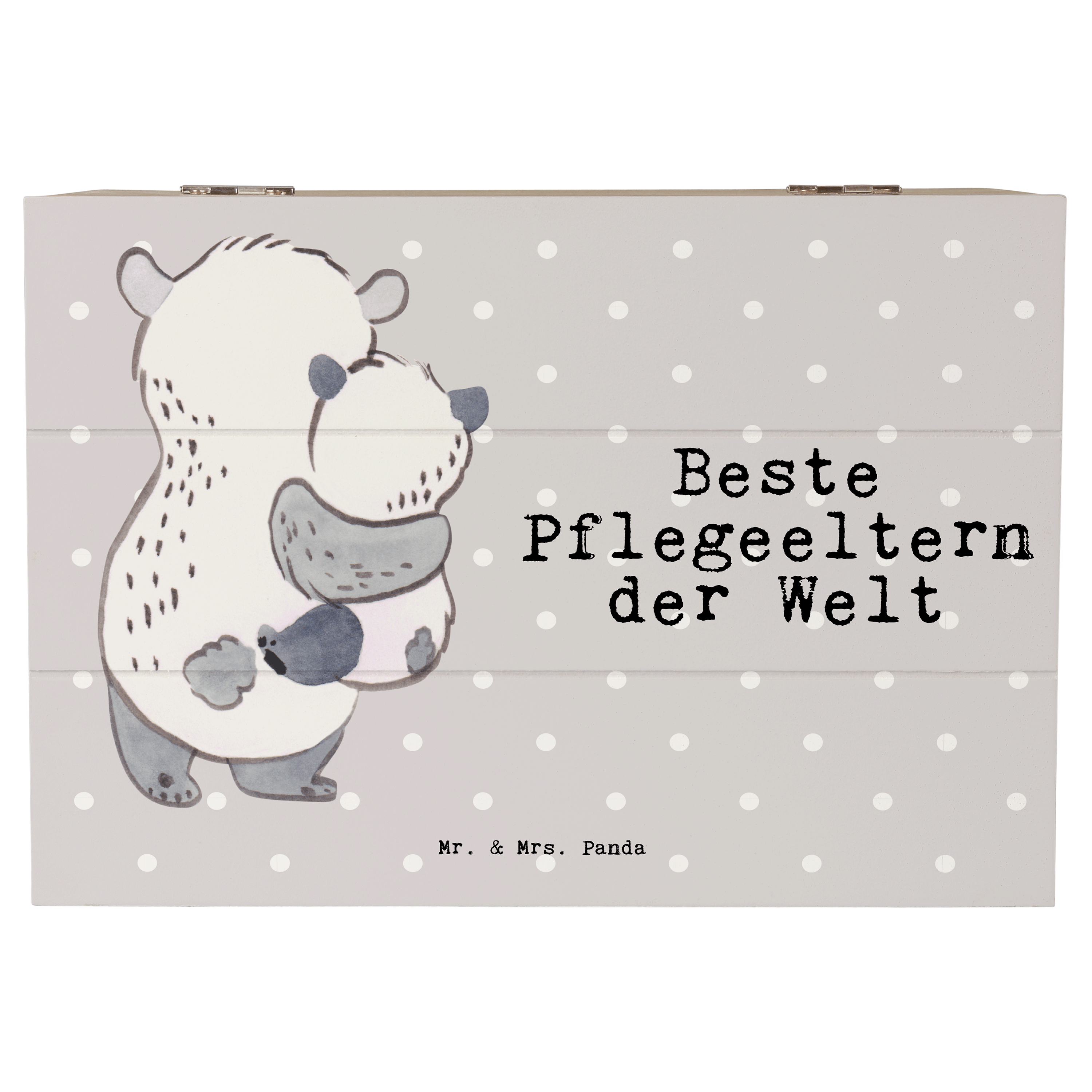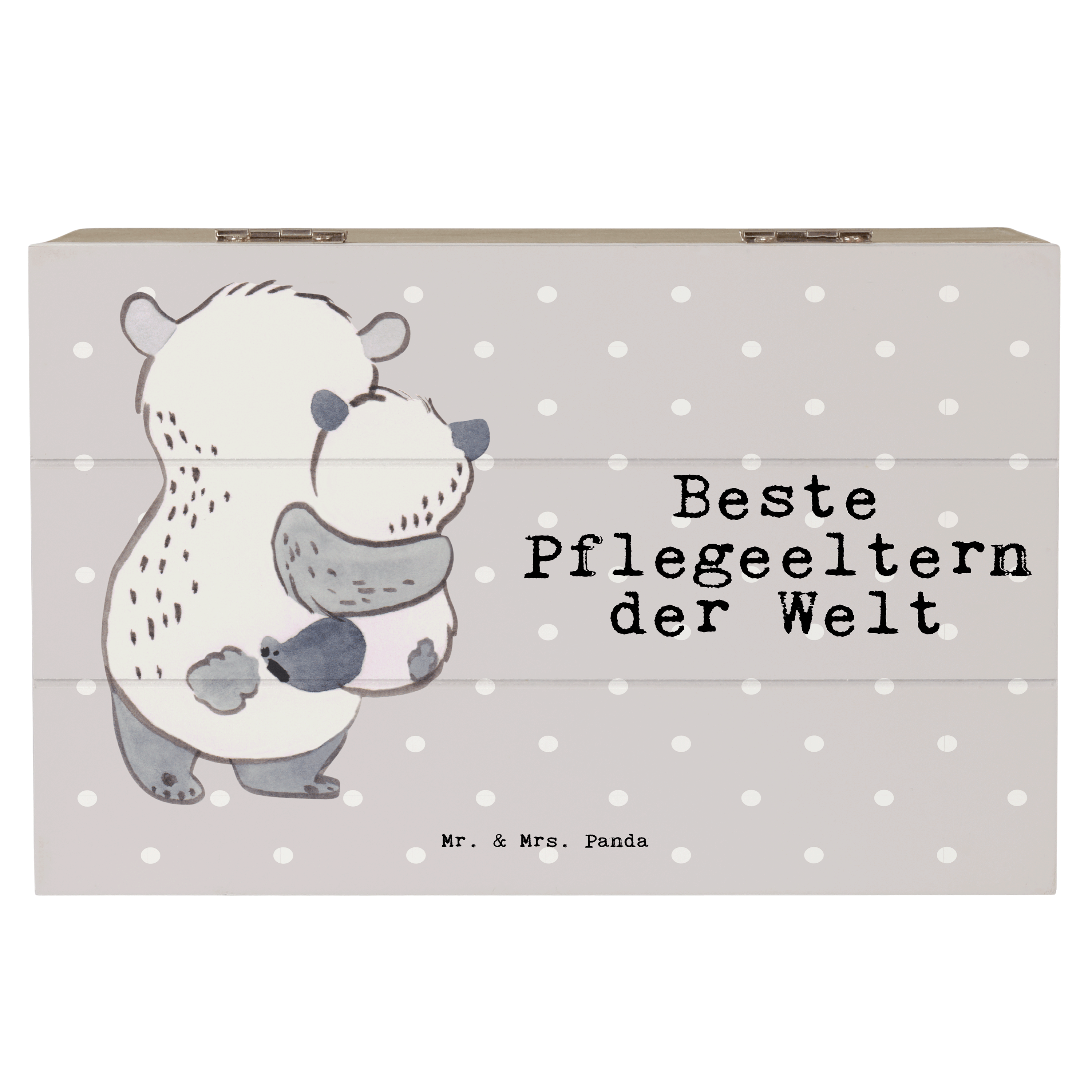 Holzkiste Panda Beste Pflegeeltern der Welt - Grau Pastell - 19 x 12 cm
