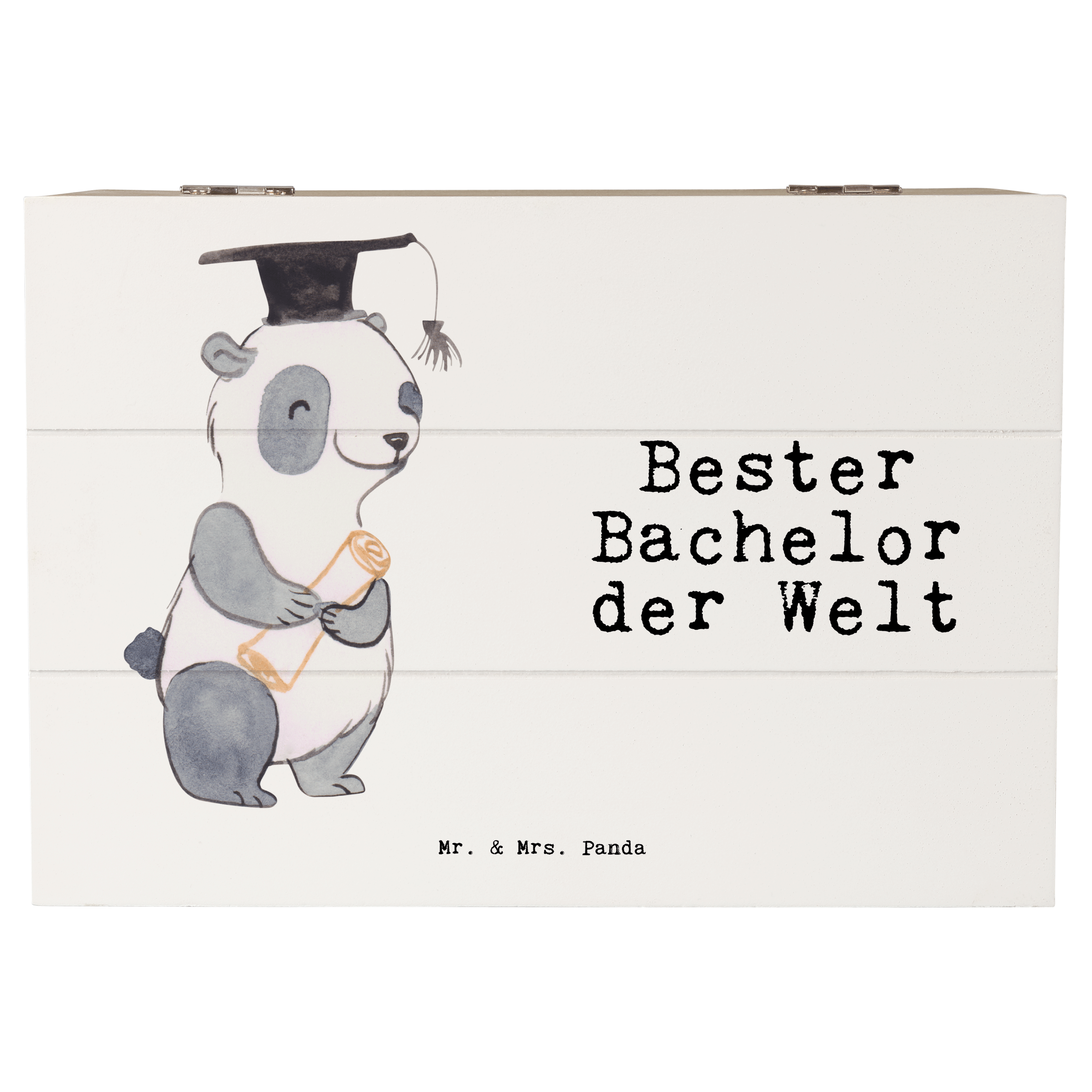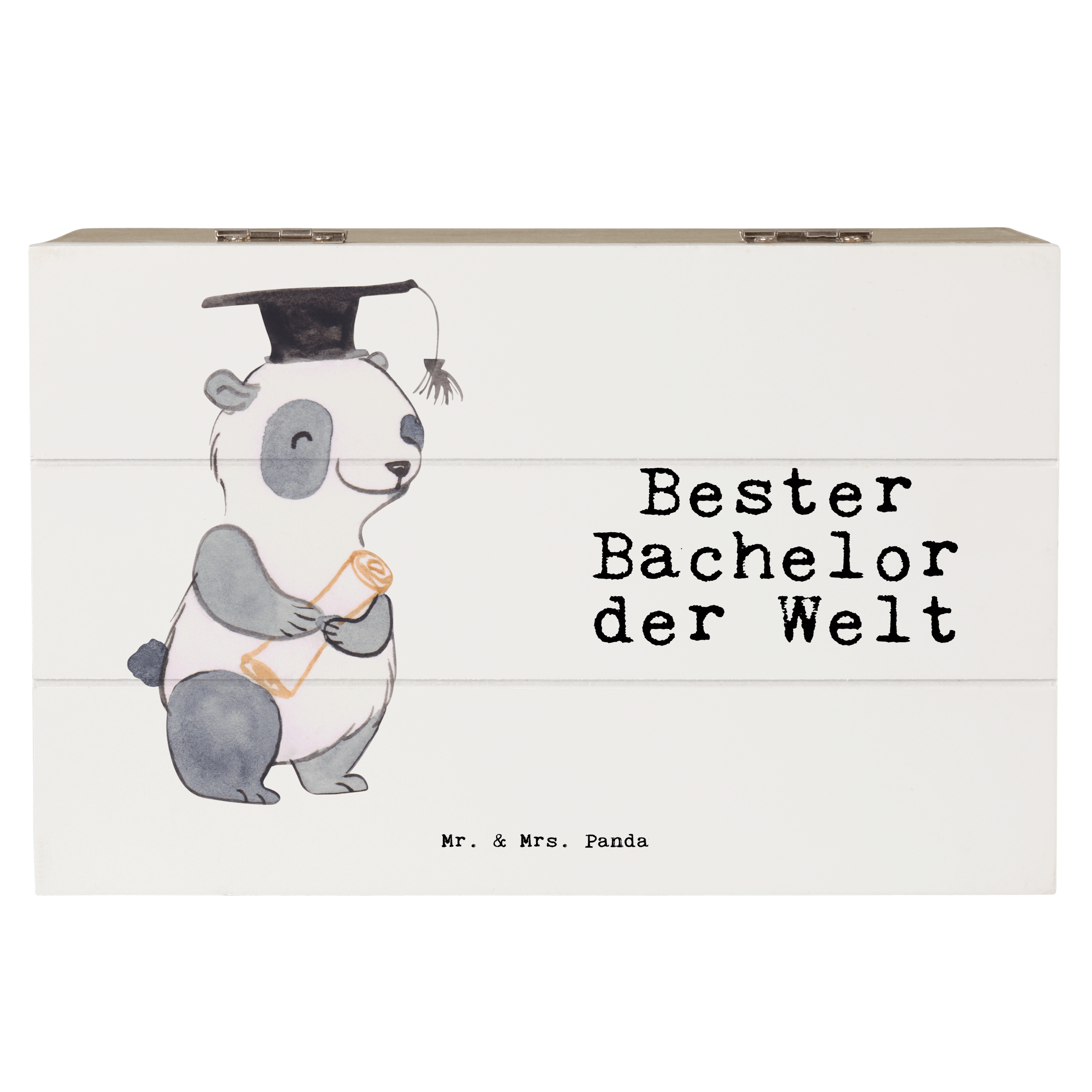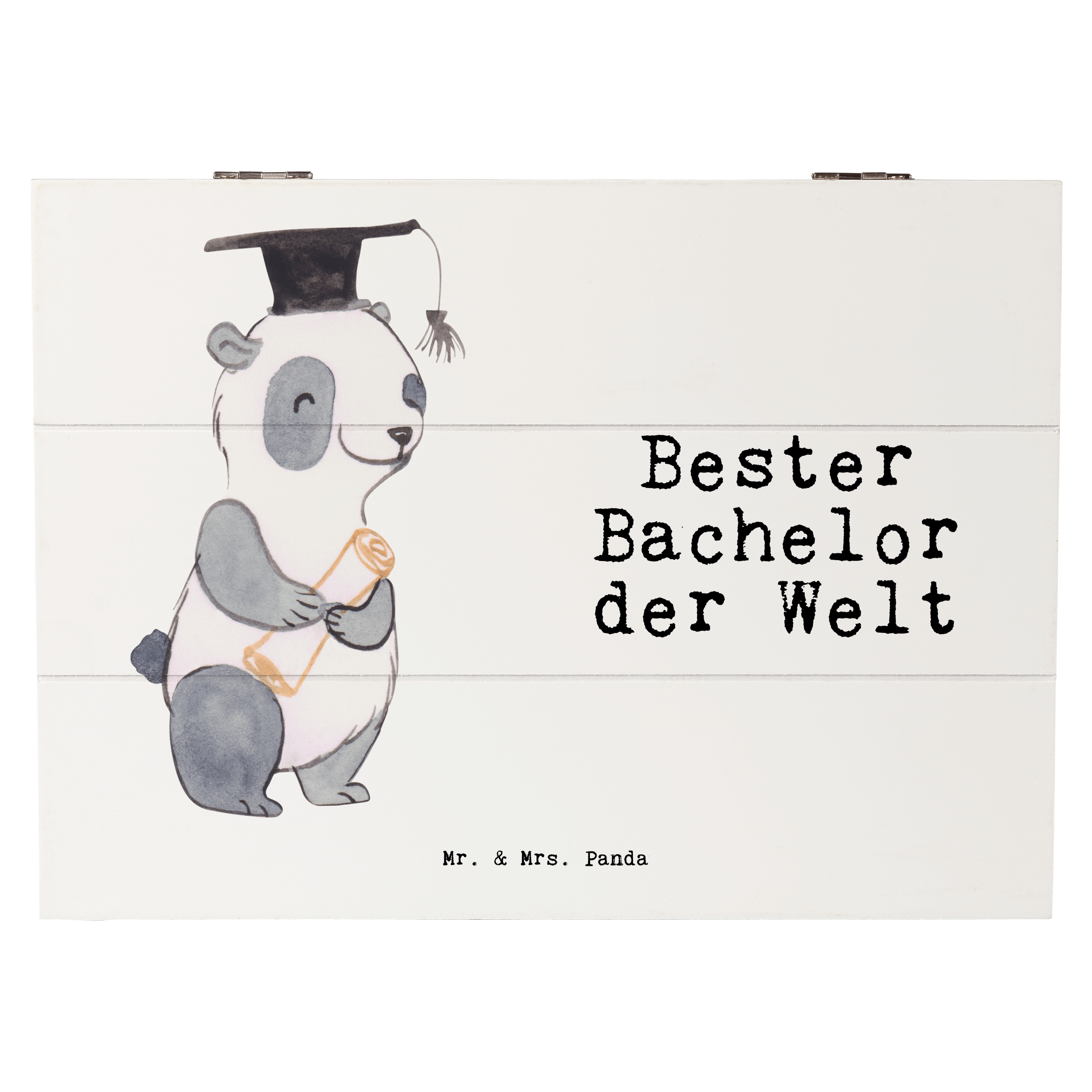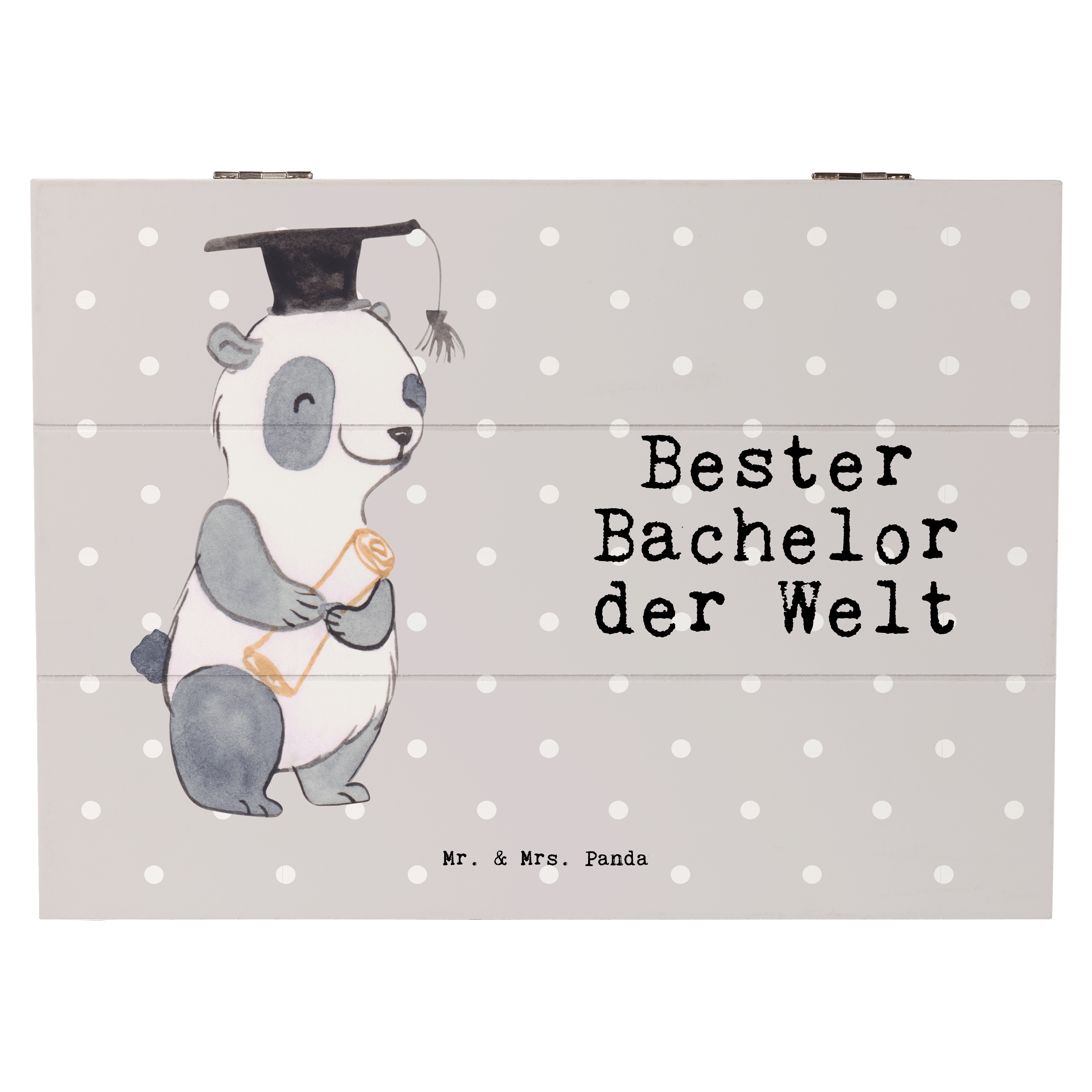 Holzkiste Panda Bester Bachelor der Welt - 25 x 18 cm - Grau Pastell