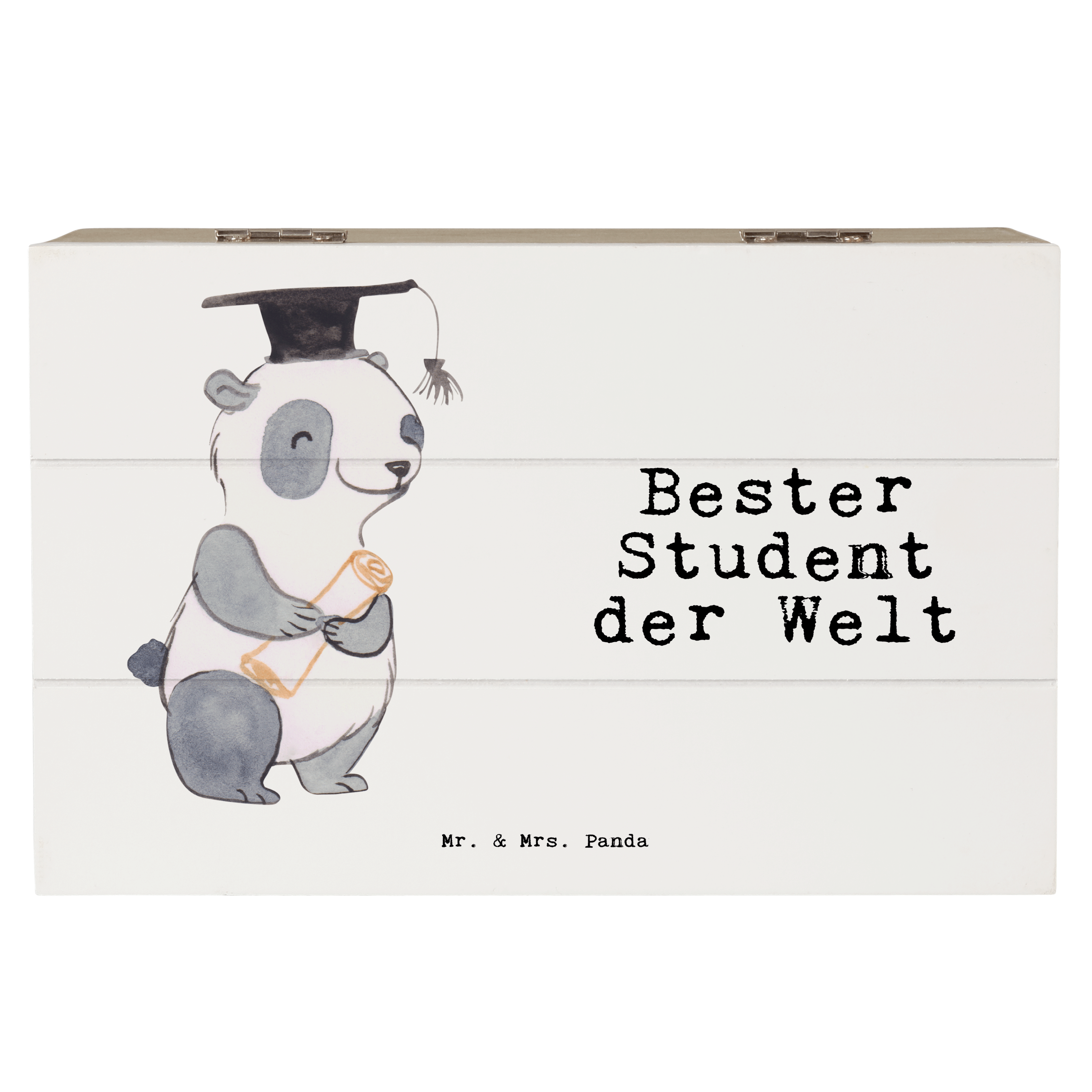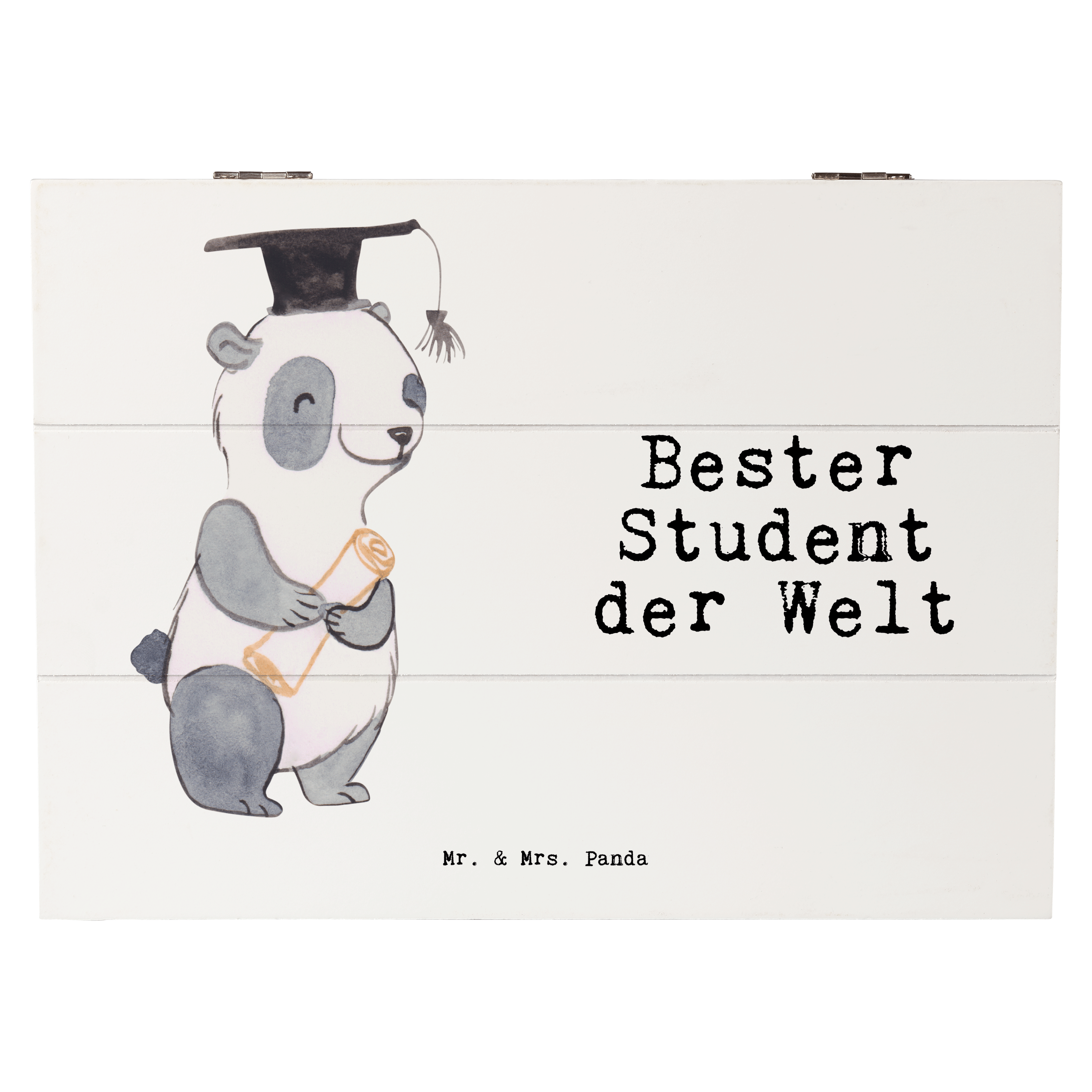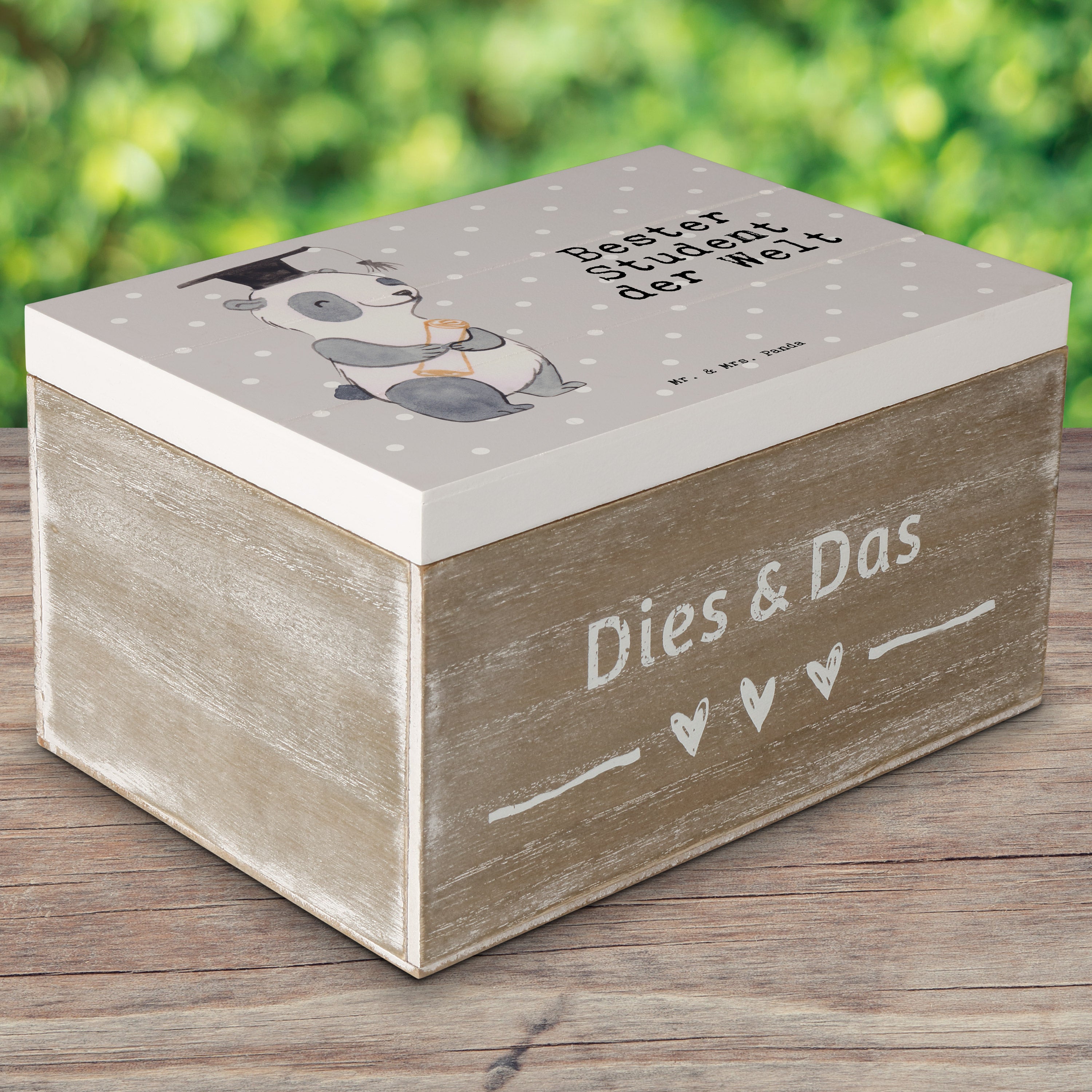 Holzkiste Panda Bester Student der Welt - Grau Pastell - 19 x 12 cm