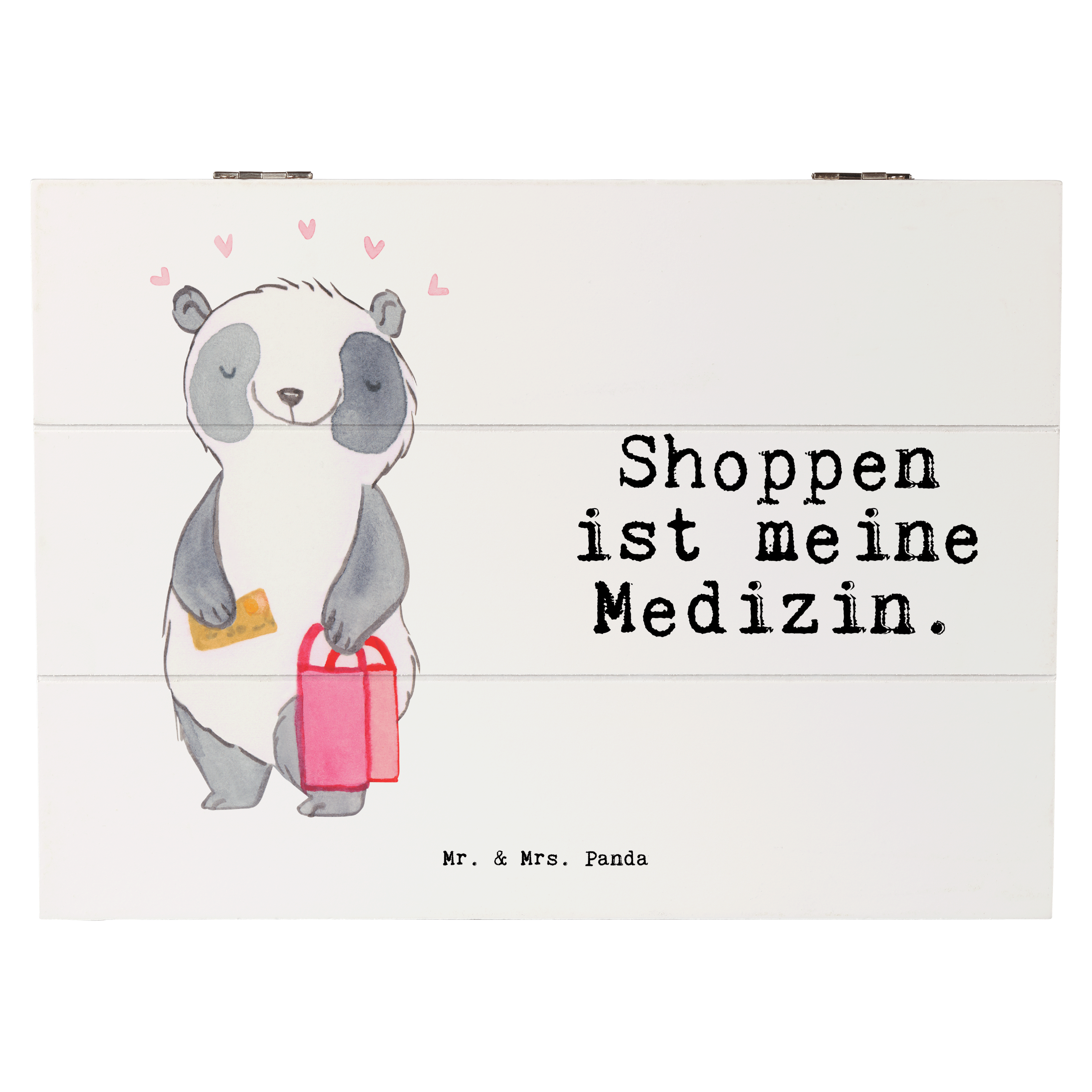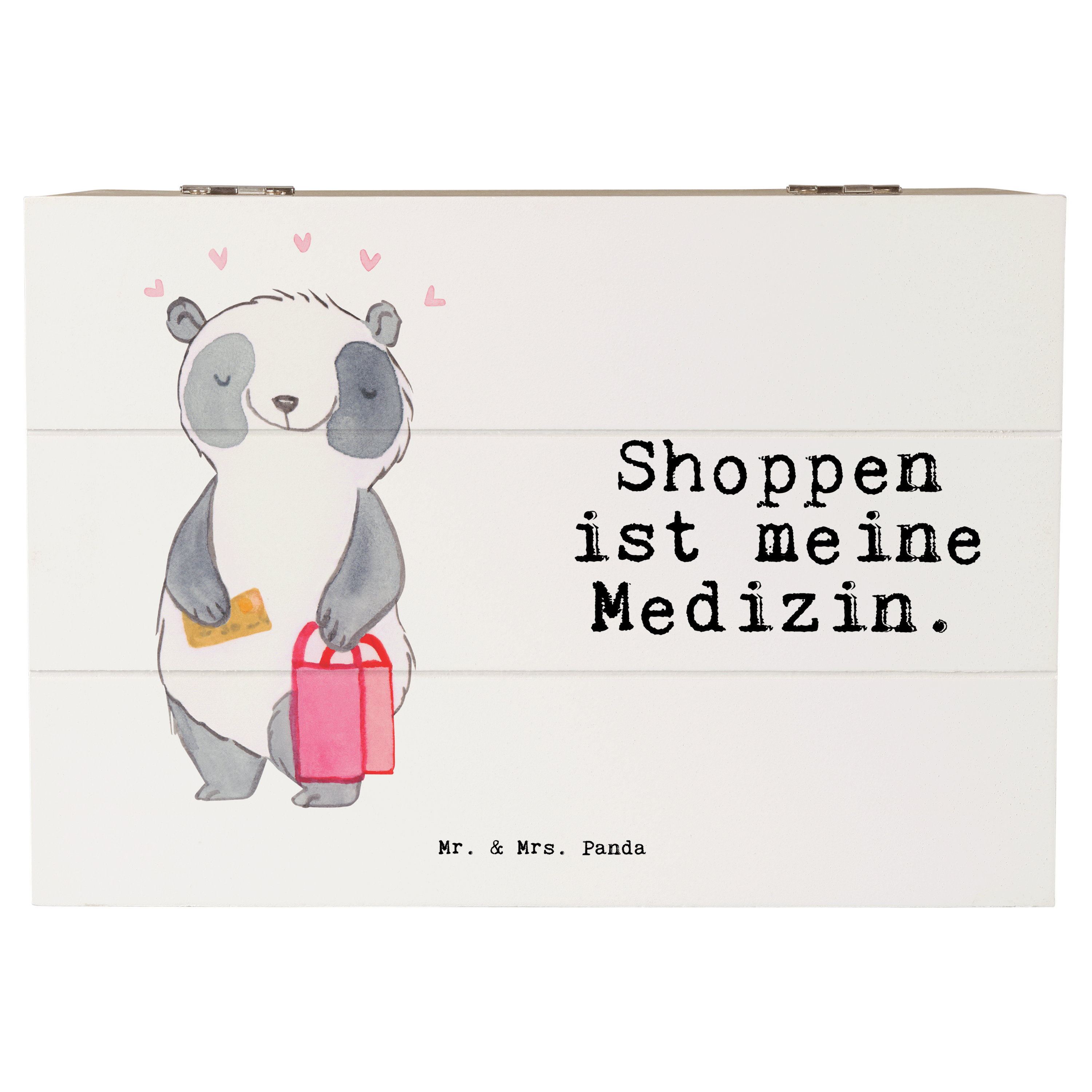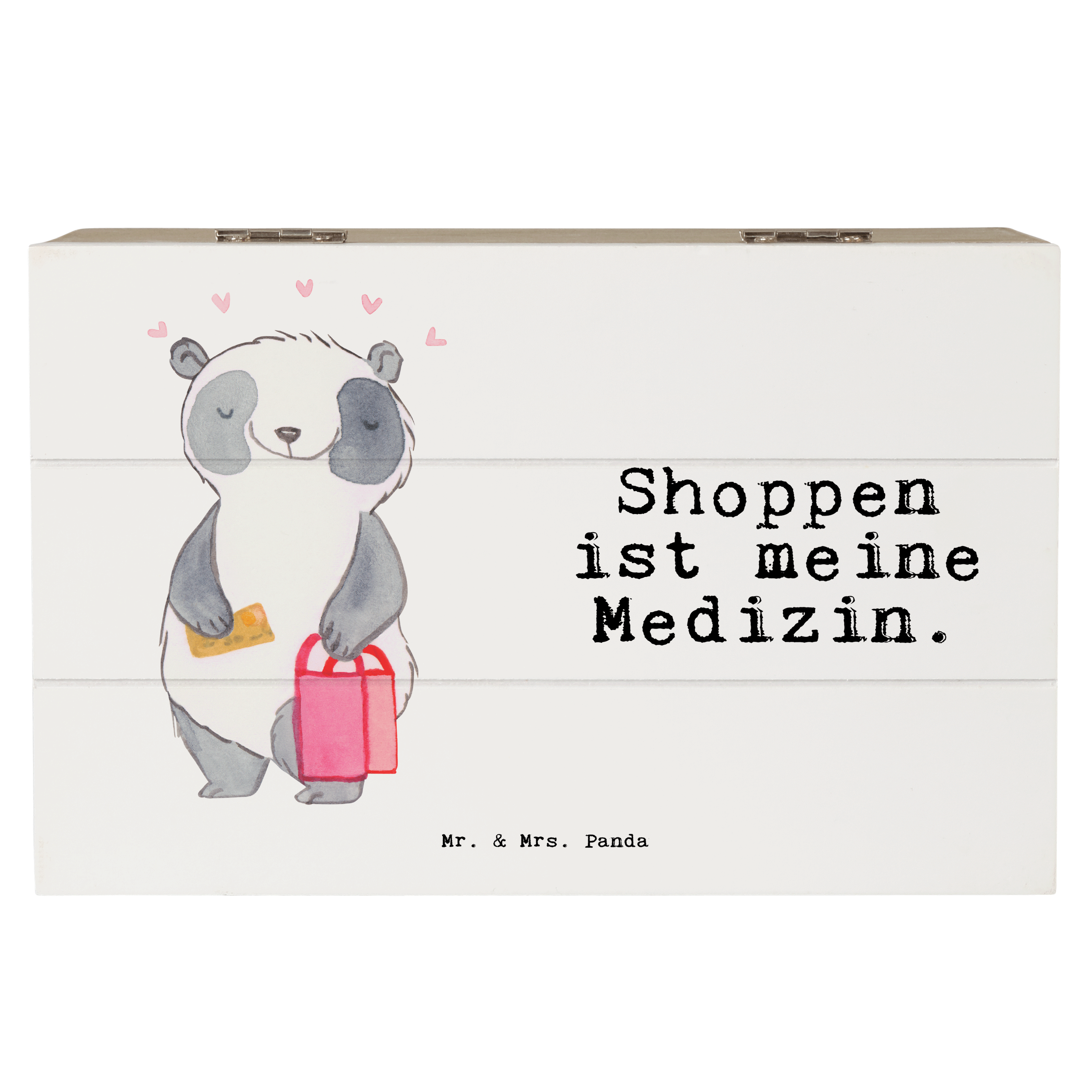 Holzkiste Panda Shopping Medizin - 19 x 12 cm