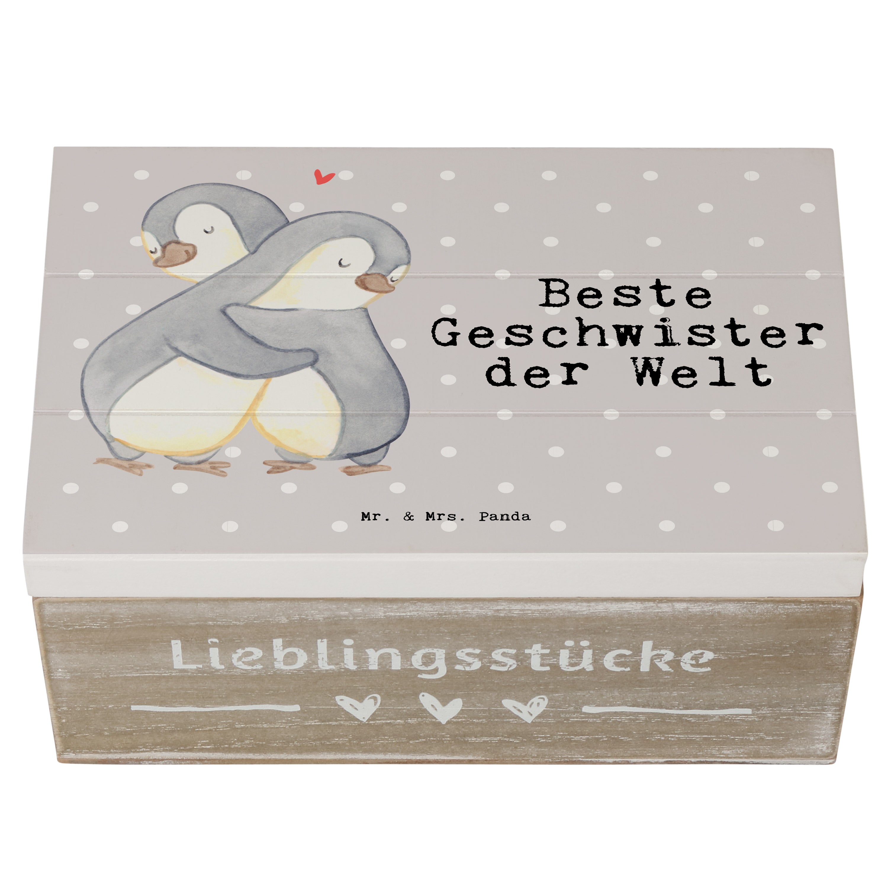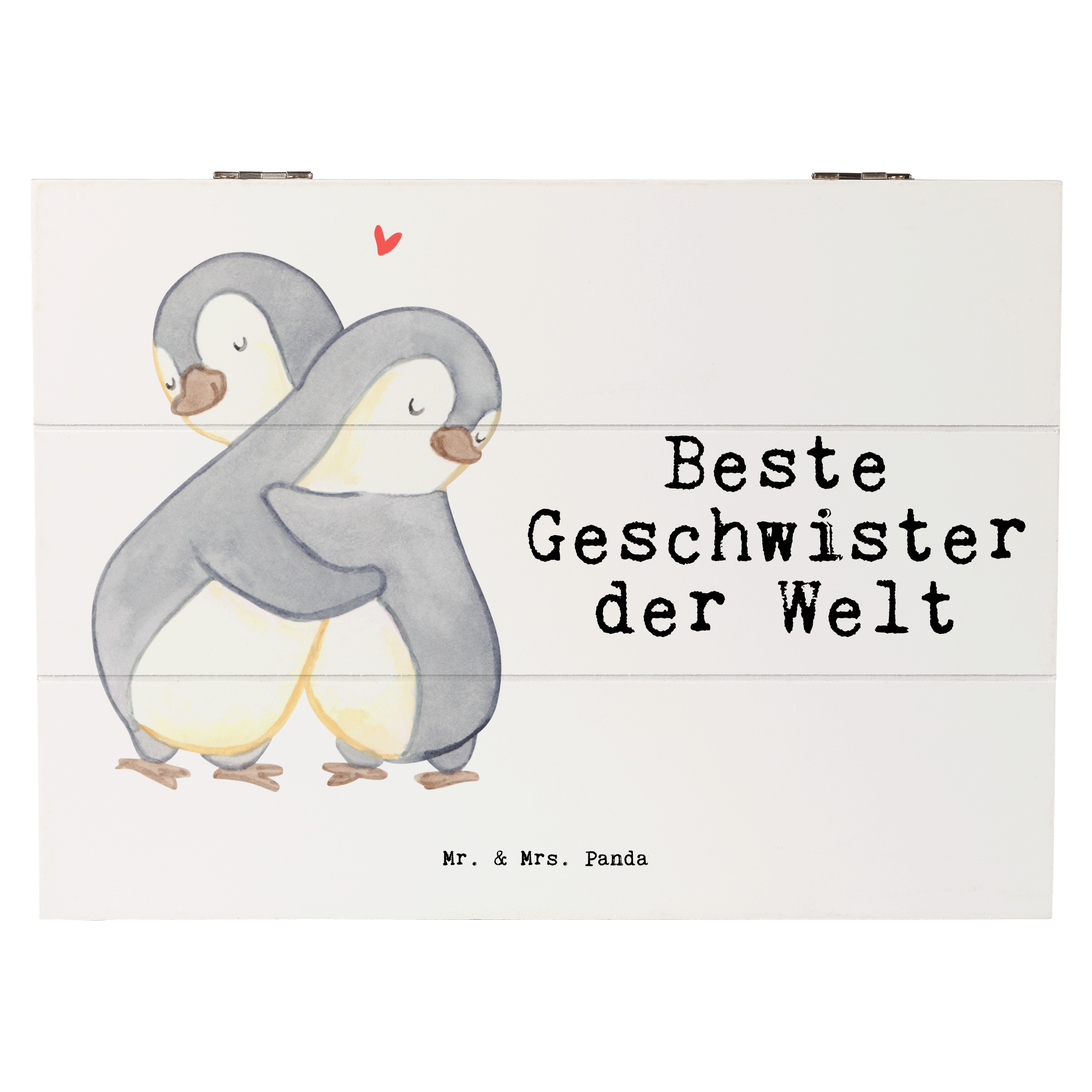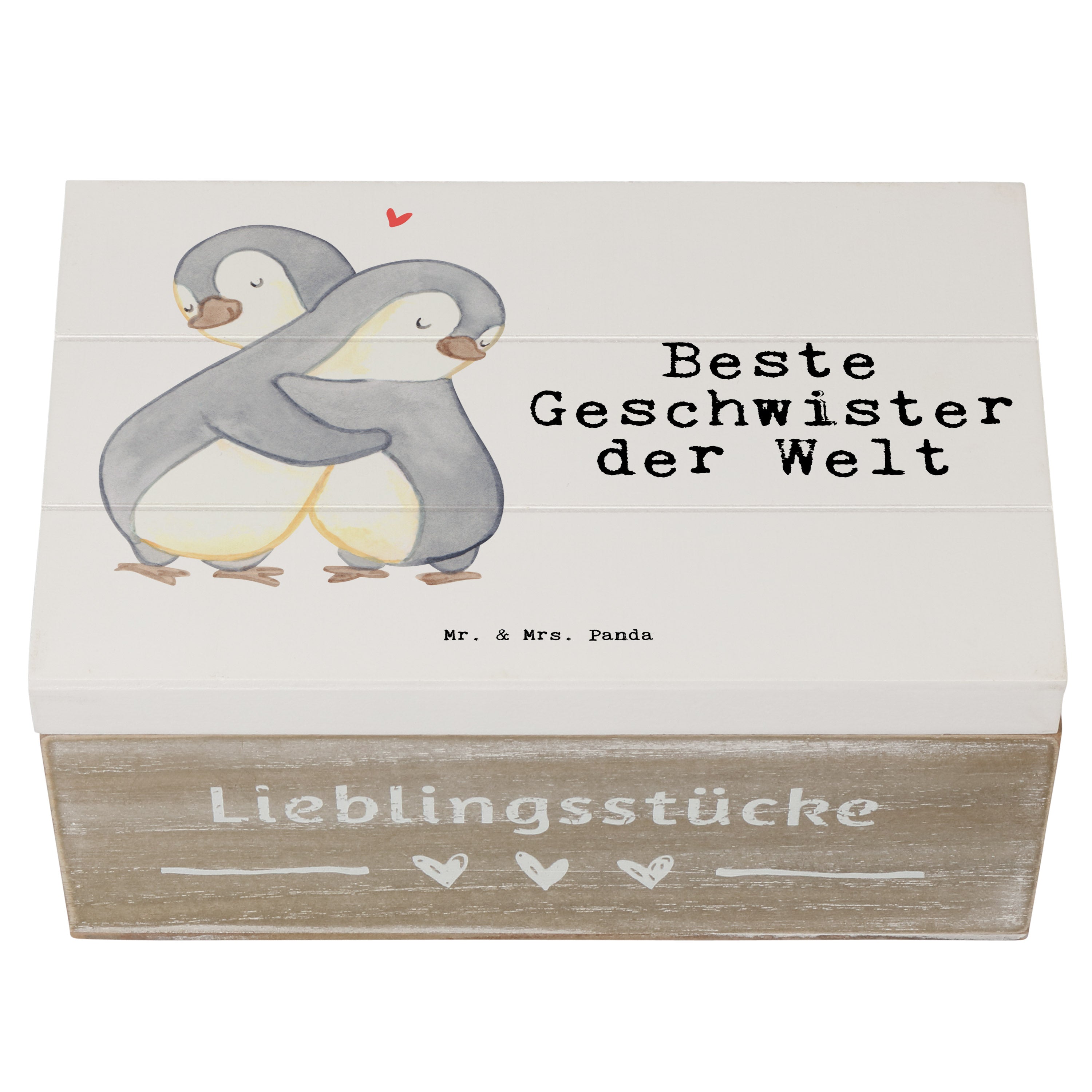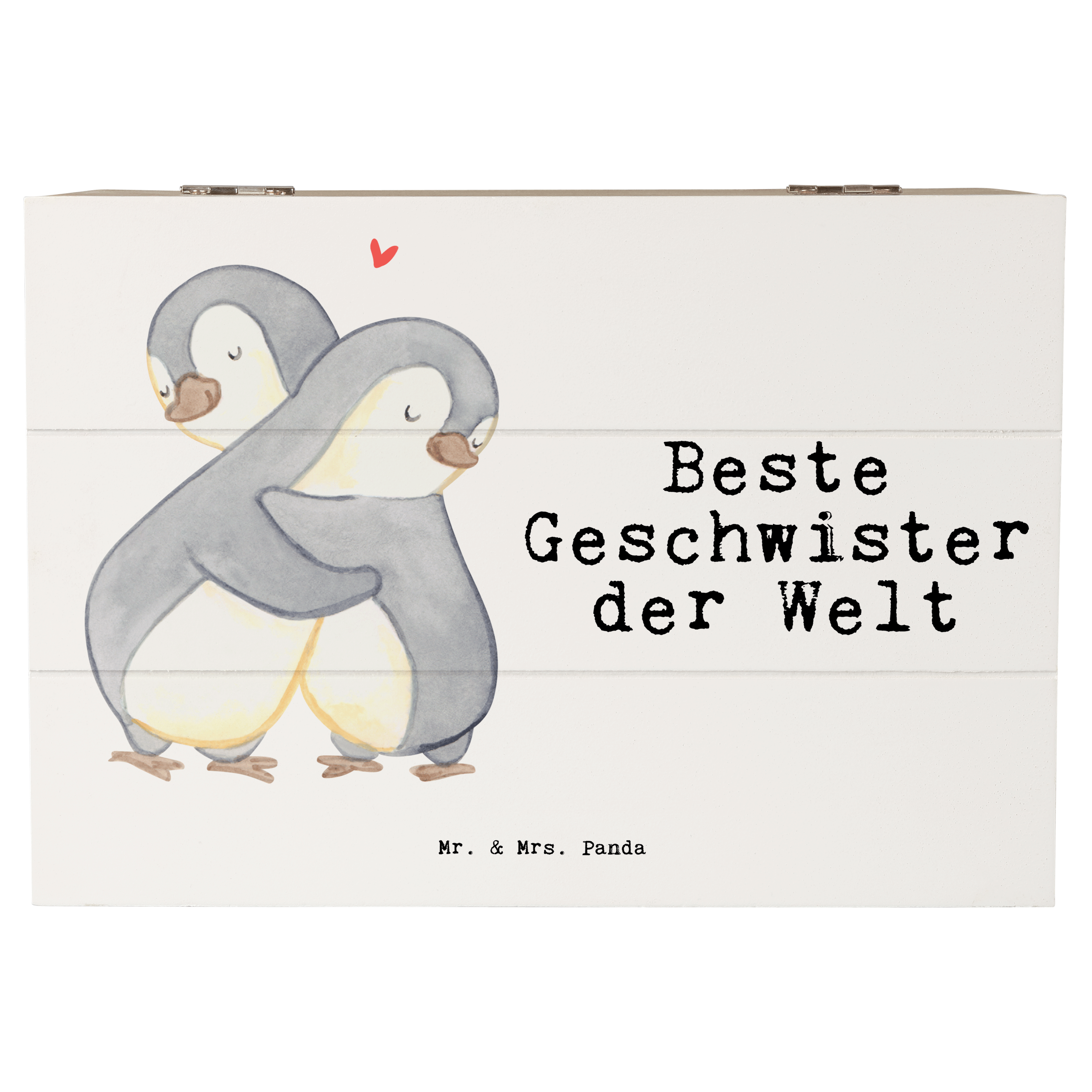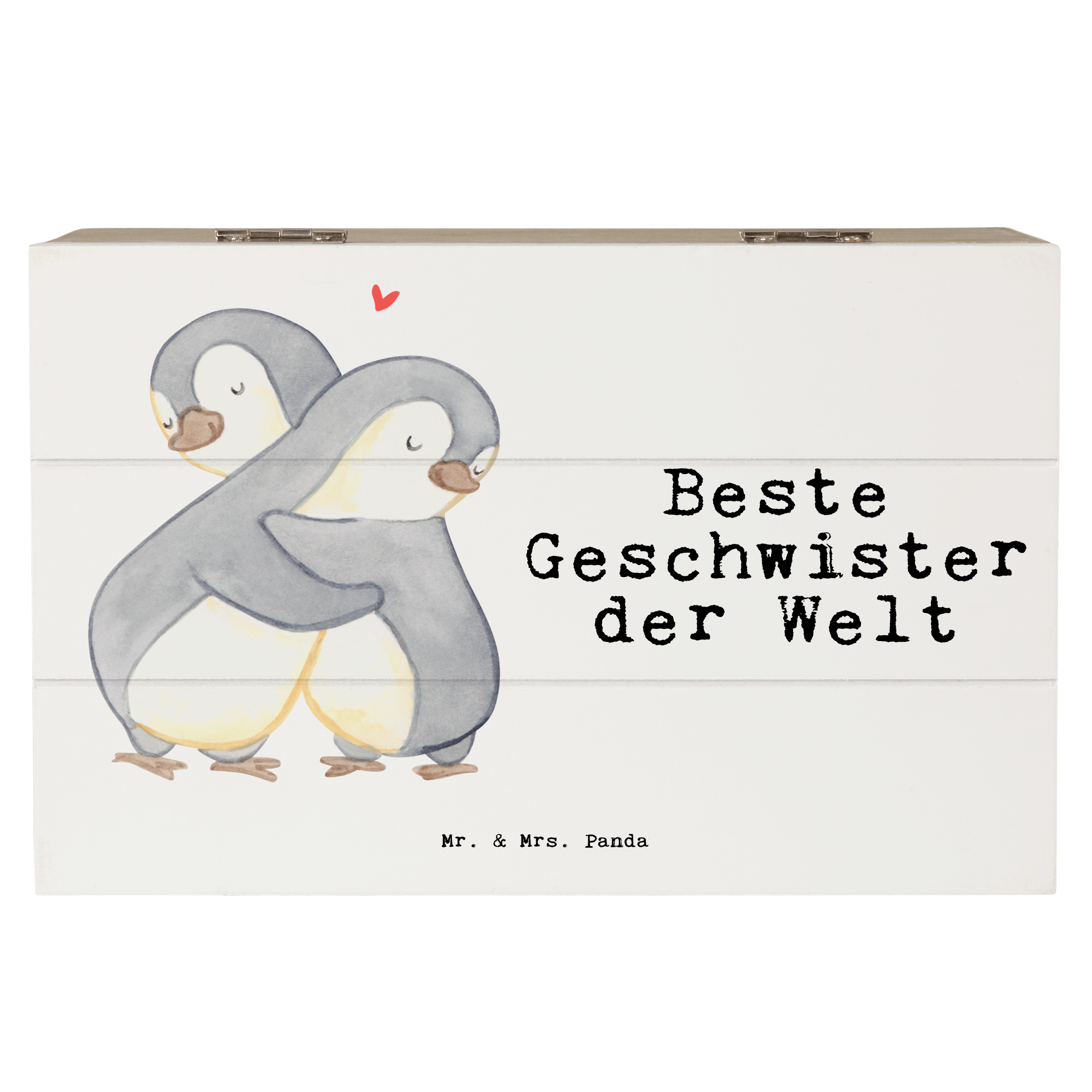 Holzkiste Pinguin Beste Geschwister der Welt - Weiß - 19 x 12 cm