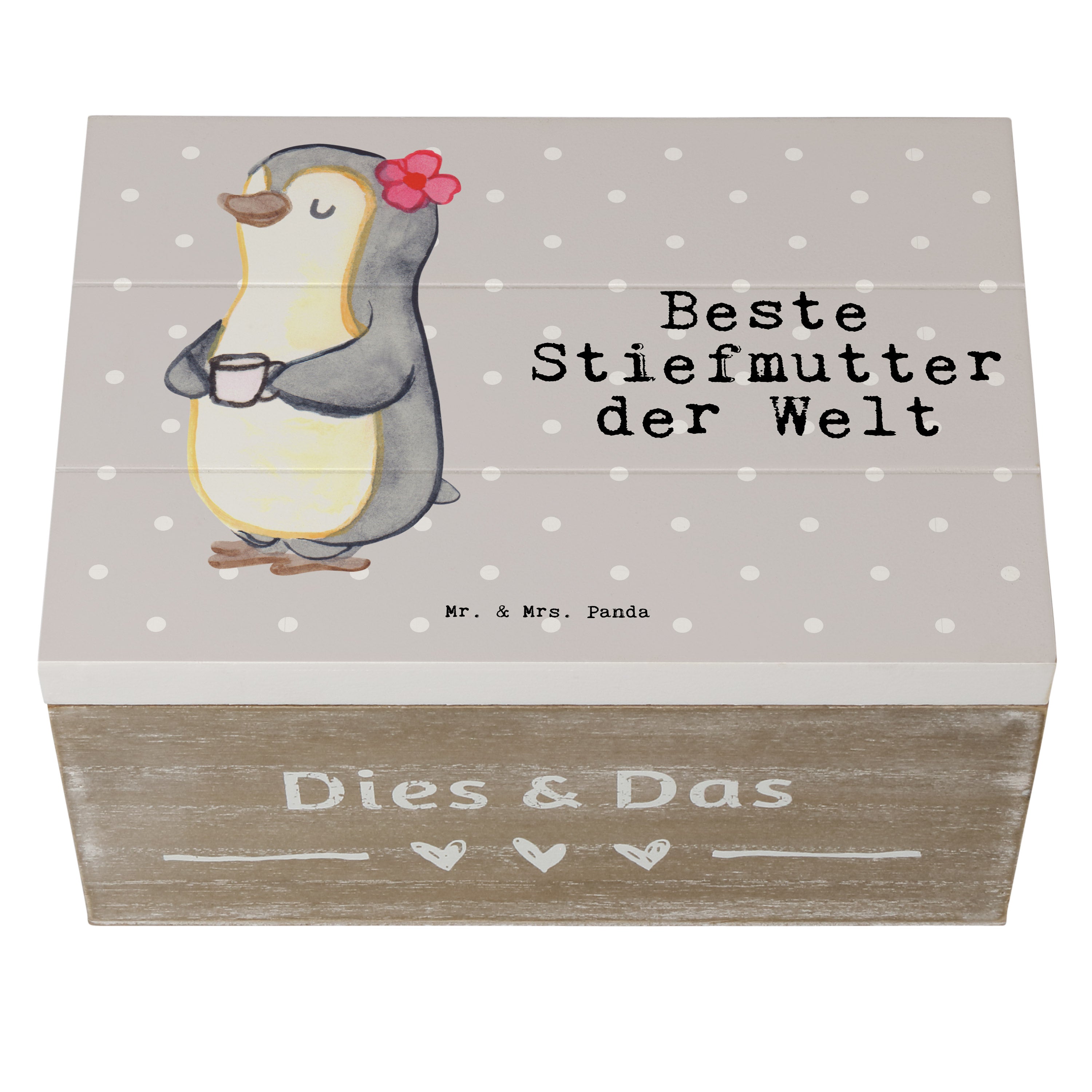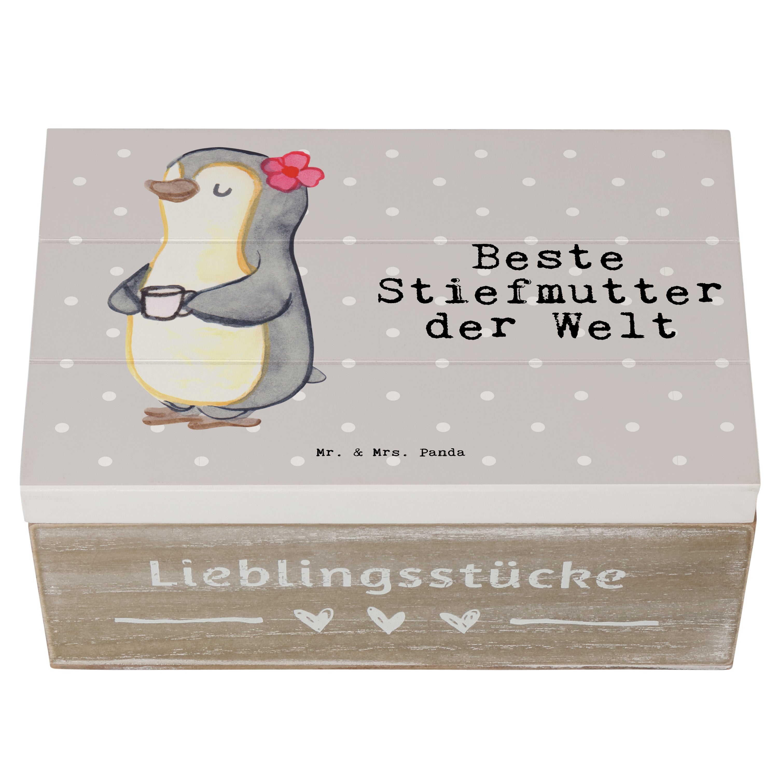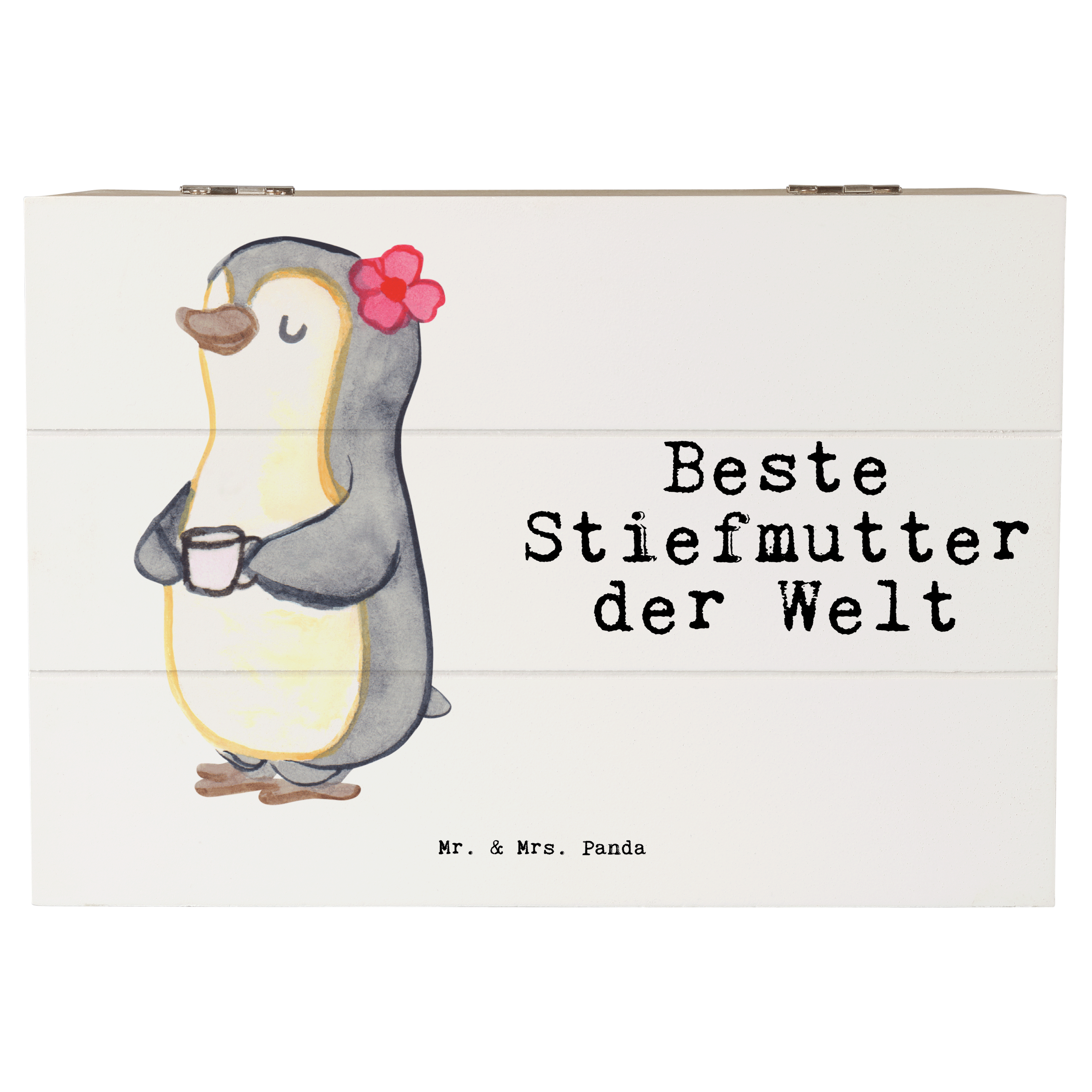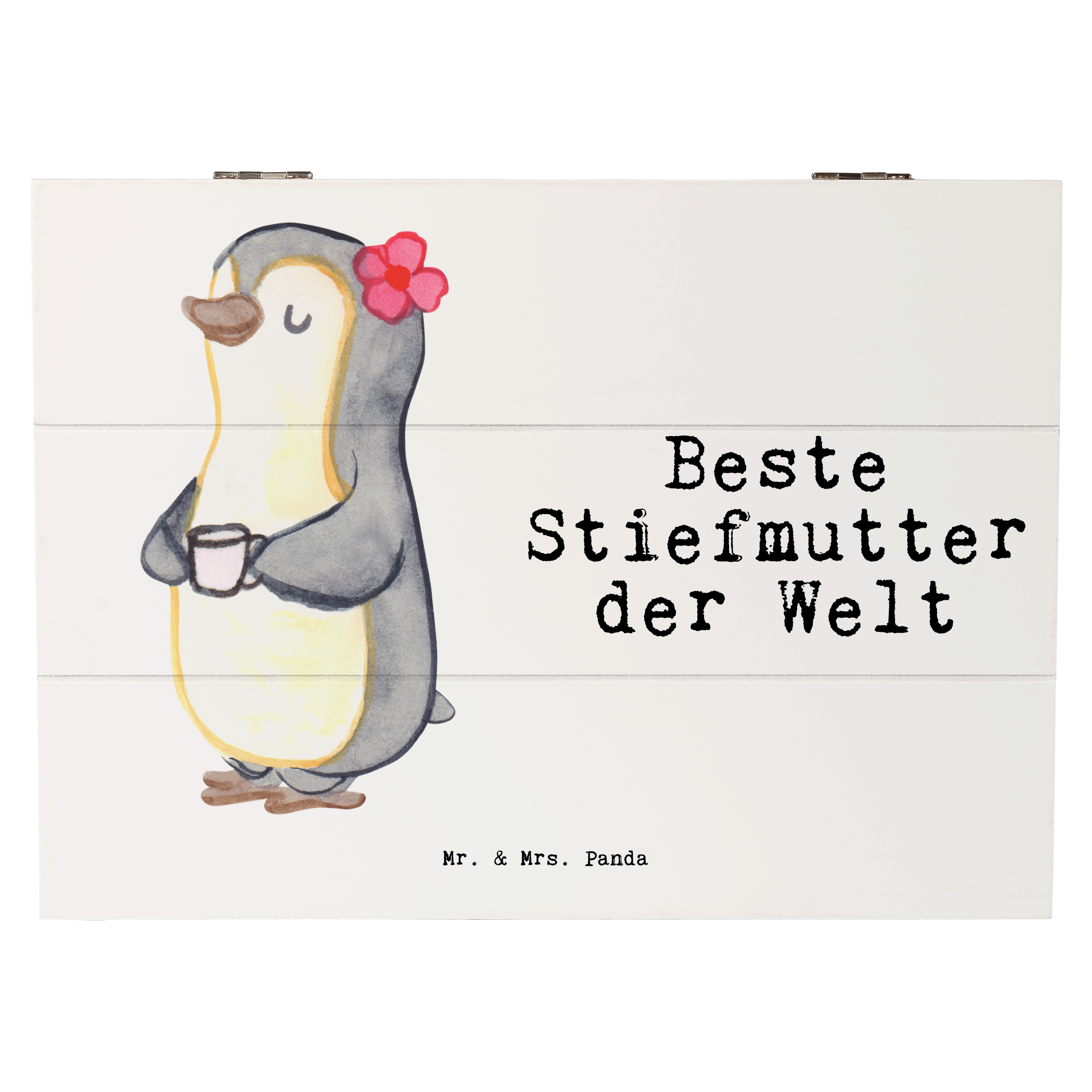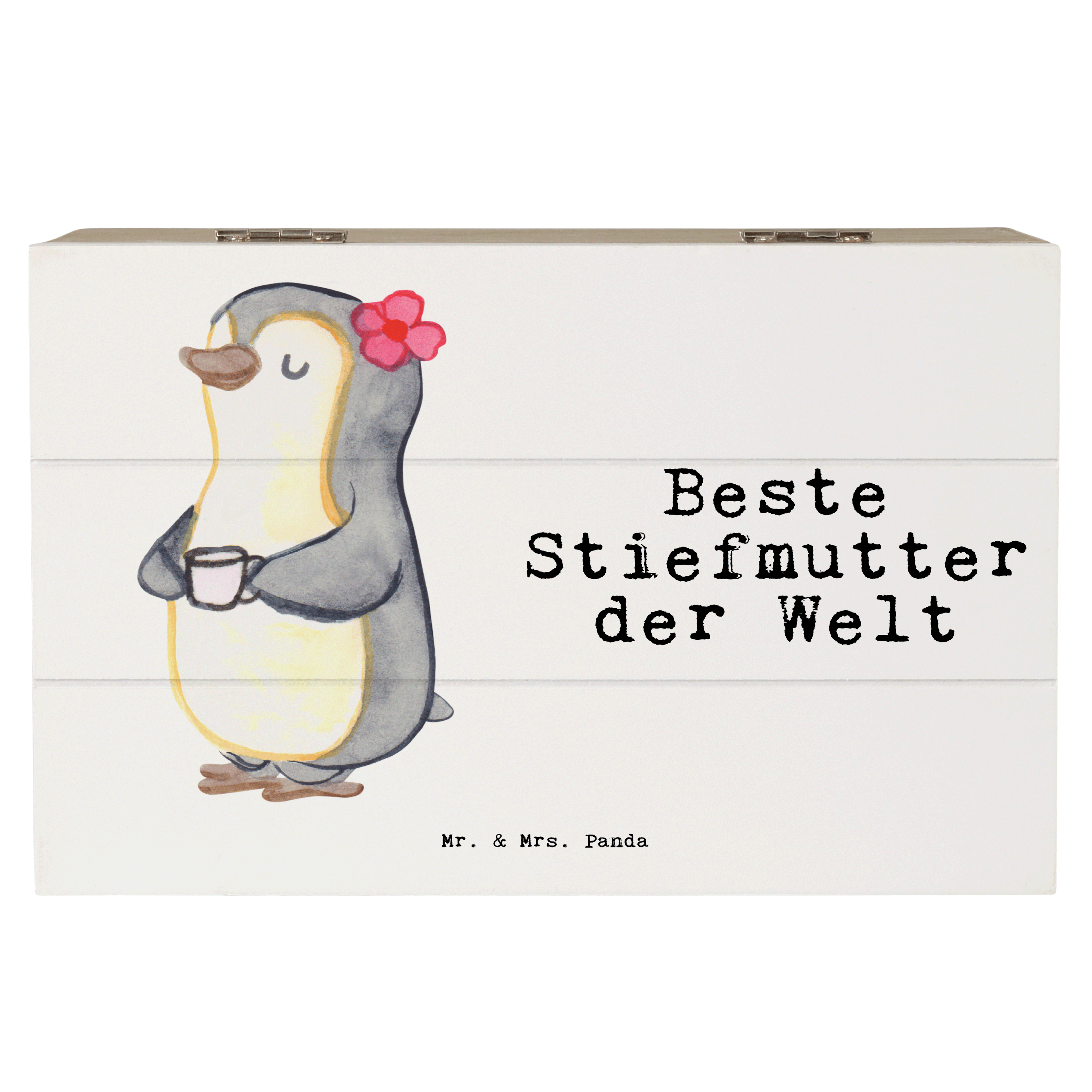 Holzkiste Pinguin Beste Stiefmutter der Welt - Weiß - 19 x 12 cm