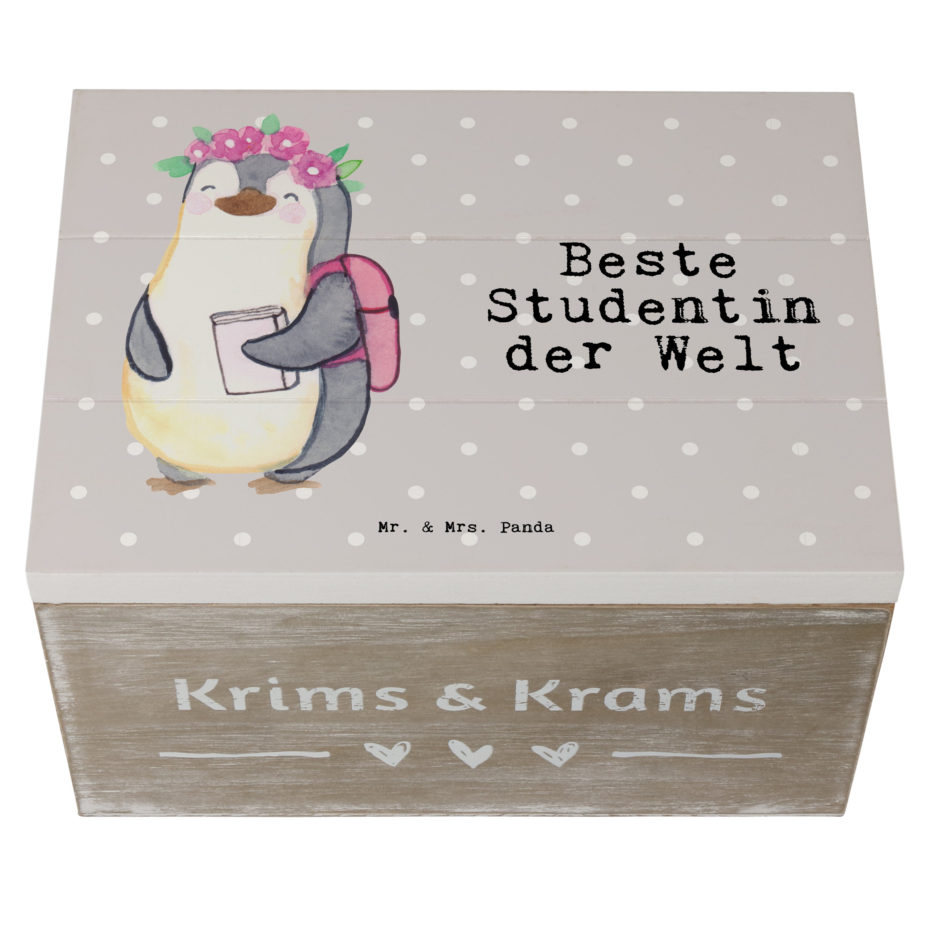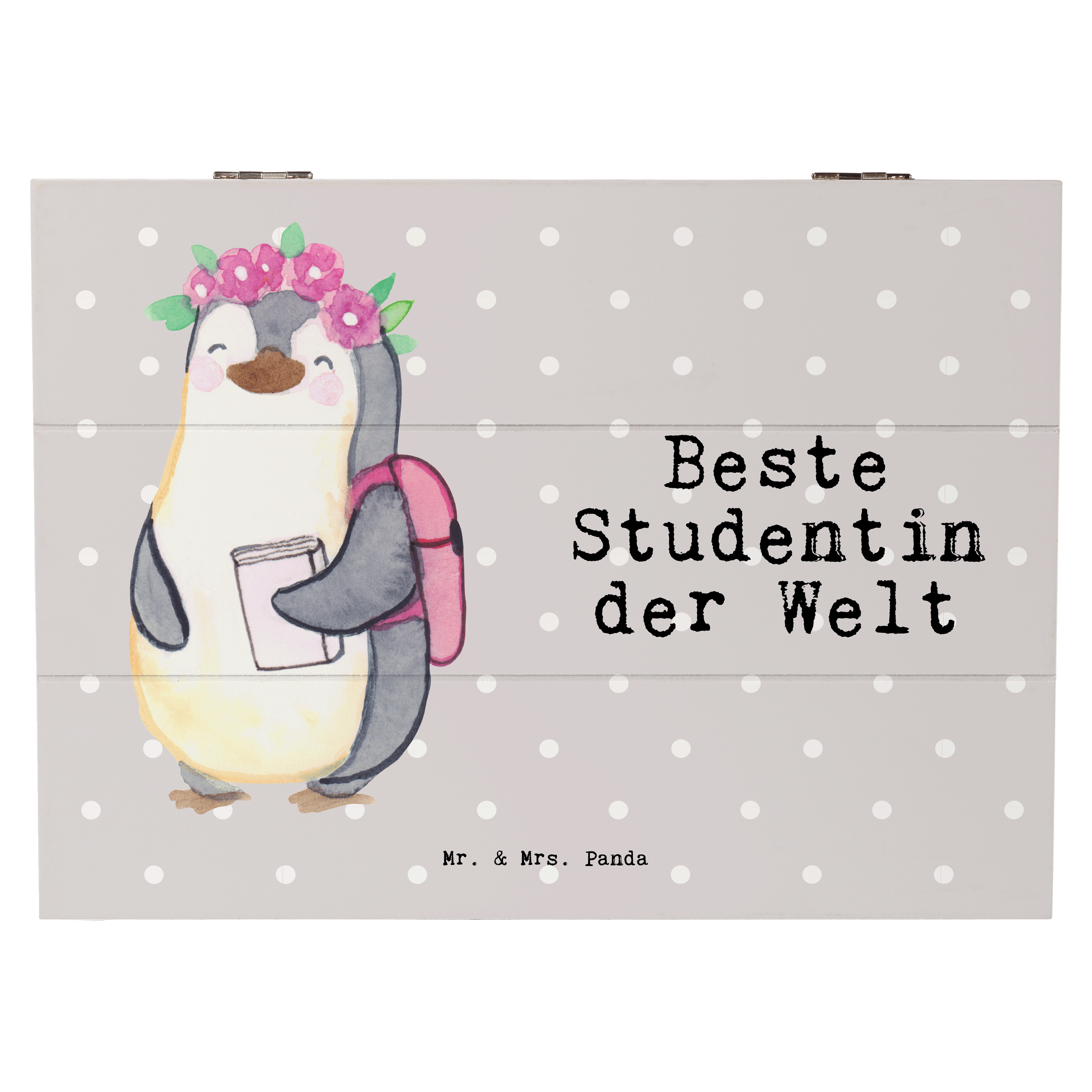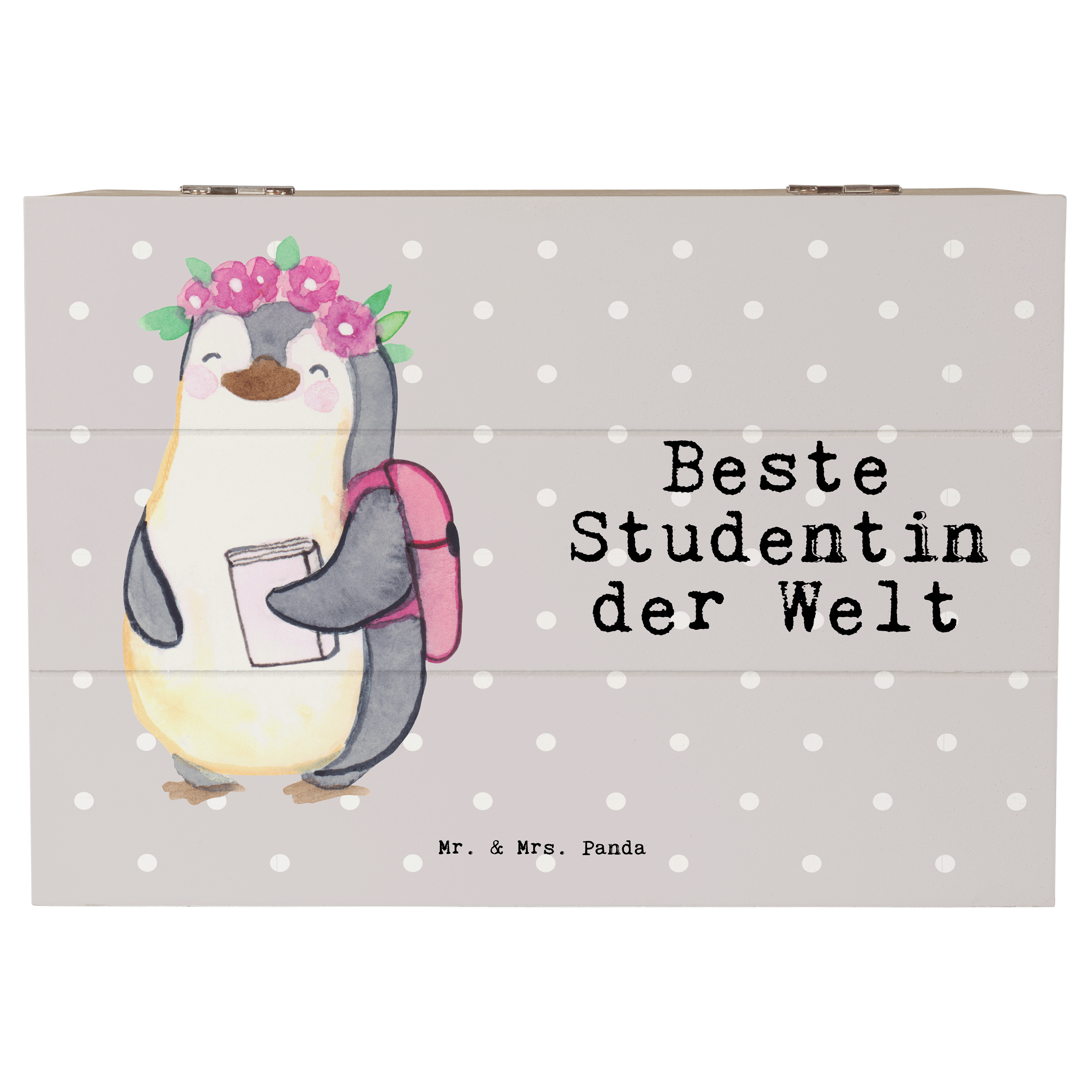Holzkiste Pinguin Beste Studentin der Welt - Grau Pastell - 19 x 12 cm
