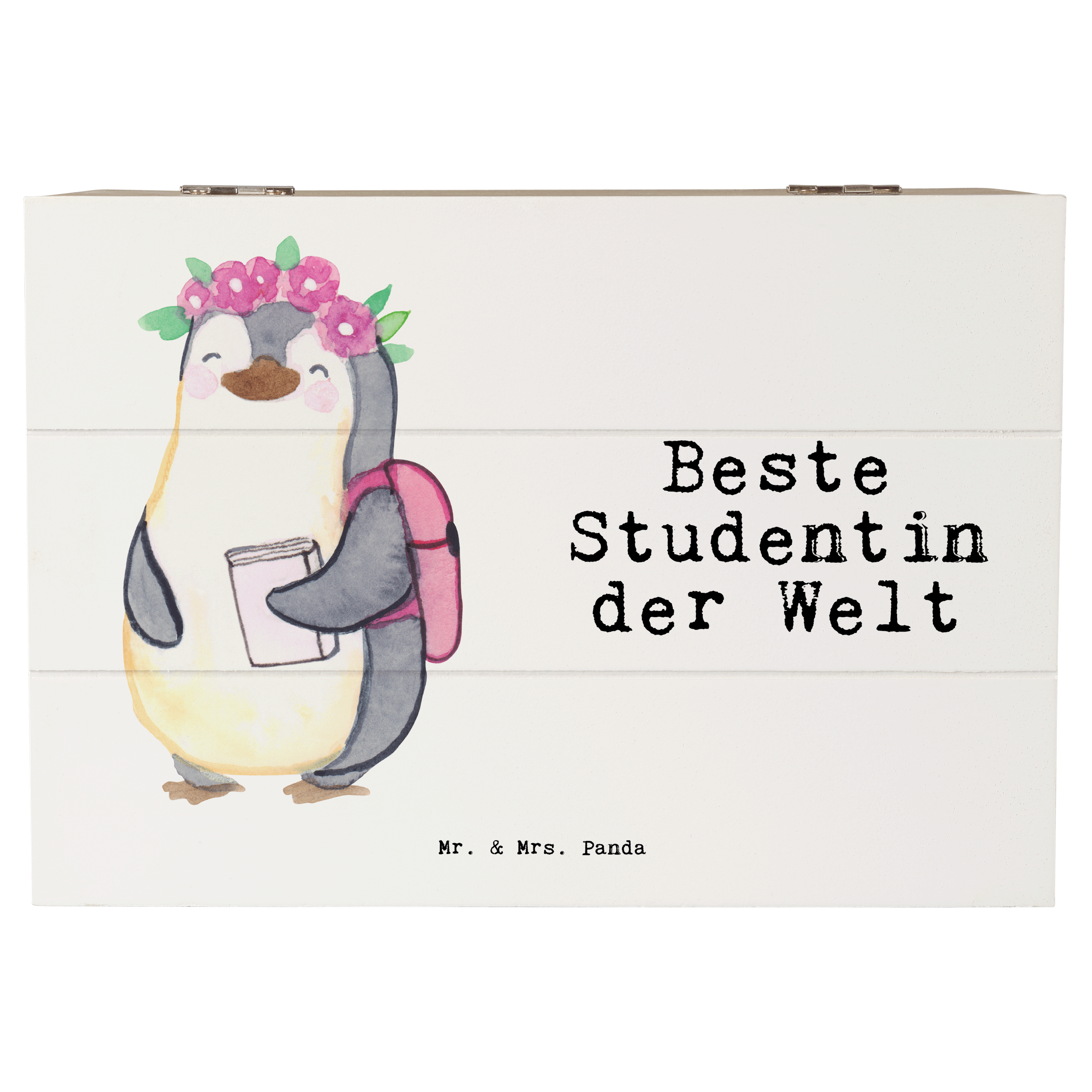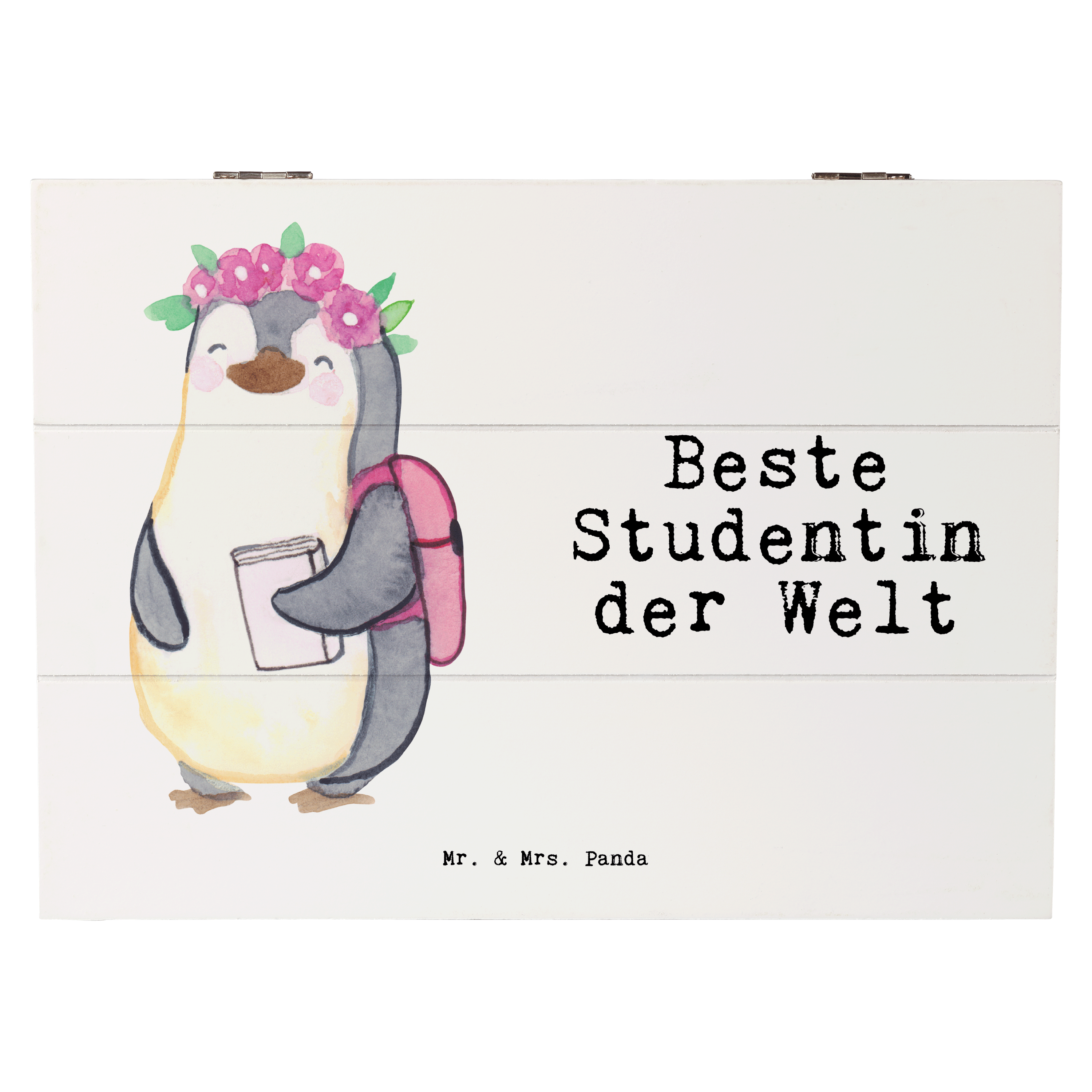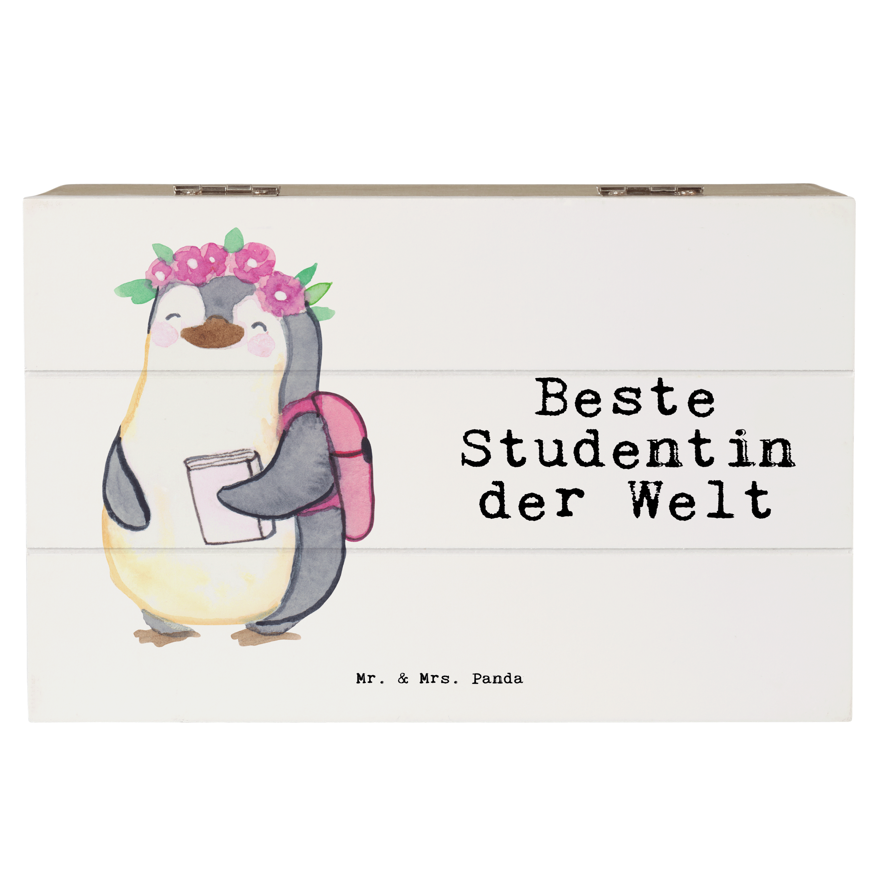 Holzkiste Pinguin Beste Studentin der Welt - Grau Pastell - 19 x 12 cm