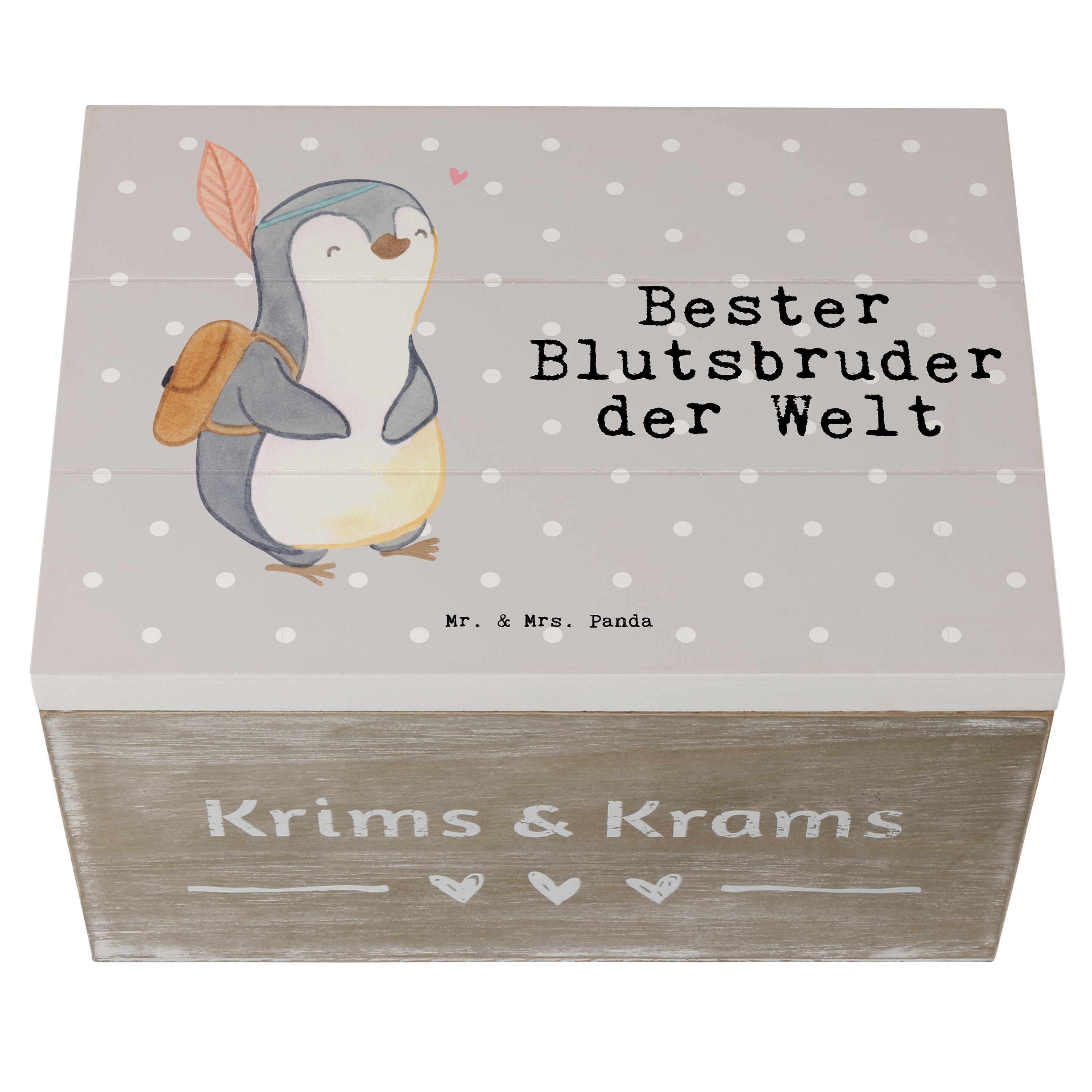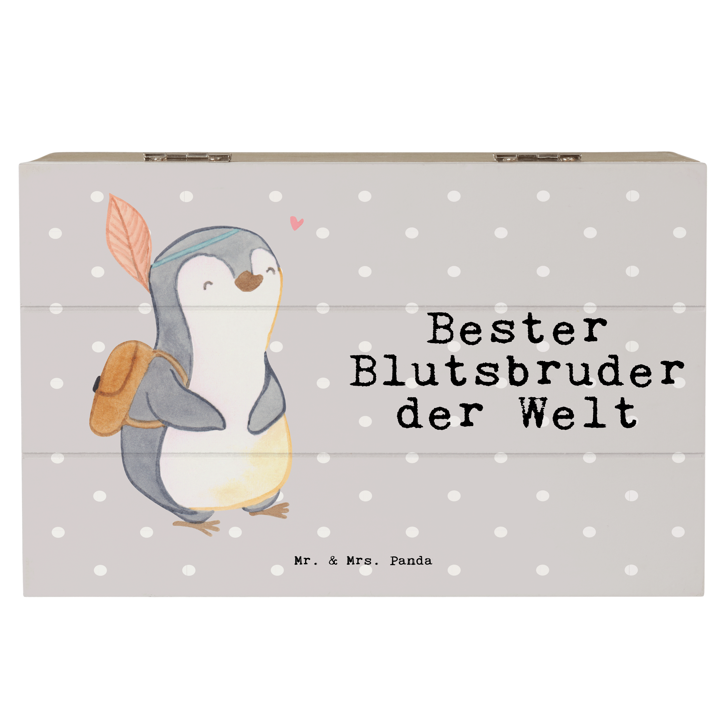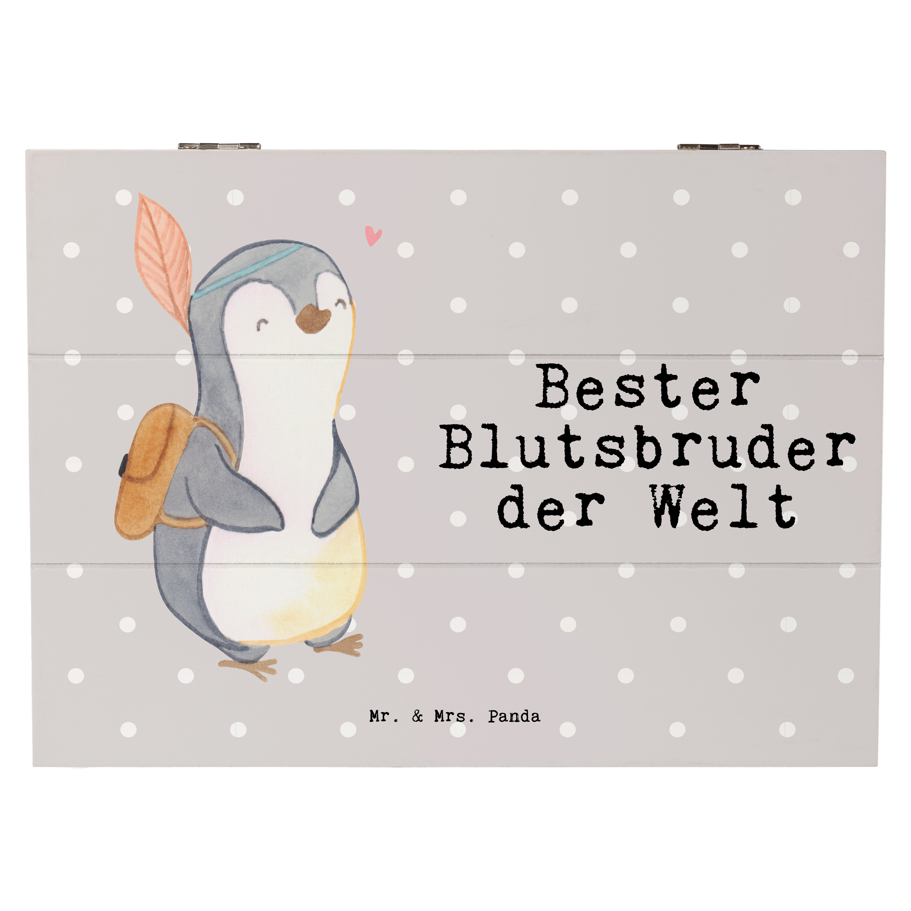 Holzkiste Pinguin Bester Blutsbruder der Welt - 25 x 18 cm - Grau Pastell